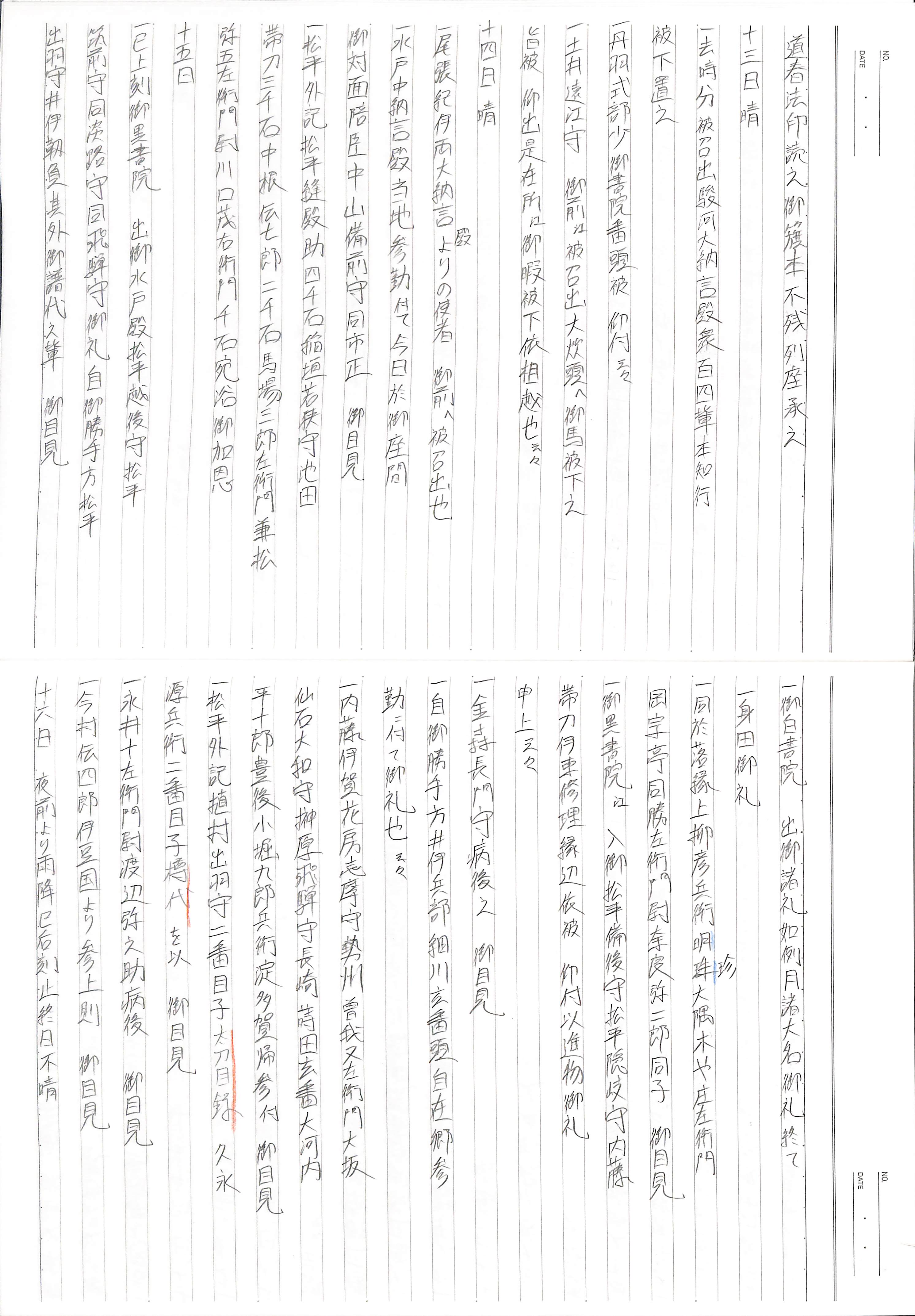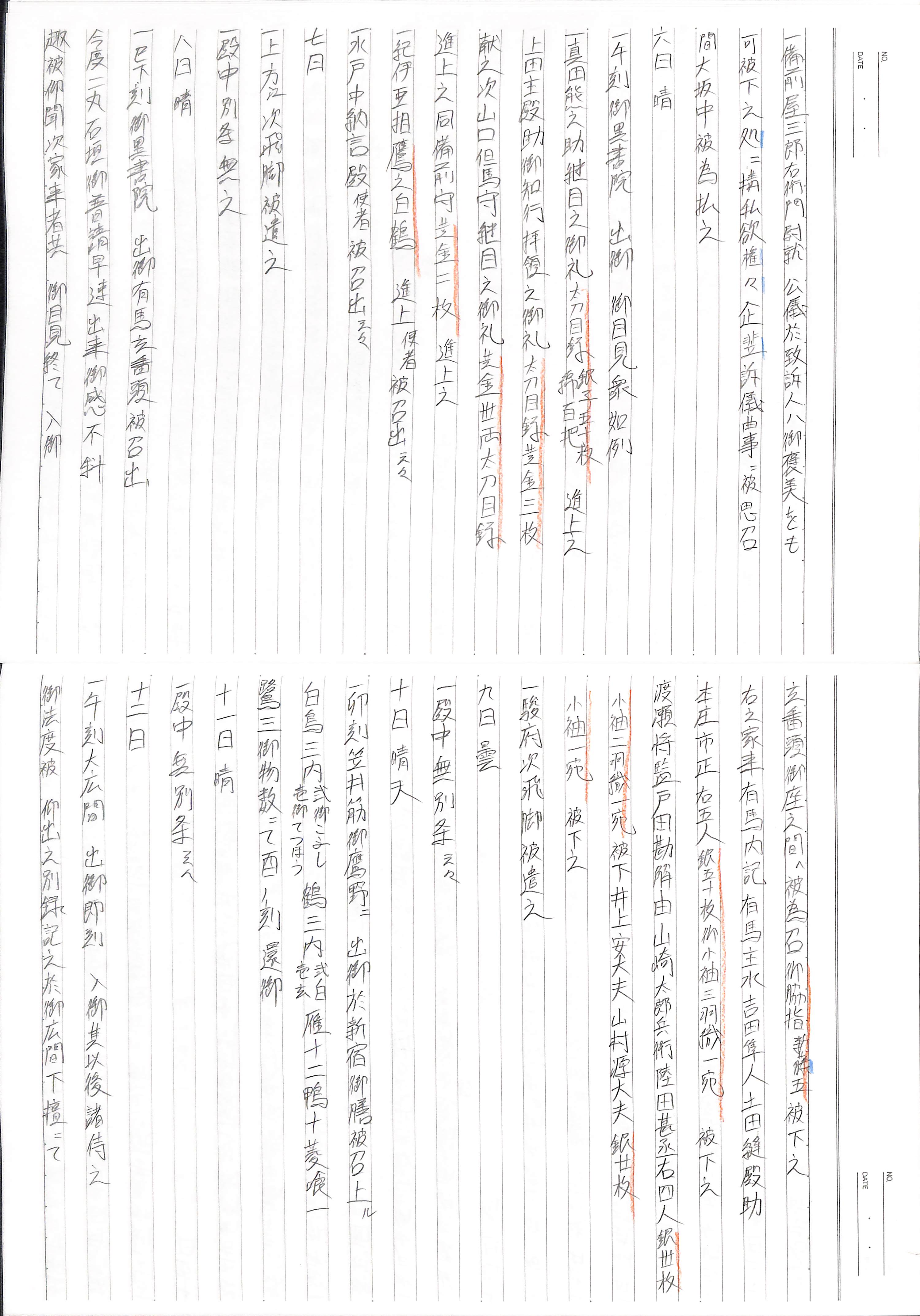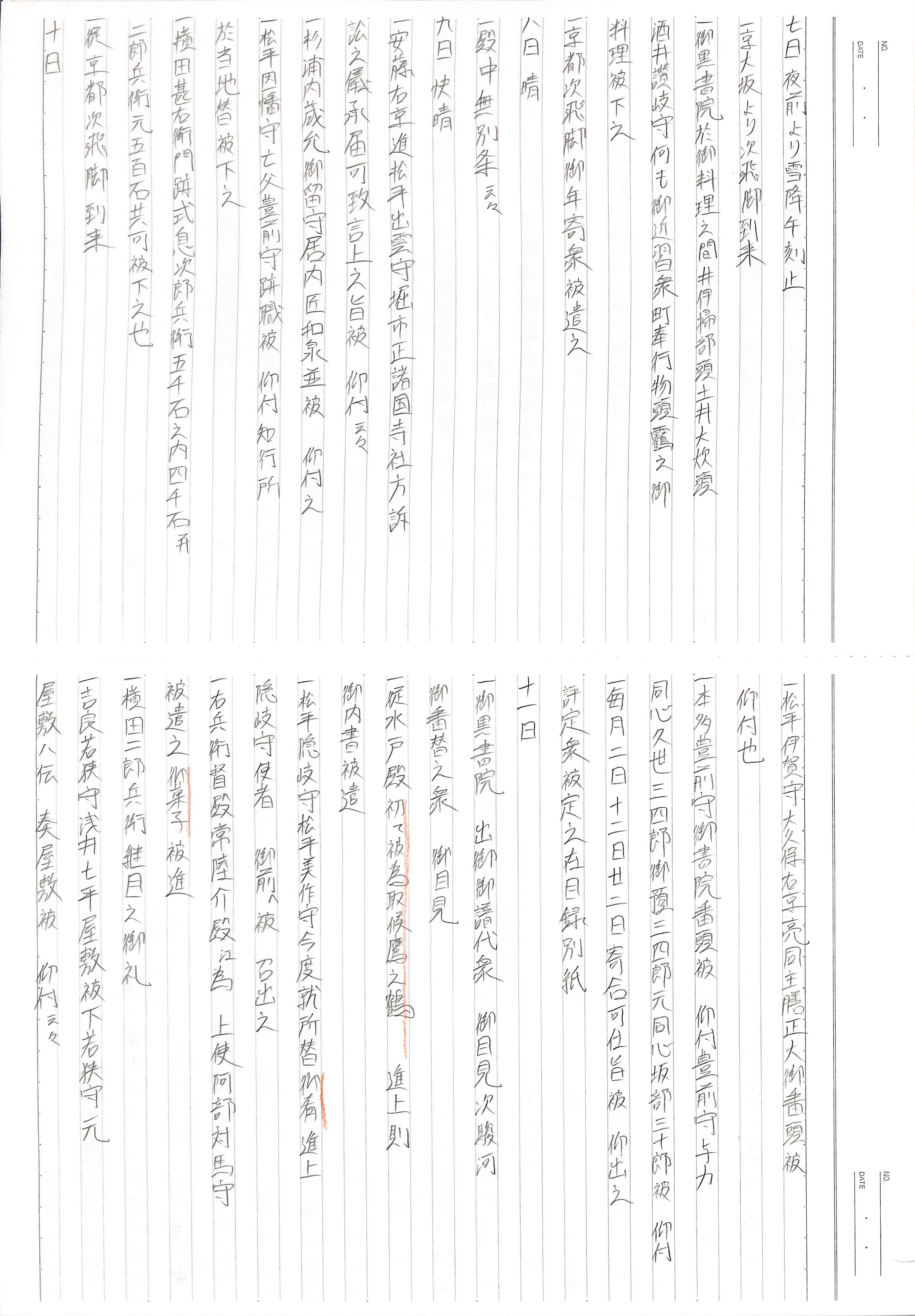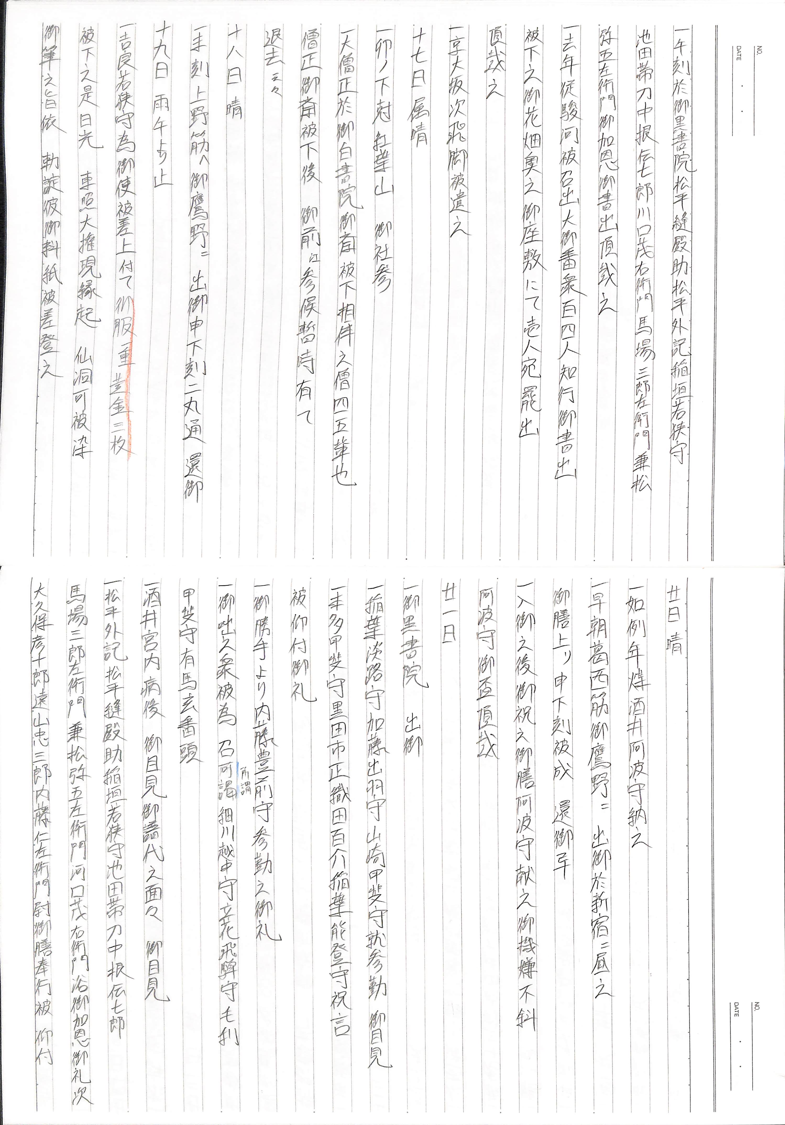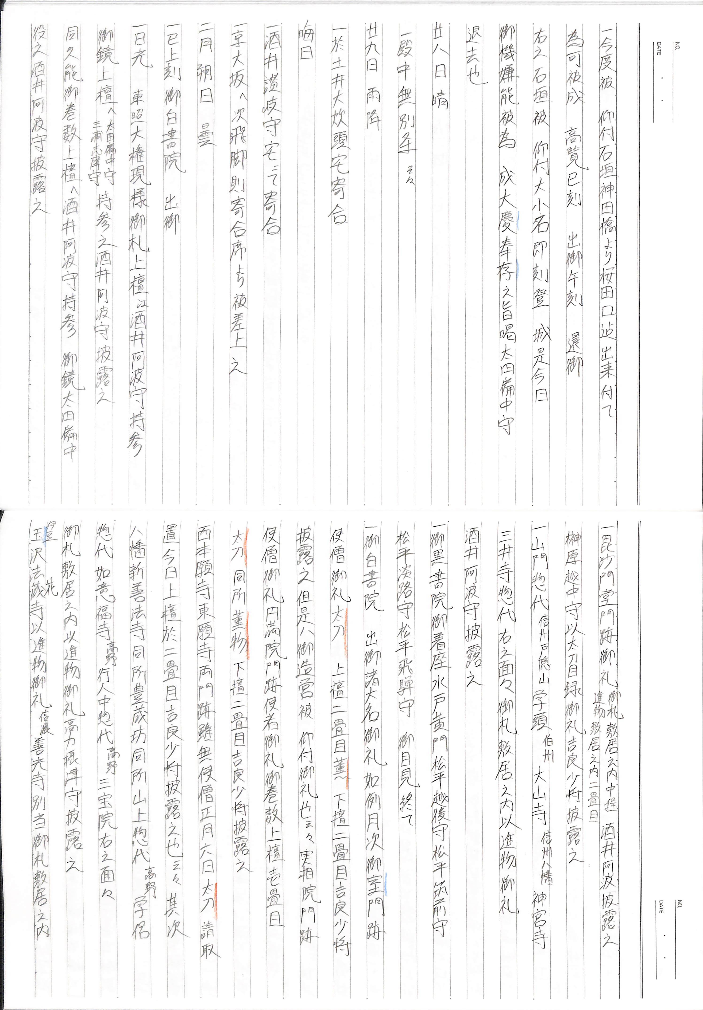 藤井讓治監修『江戸幕府日記姫路酒井家本』第4、5巻(ゆまに書房、2003年)より作成。原史料は姫路市立城郭研究室所蔵。
