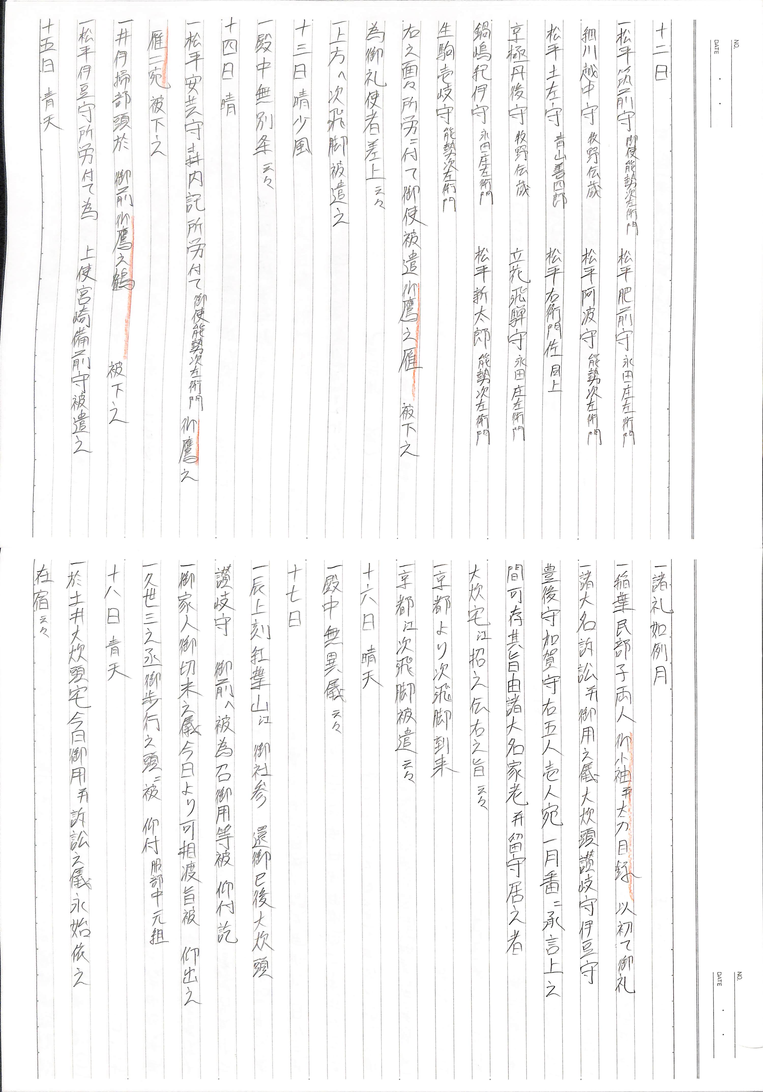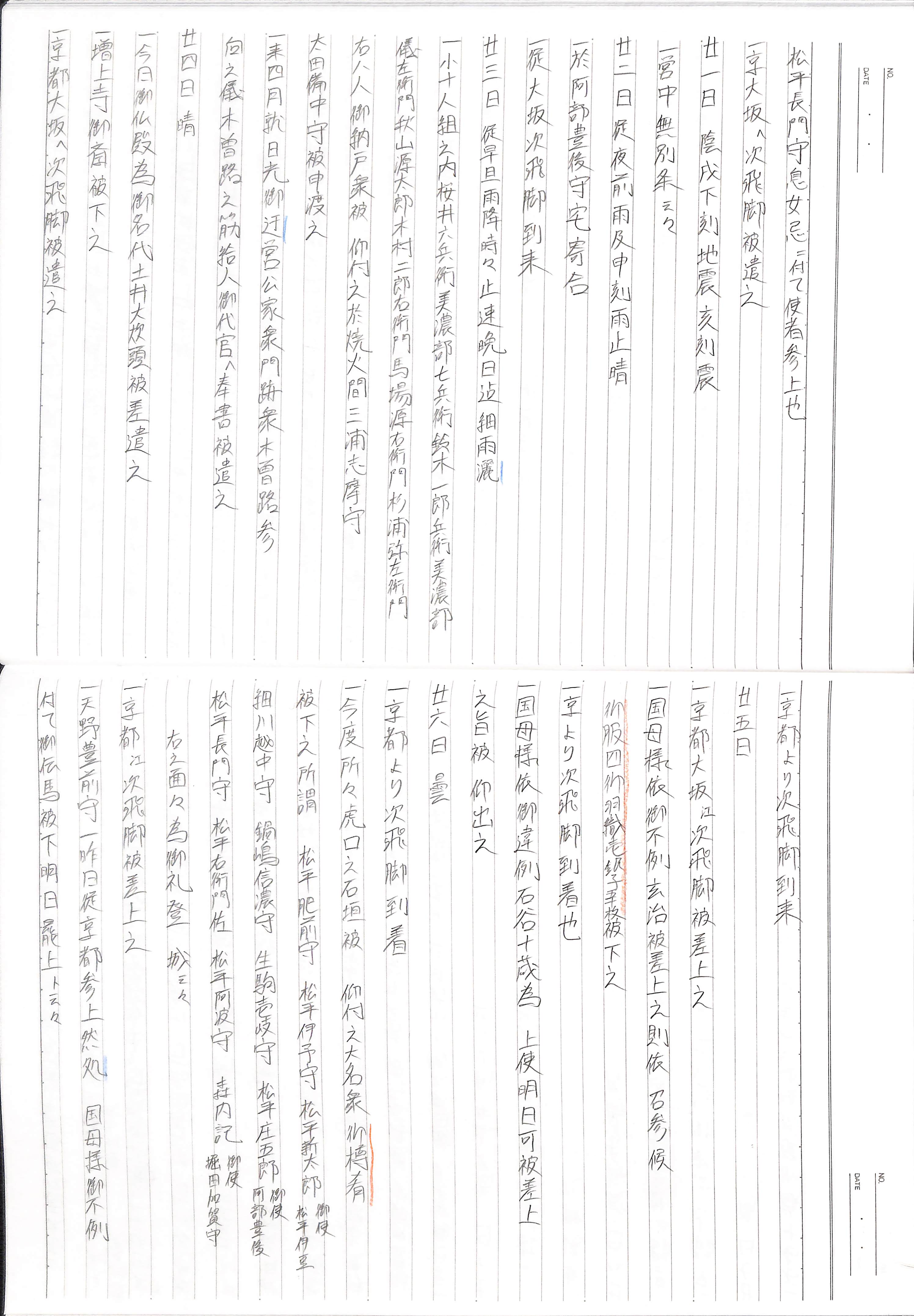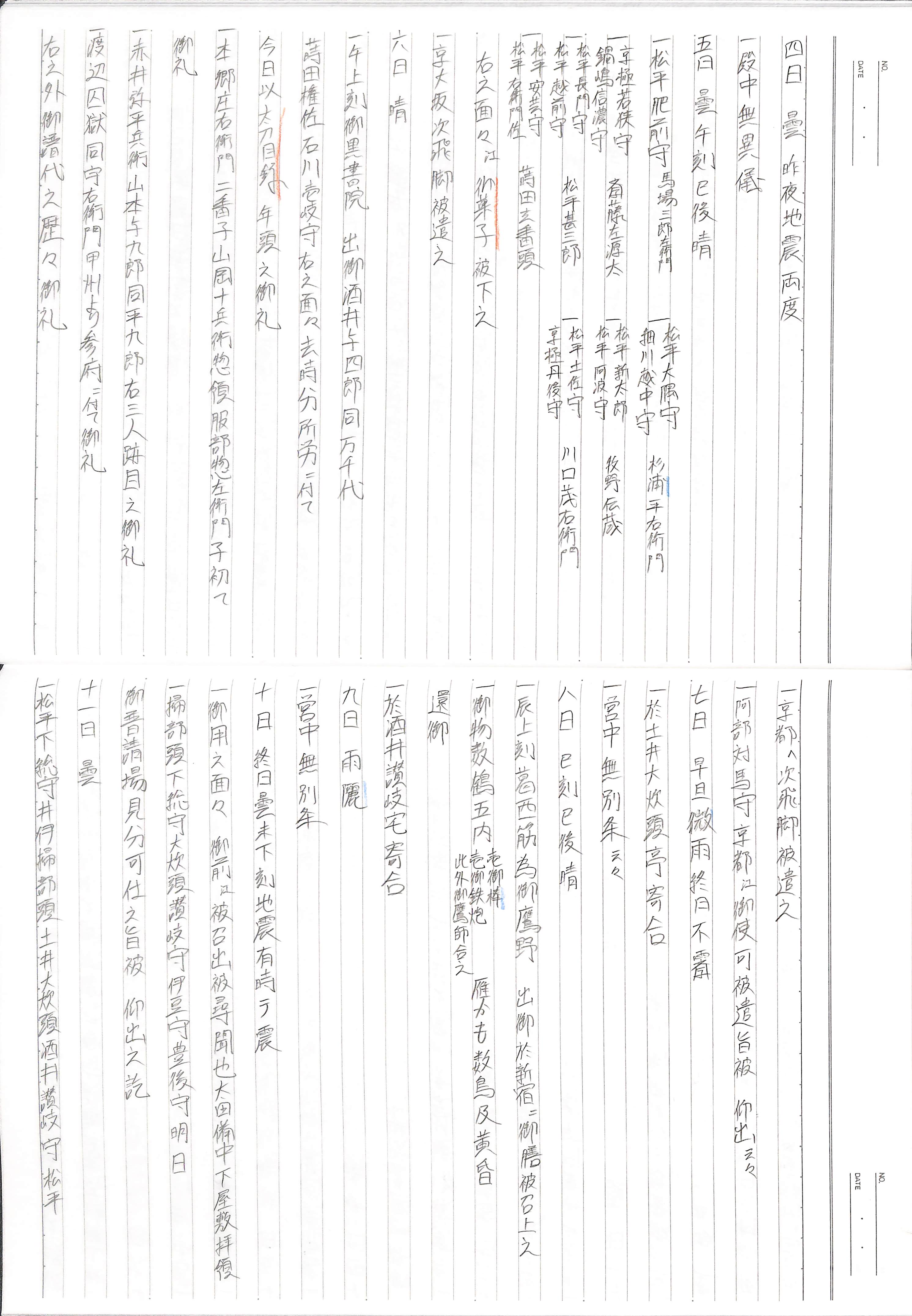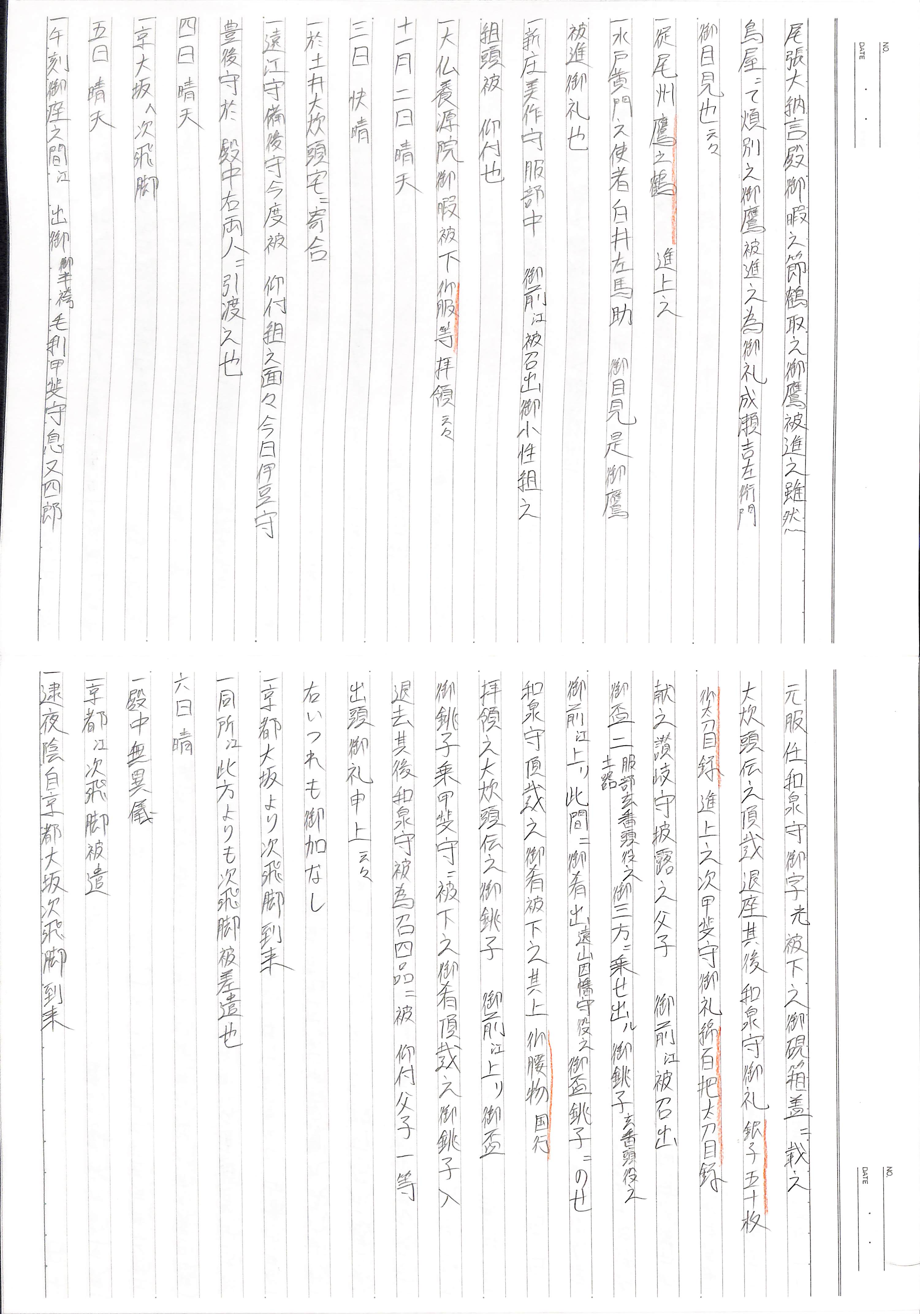 藤井讓治監修『江戸幕府日記姫路酒井家本』第4、5巻(ゆまに書房、2003年)より作成。原史料は姫路市立城郭研究室所蔵。