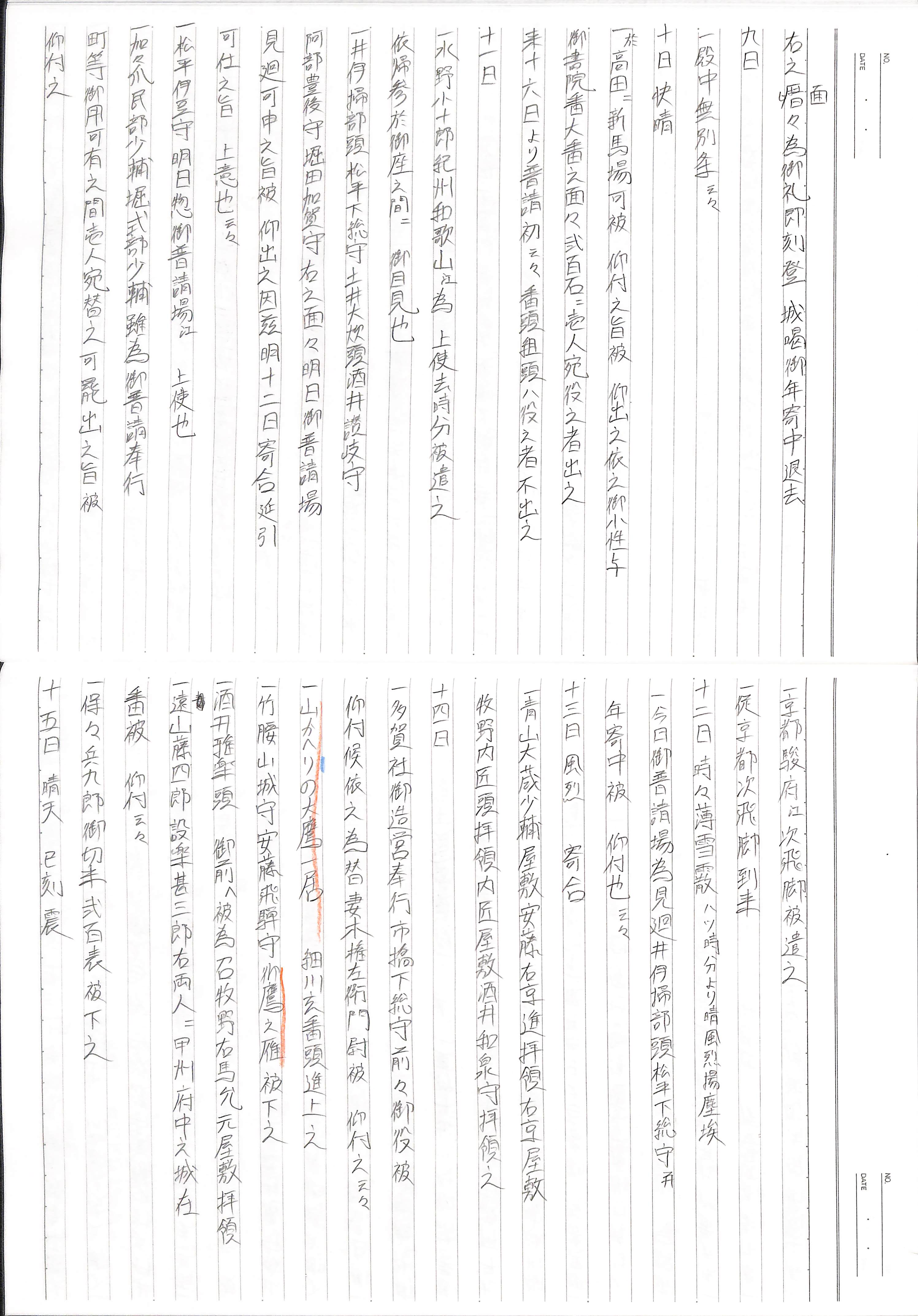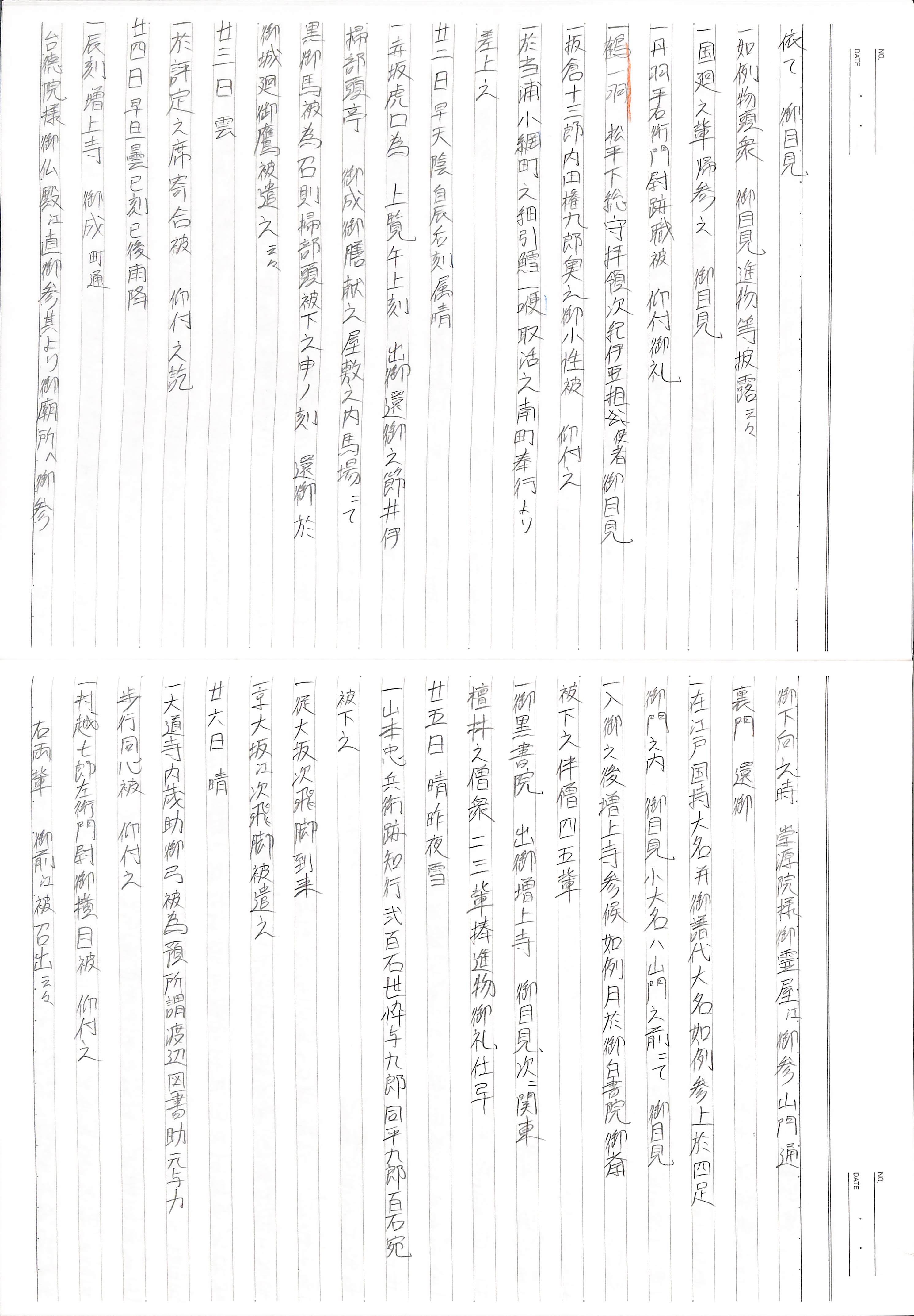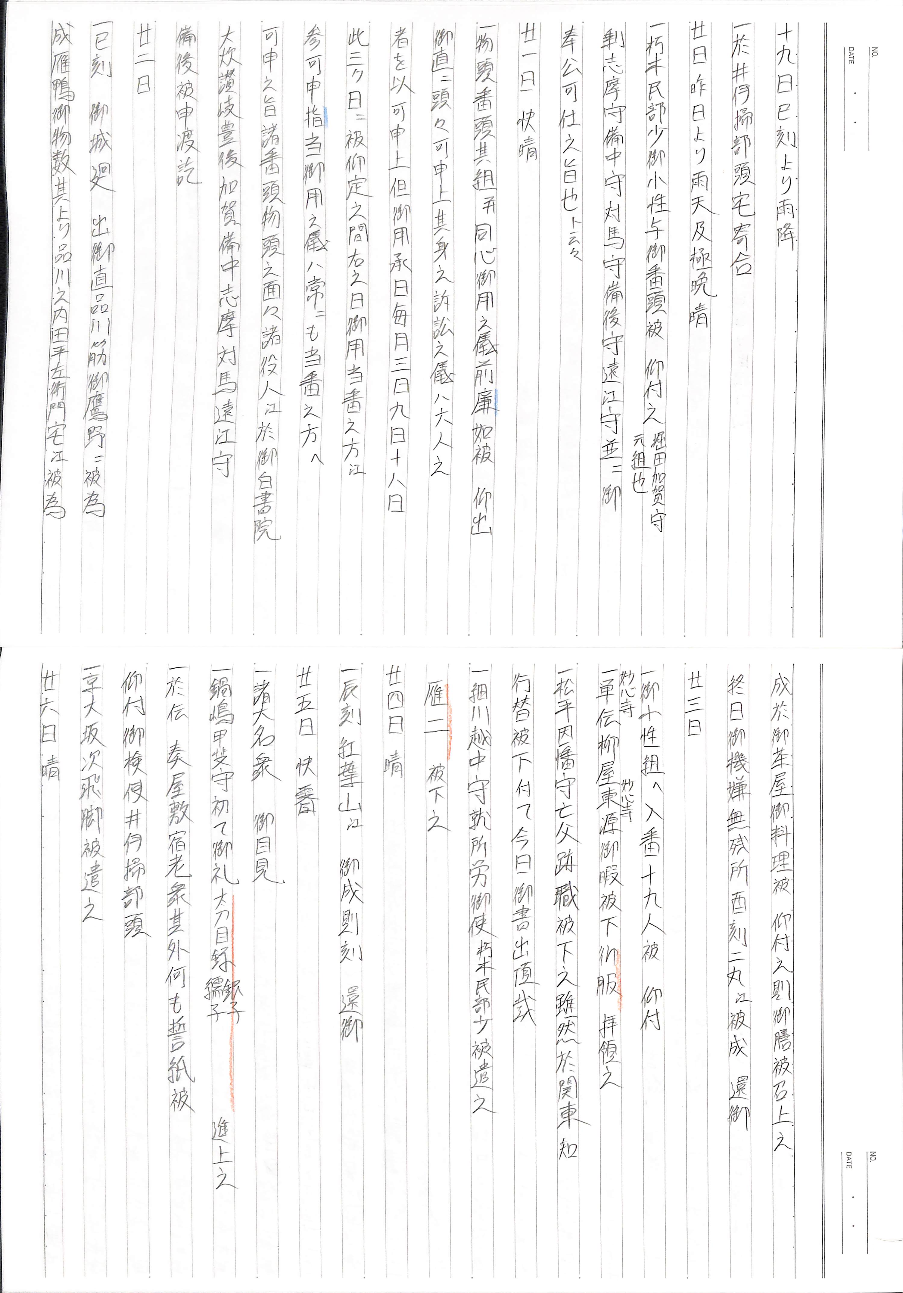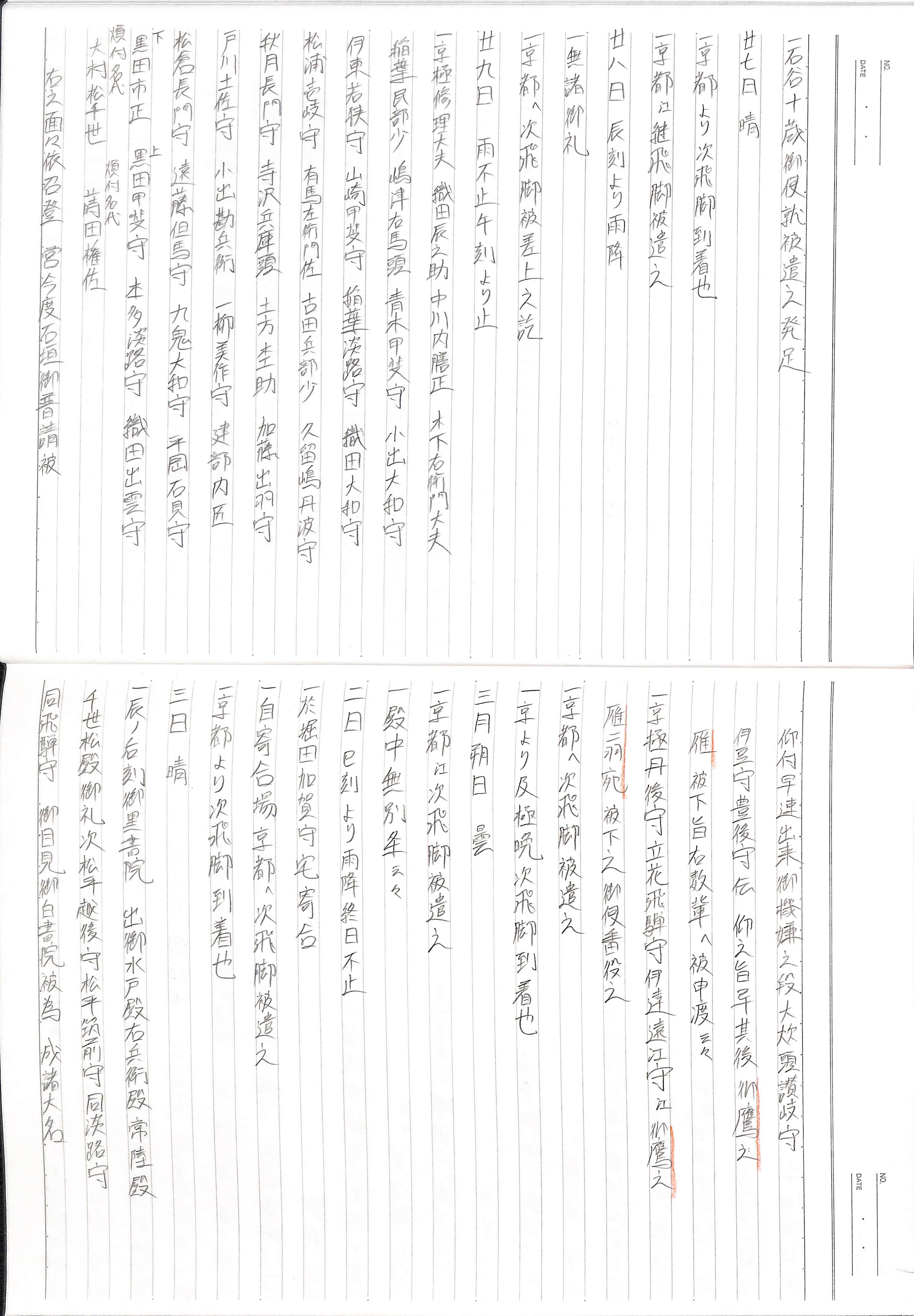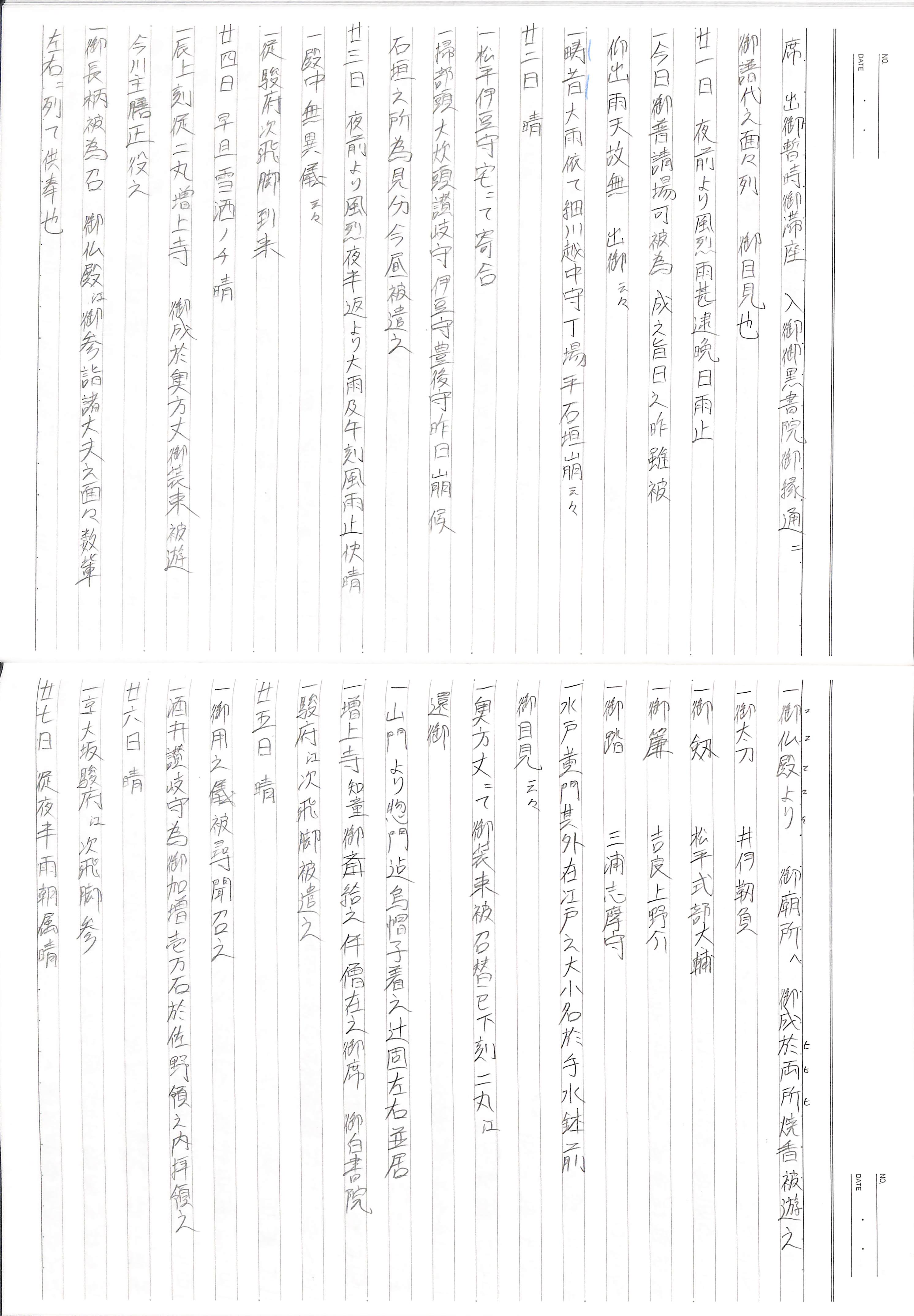 藤井讓治監修『江戸幕府日記姫路酒井家本』第4、5巻(ゆまに書房、2003年)より作成。原史料は姫路市立城郭研究室所蔵。