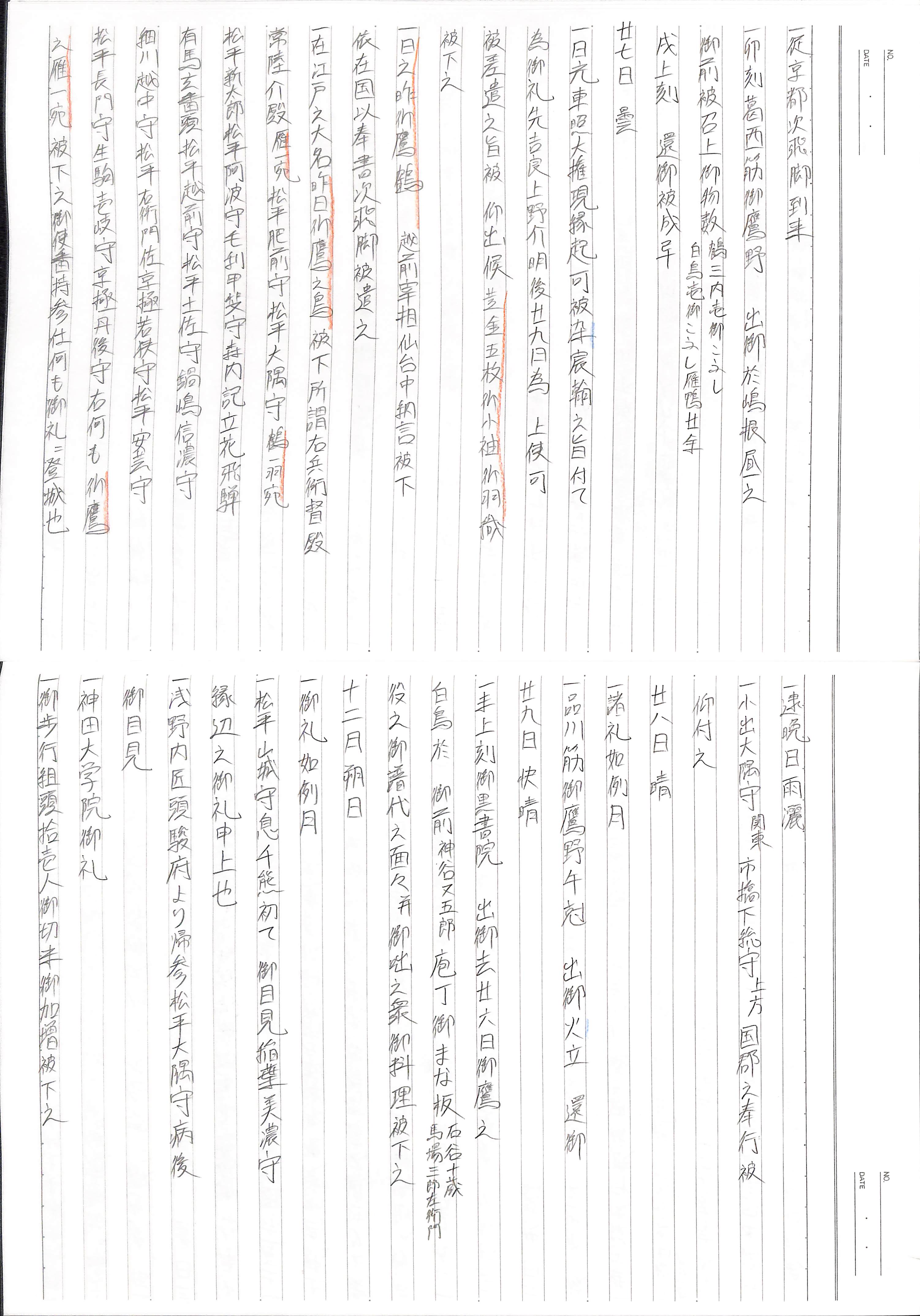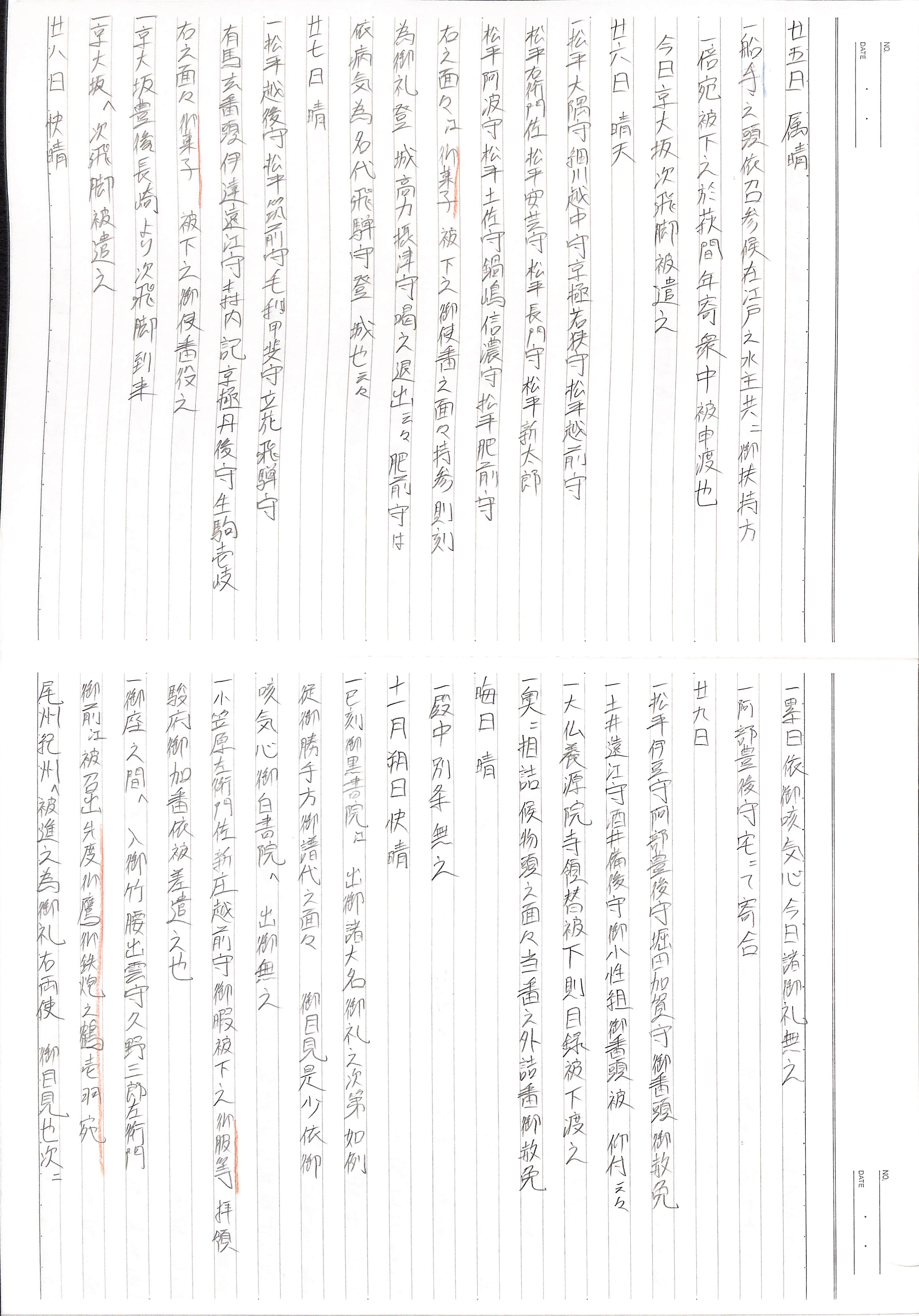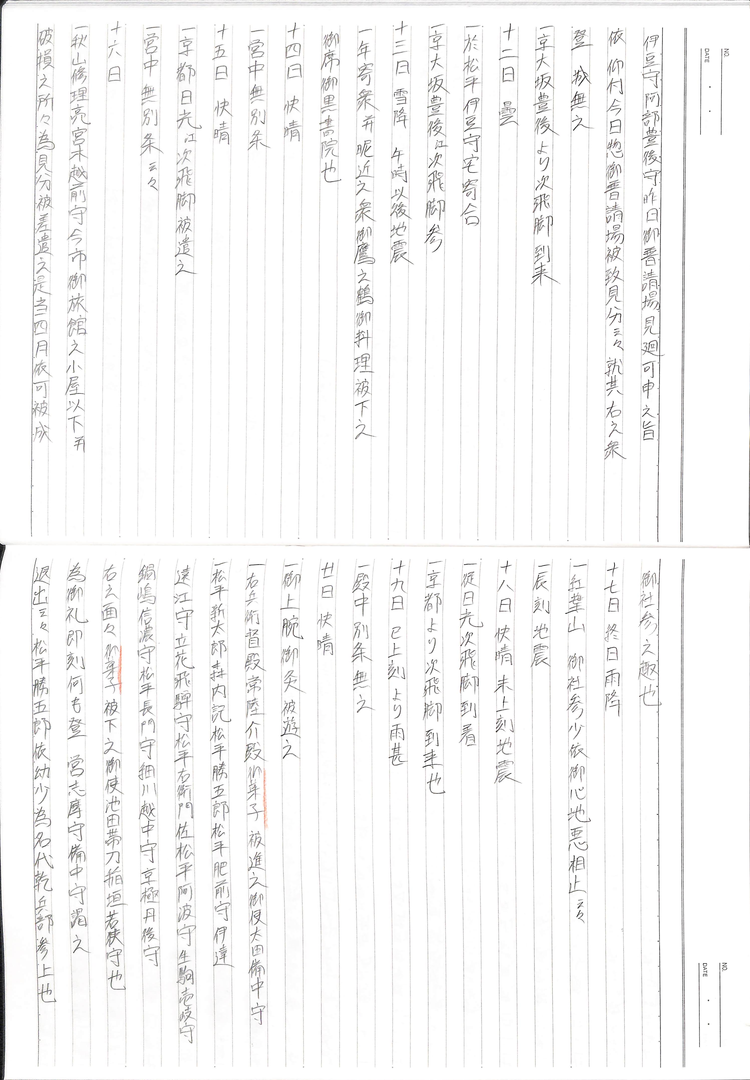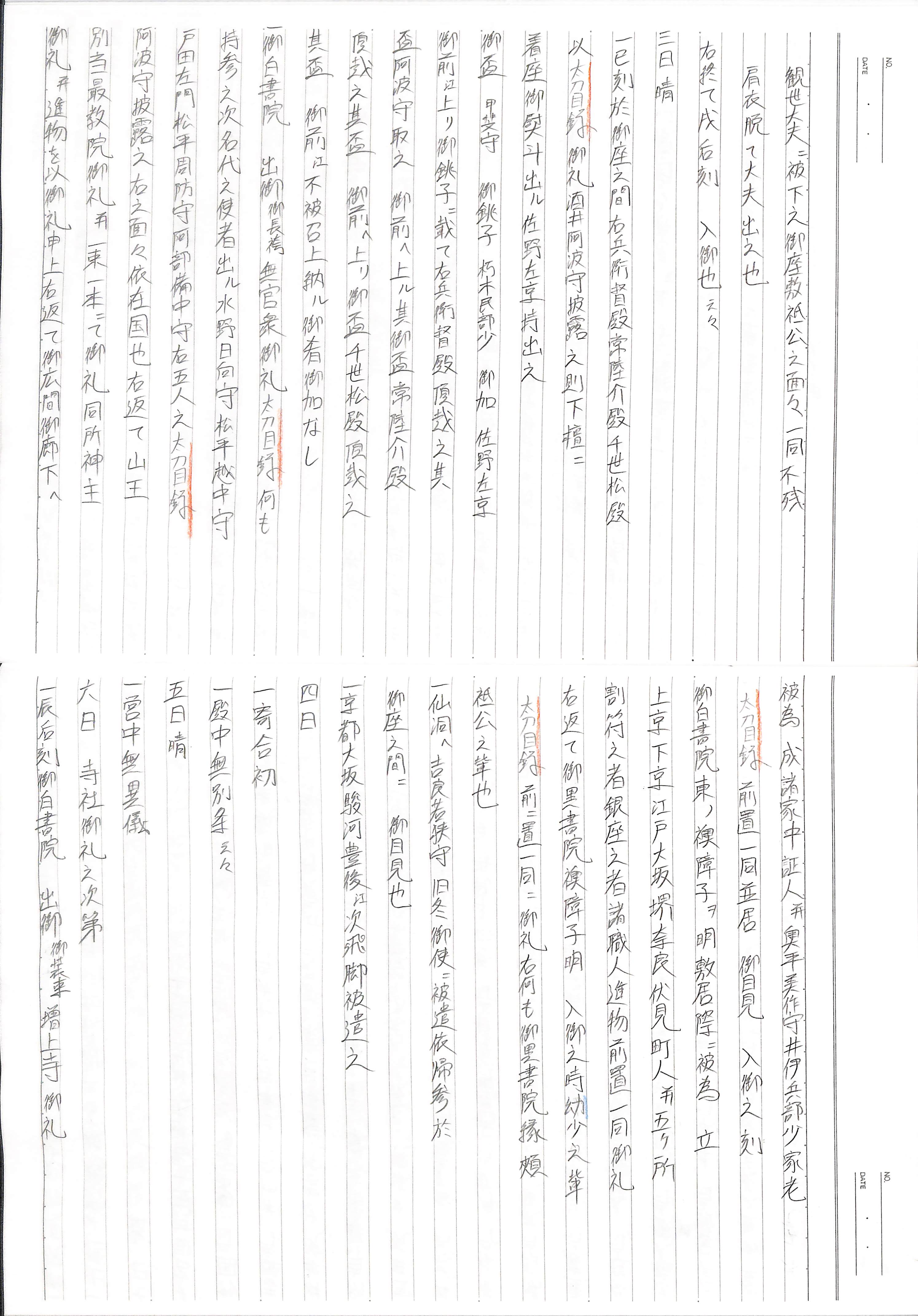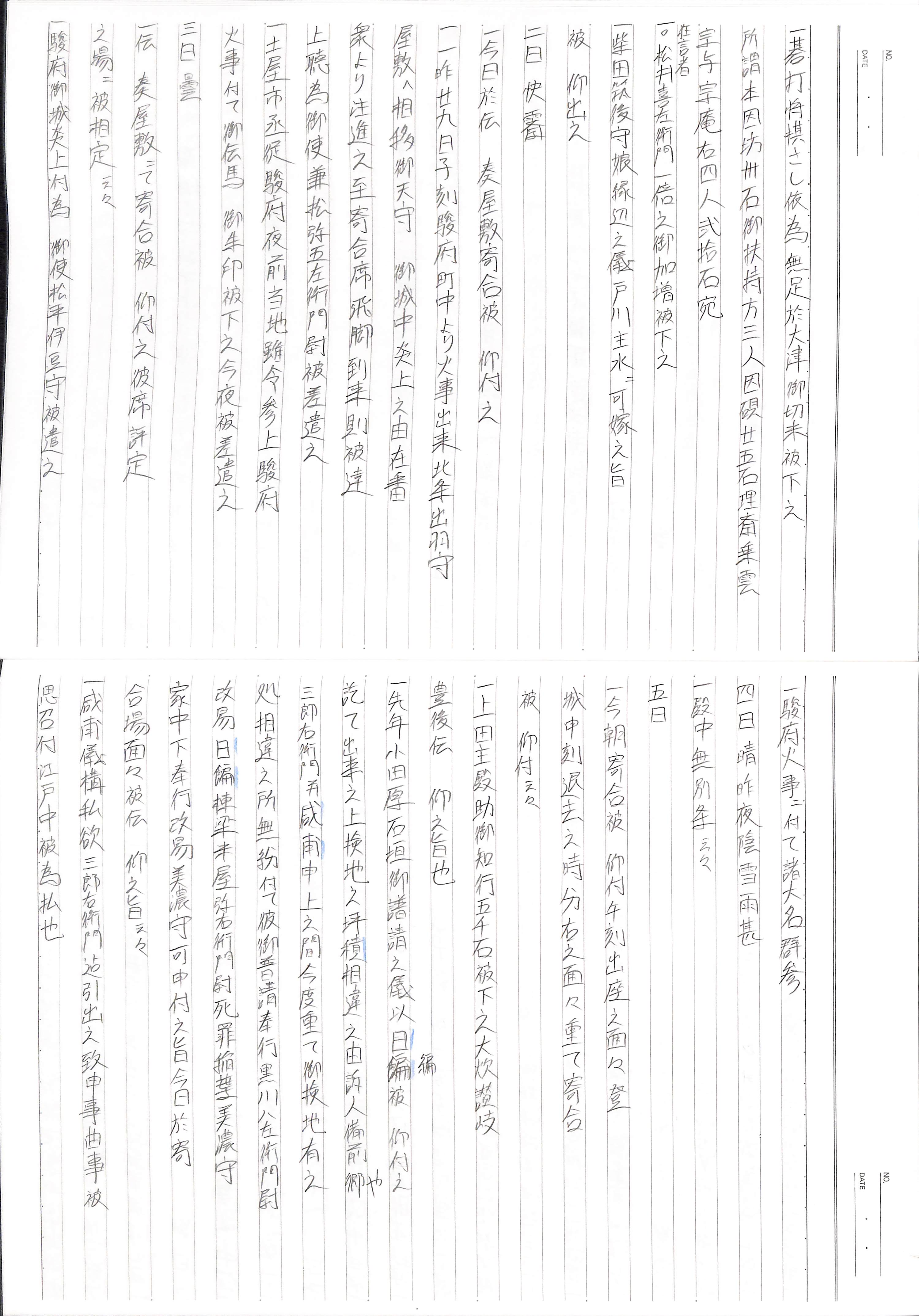 藤井讓治監修『江戸幕府日記姫路酒井家本』第4、5巻(ゆまに書房、2003年)より作成。原史料は姫路市立城郭研究室所蔵。