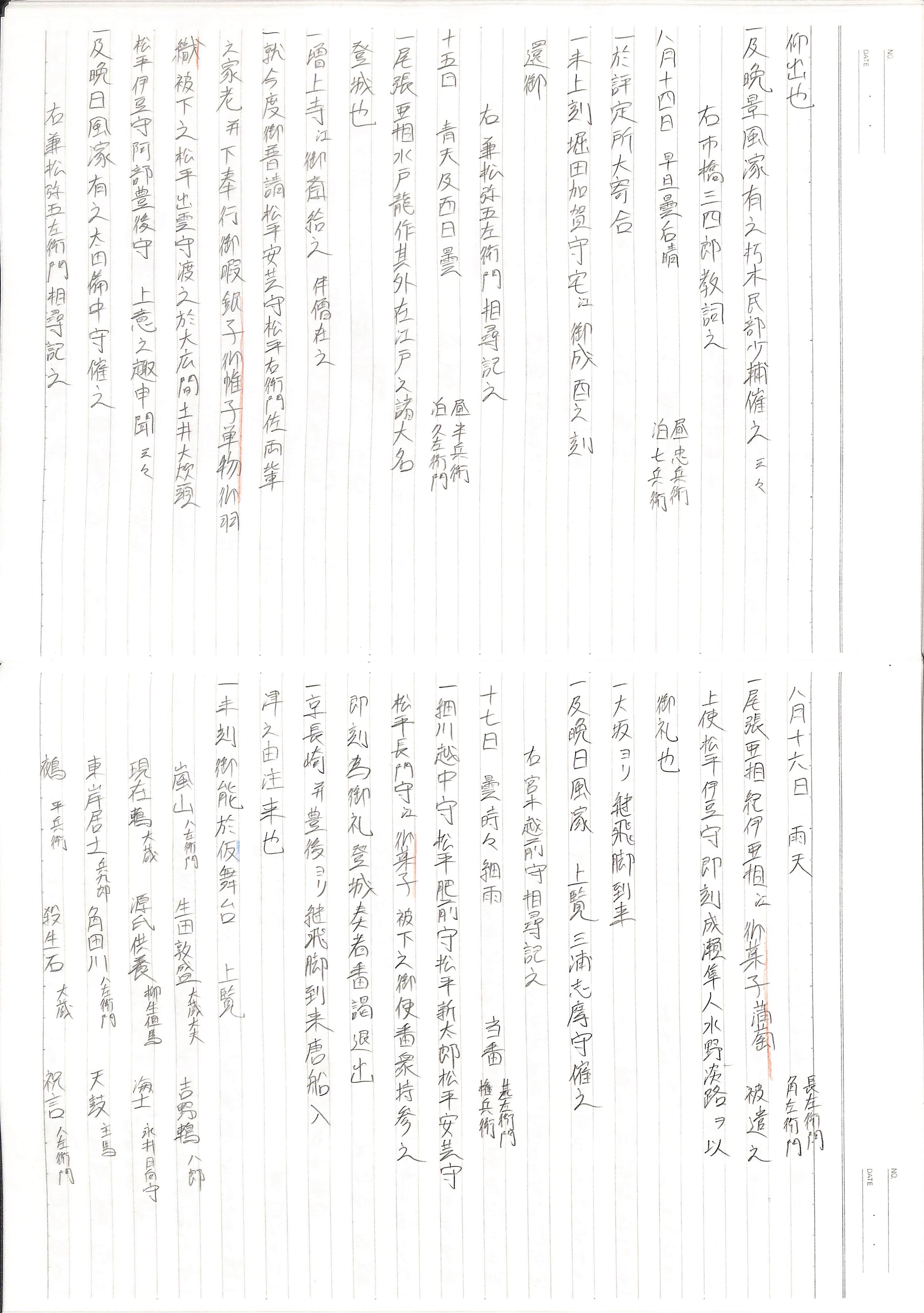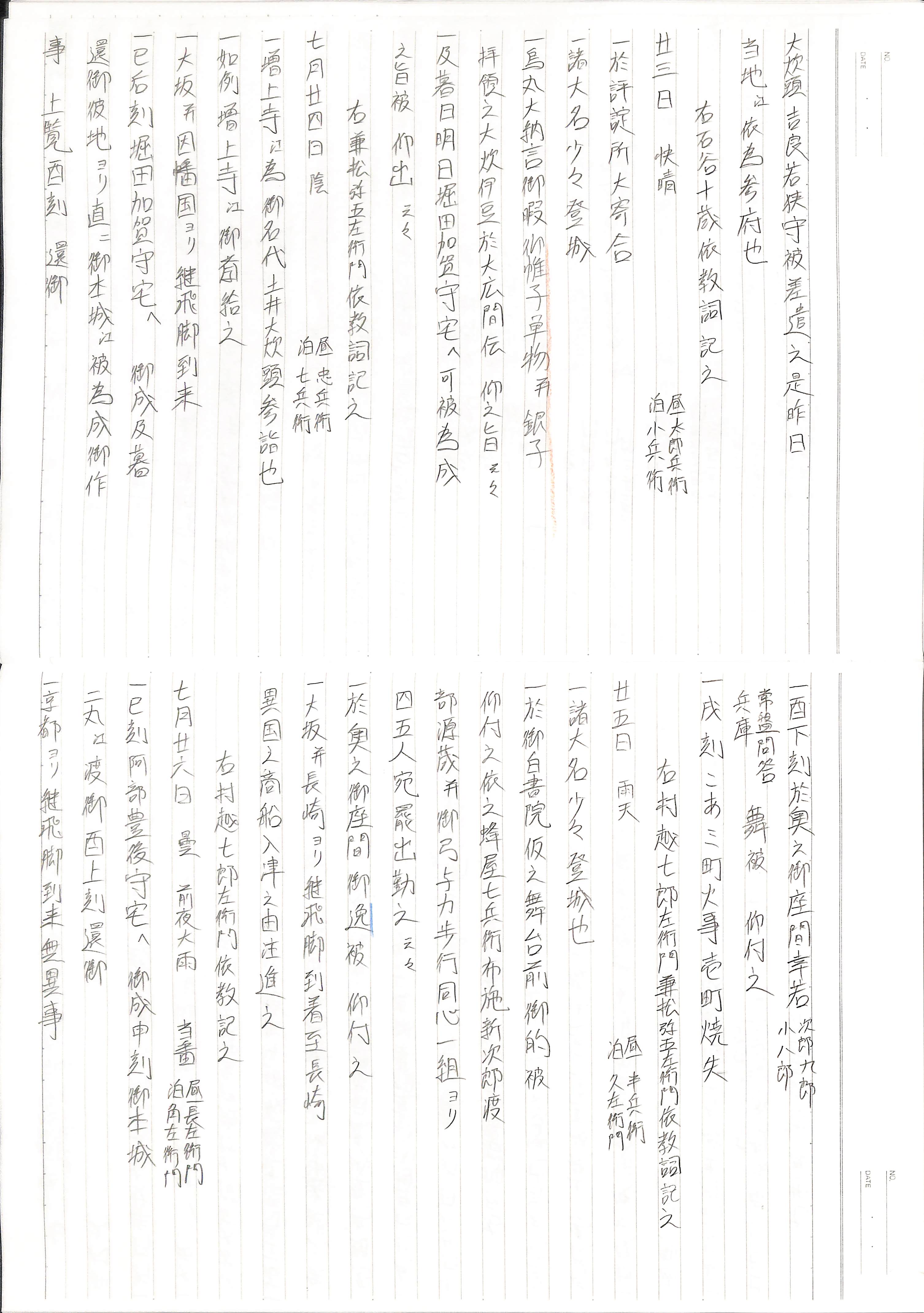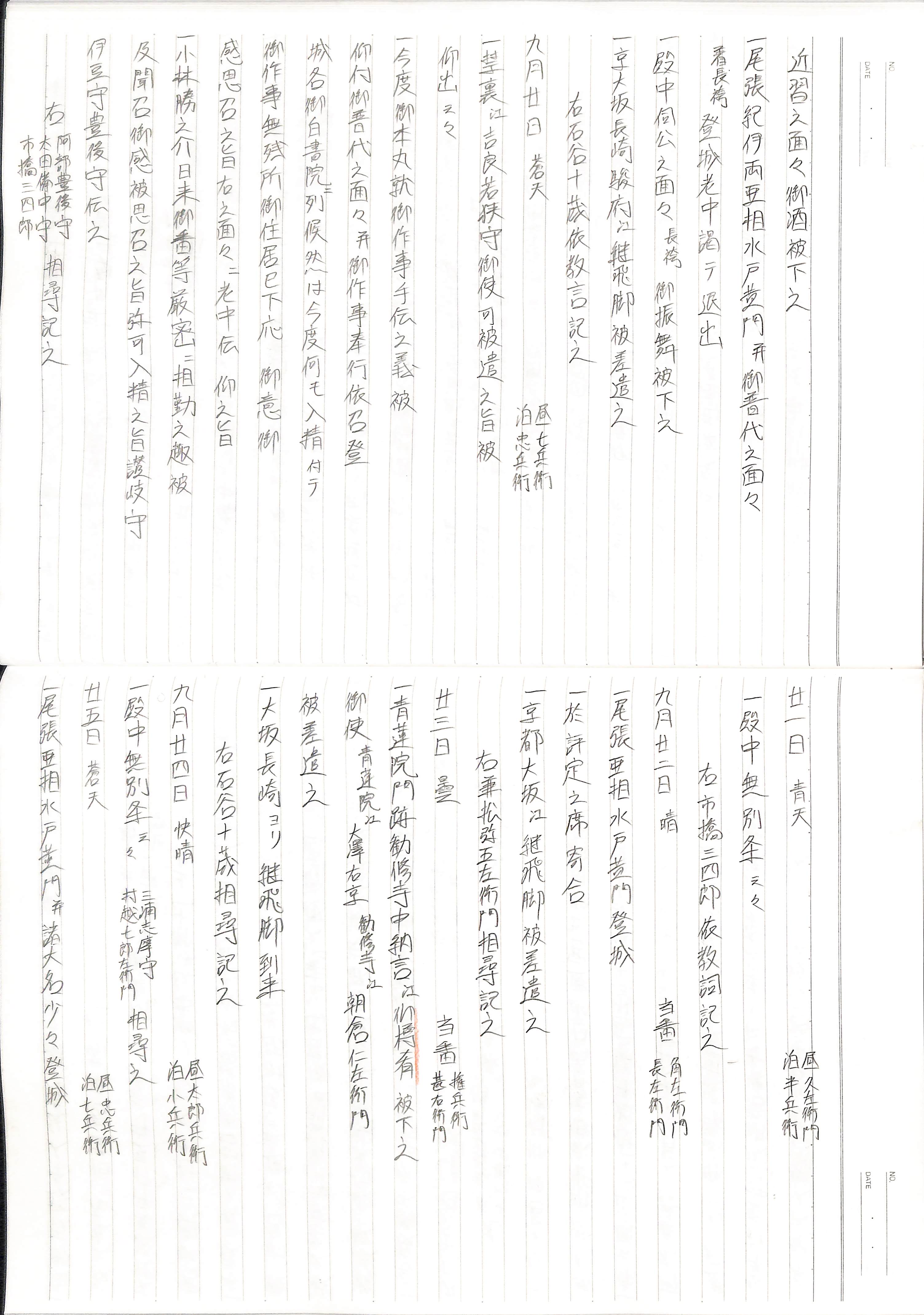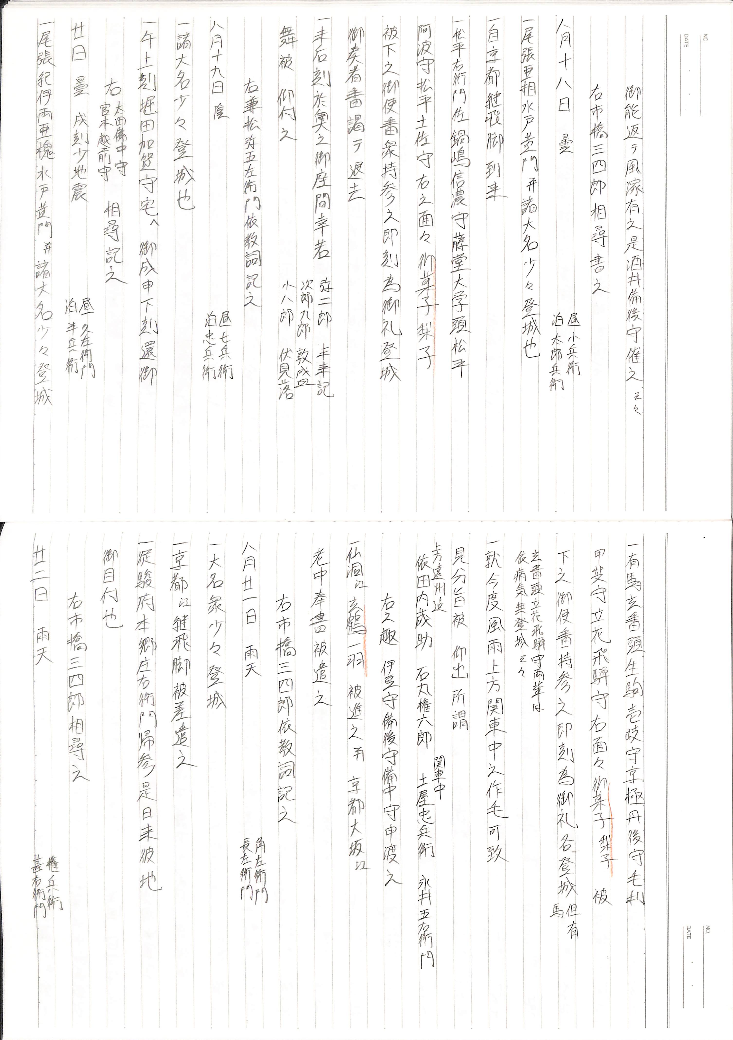 藤井讓治監修『江戸幕府日記姫路酒井家本』第6巻(ゆまに書房、2003年)より作成。原史料は姫路市立城郭研究室所蔵。