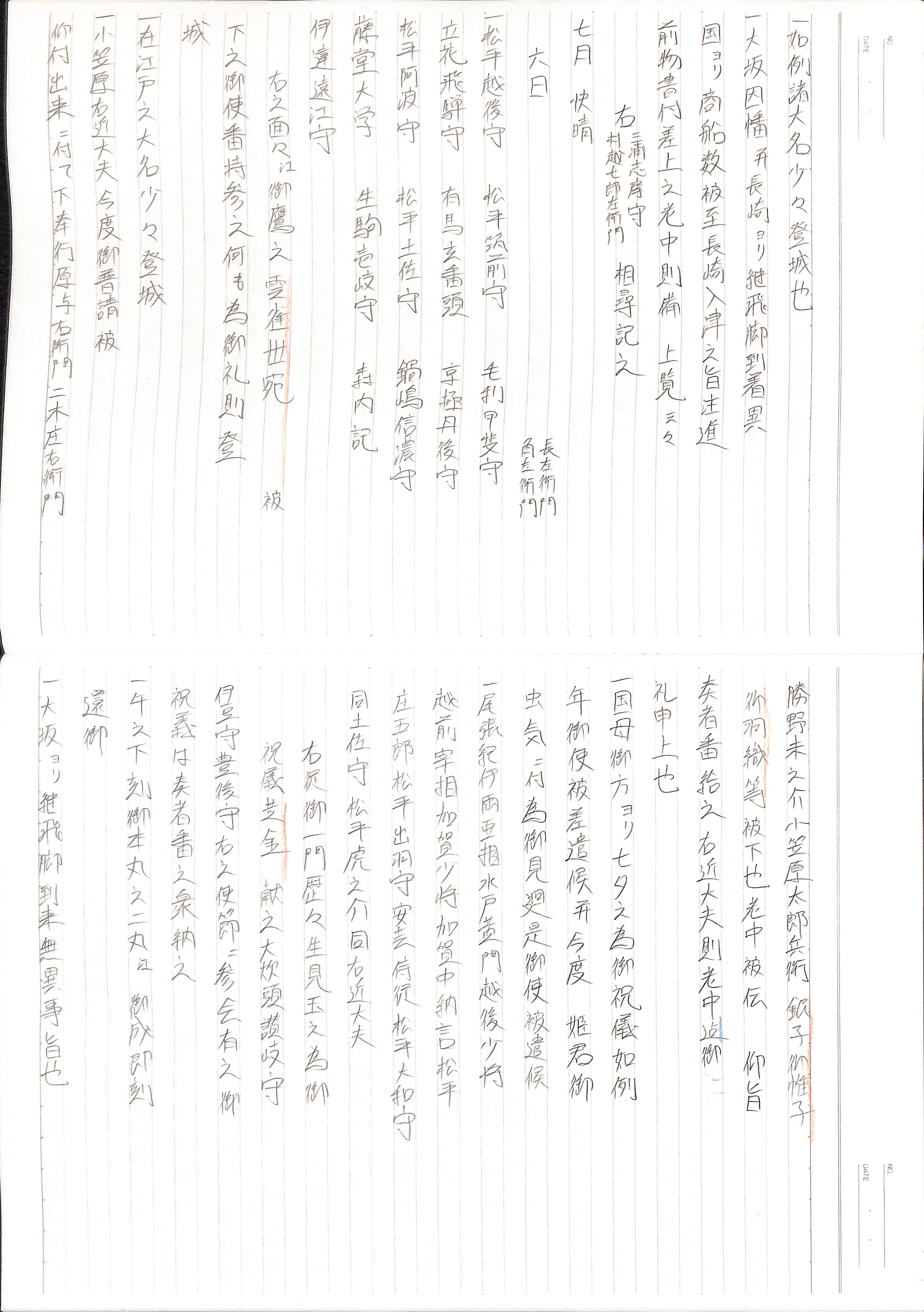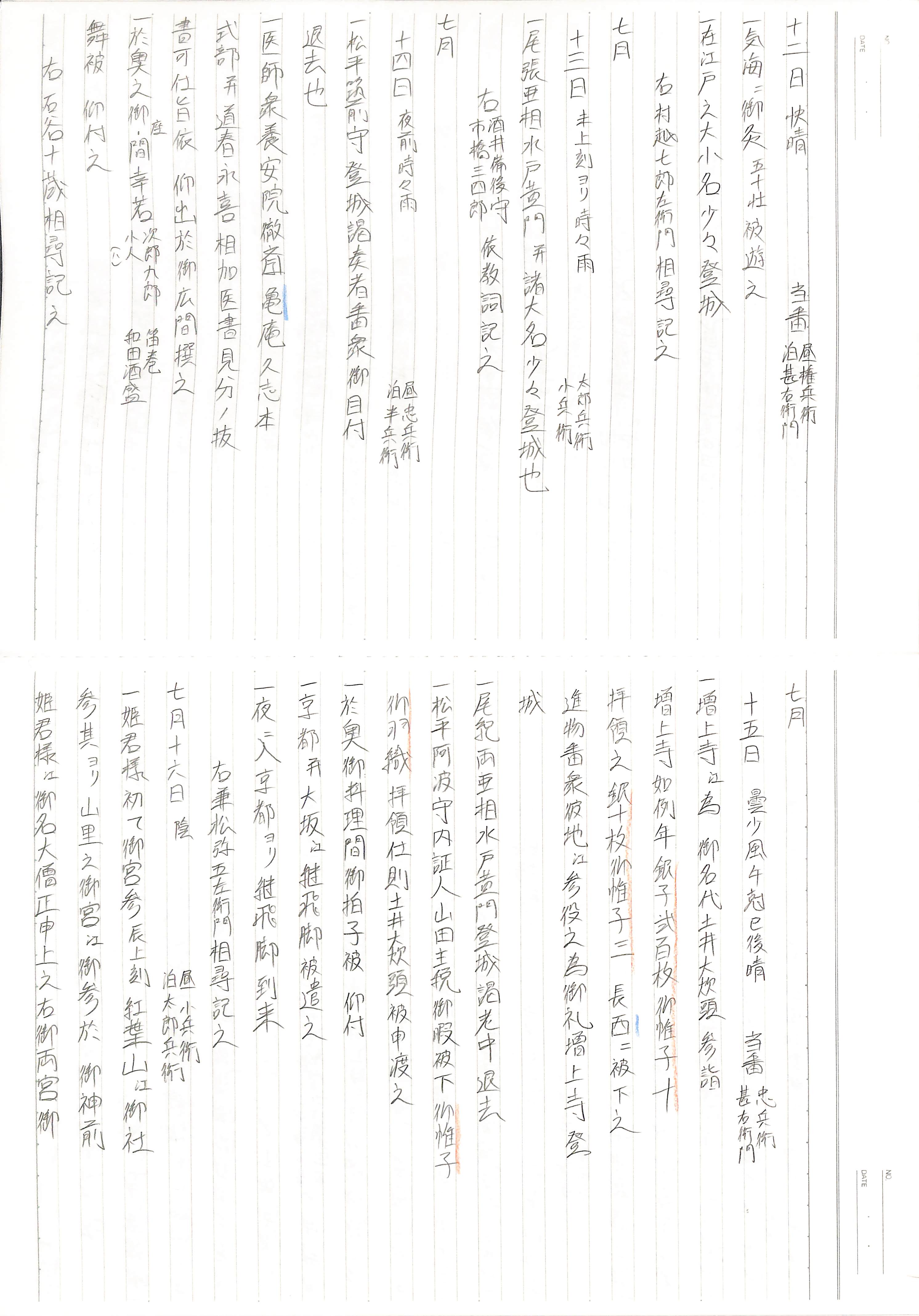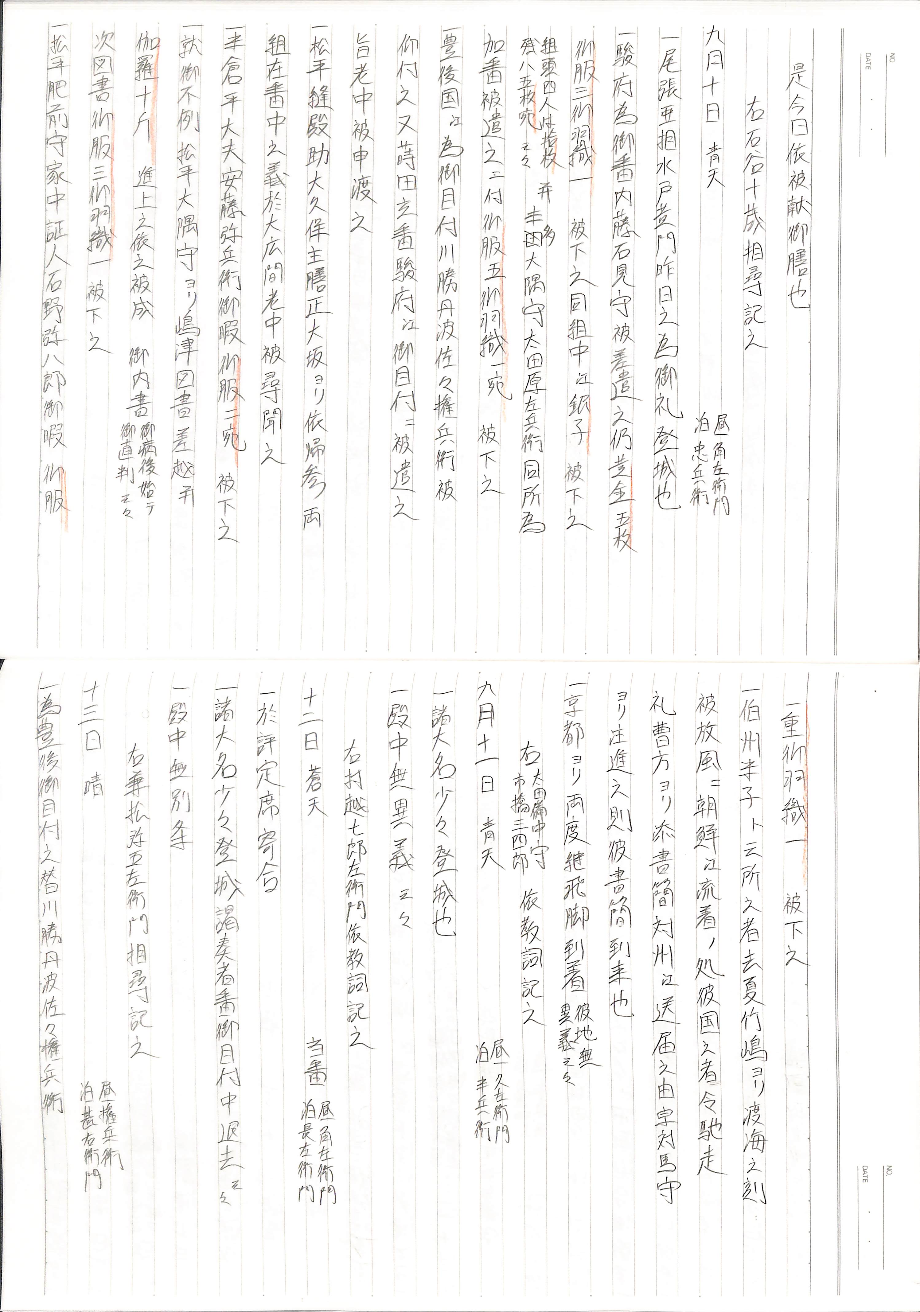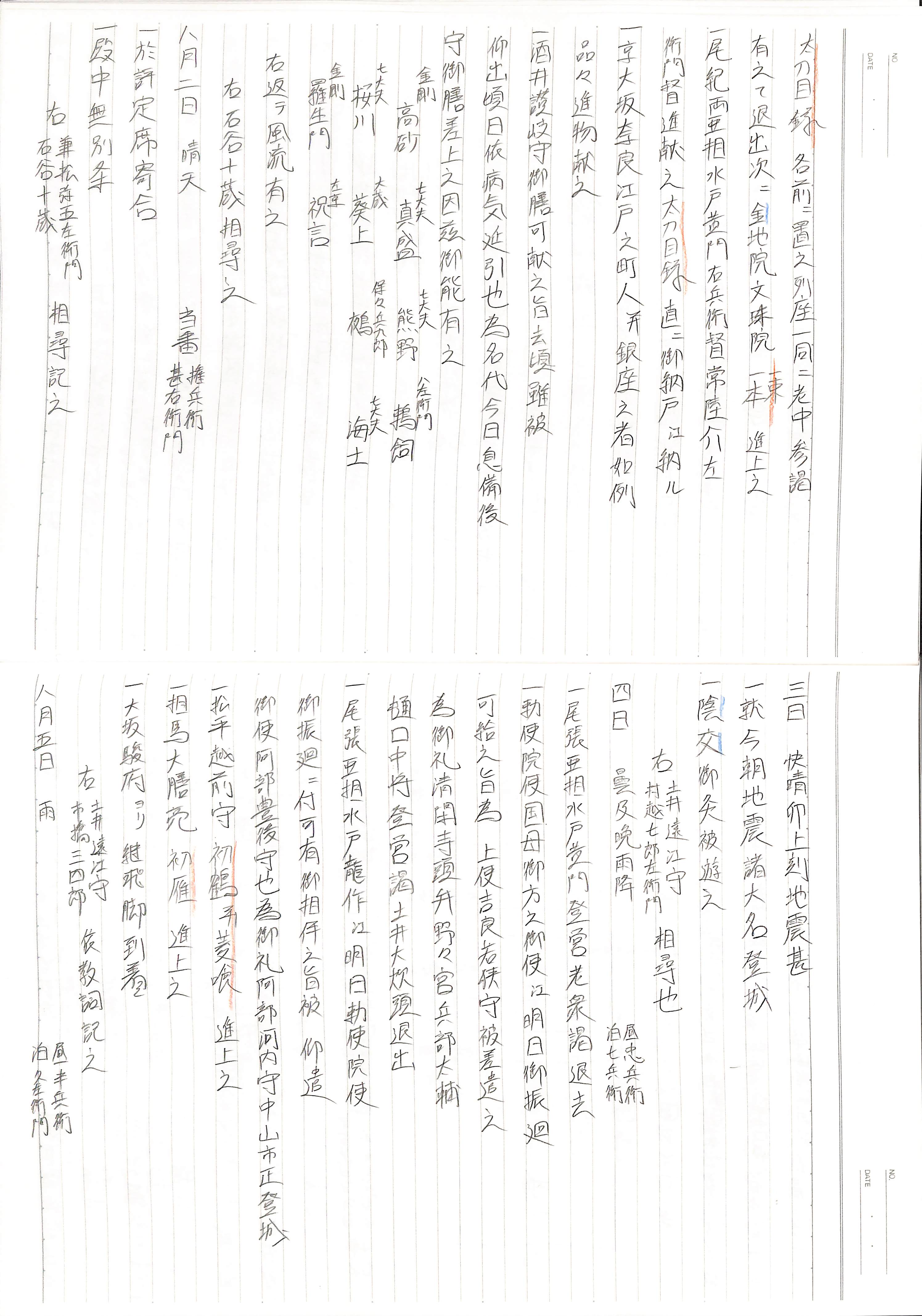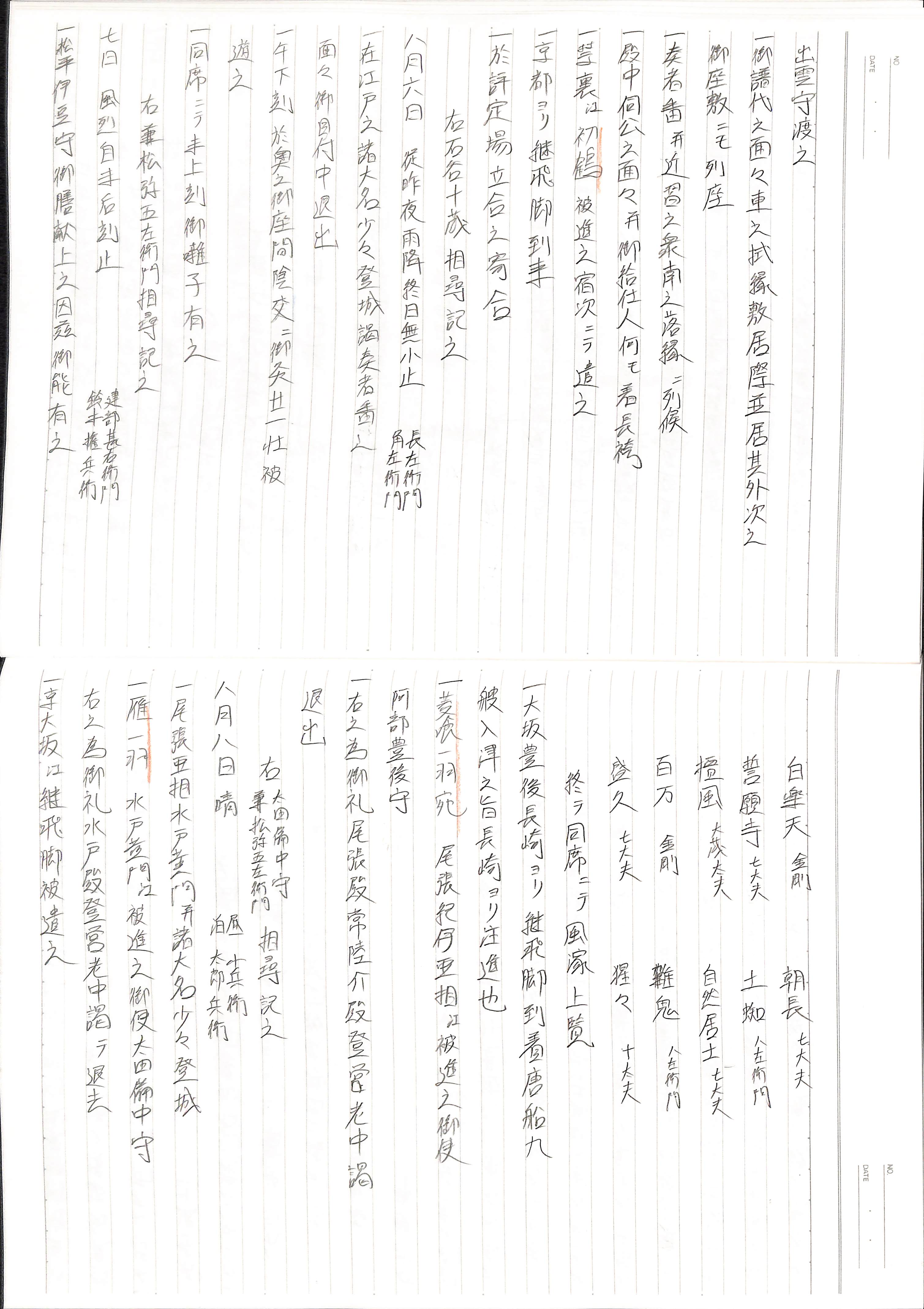 藤井讓治監修『江戸幕府日記姫路酒井家本』第6巻(ゆまに書房、2003年)より作成。原史料は姫路市立城郭研究室所蔵。