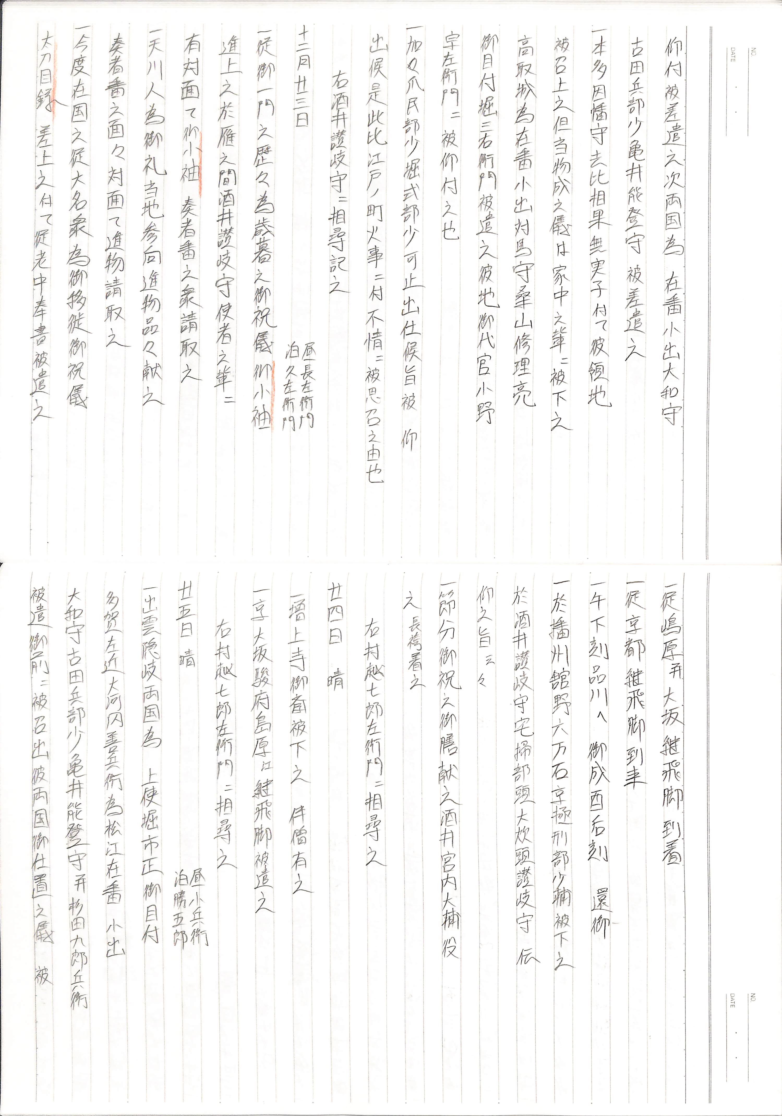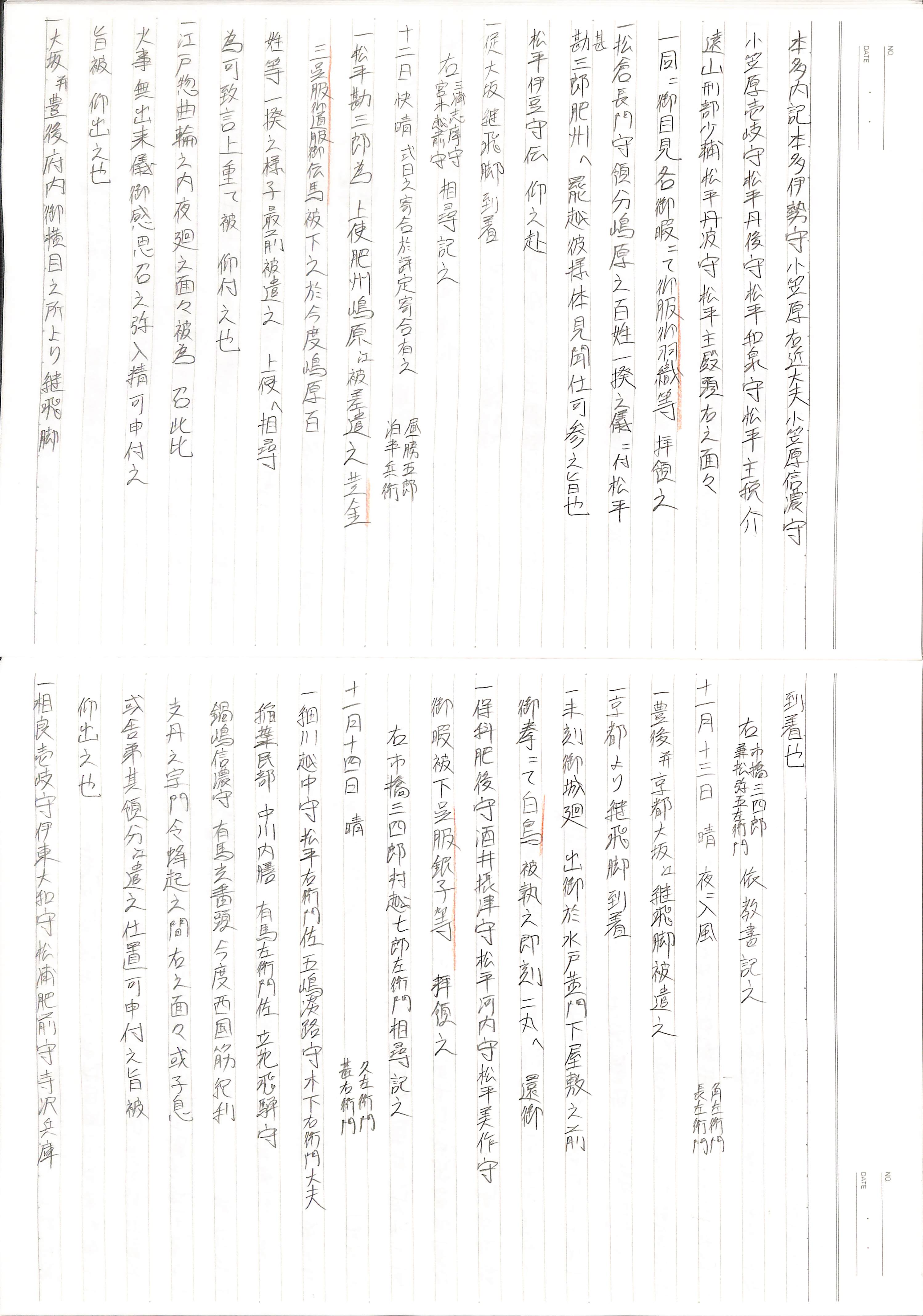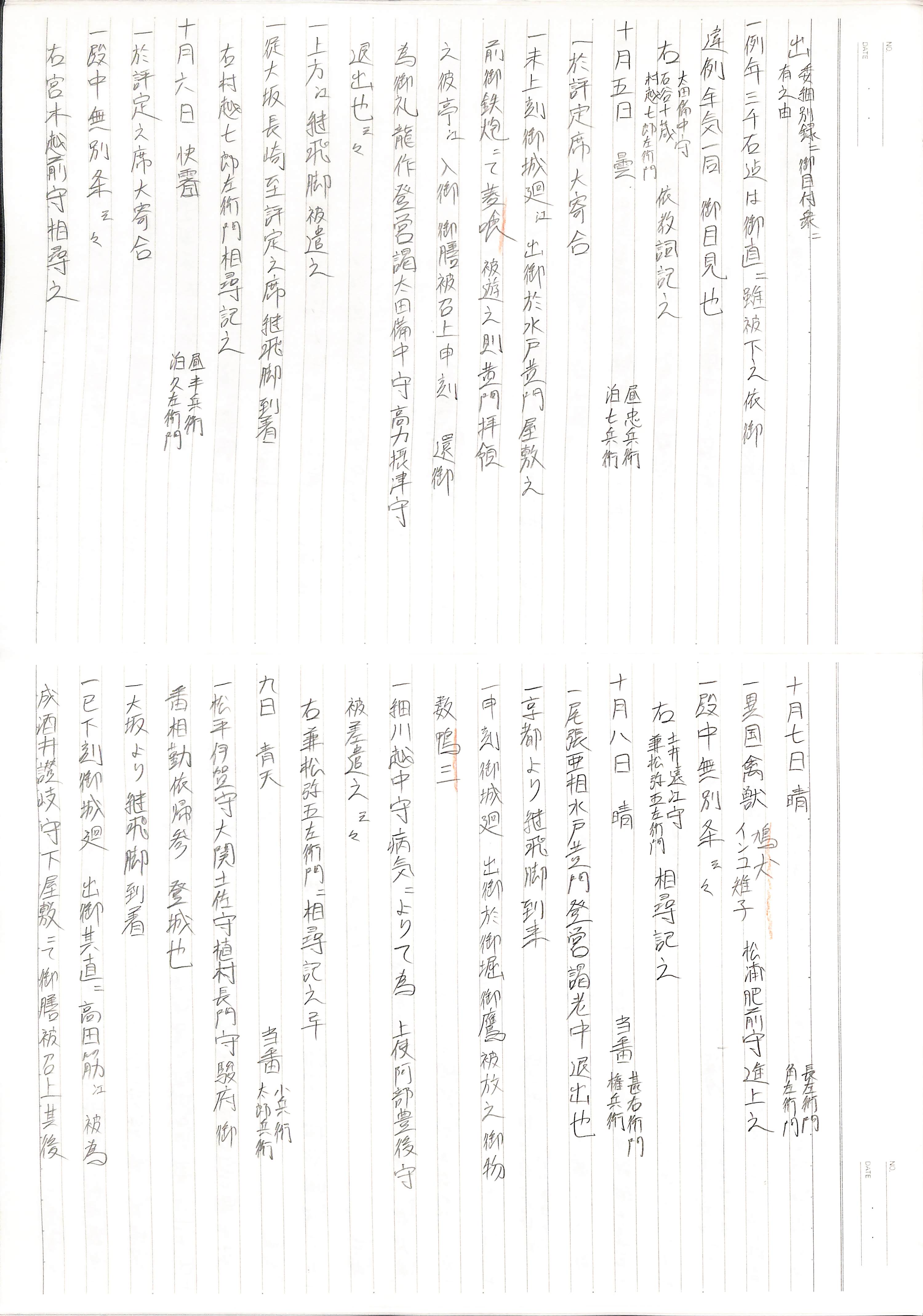 藤井讓治監修『江戸幕府日記姫路酒井家本』第6、7巻(ゆまに書房、2003年)より作成。原史料は姫路市立城郭研究室所蔵。