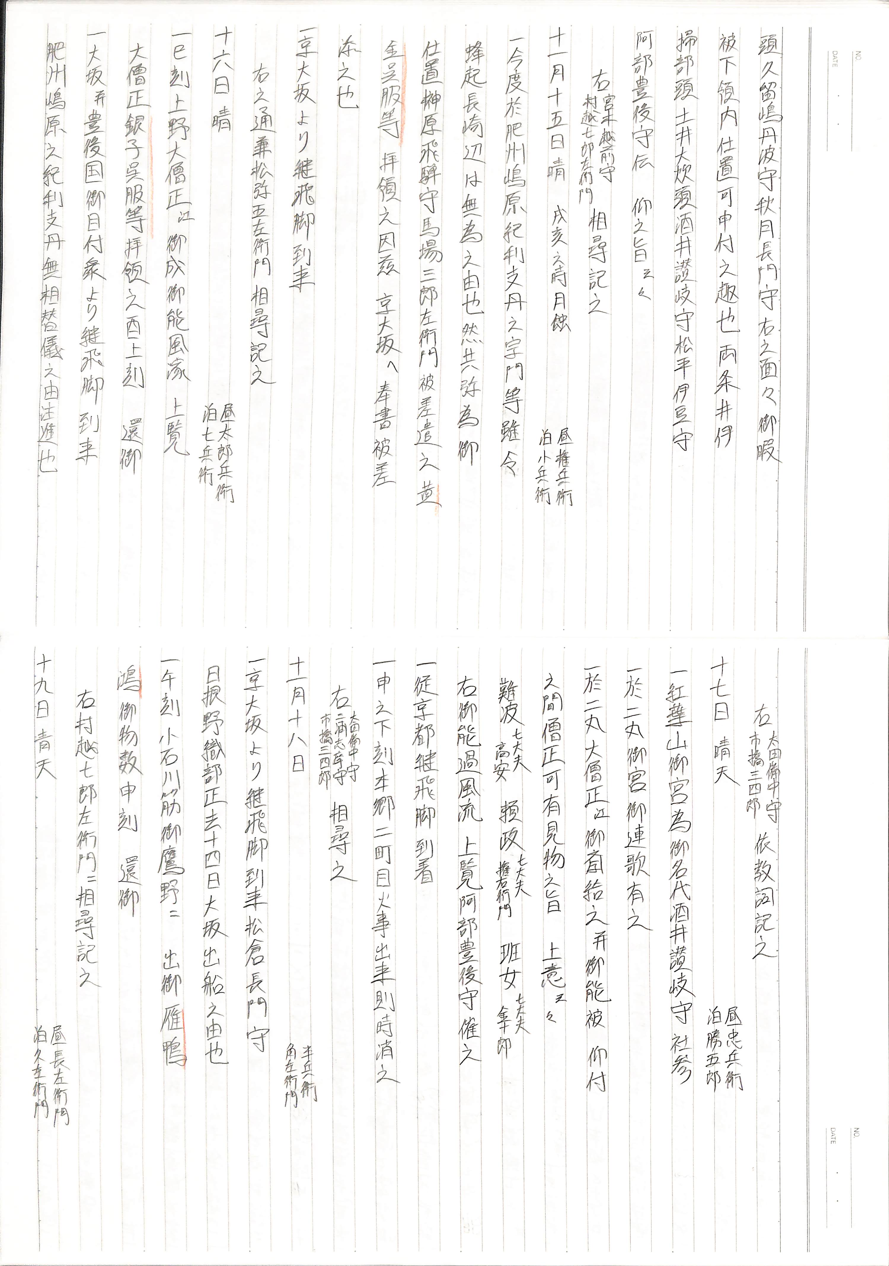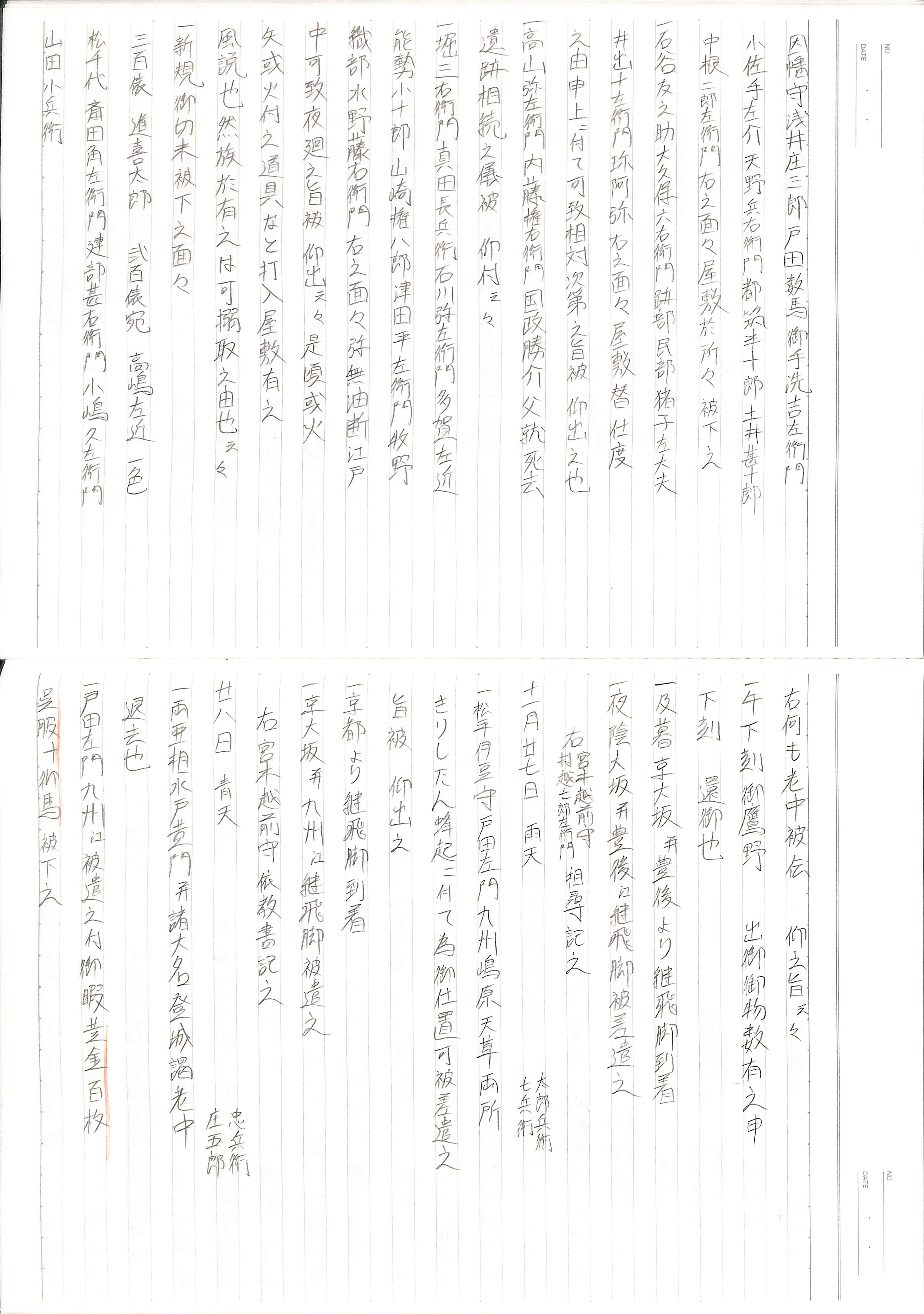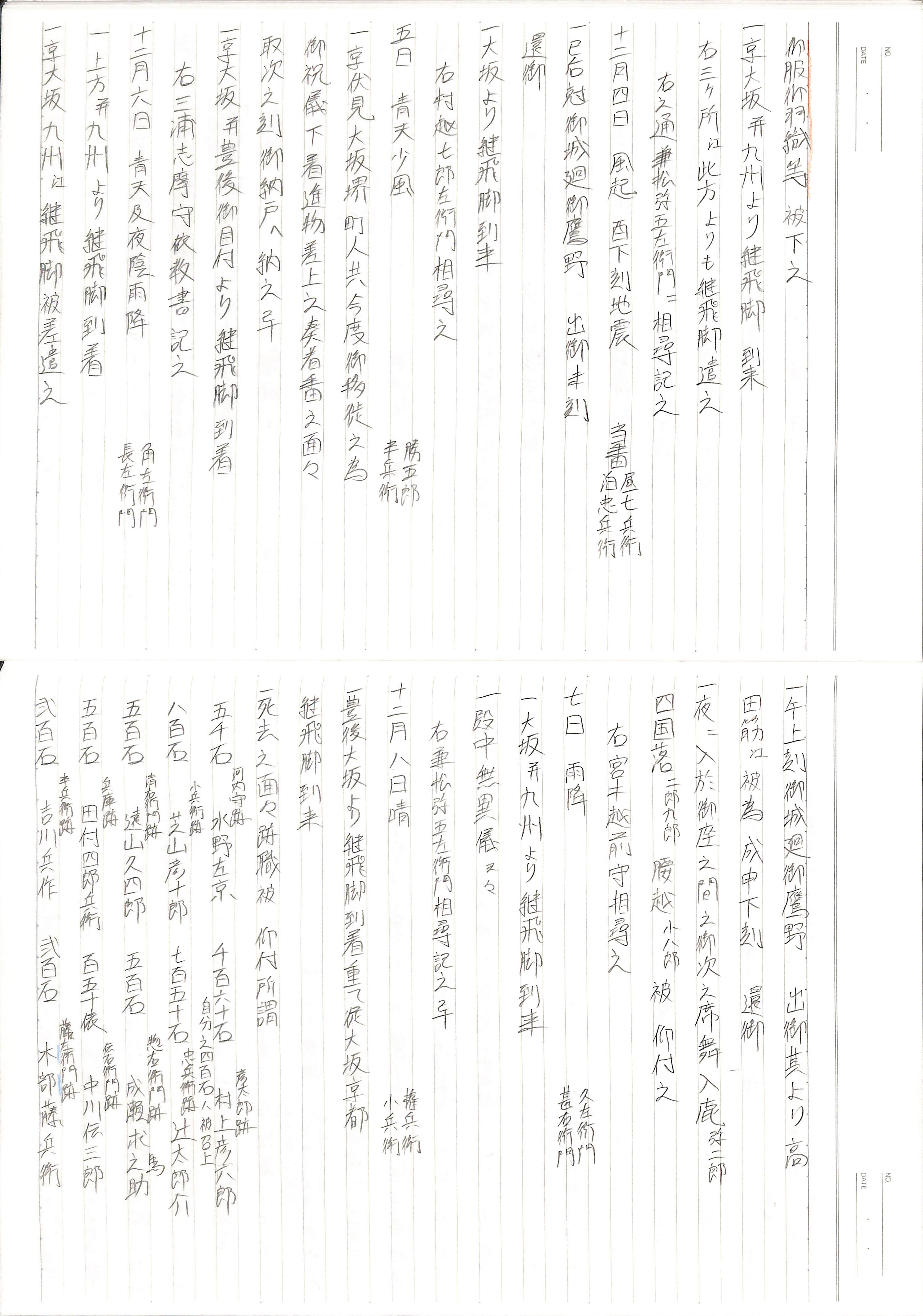 藤井讓治監修『江戸幕府日記姫路酒井家本』第6、7巻(ゆまに書房、2003年)より作成。原史料は姫路市立城郭研究室所蔵。