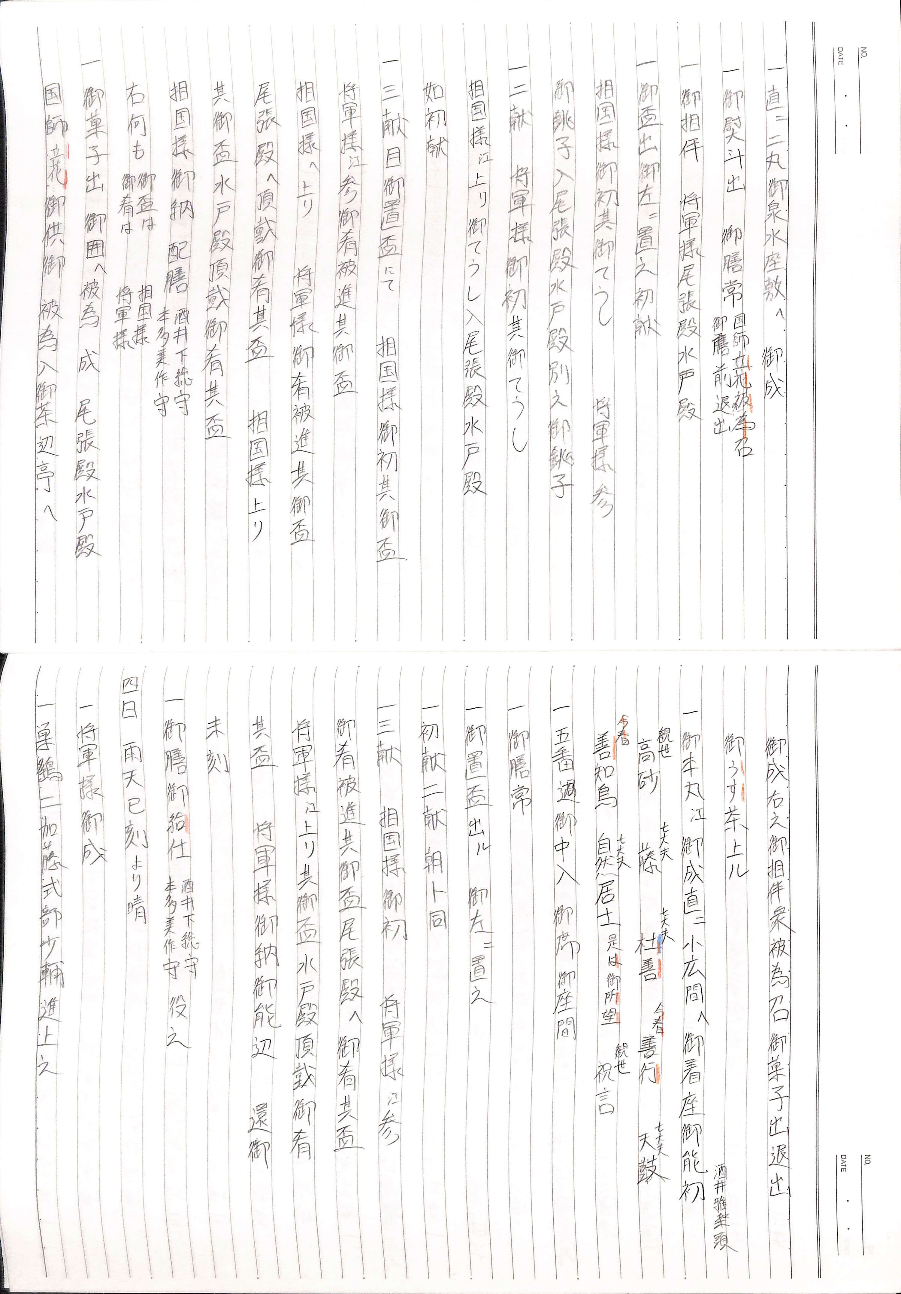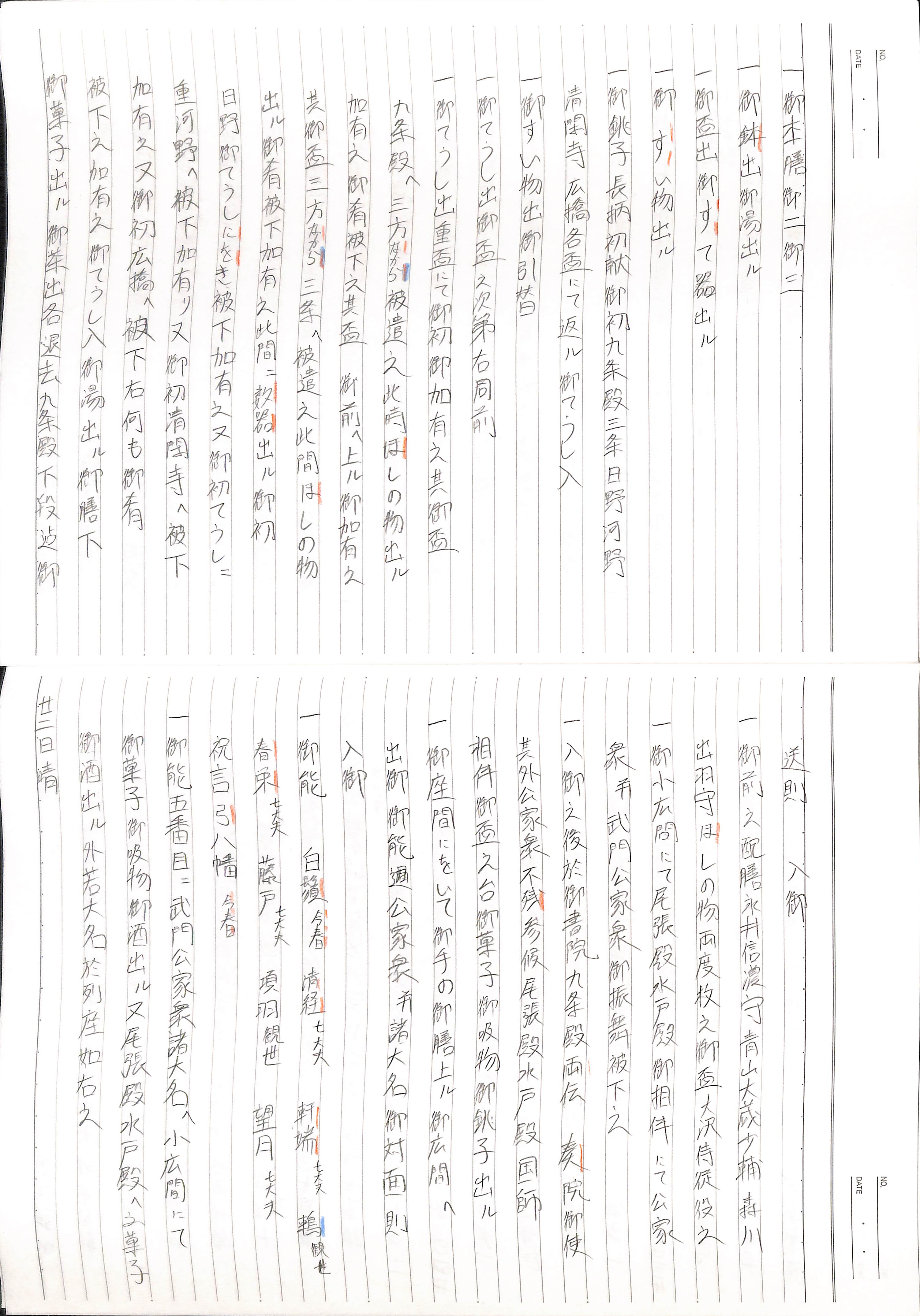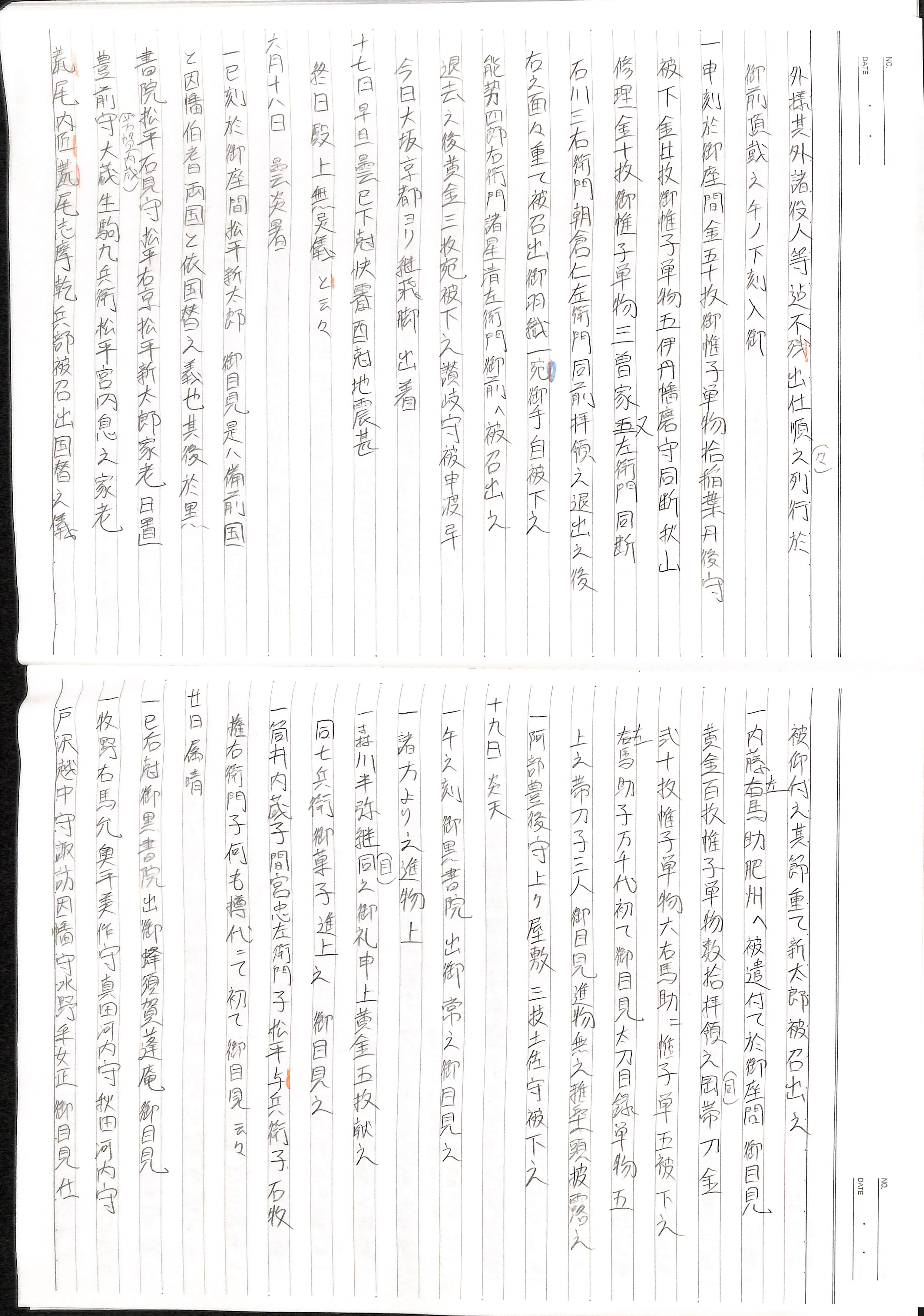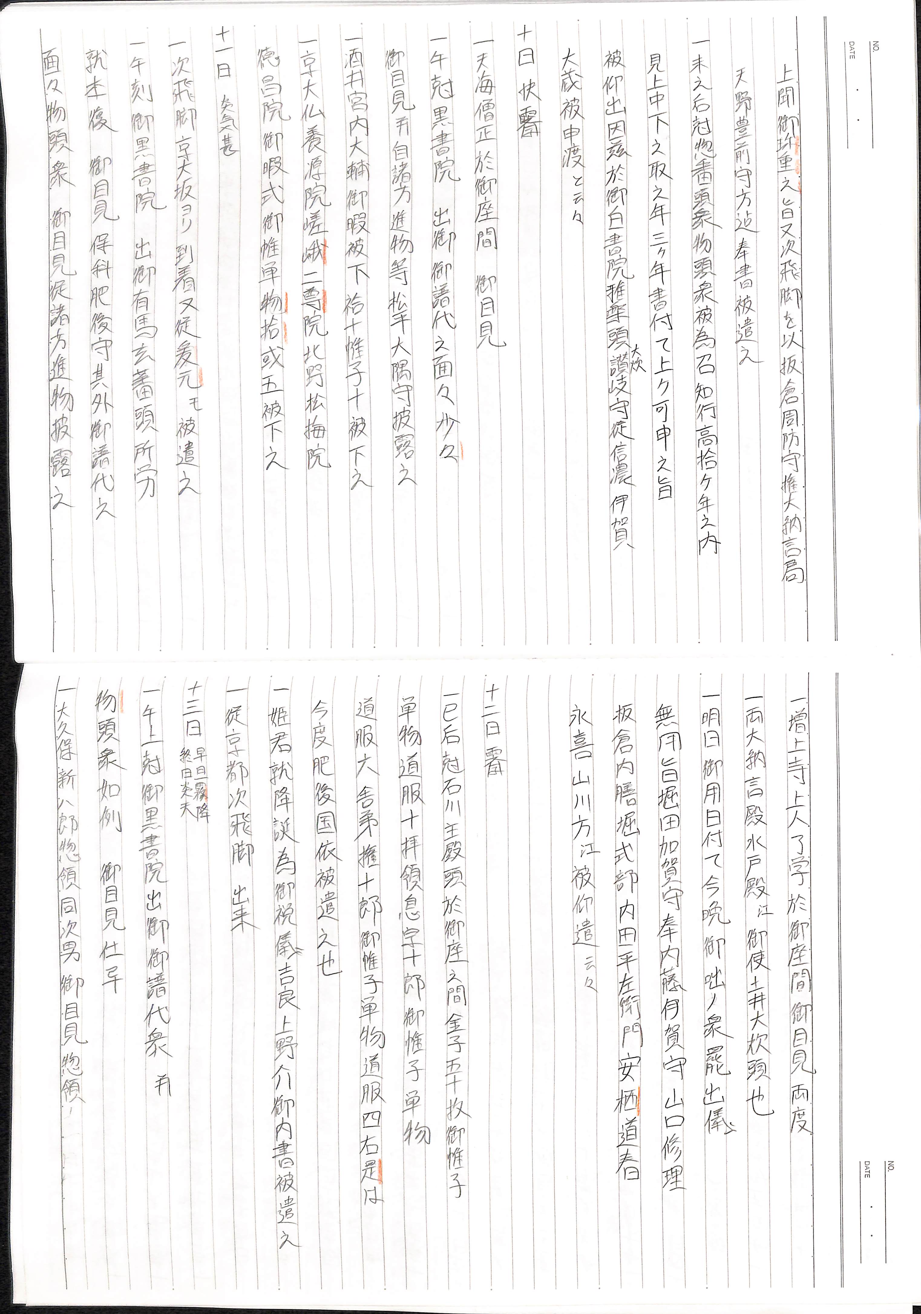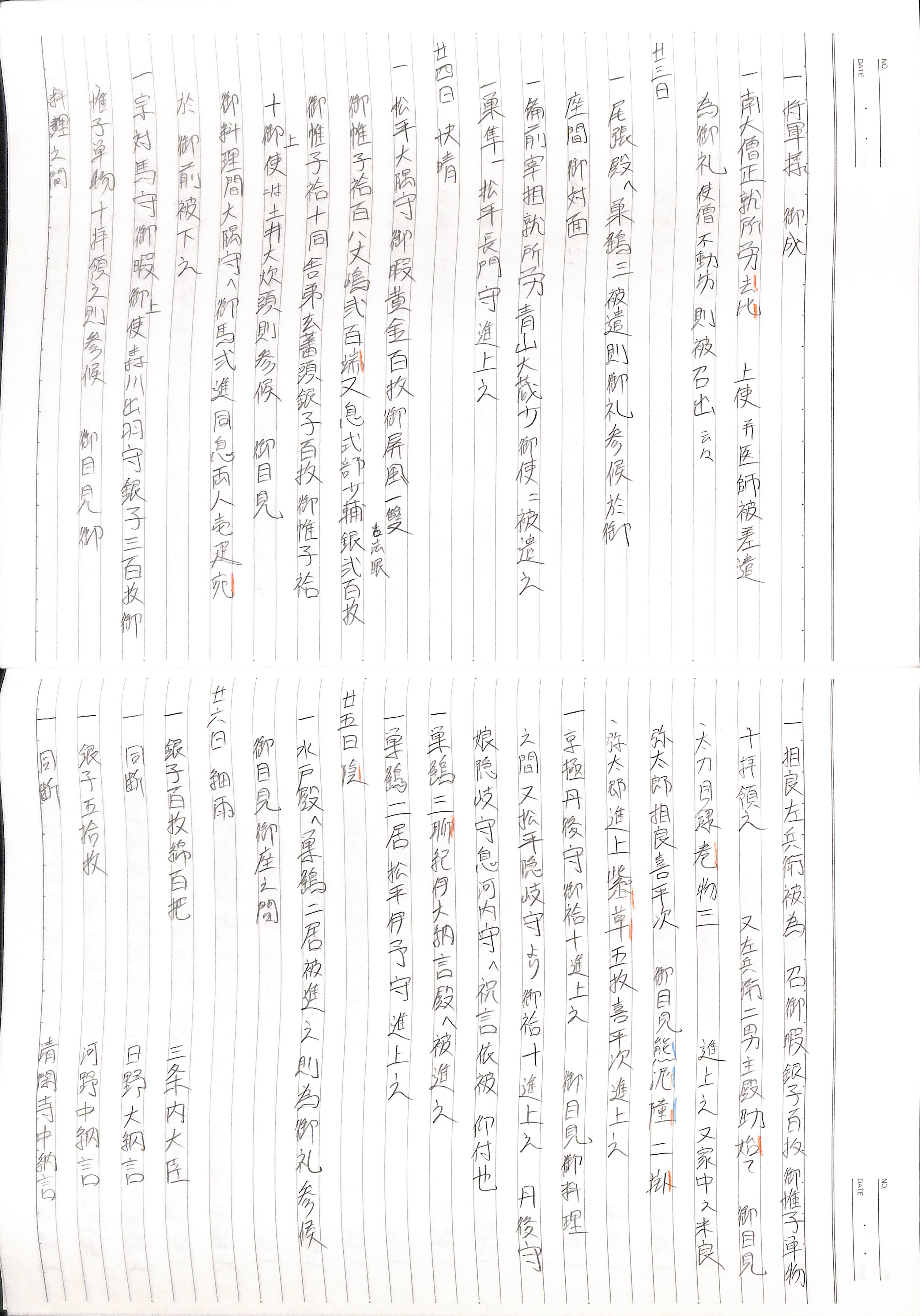 2 藤井讓治監修『江戸幕府日記姫路酒井家本』第1巻(ゆまに書房、2003年)より作成。原史料は姫路市立城郭研究室所蔵。 1へ 寛永8年5月5日~7月6日 寛永9年1月1日~1月25日 寛永9年6月1日~7月7日 3へ
