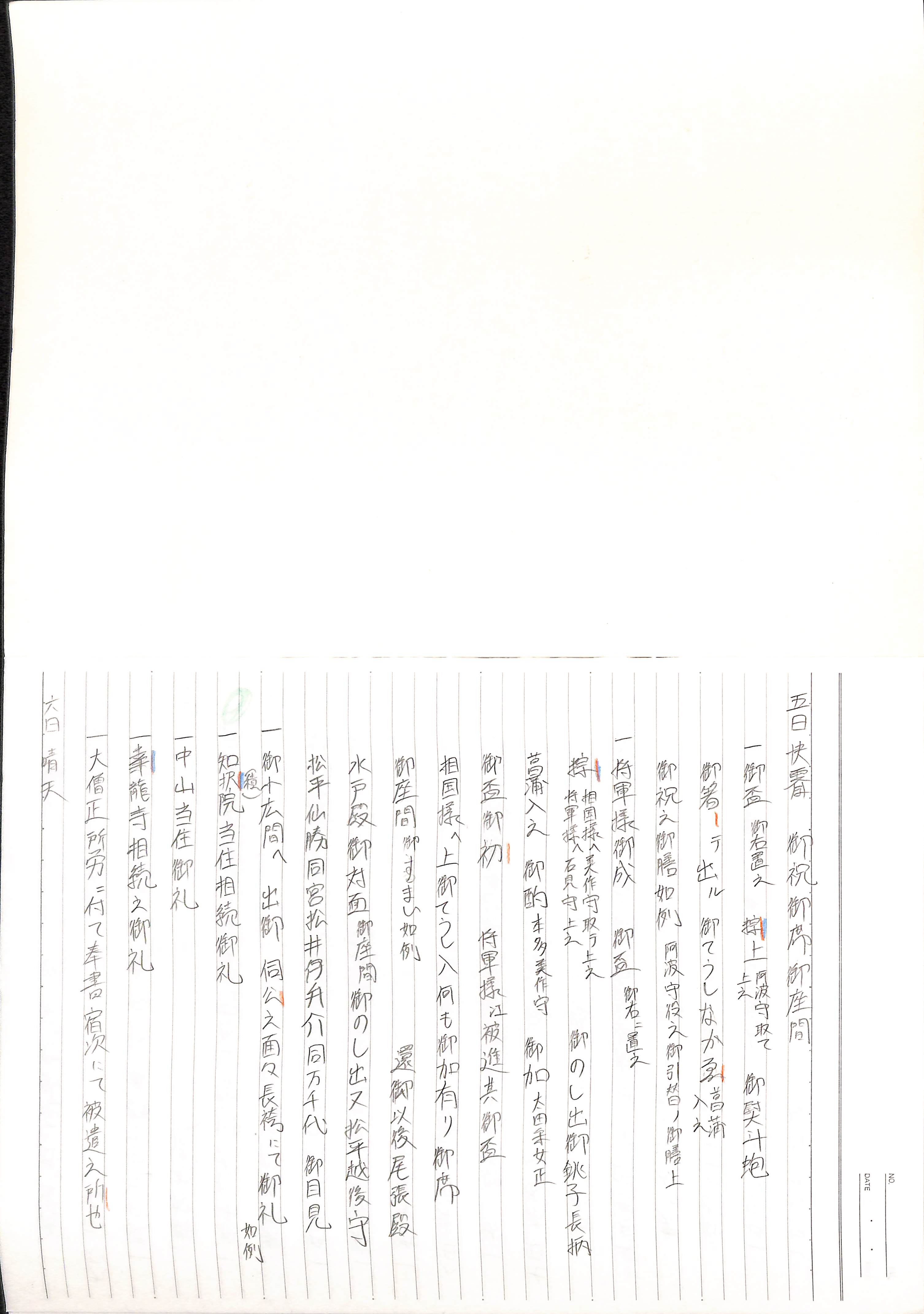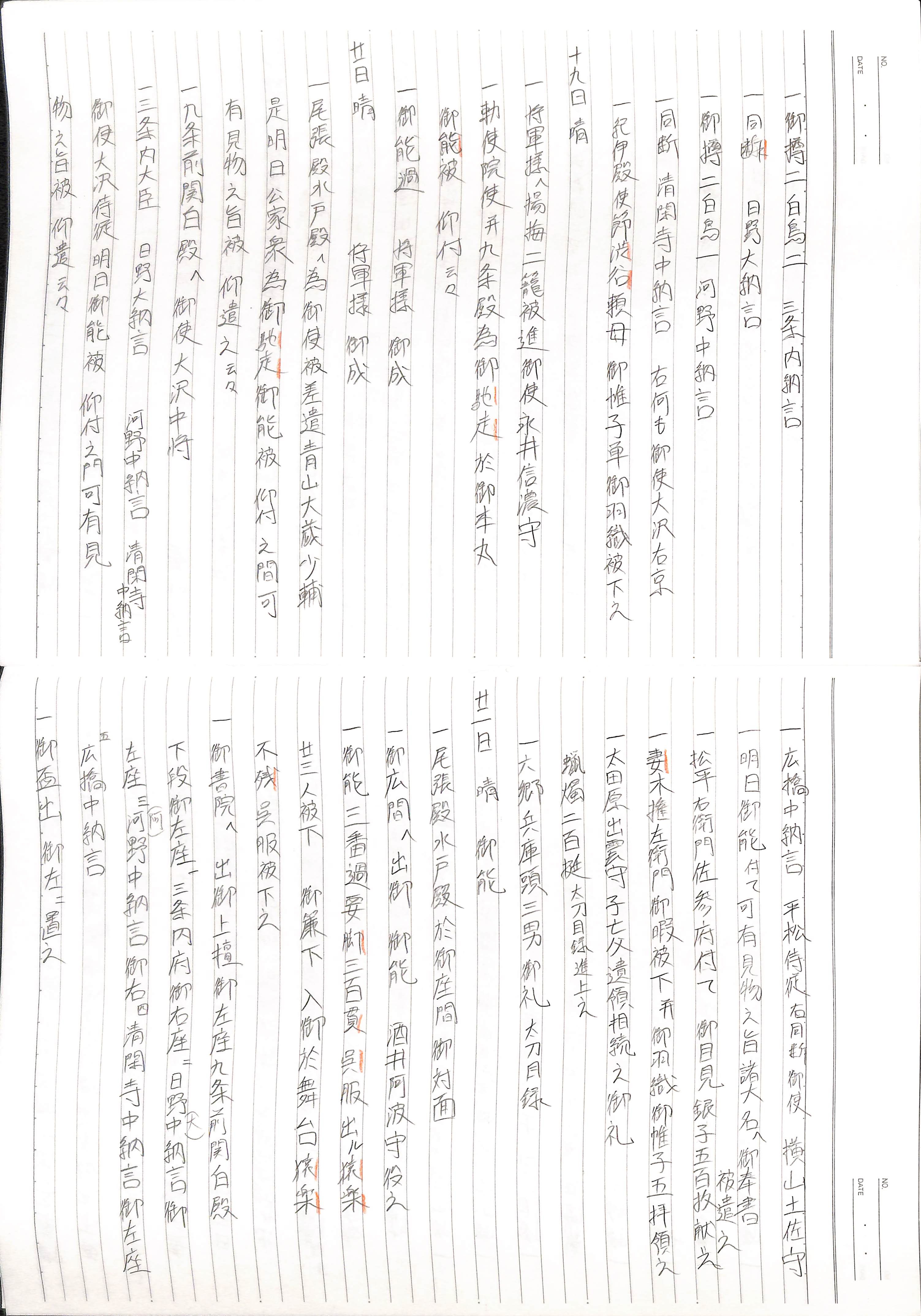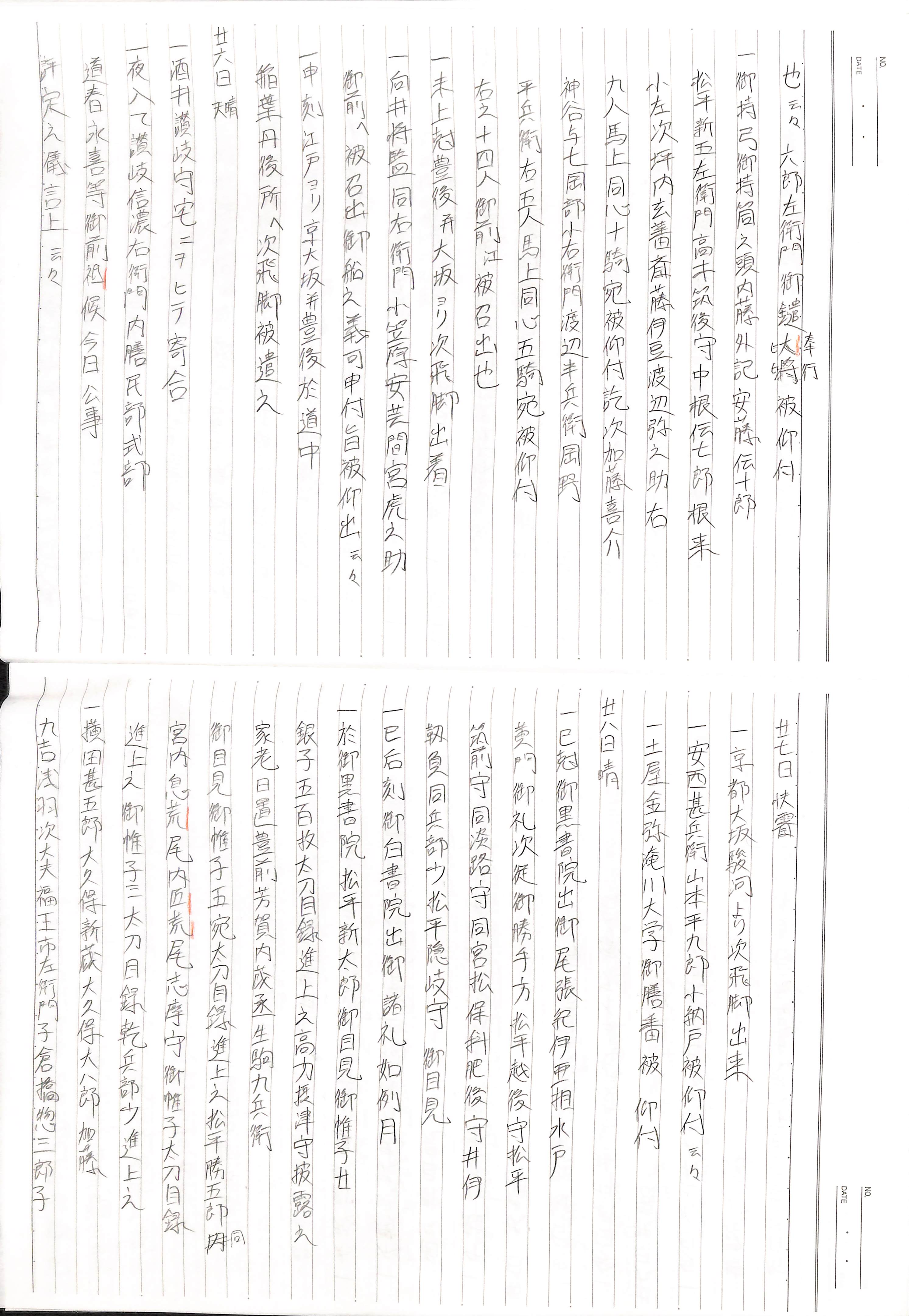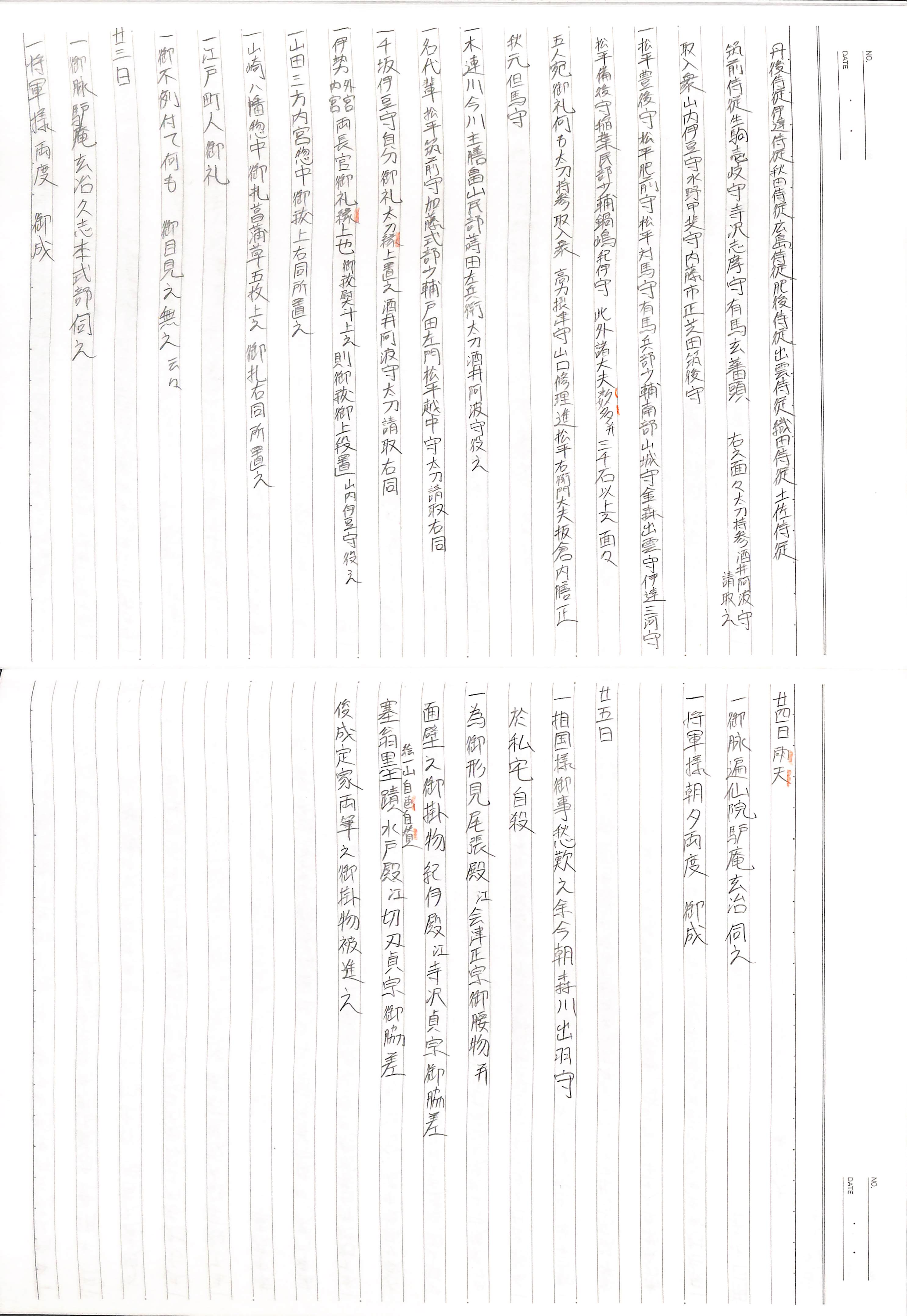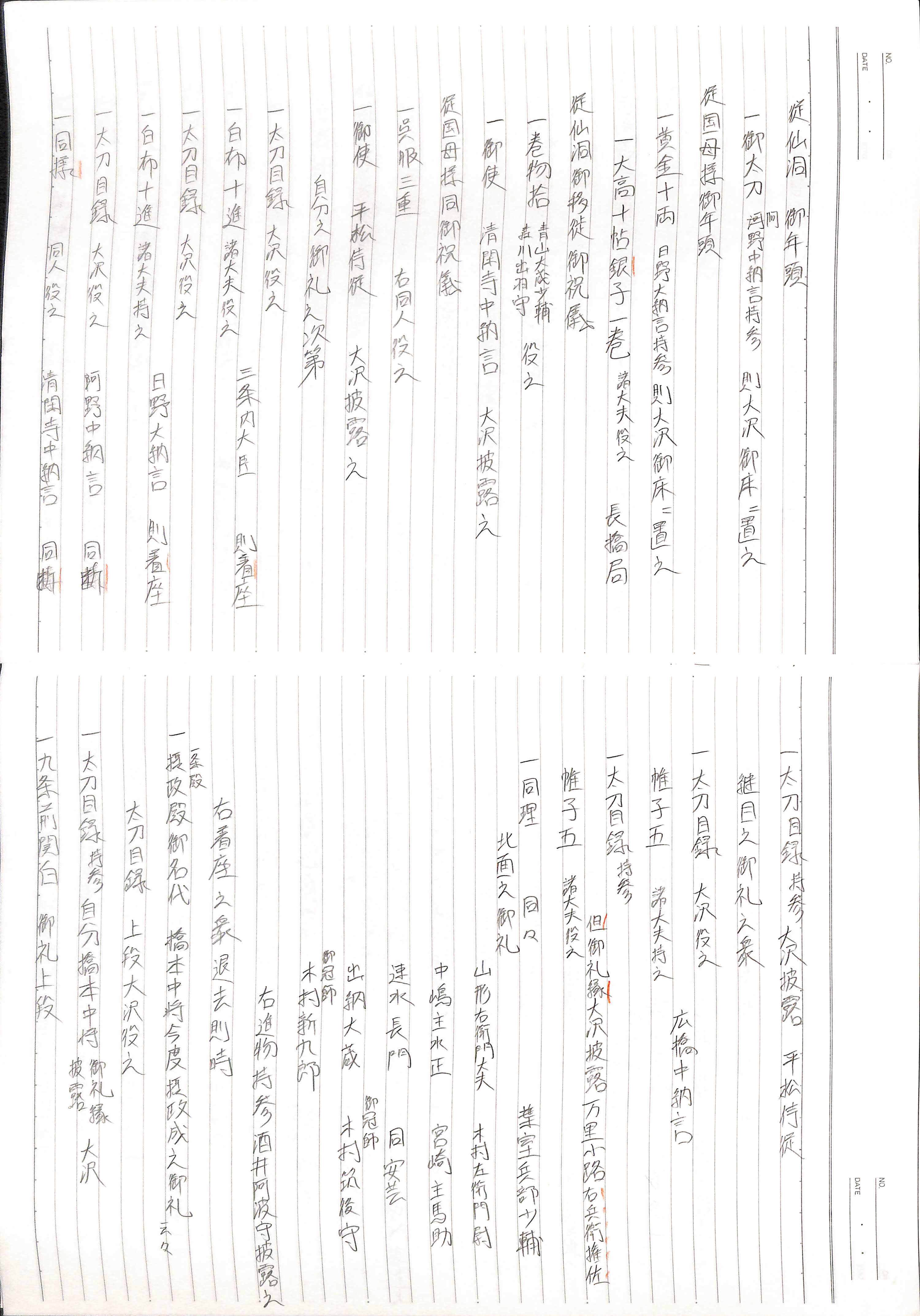 2 藤井讓治監修『江戸幕府日記姫路酒井家本』第1巻(ゆまに書房、2003年)より作成。原史料は姫路市立城郭研究室所蔵。 1へ 寛永8年5月5日~7月6日 寛永9年1月1日~1月25日 寛永9年6月1日~7月7日 3へ