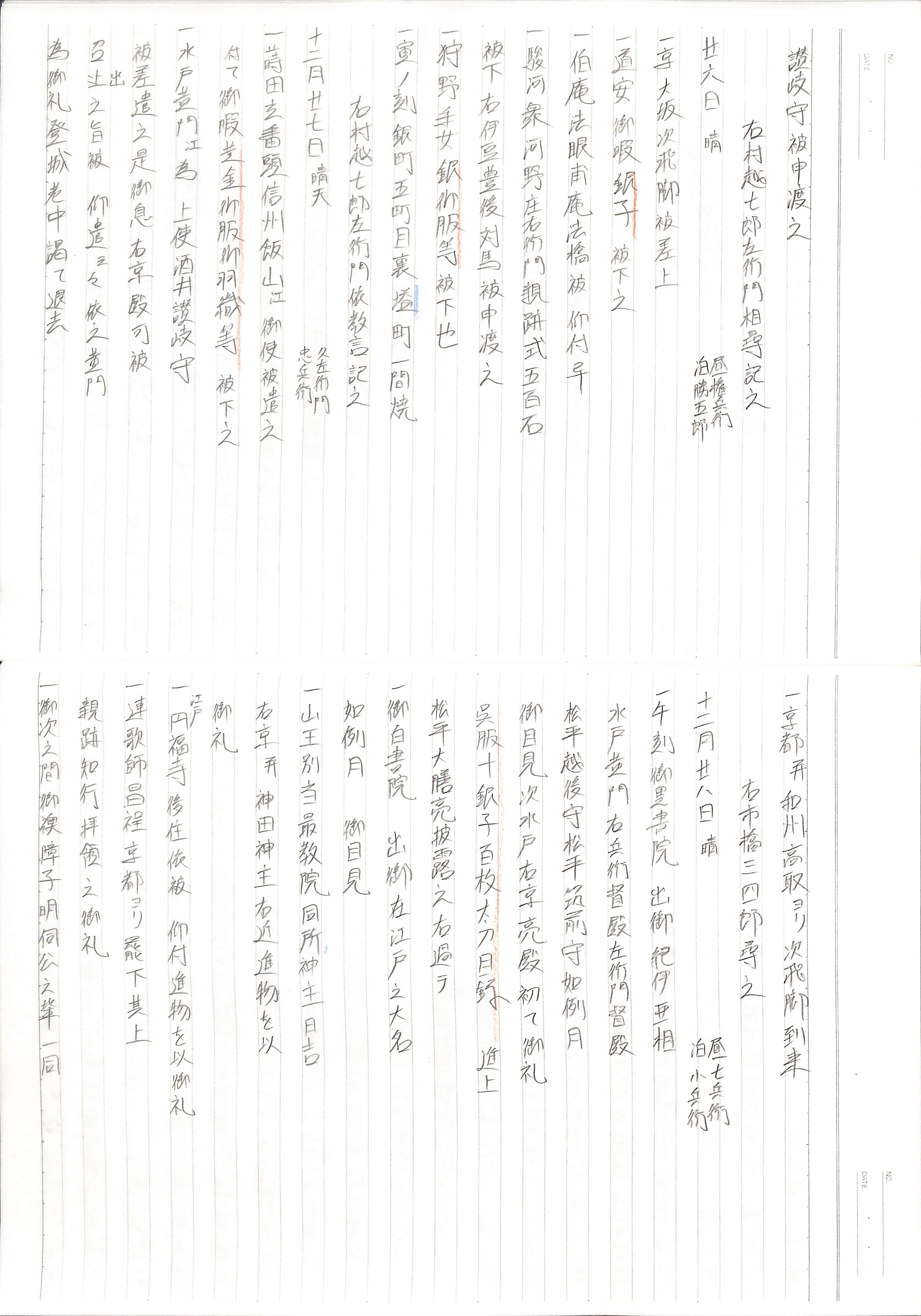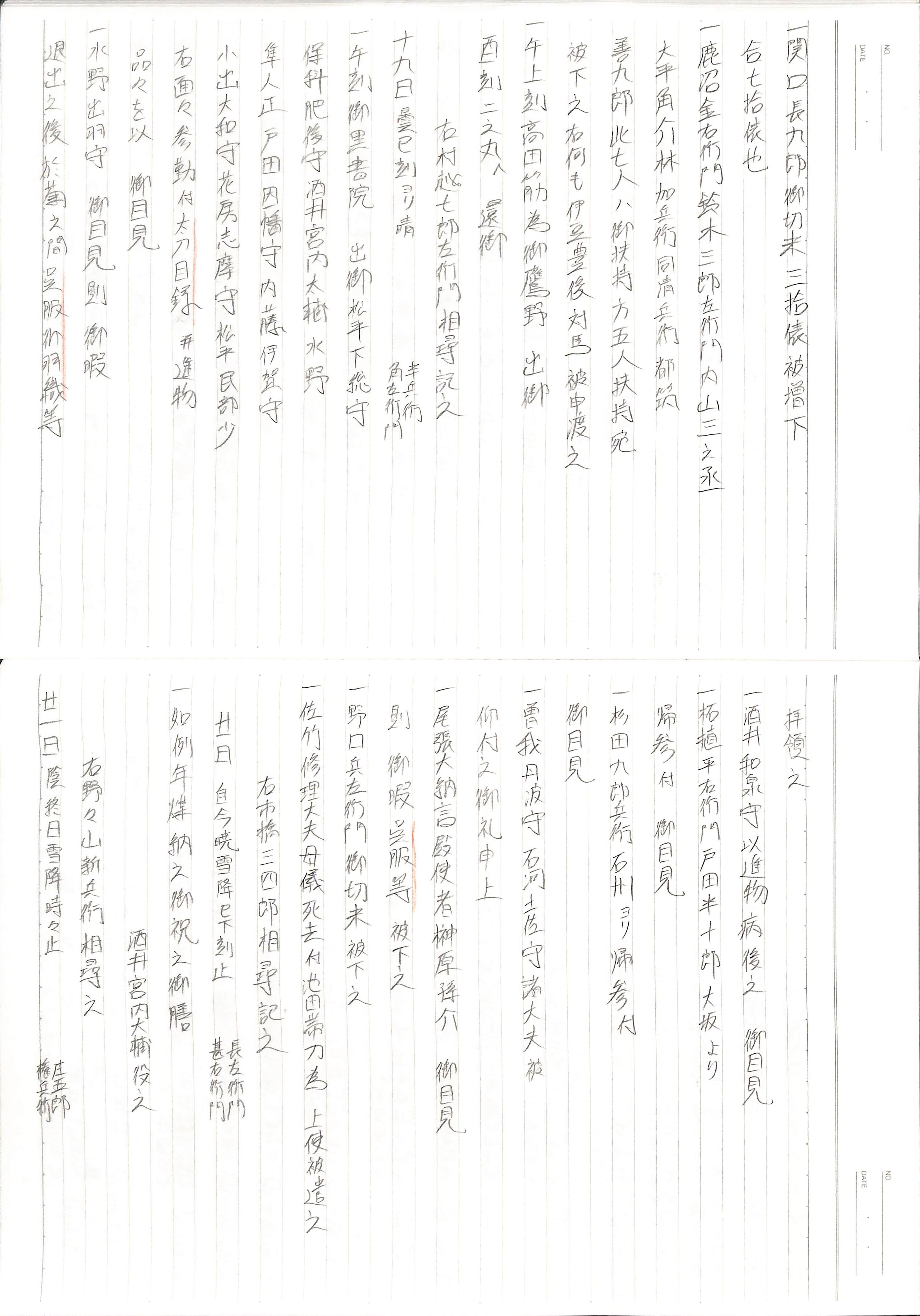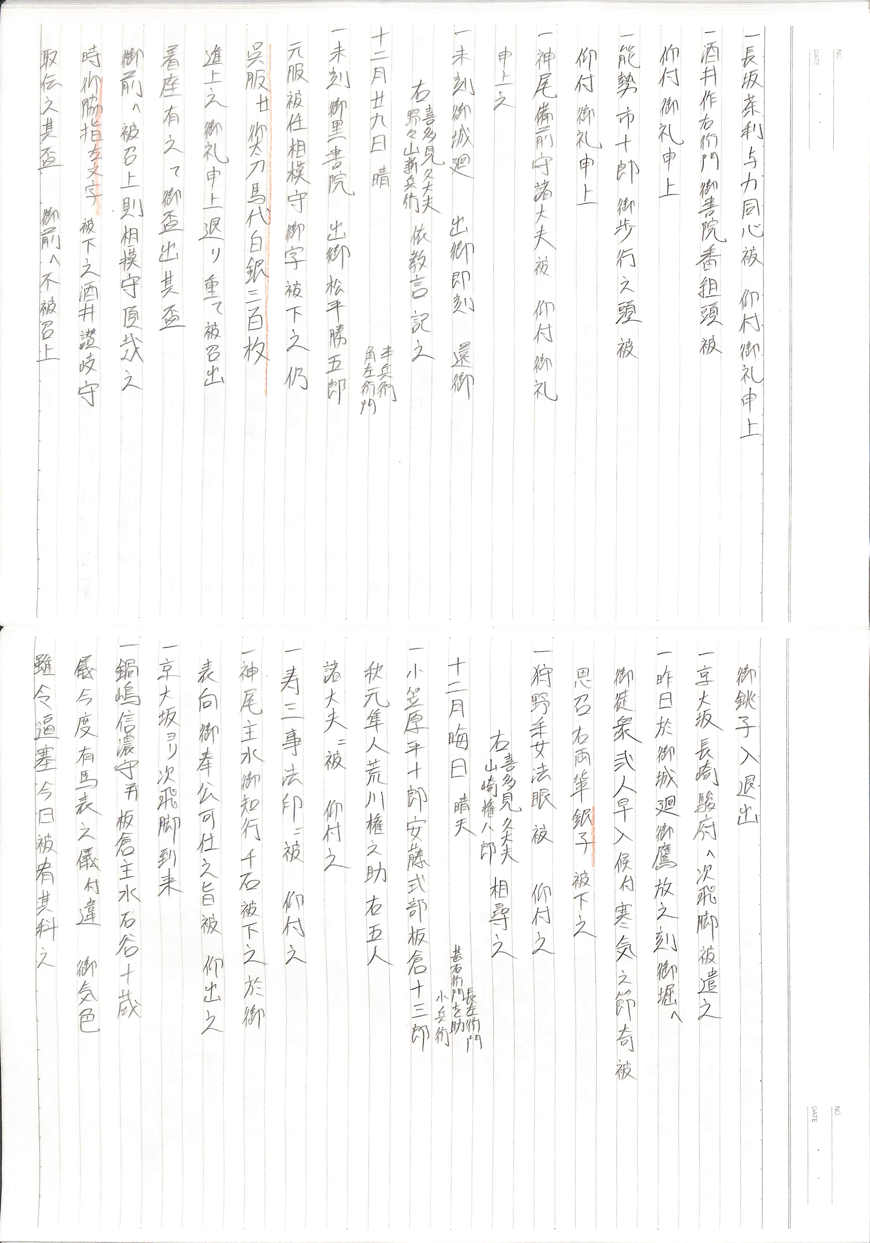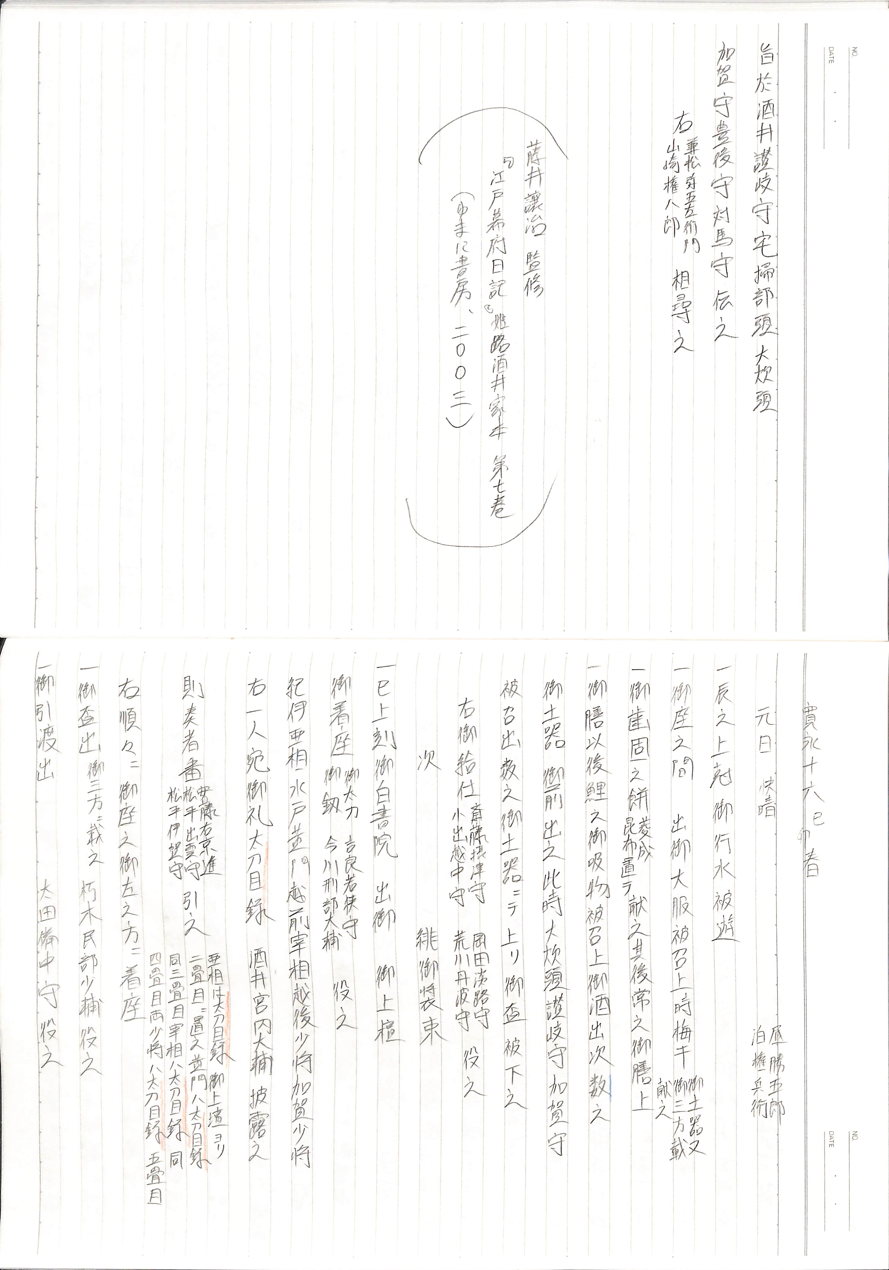 藤井讓治監修『江戸幕府日記姫路酒井家本』第7、8巻(ゆまに書房、2003年)より作成。原史料は姫路市立城郭研究室所蔵。
