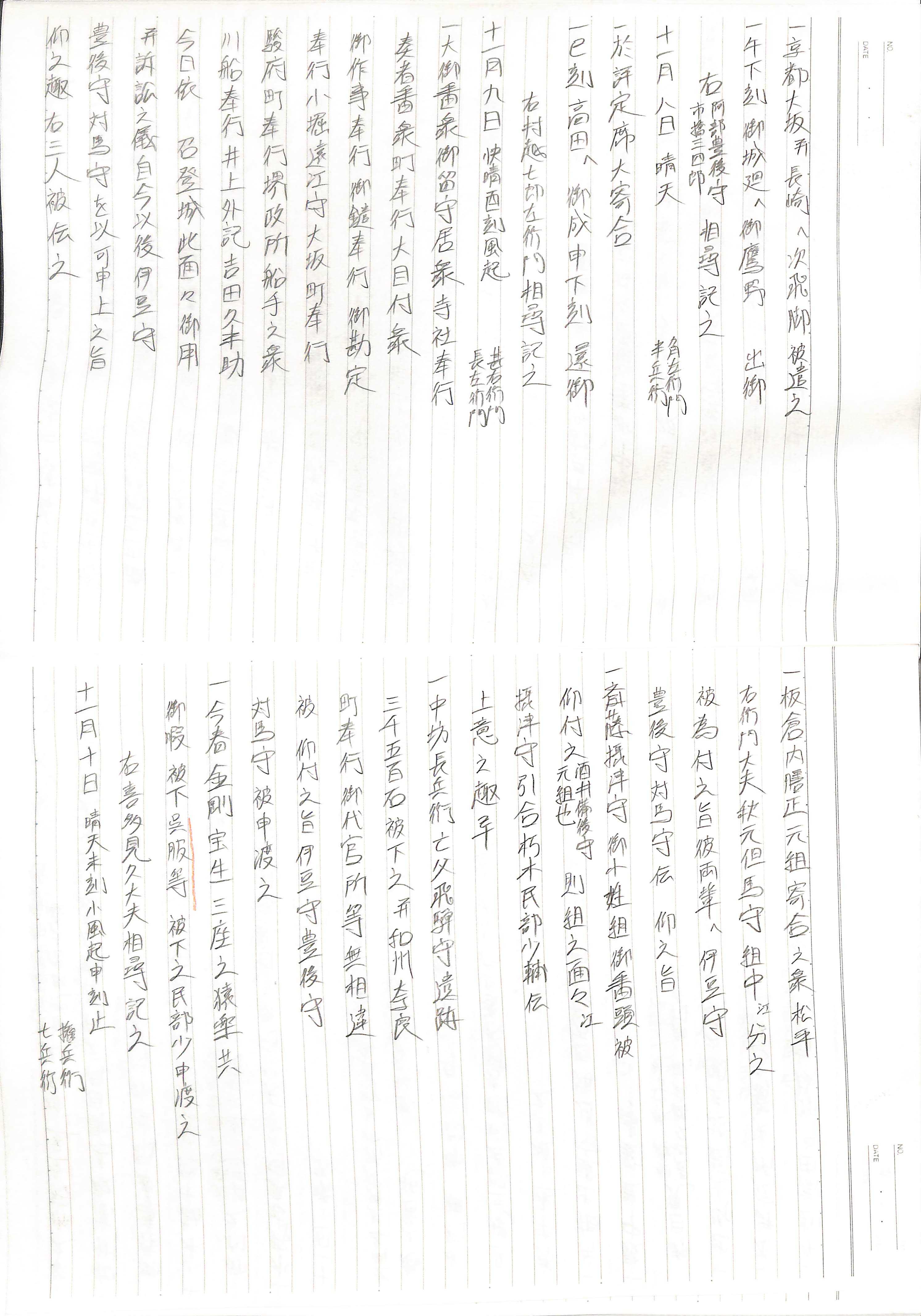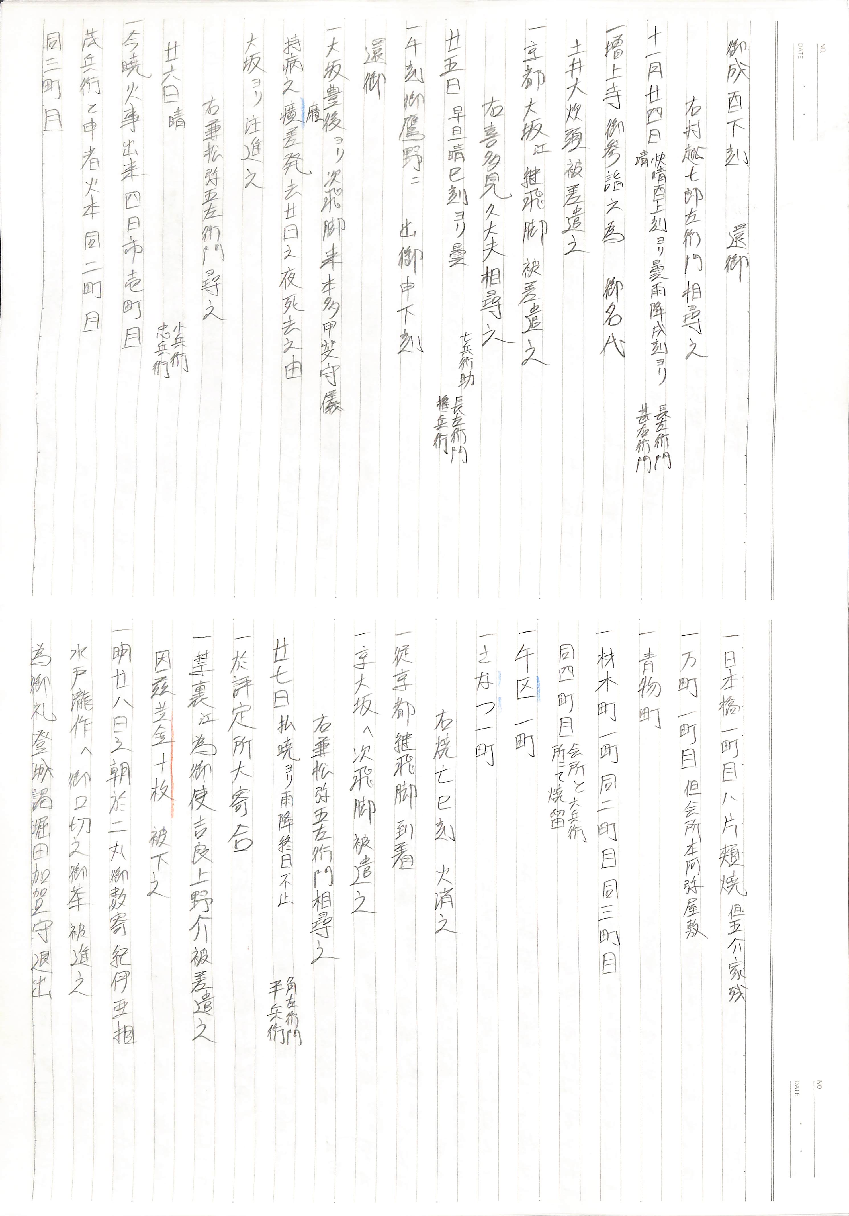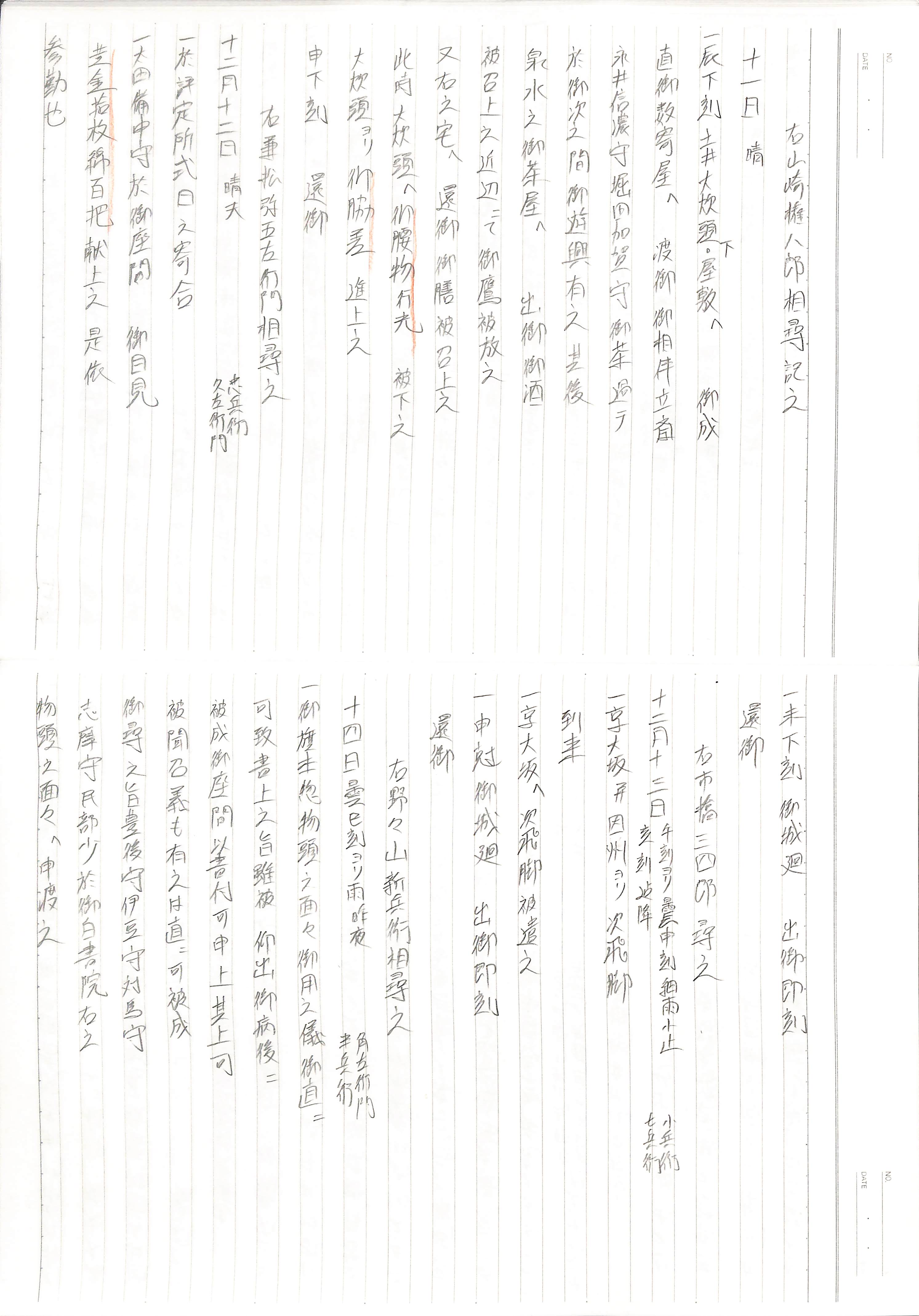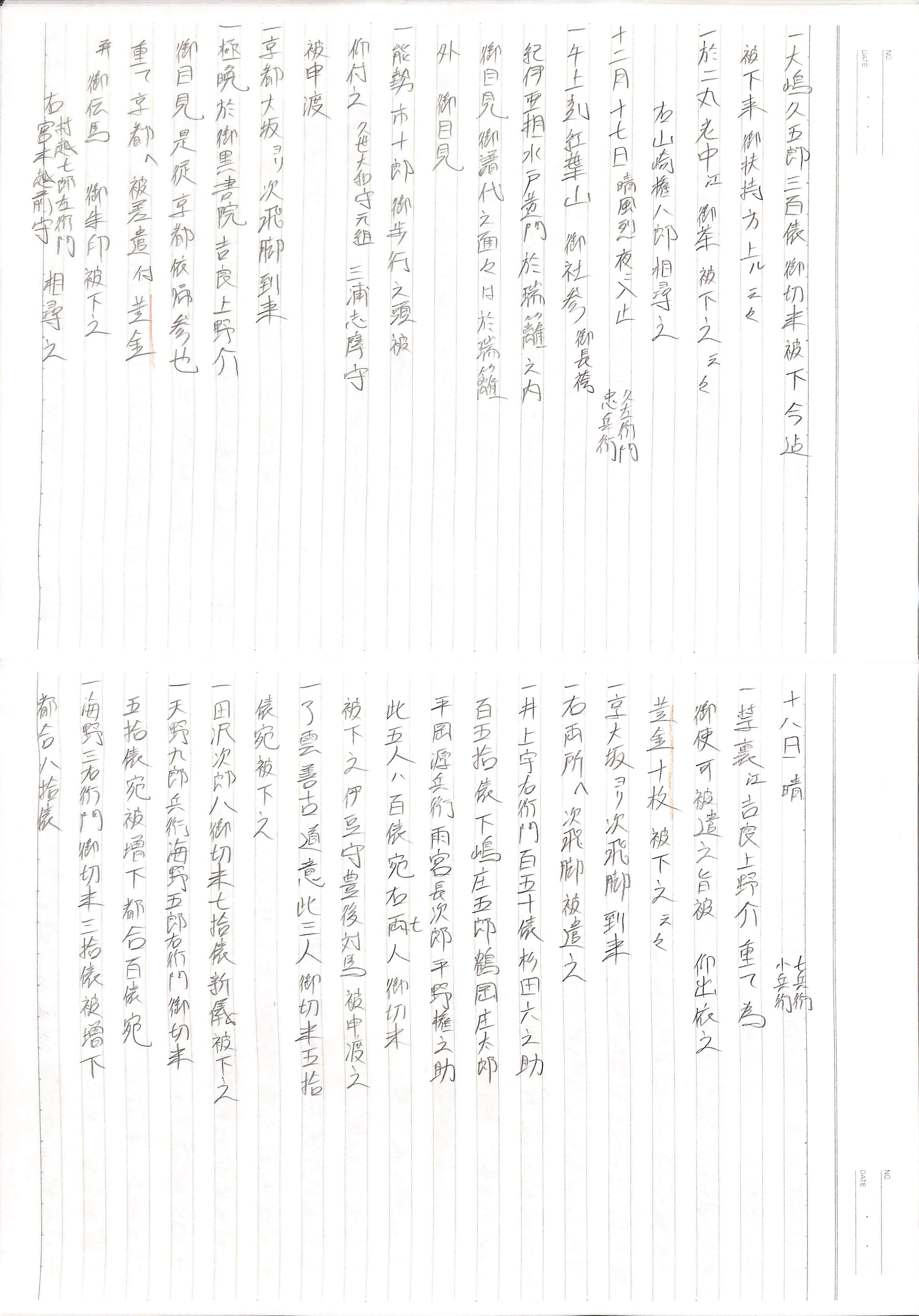 藤井讓治監修『江戸幕府日記姫路酒井家本』第7、8巻(ゆまに書房、2003年)より作成。原史料は姫路市立城郭研究室所蔵。