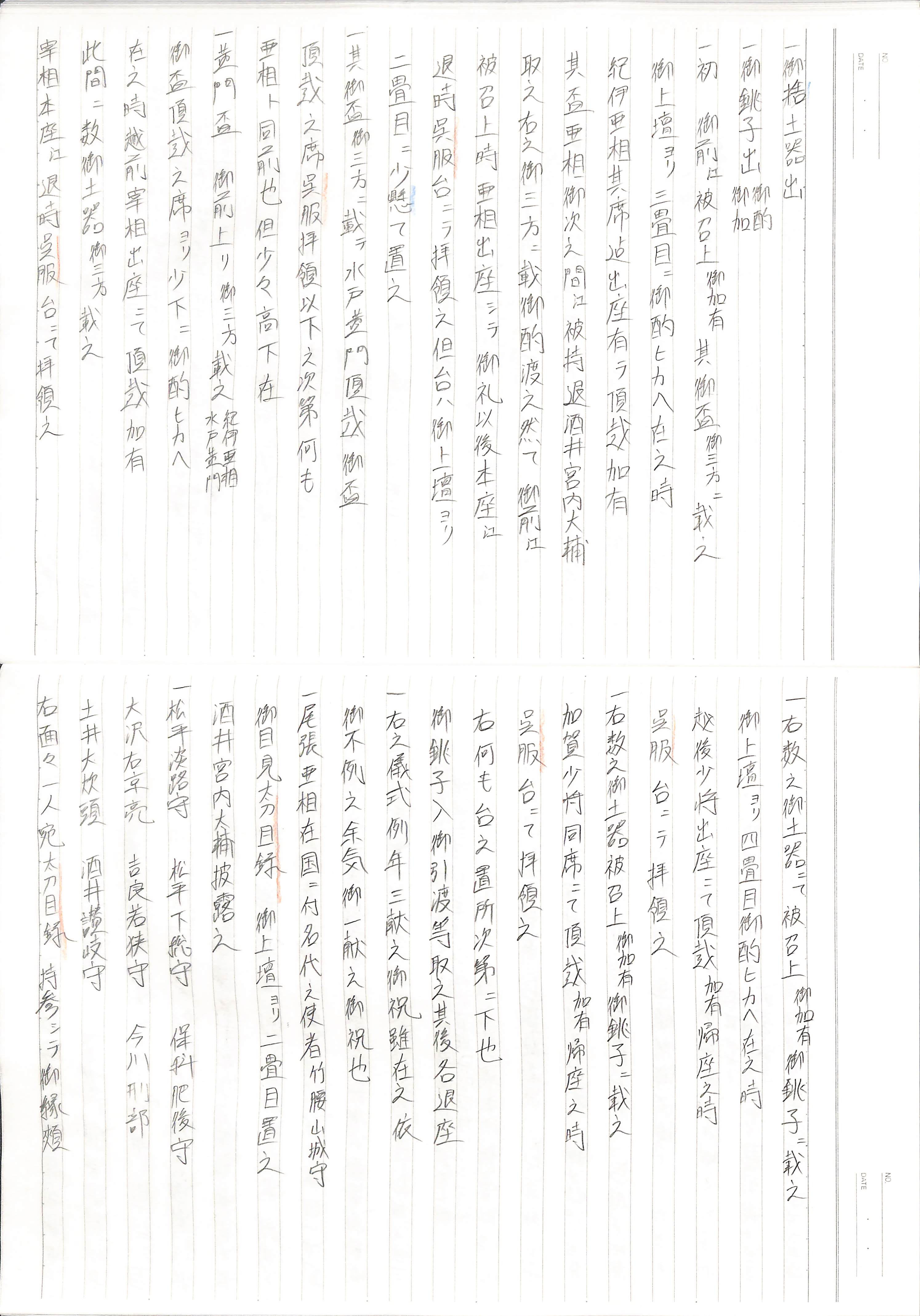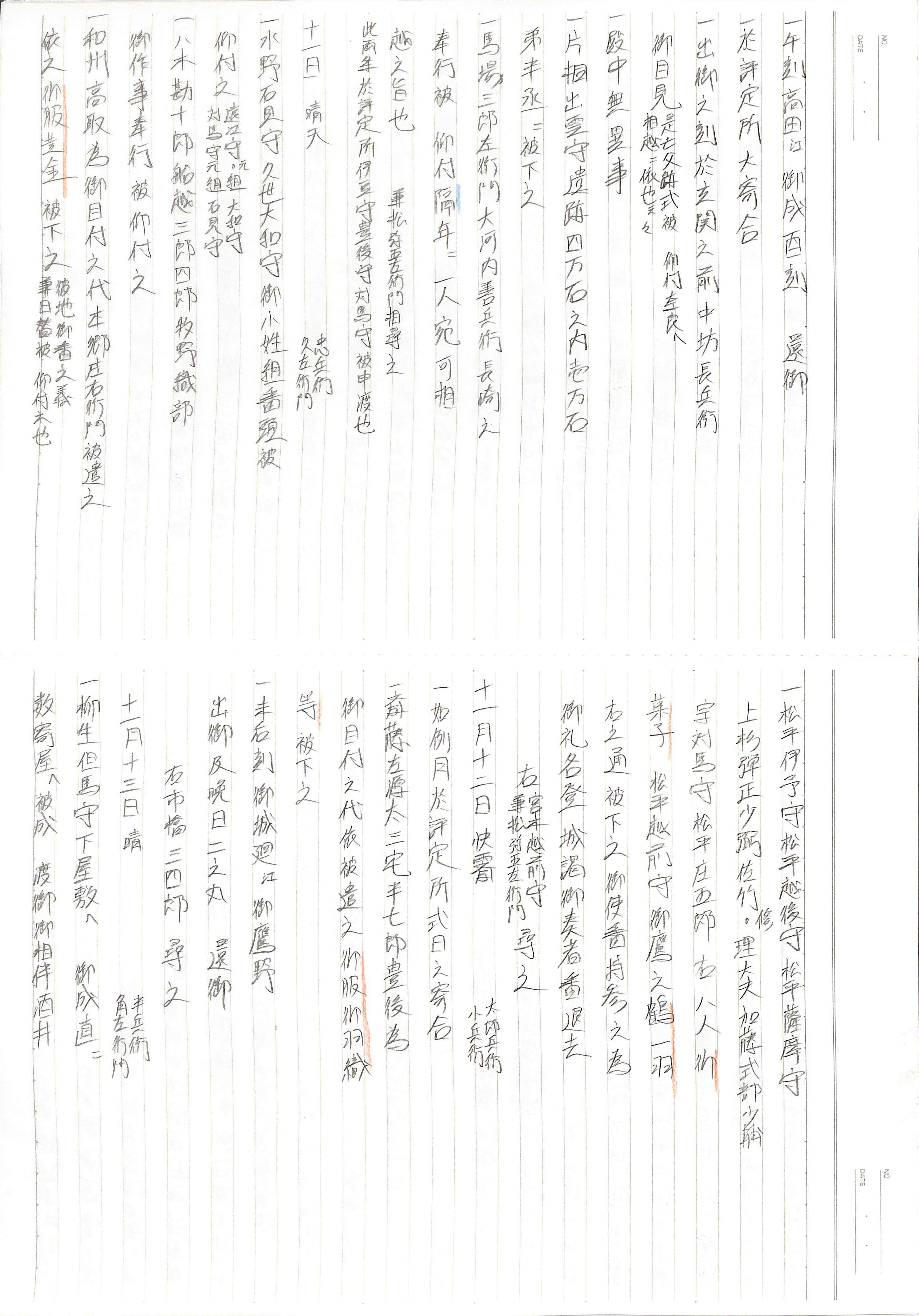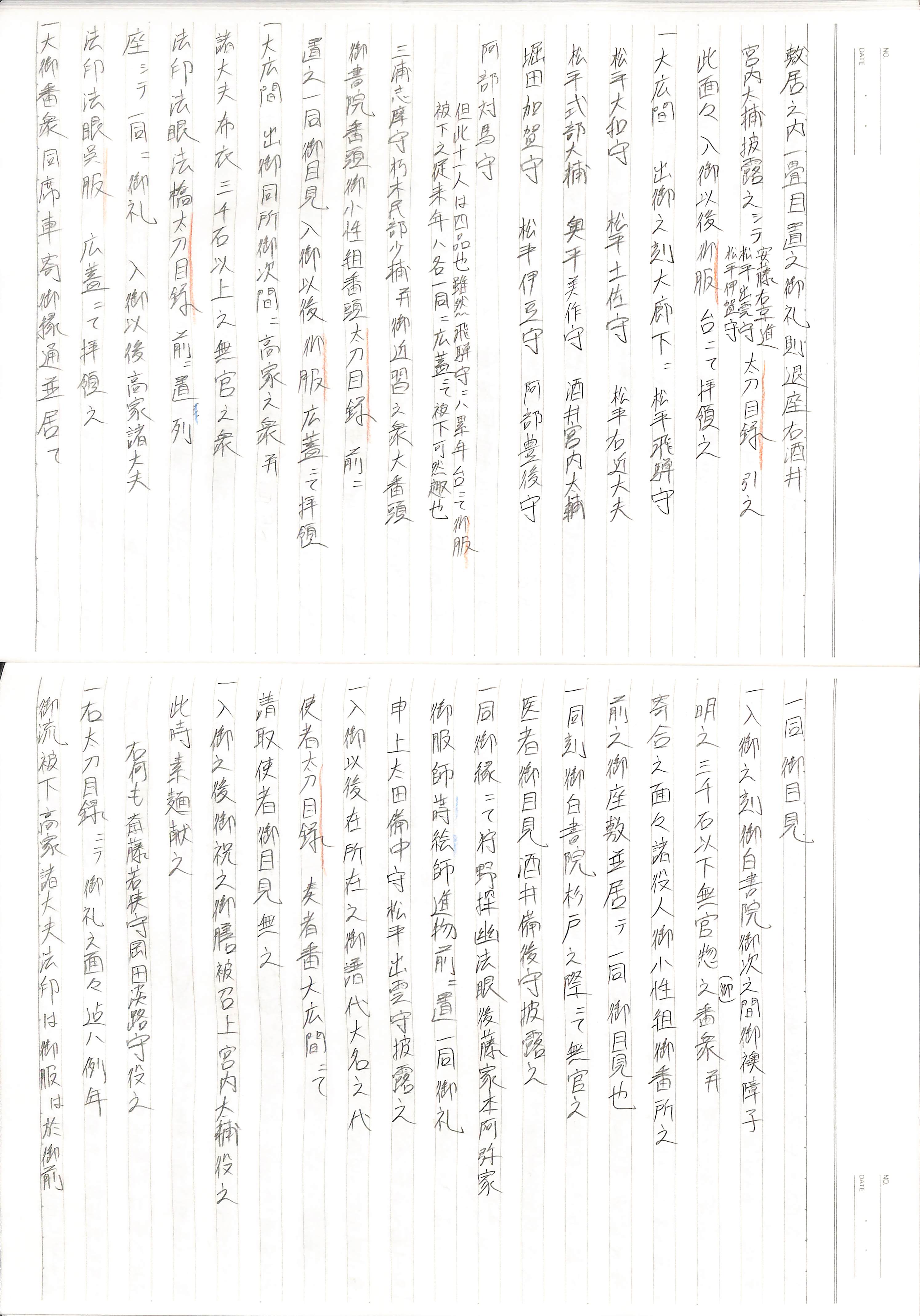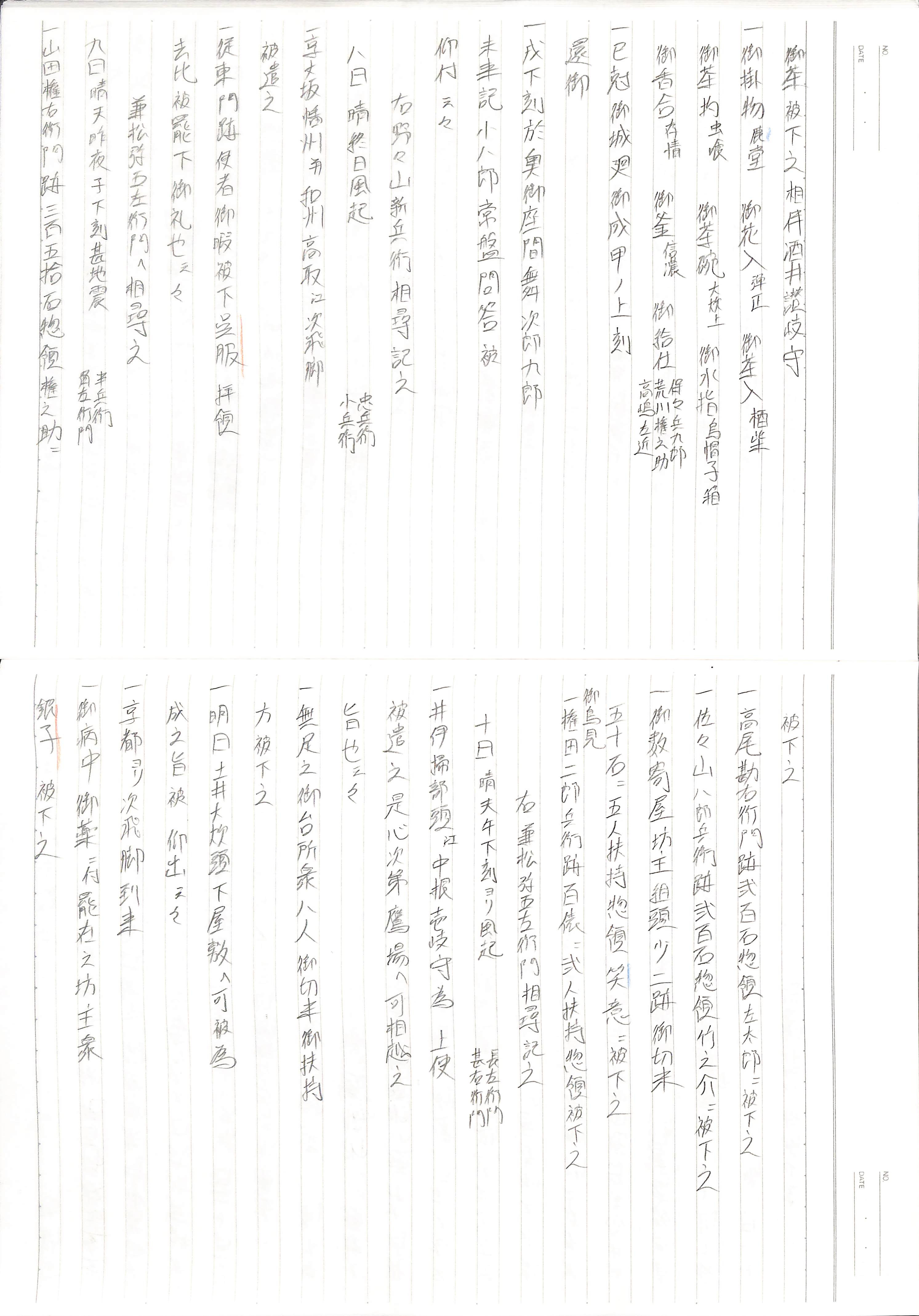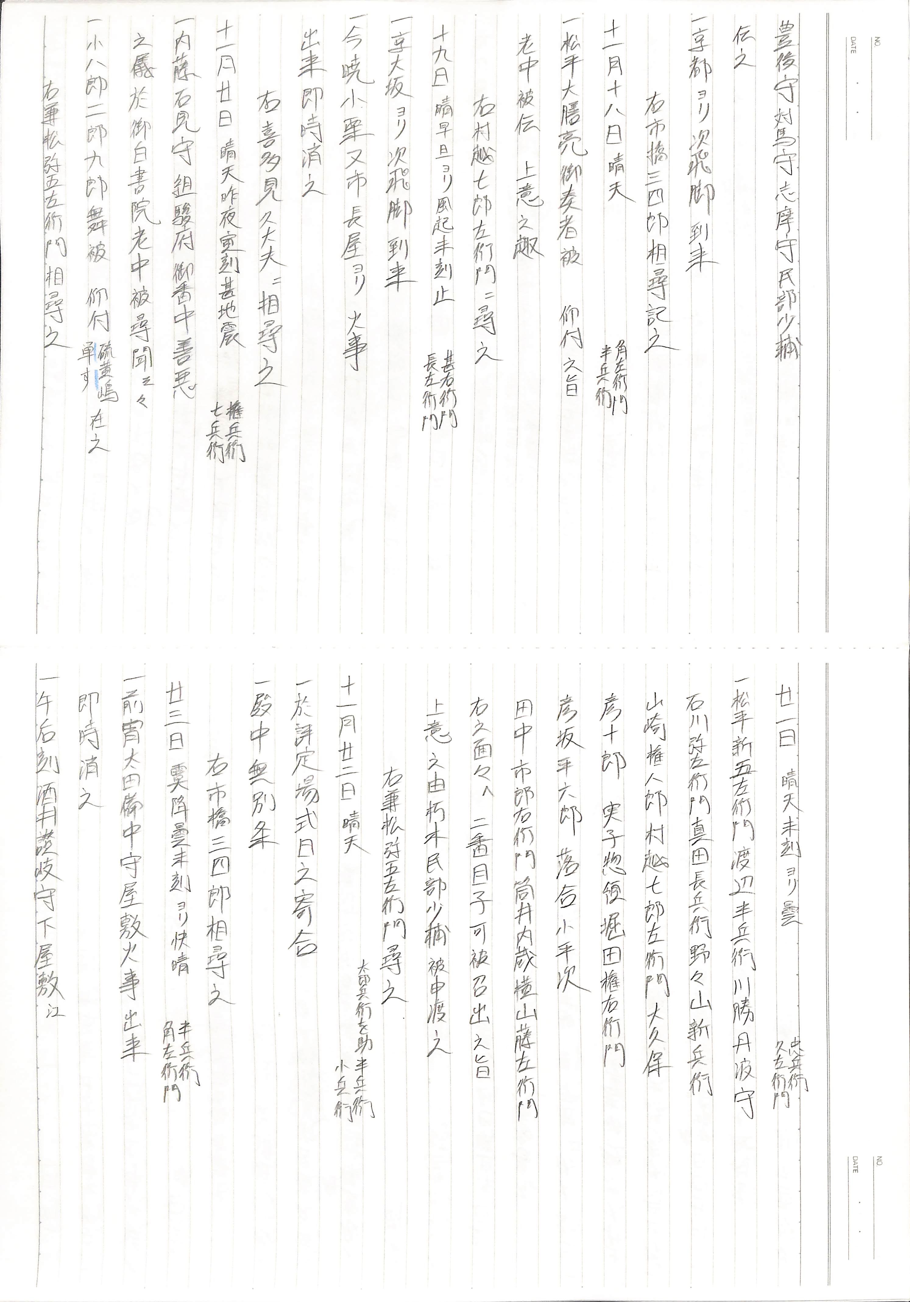 藤井讓治監修『江戸幕府日記姫路酒井家本』第7、8巻(ゆまに書房、2003年)より作成。原史料は姫路市立城郭研究室所蔵。