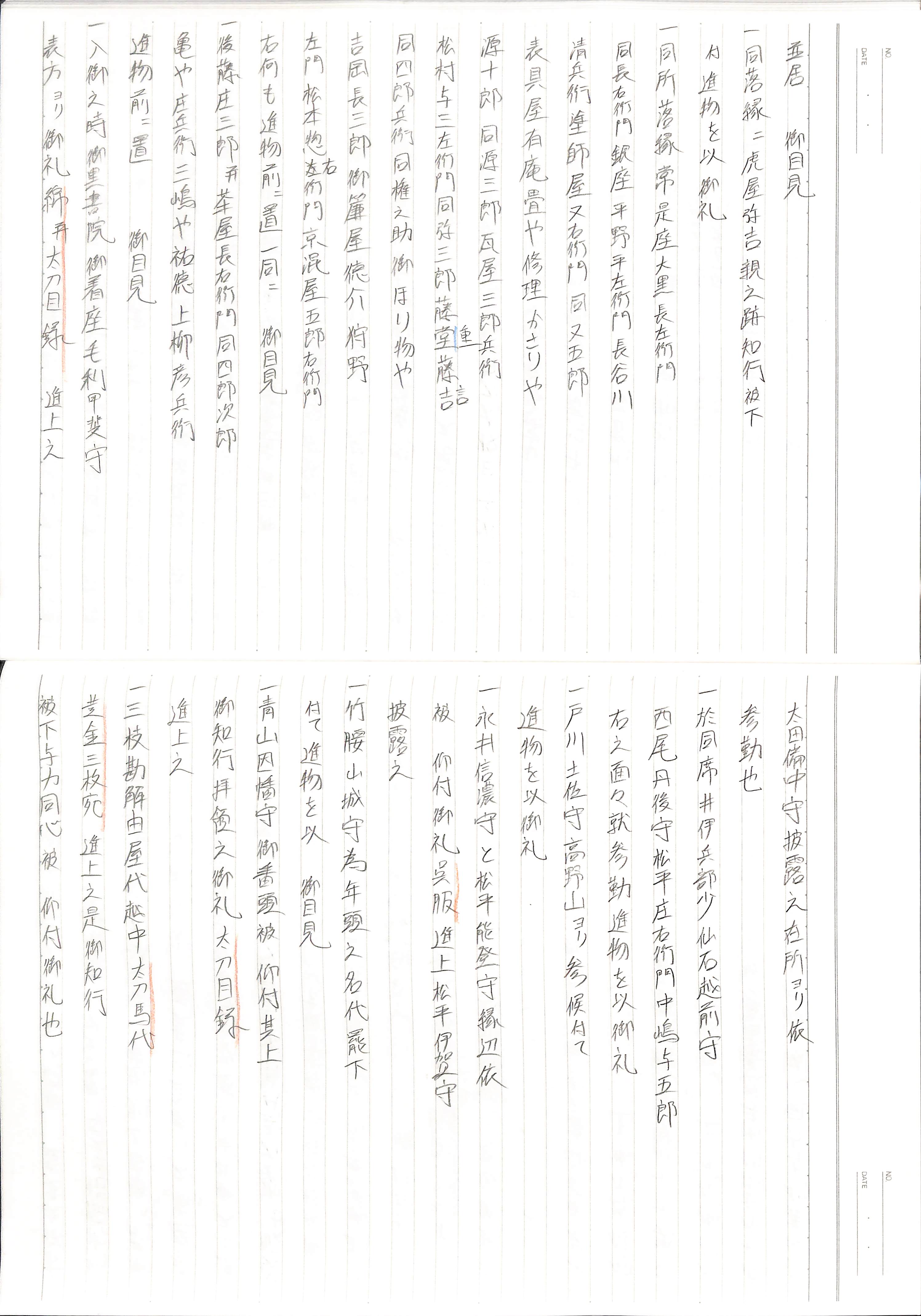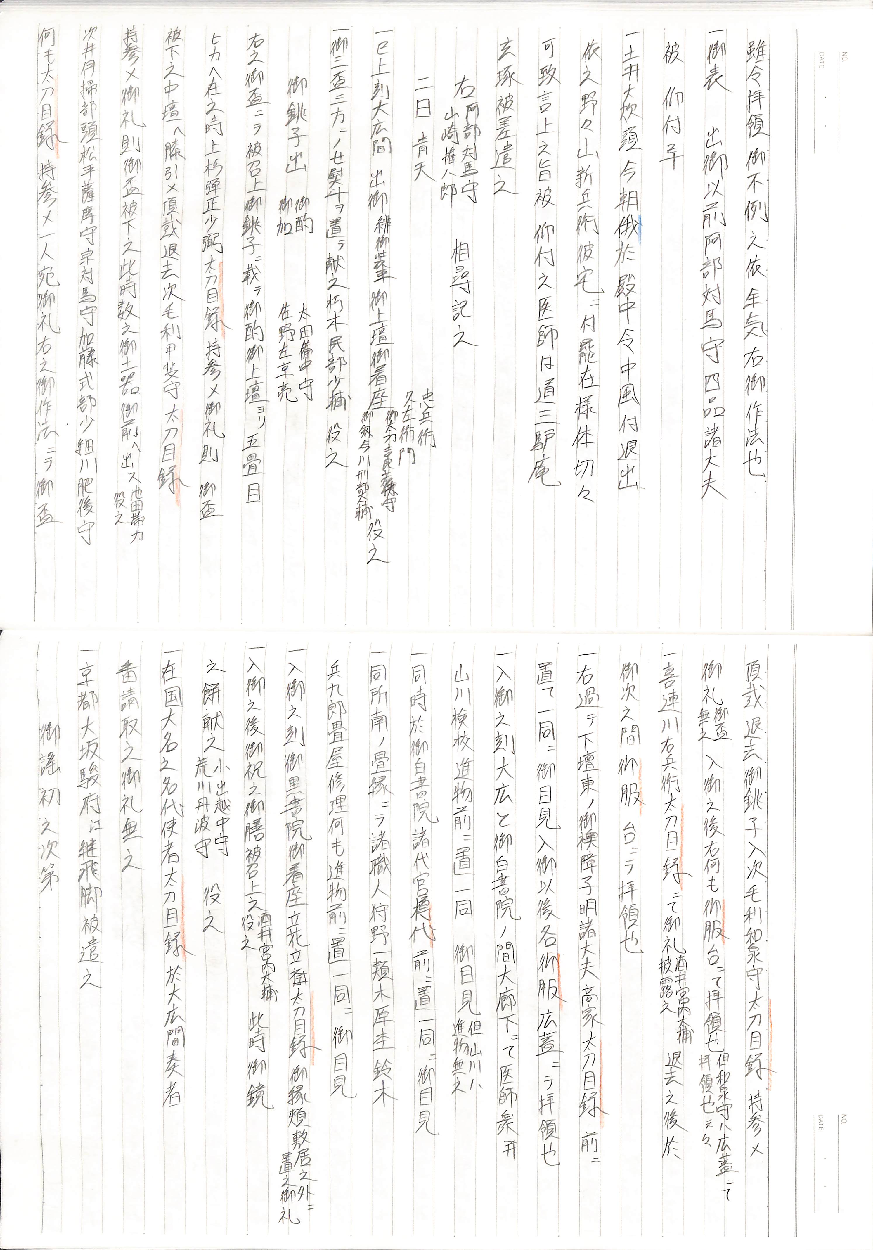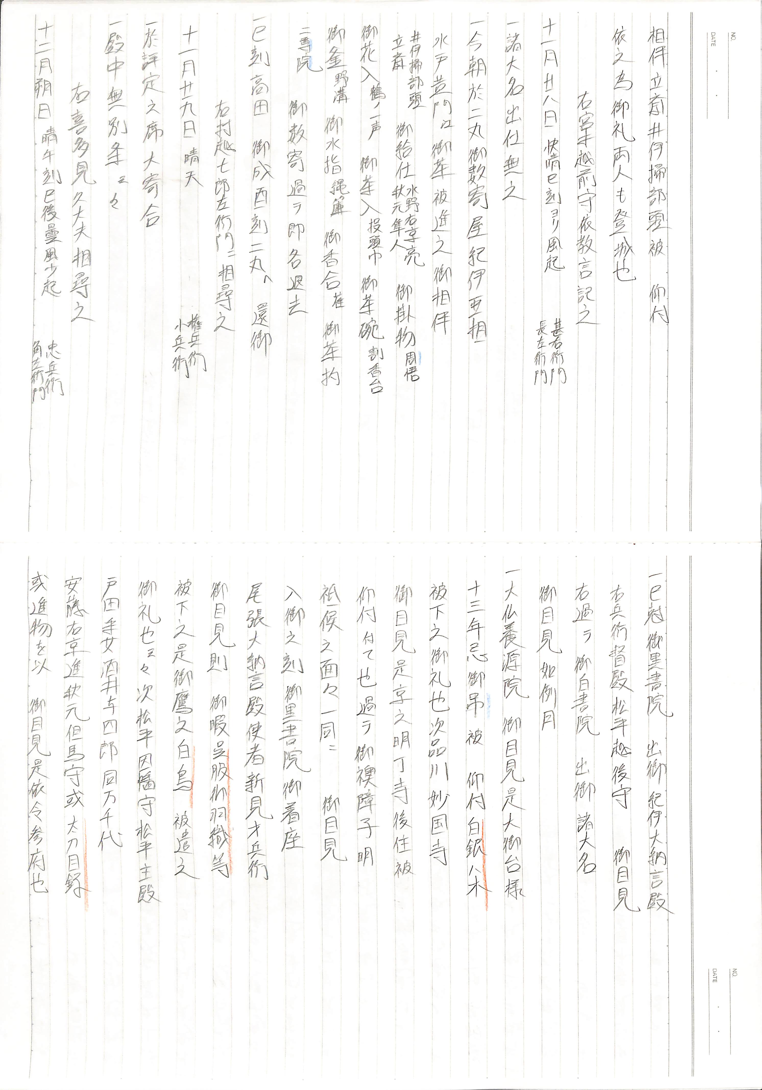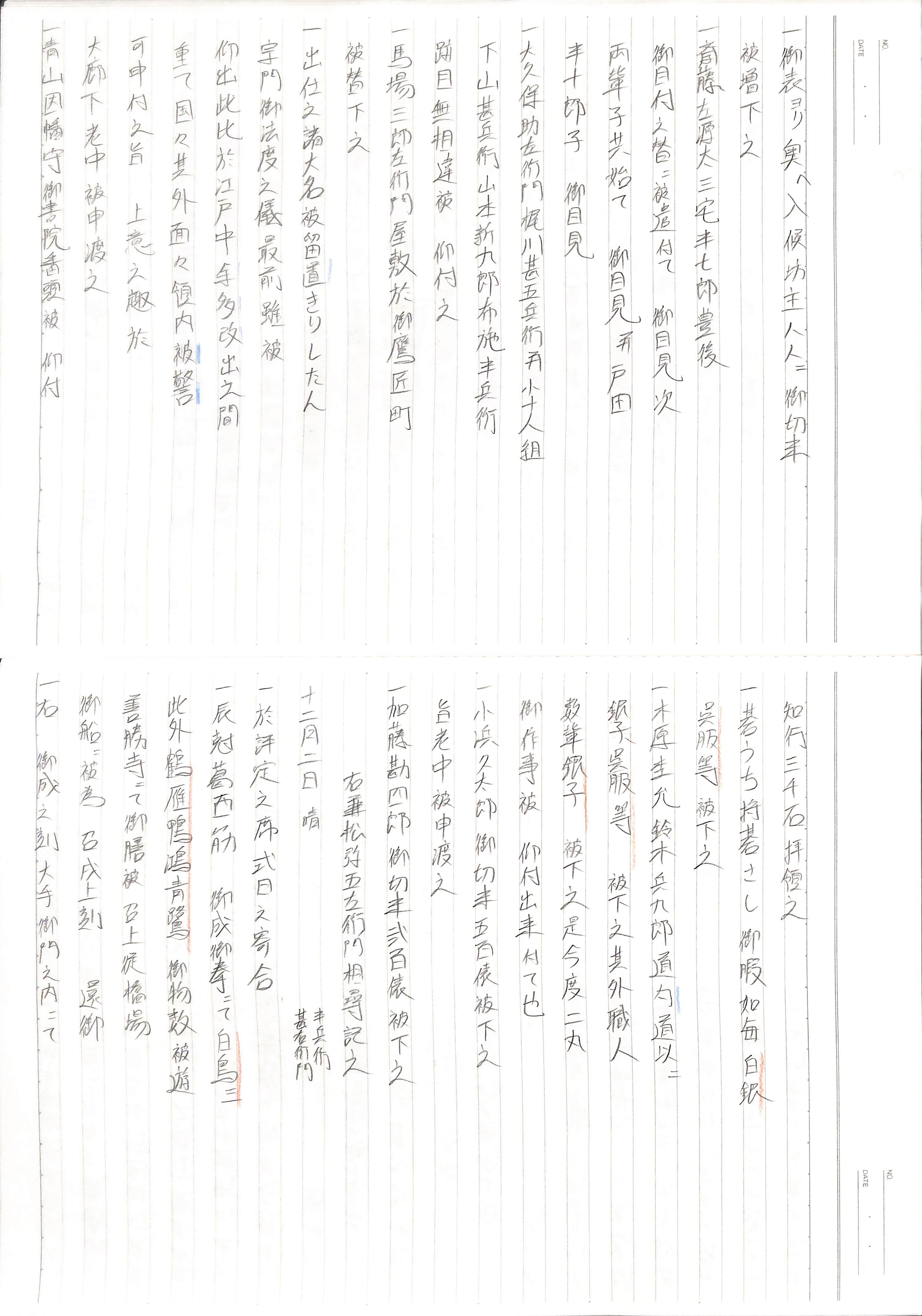 藤井讓治監修『江戸幕府日記姫路酒井家本』第7、8巻(ゆまに書房、2003年)より作成。原史料は姫路市立城郭研究室所蔵。