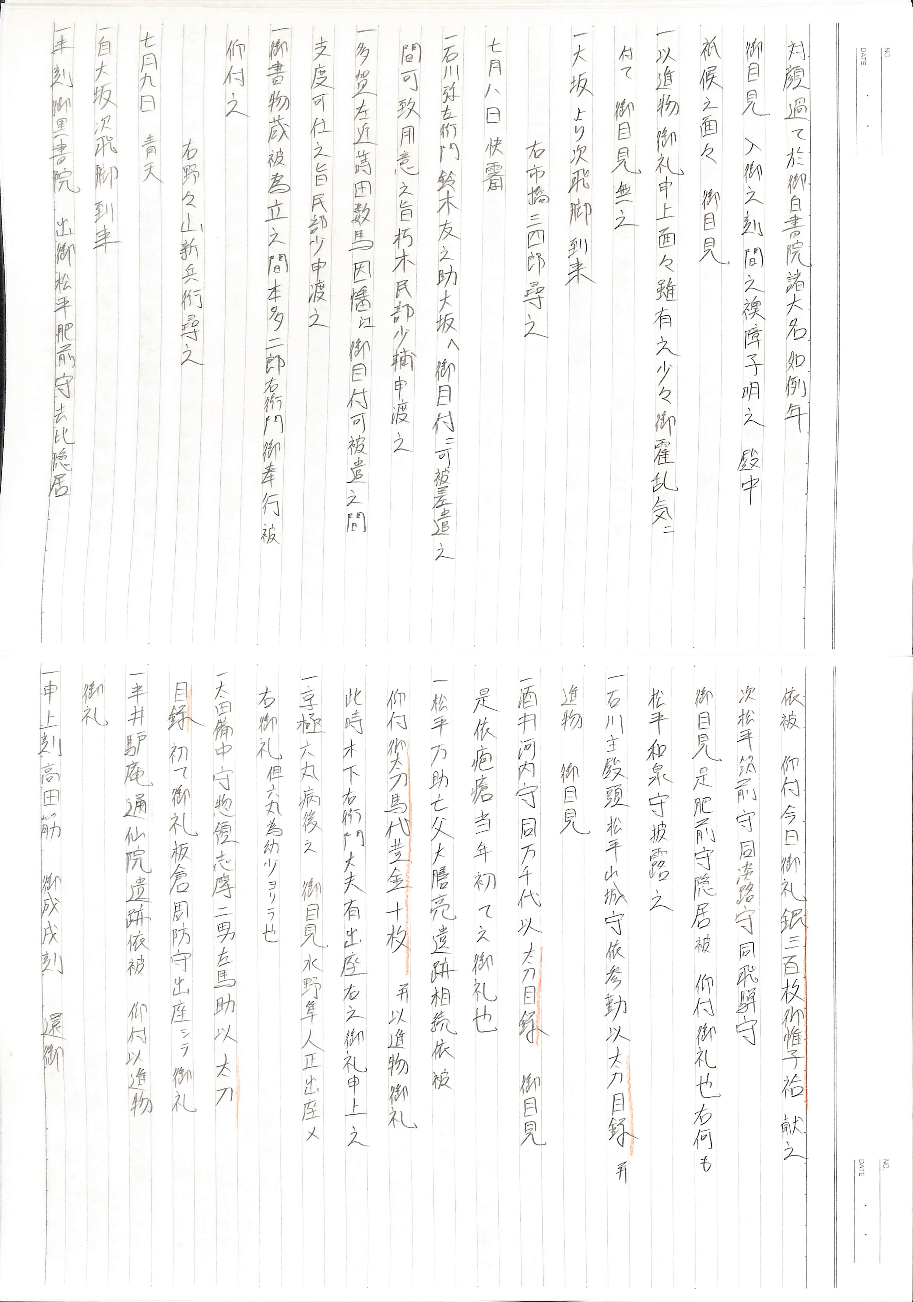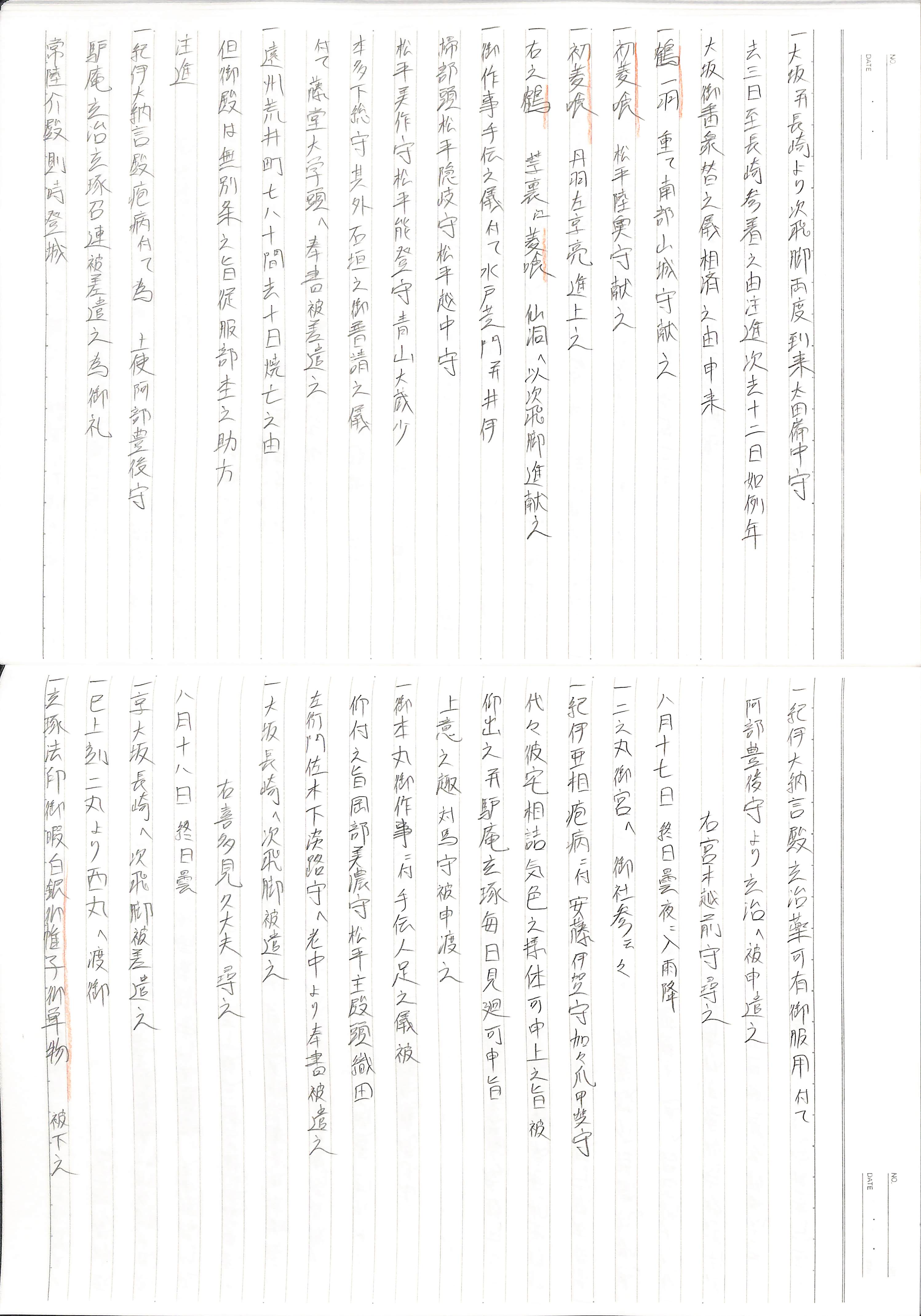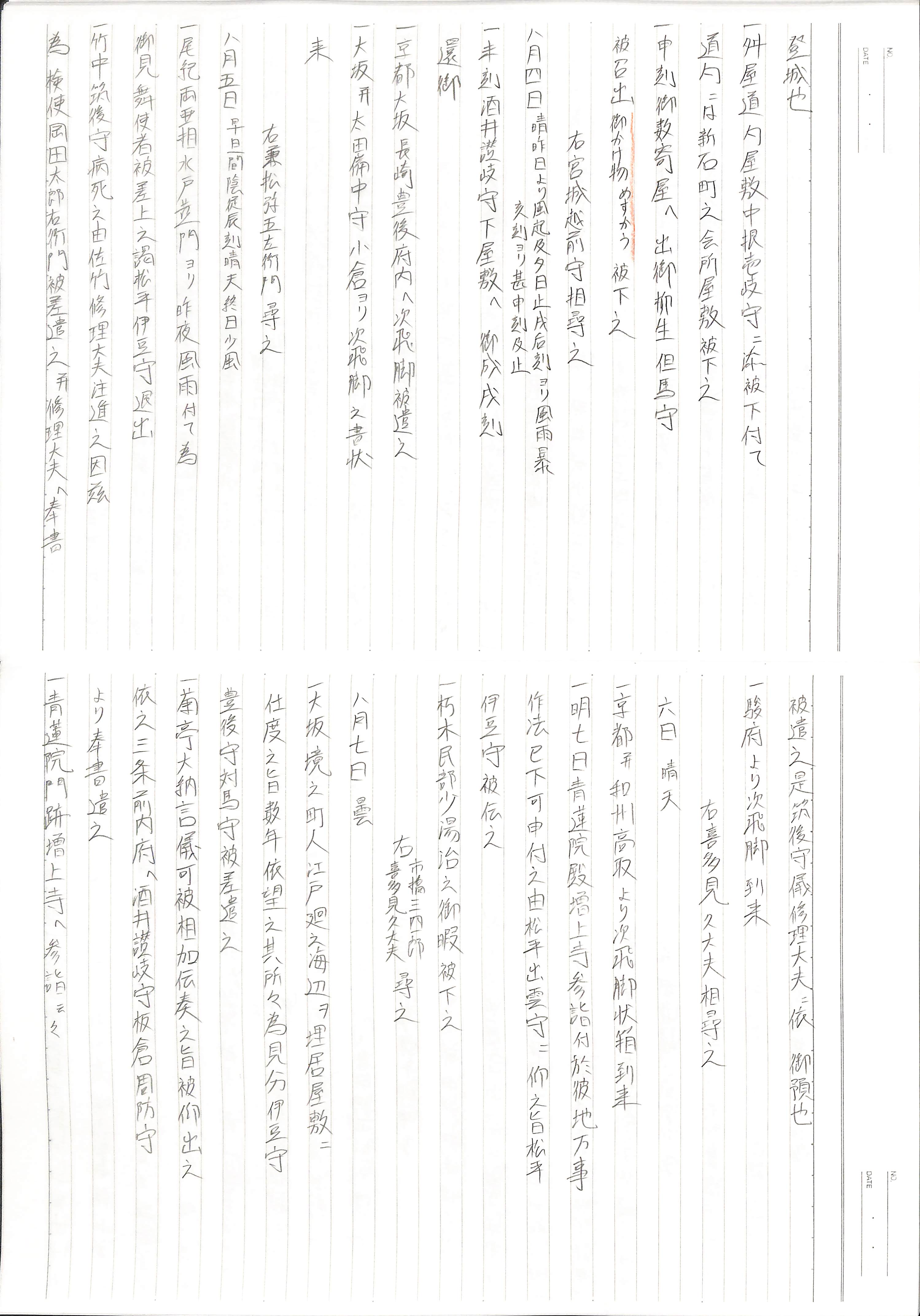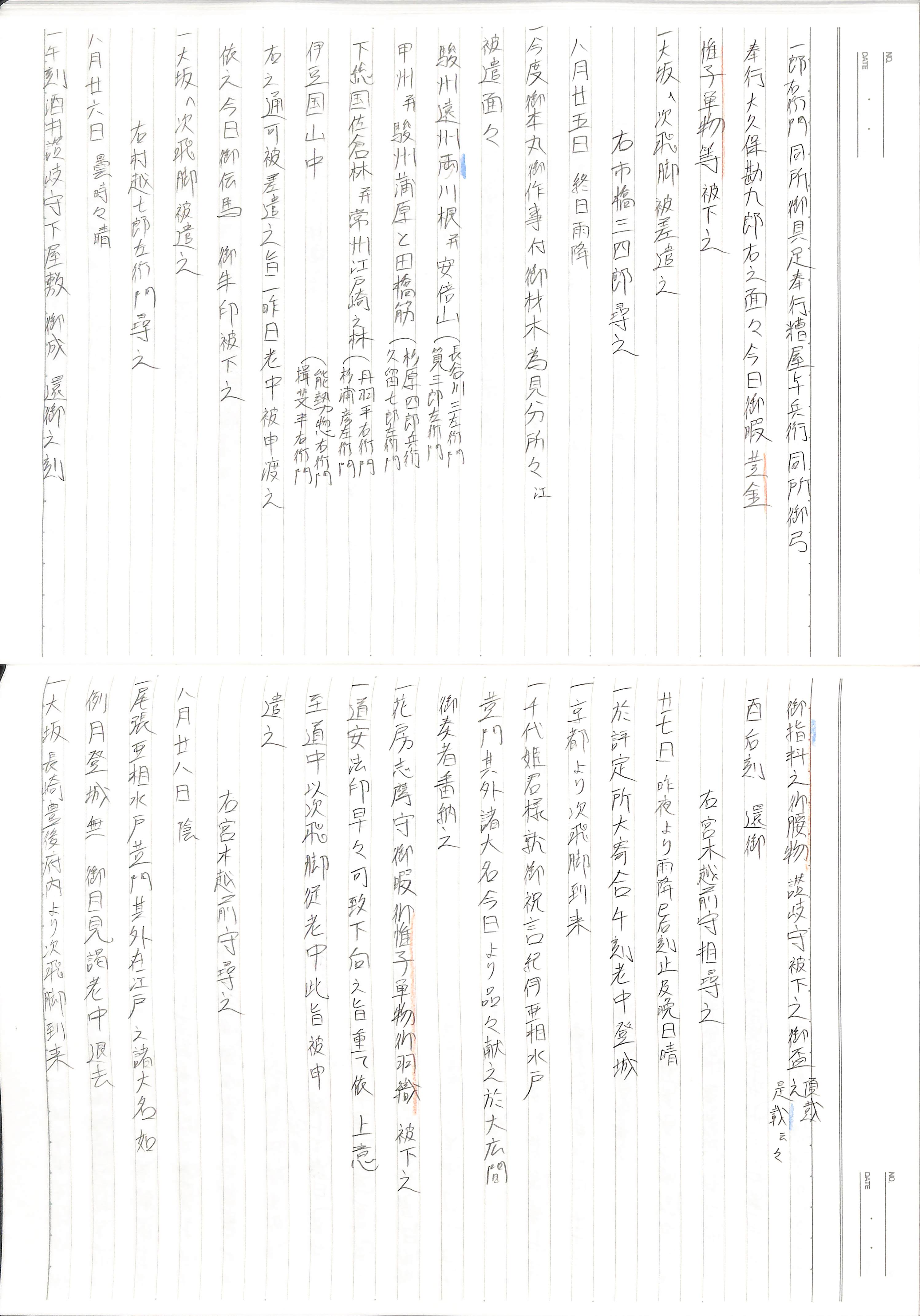 藤井讓治監修『江戸幕府日記姫路酒井家本』第8巻(ゆまに書房、2003年)より作成。原史料は姫路市立城郭研究室所蔵。