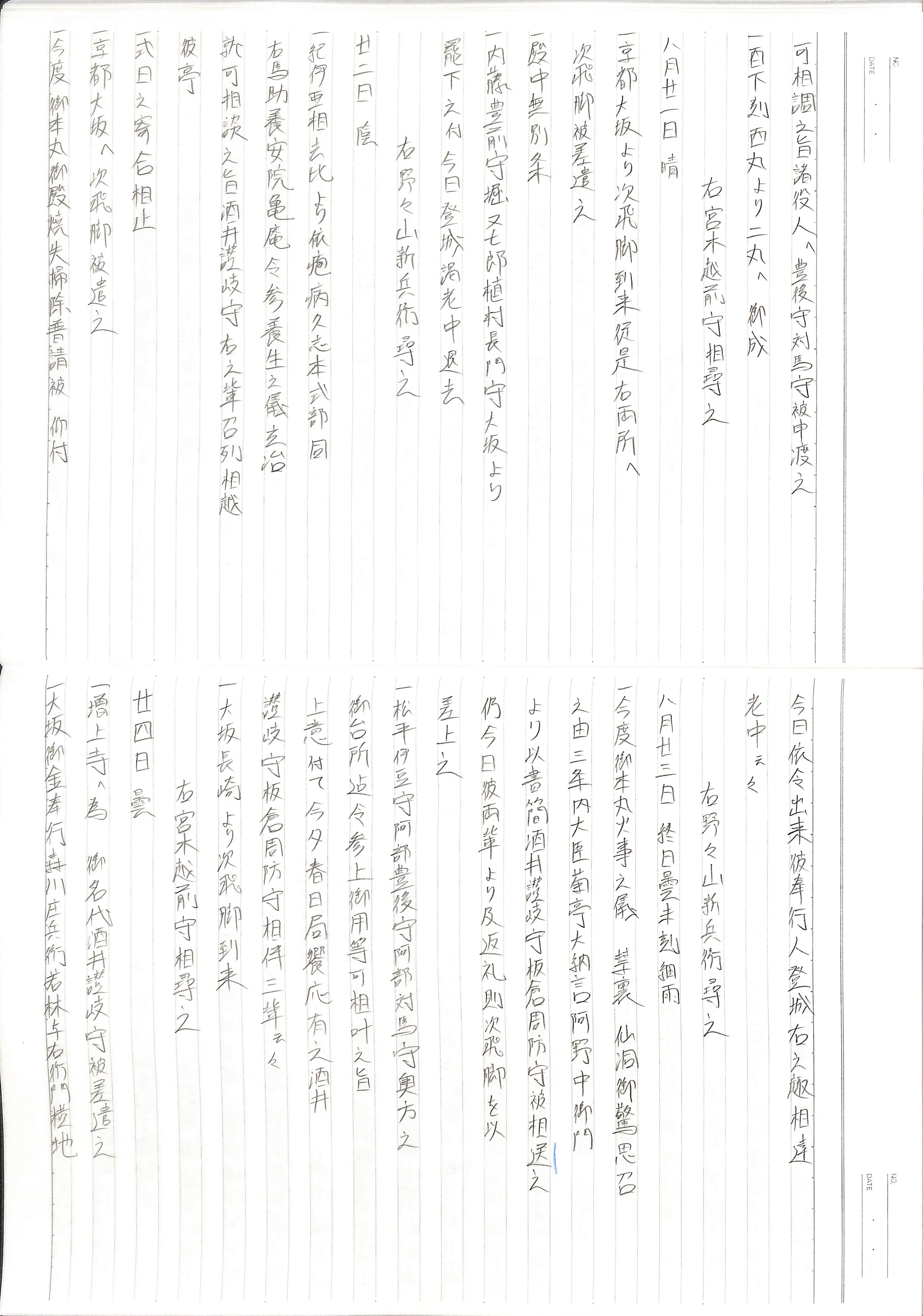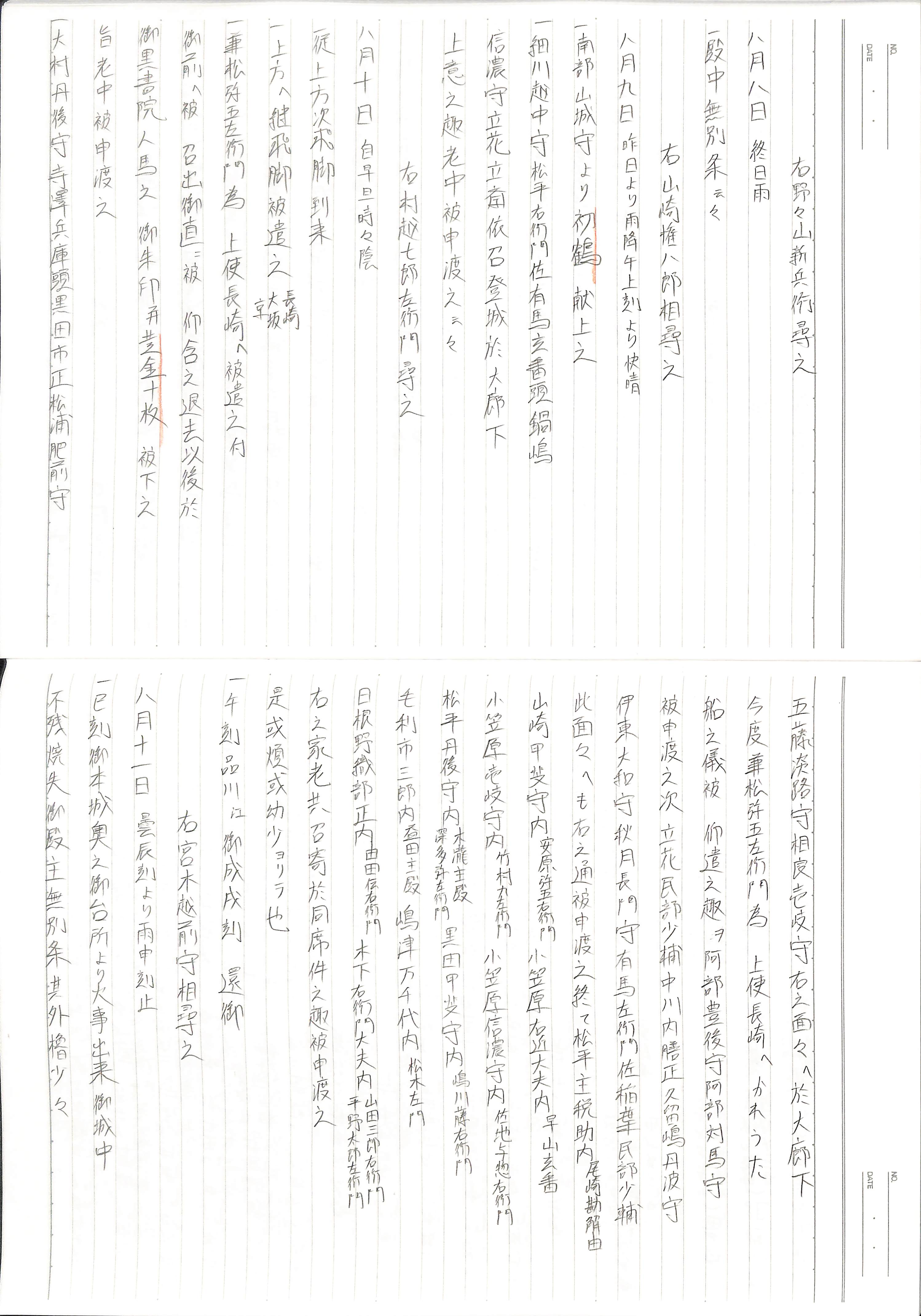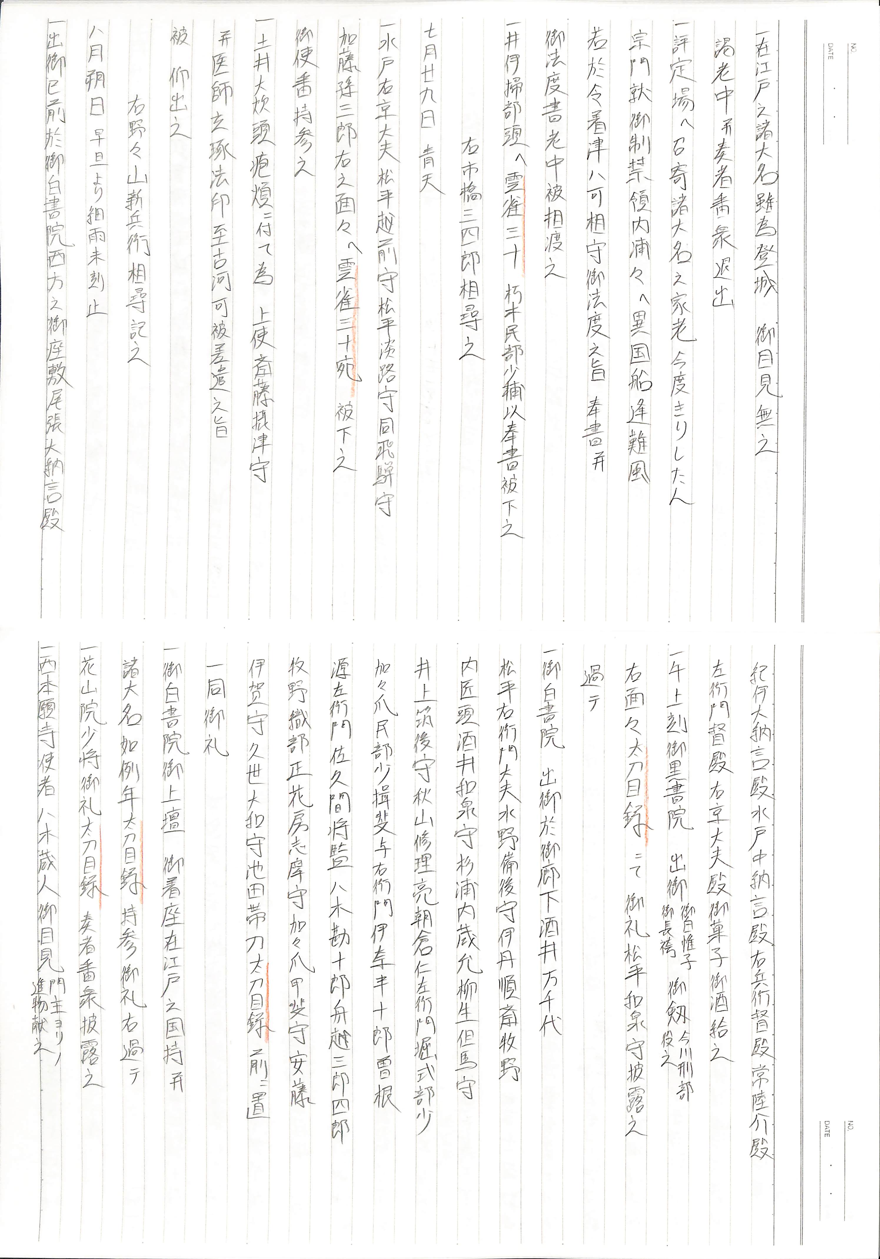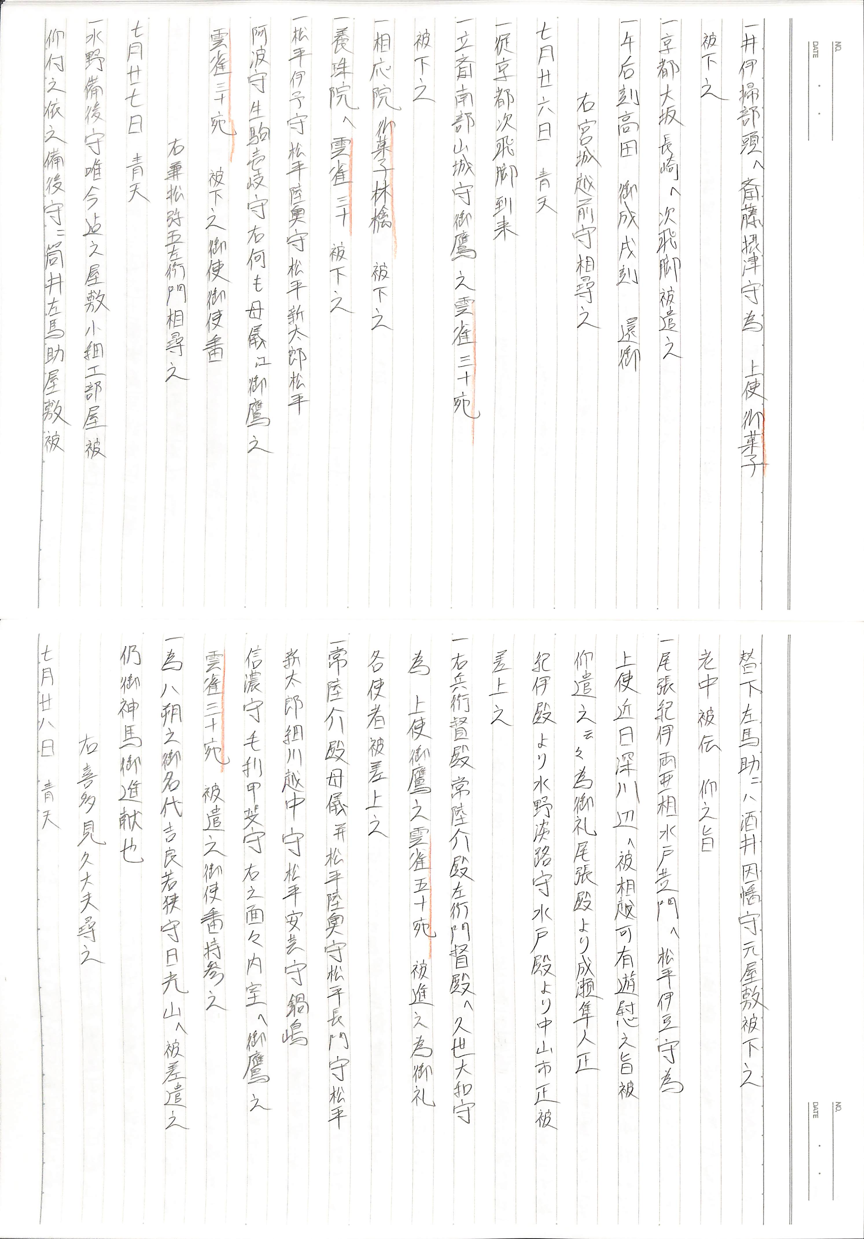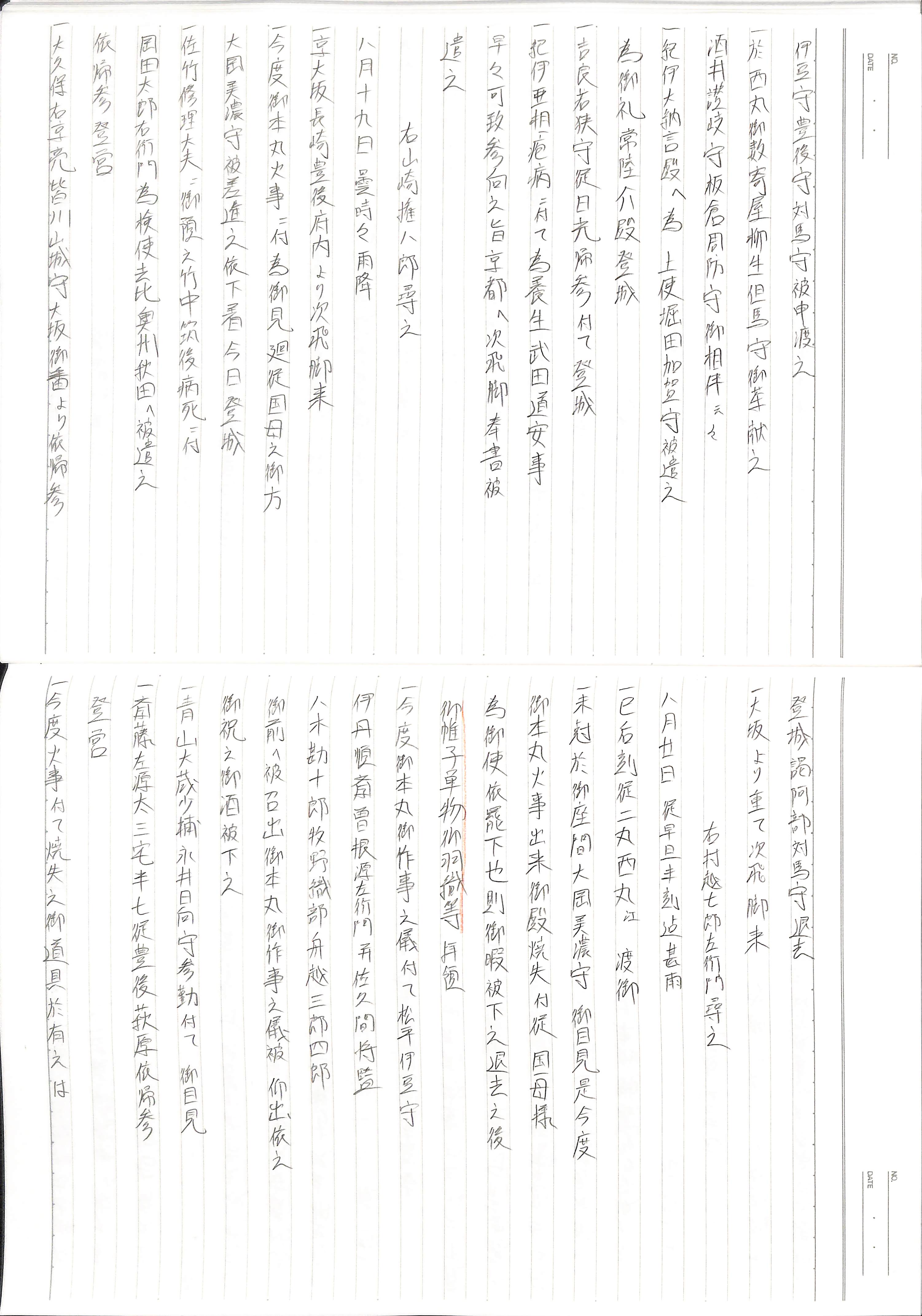 藤井讓治監修『江戸幕府日記姫路酒井家本』第8巻(ゆまに書房、2003年)より作成。原史料は姫路市立城郭研究室所蔵。