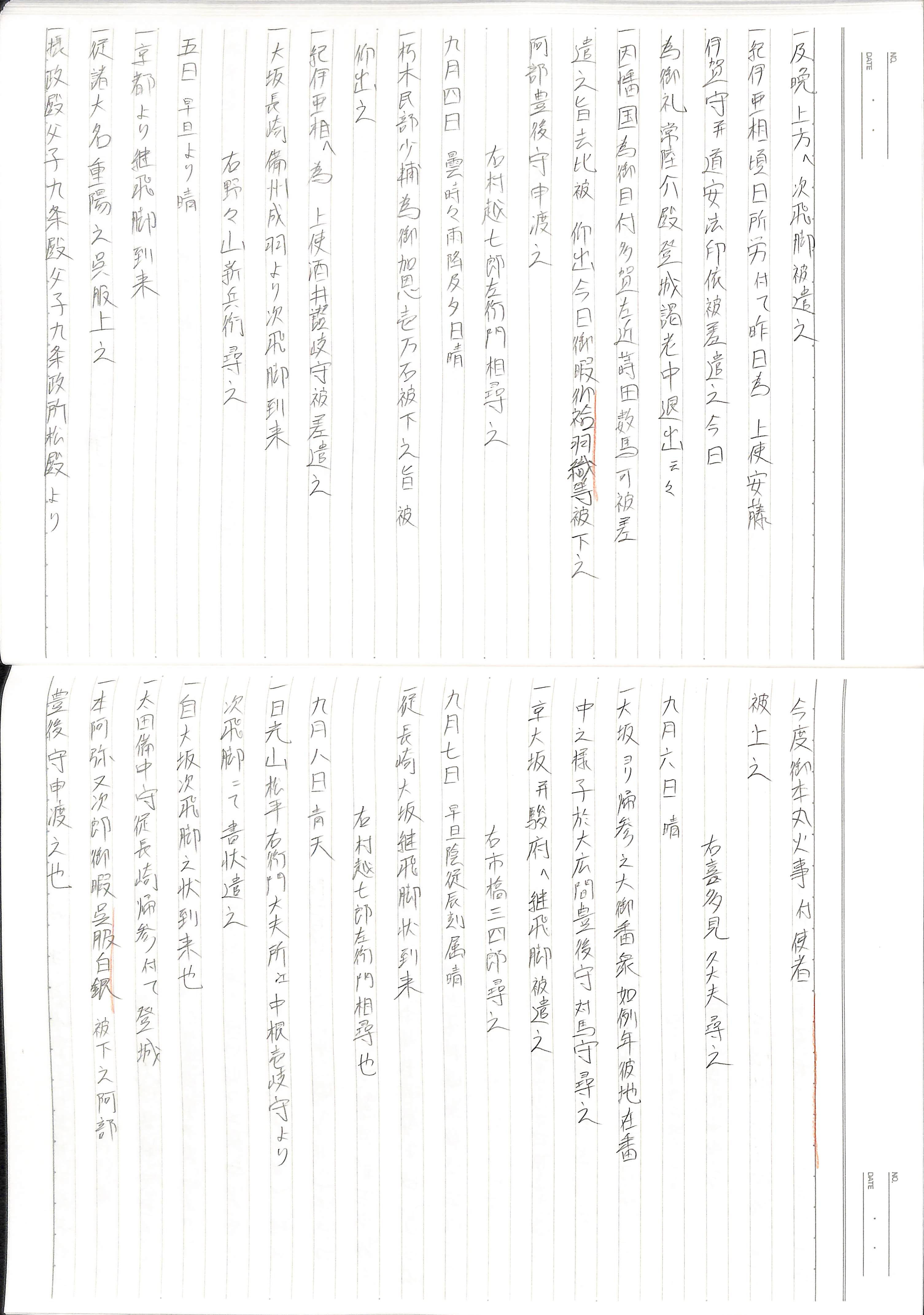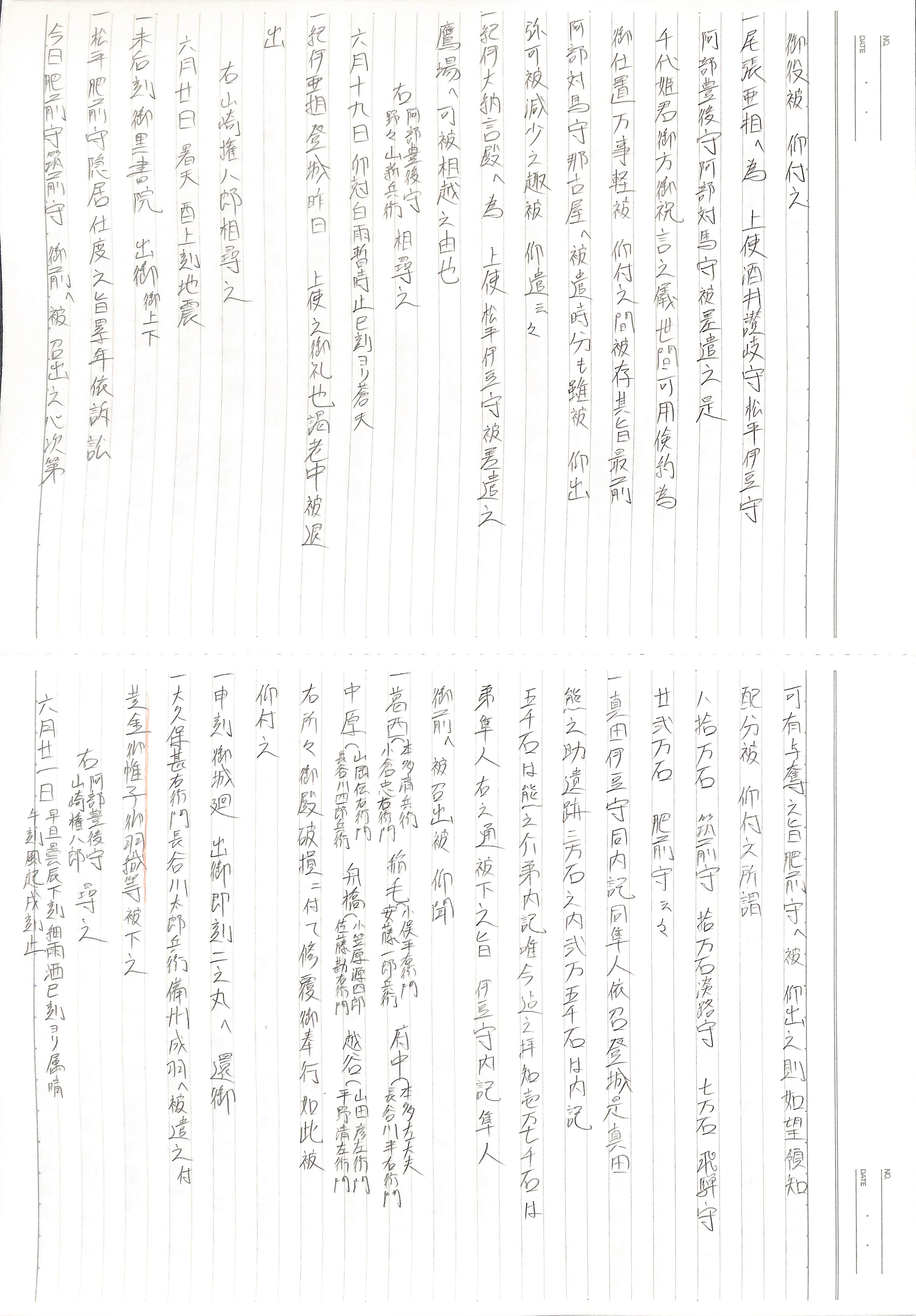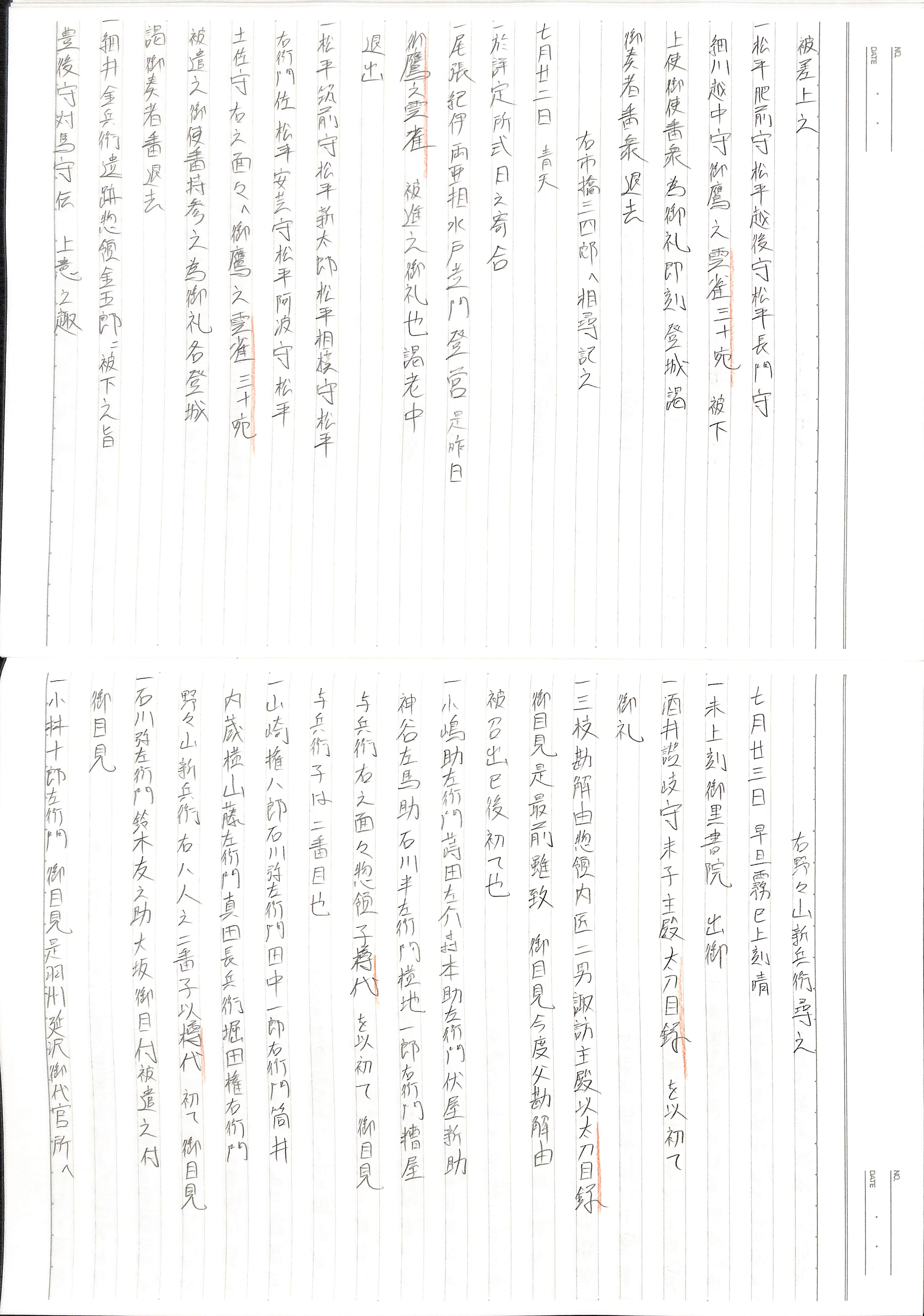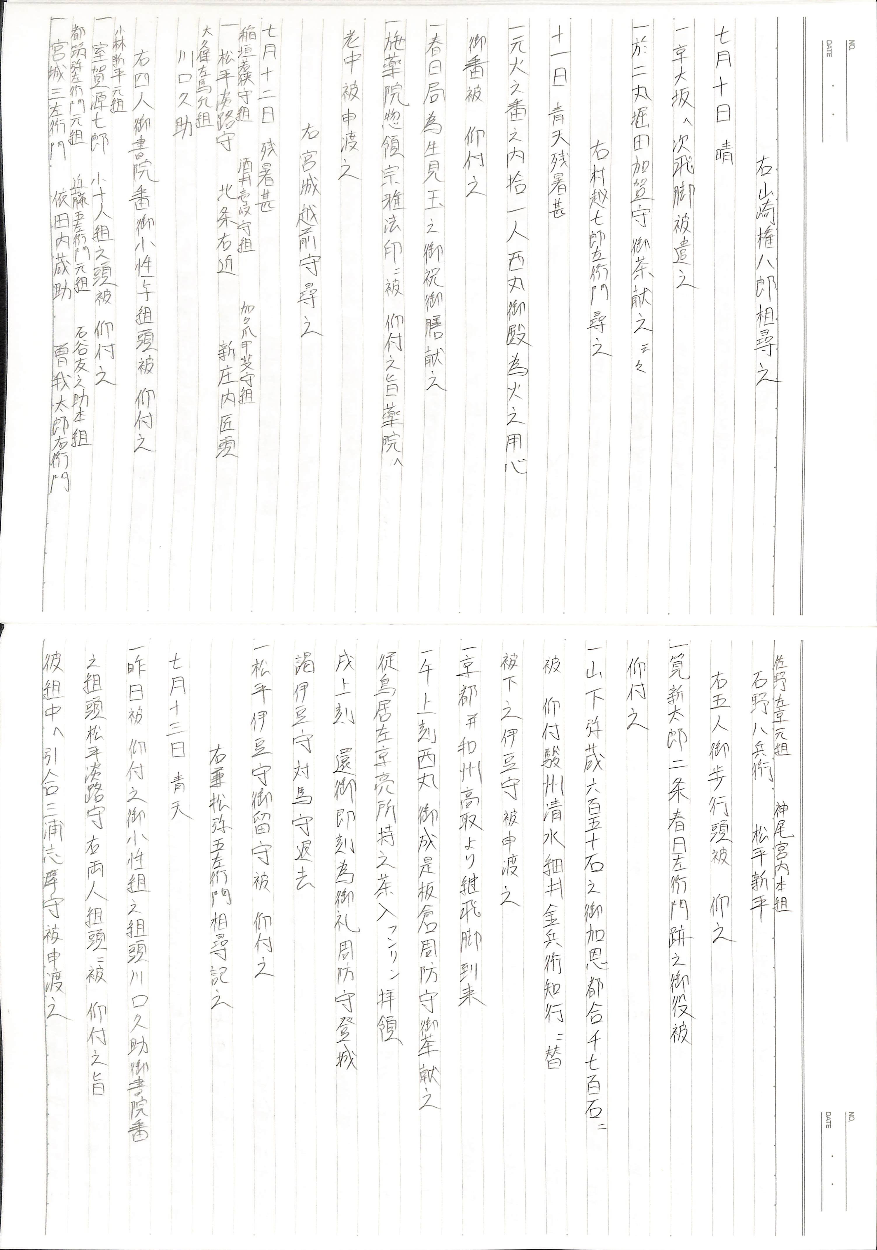 藤井讓治監修『江戸幕府日記姫路酒井家本』第8巻(ゆまに書房、2003年)より作成。原史料は姫路市立城郭研究室所蔵。