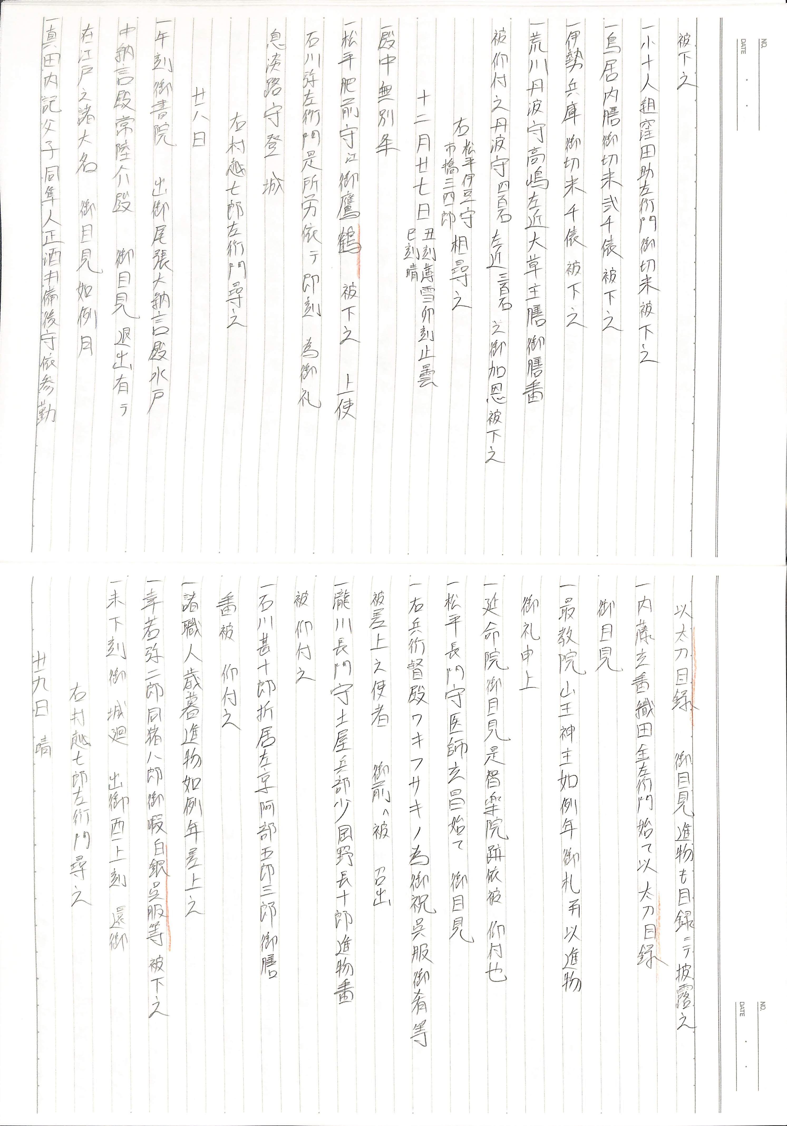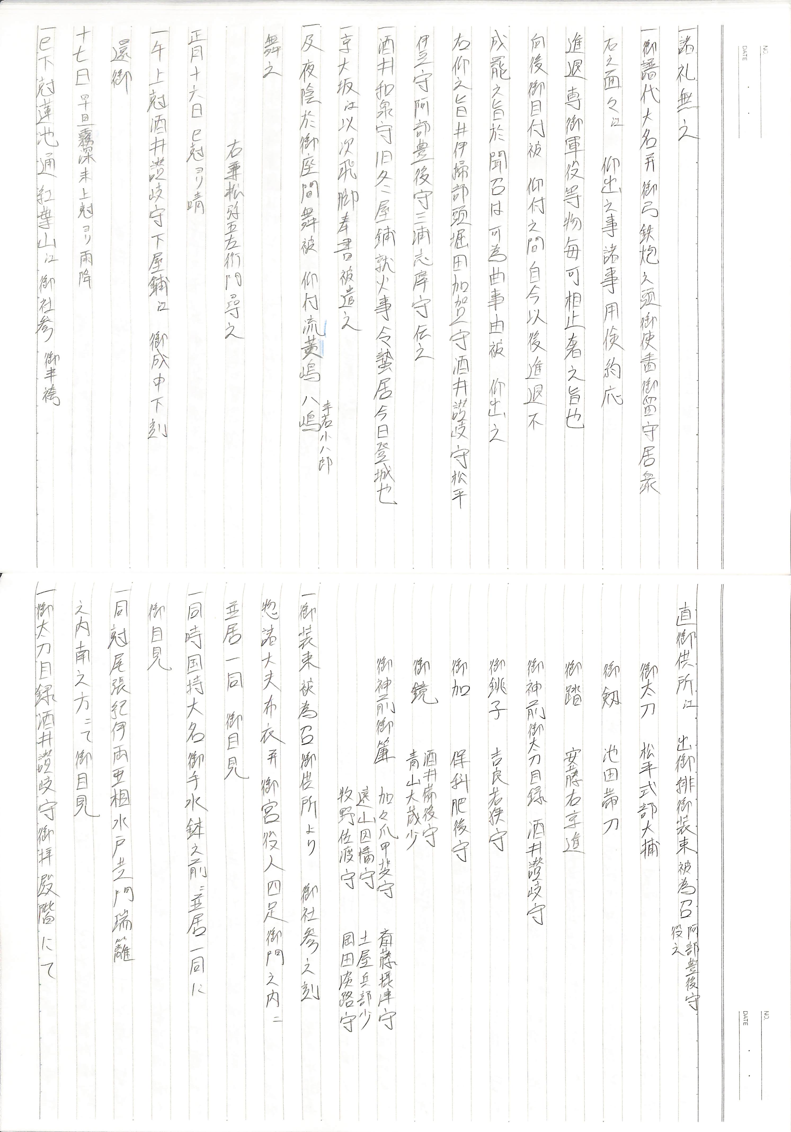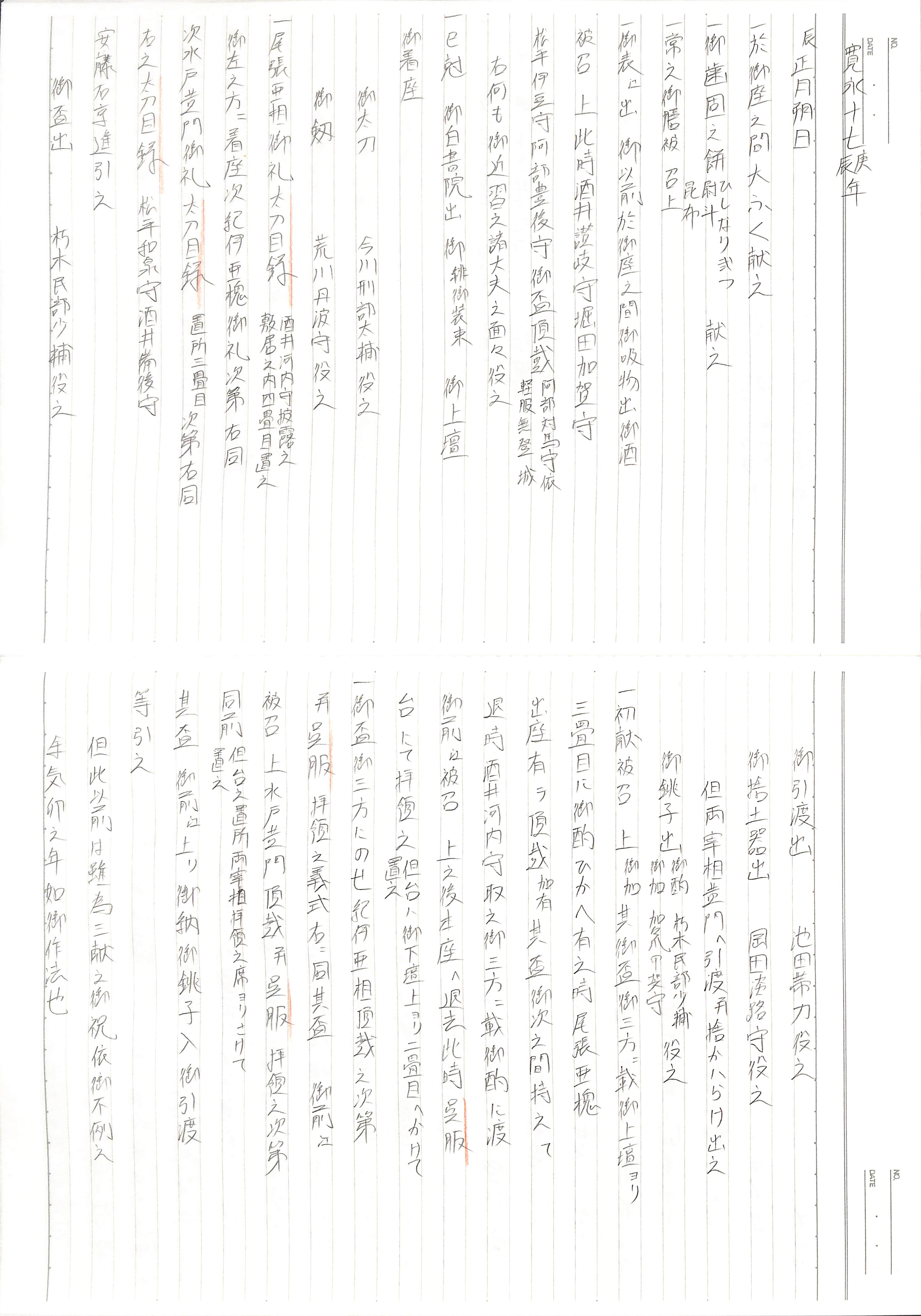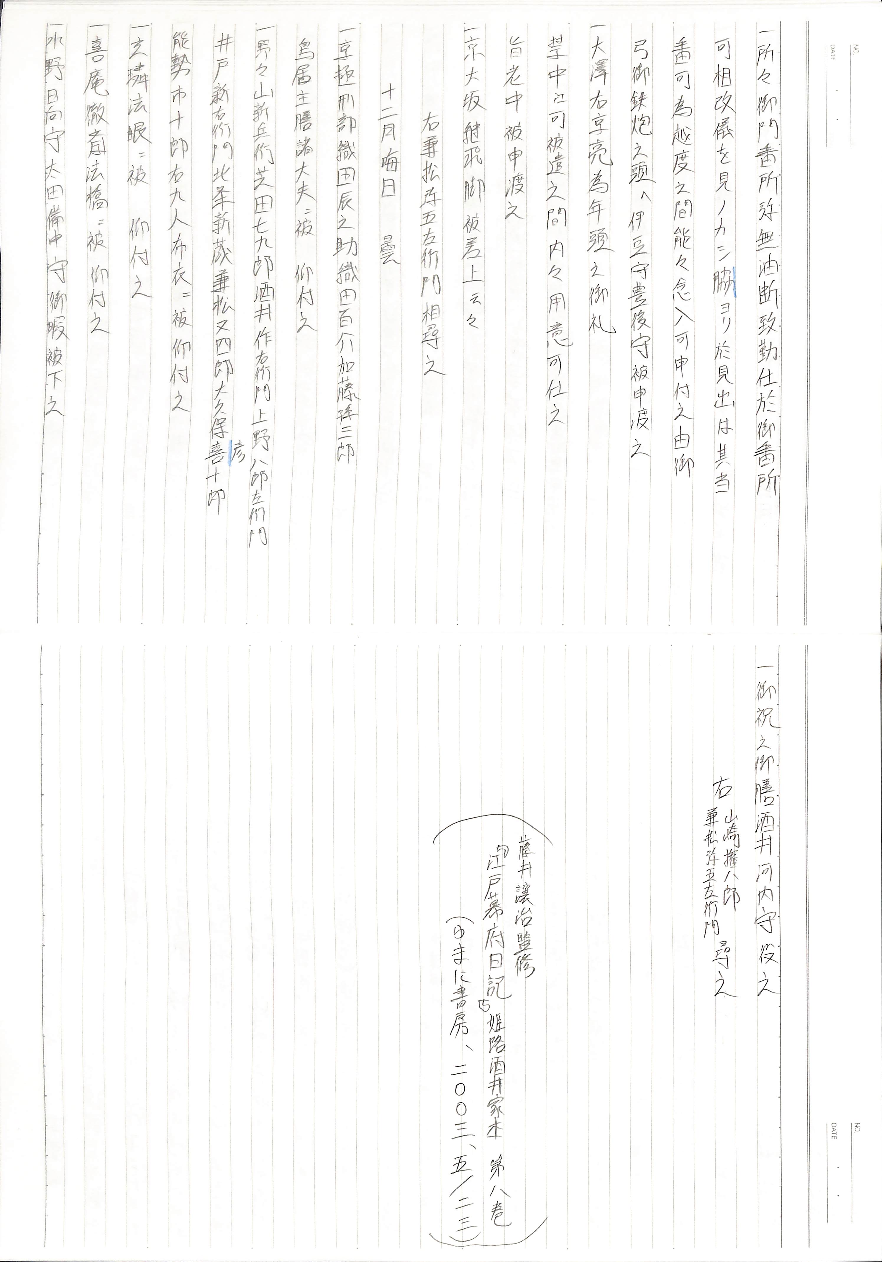 藤井讓治監修『江戸幕府日記姫路酒井家本』第8、9巻(ゆまに書房、2003年)より作成。原史料は姫路市立城郭研究室所蔵。