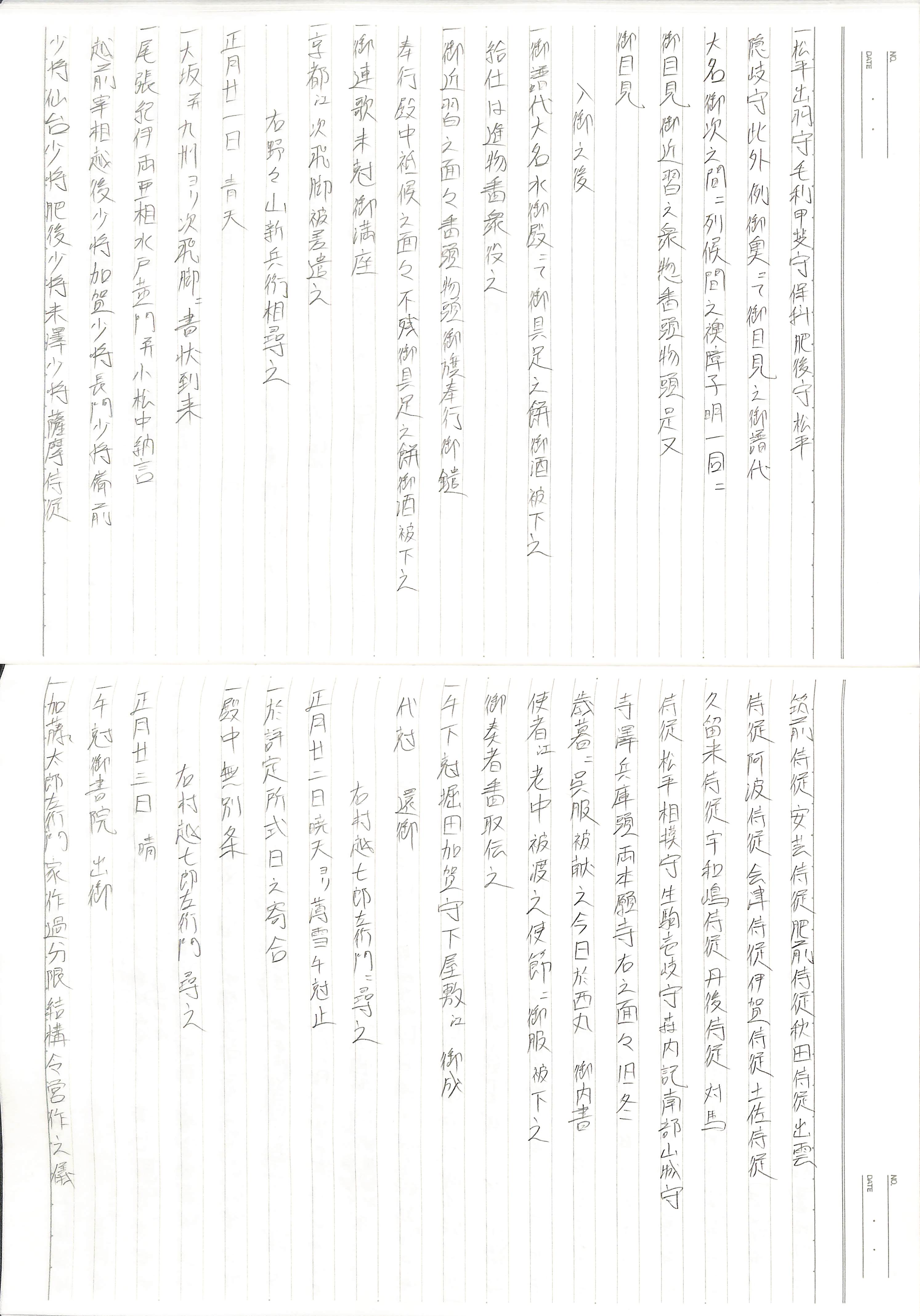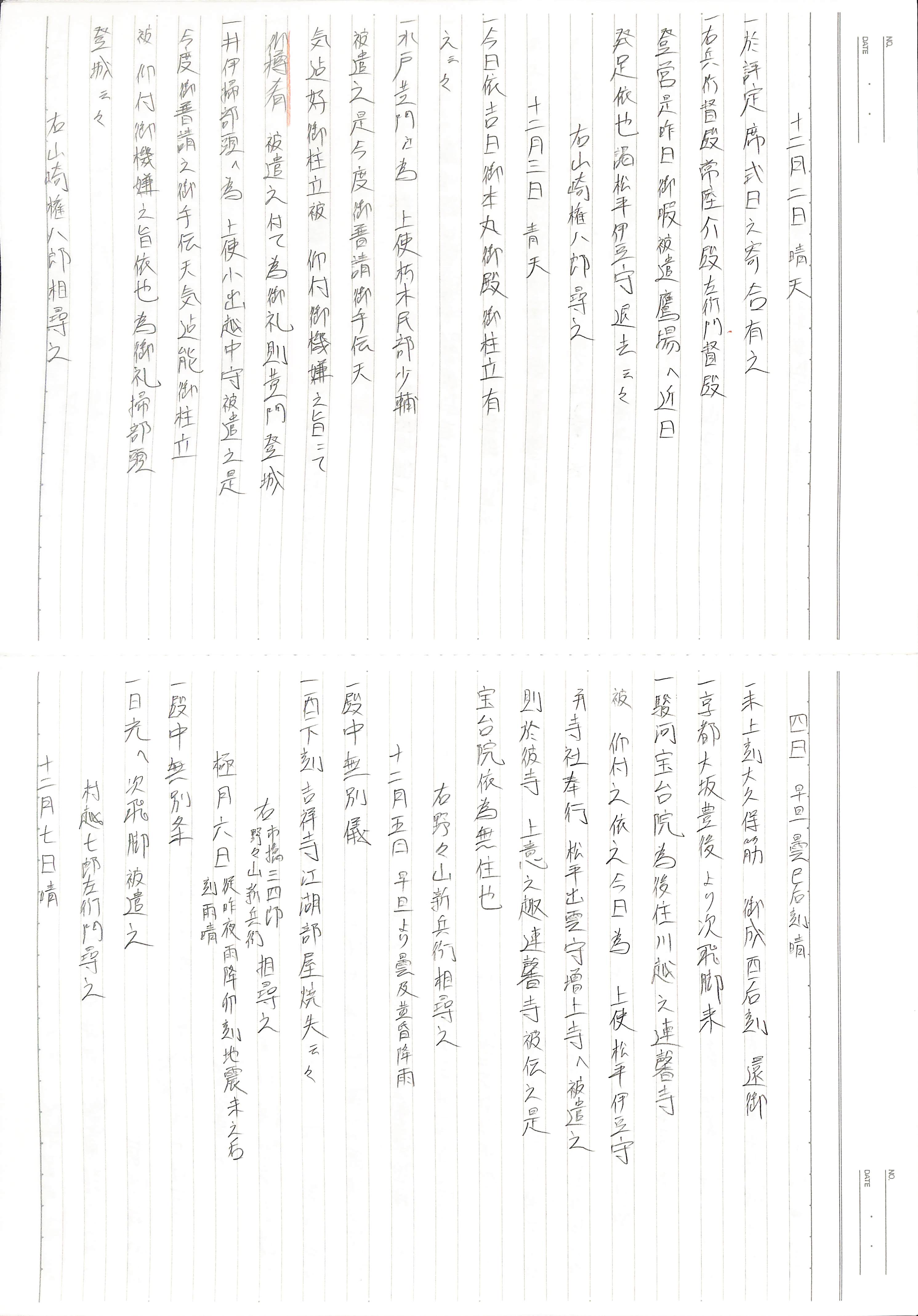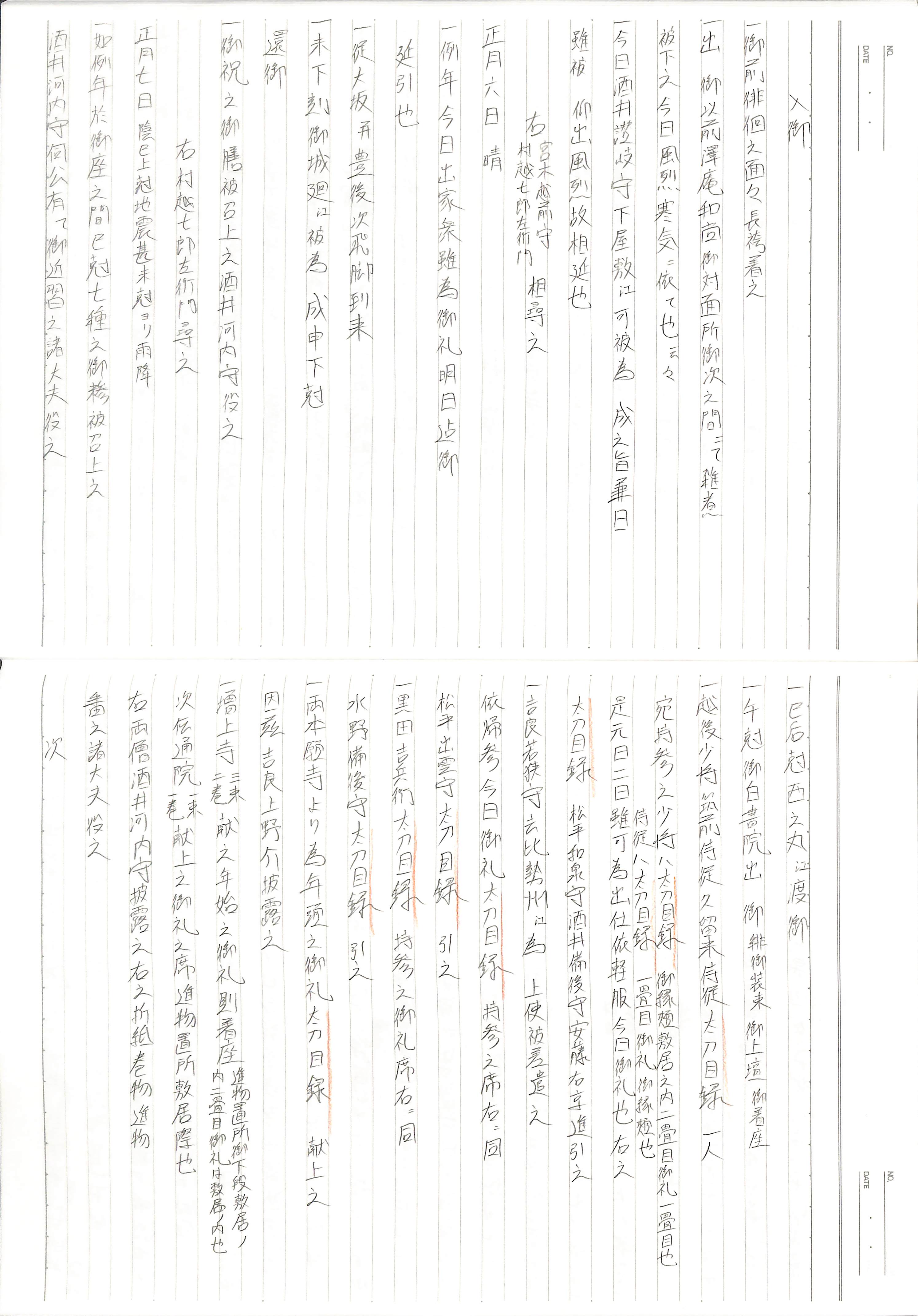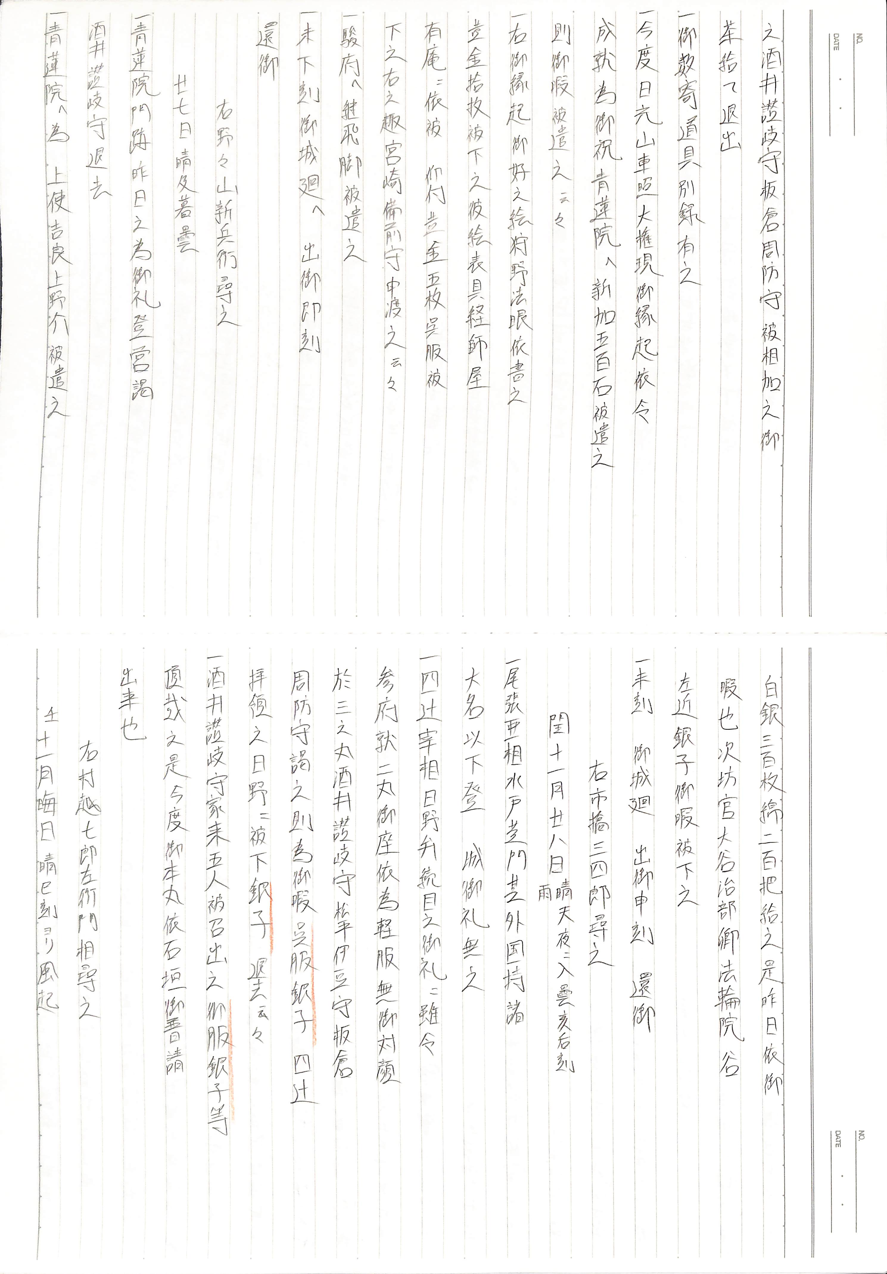 藤井讓治監修『江戸幕府日記姫路酒井家本』第8、9巻(ゆまに書房、2003年)より作成。原史料は姫路市立城郭研究室所蔵。
