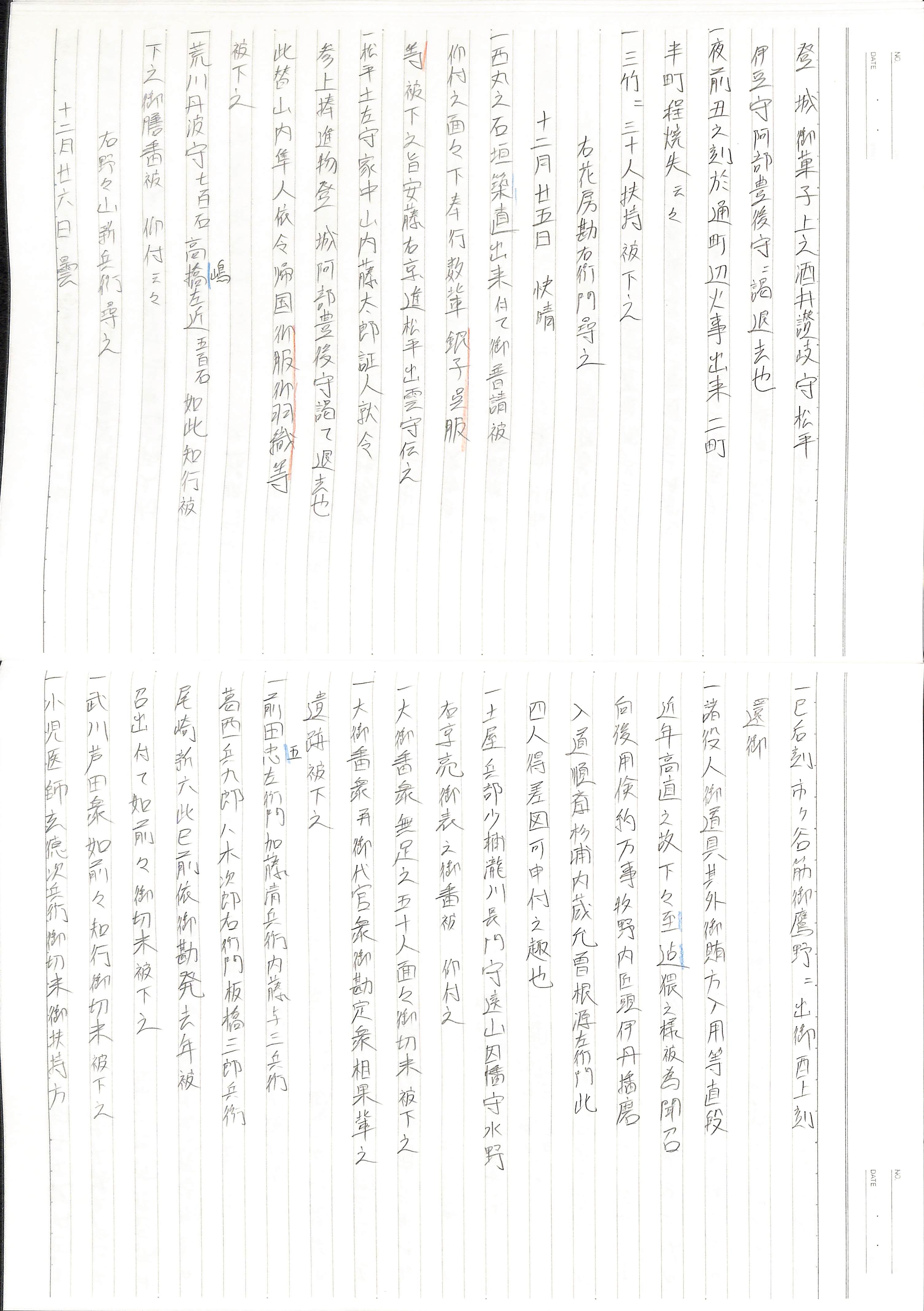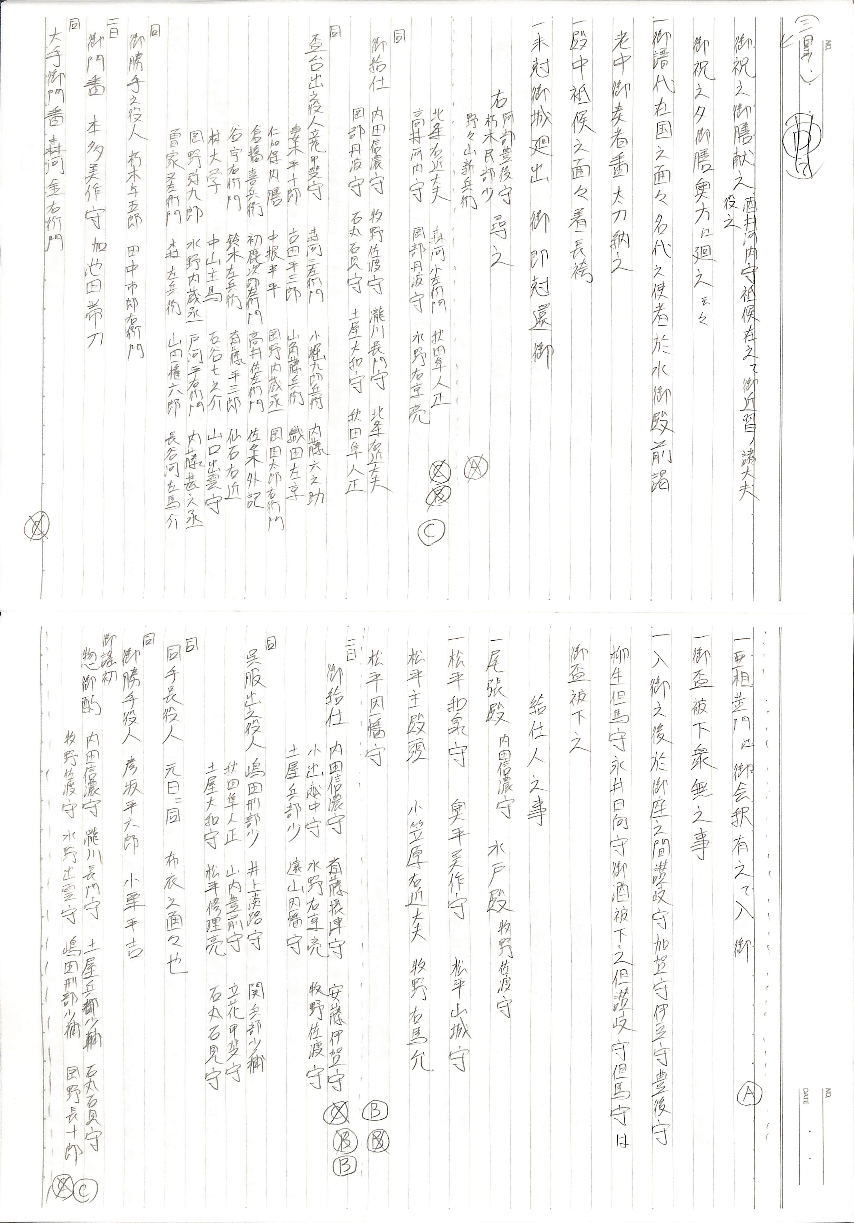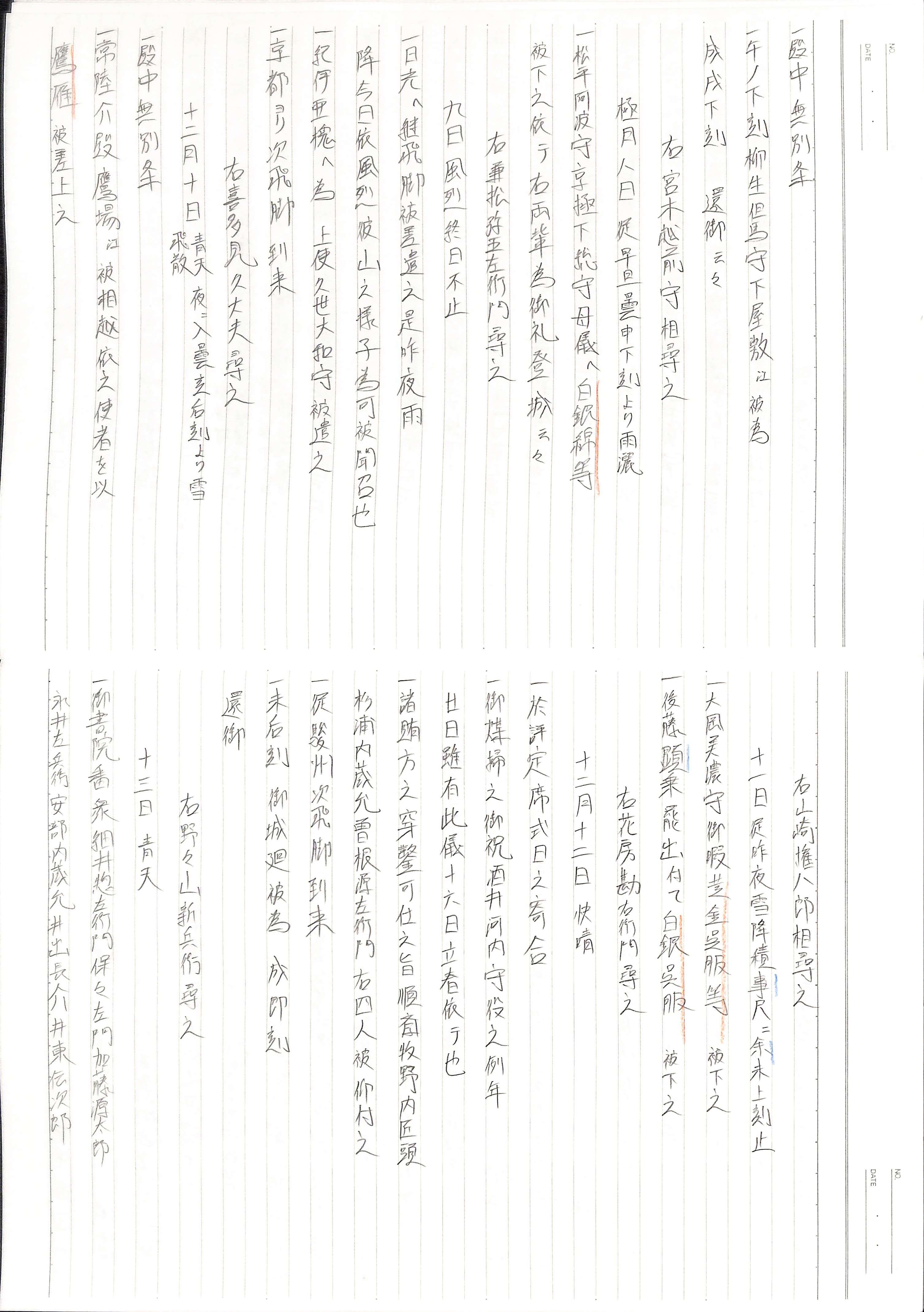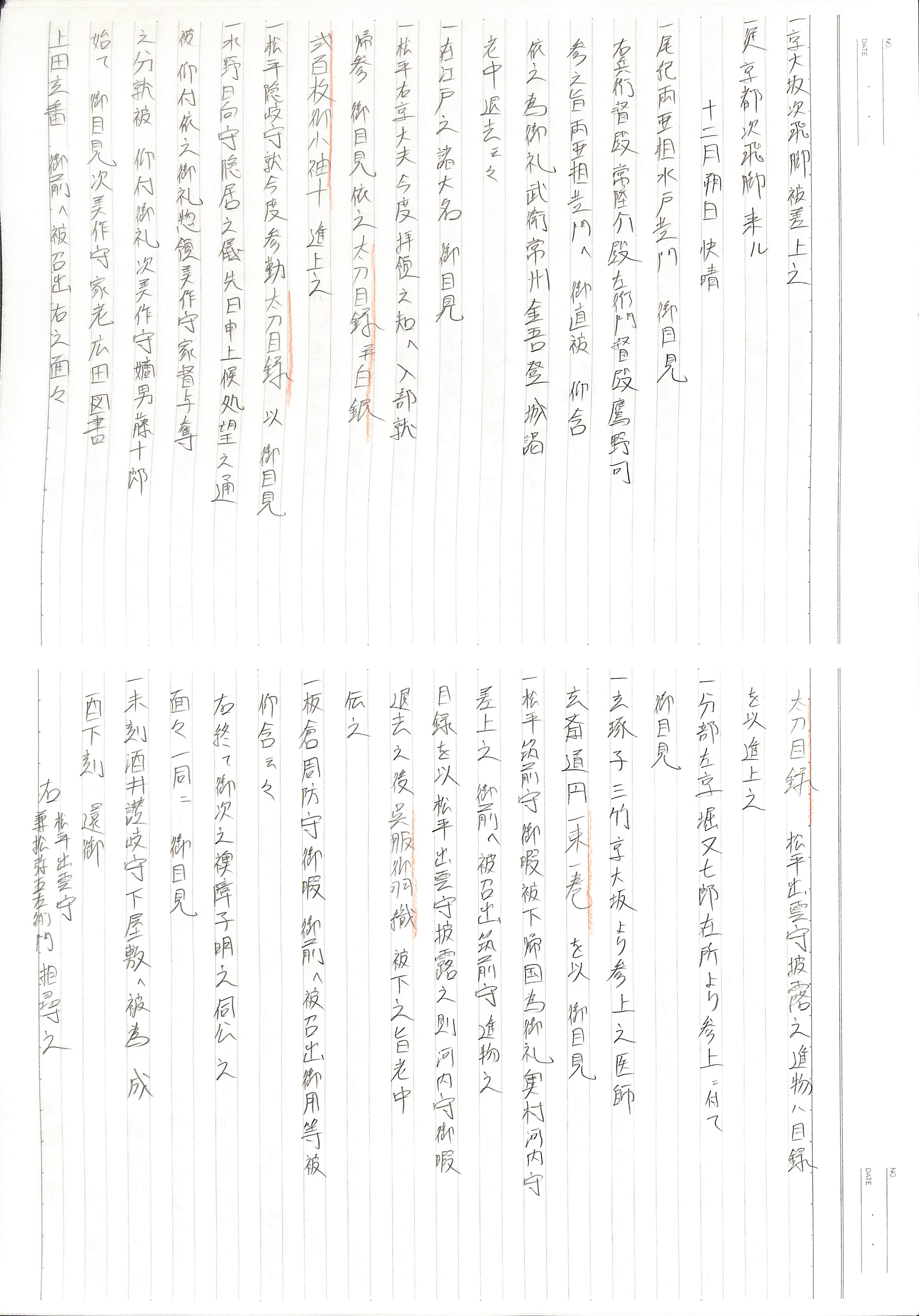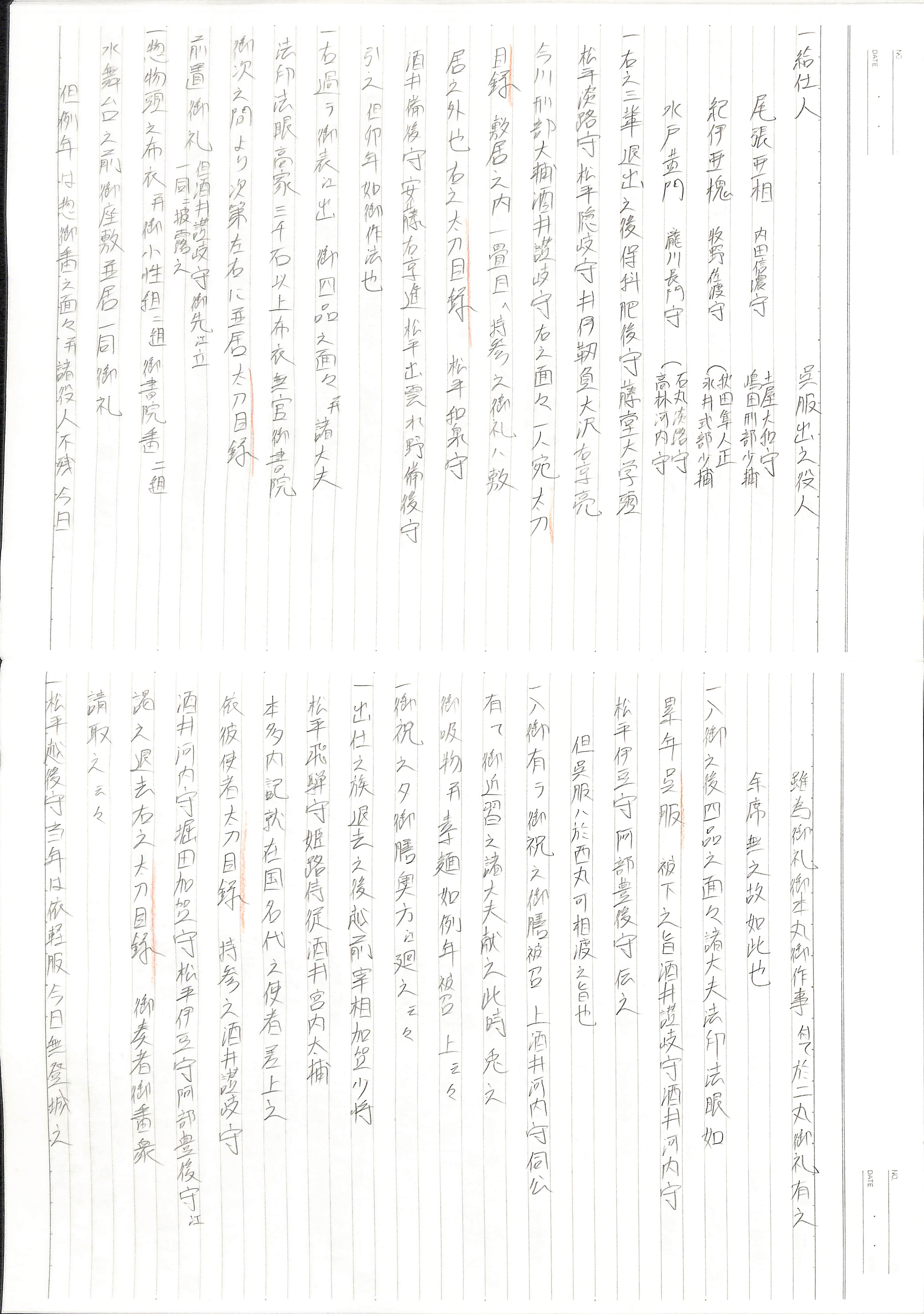 藤井讓治監修『江戸幕府日記姫路酒井家本』第8、9巻(ゆまに書房、2003年)より作成。原史料は姫路市立城郭研究室所蔵。