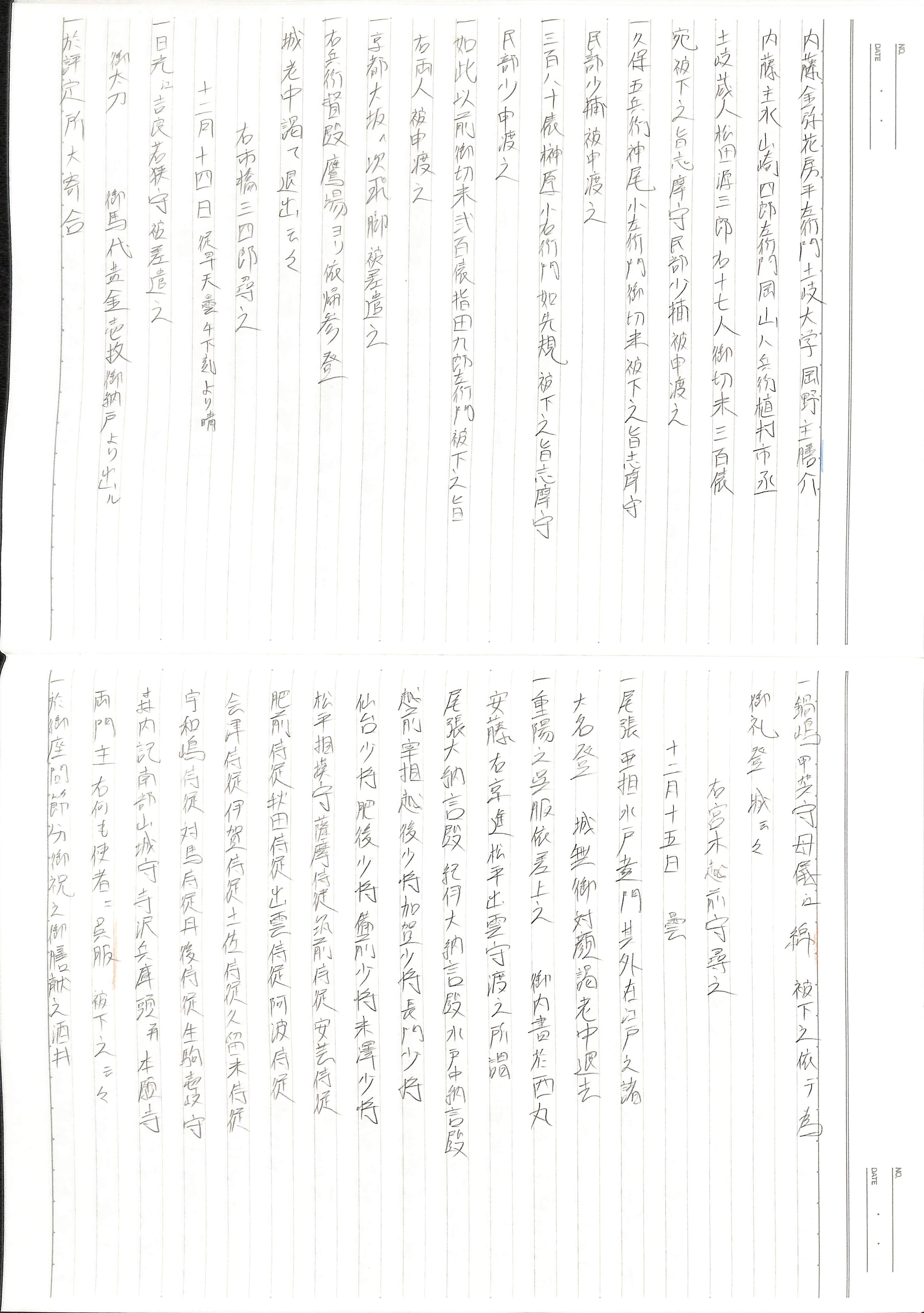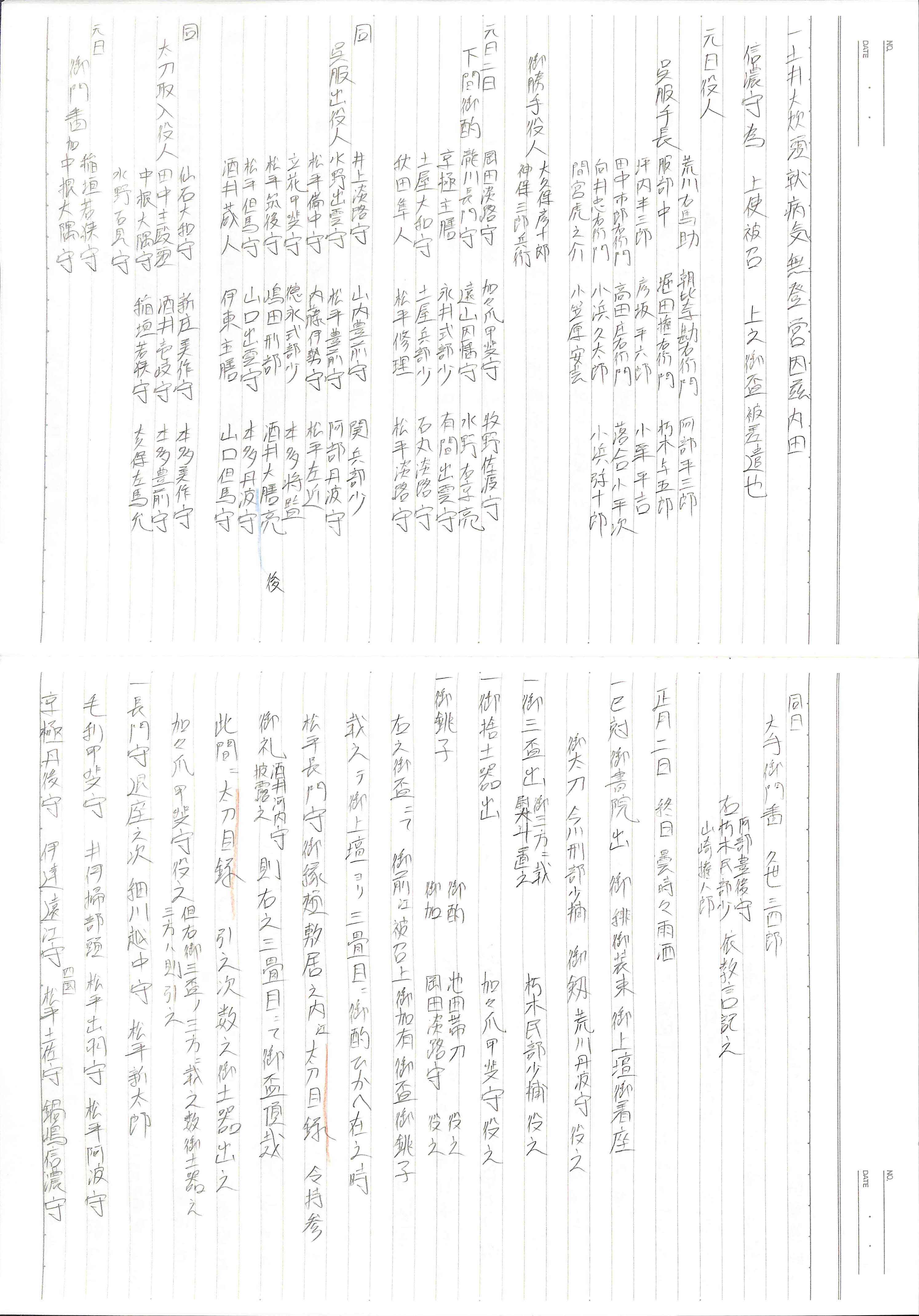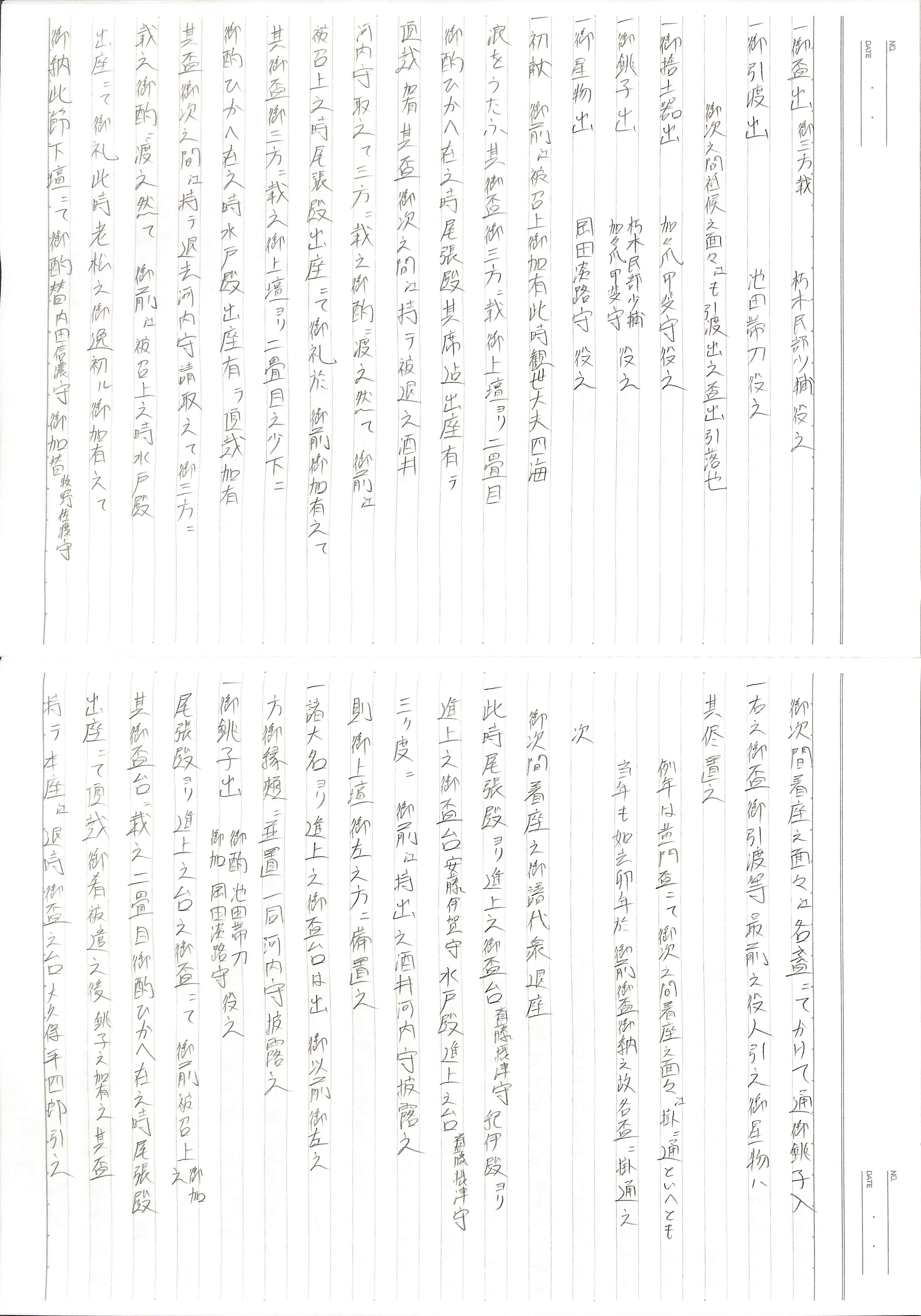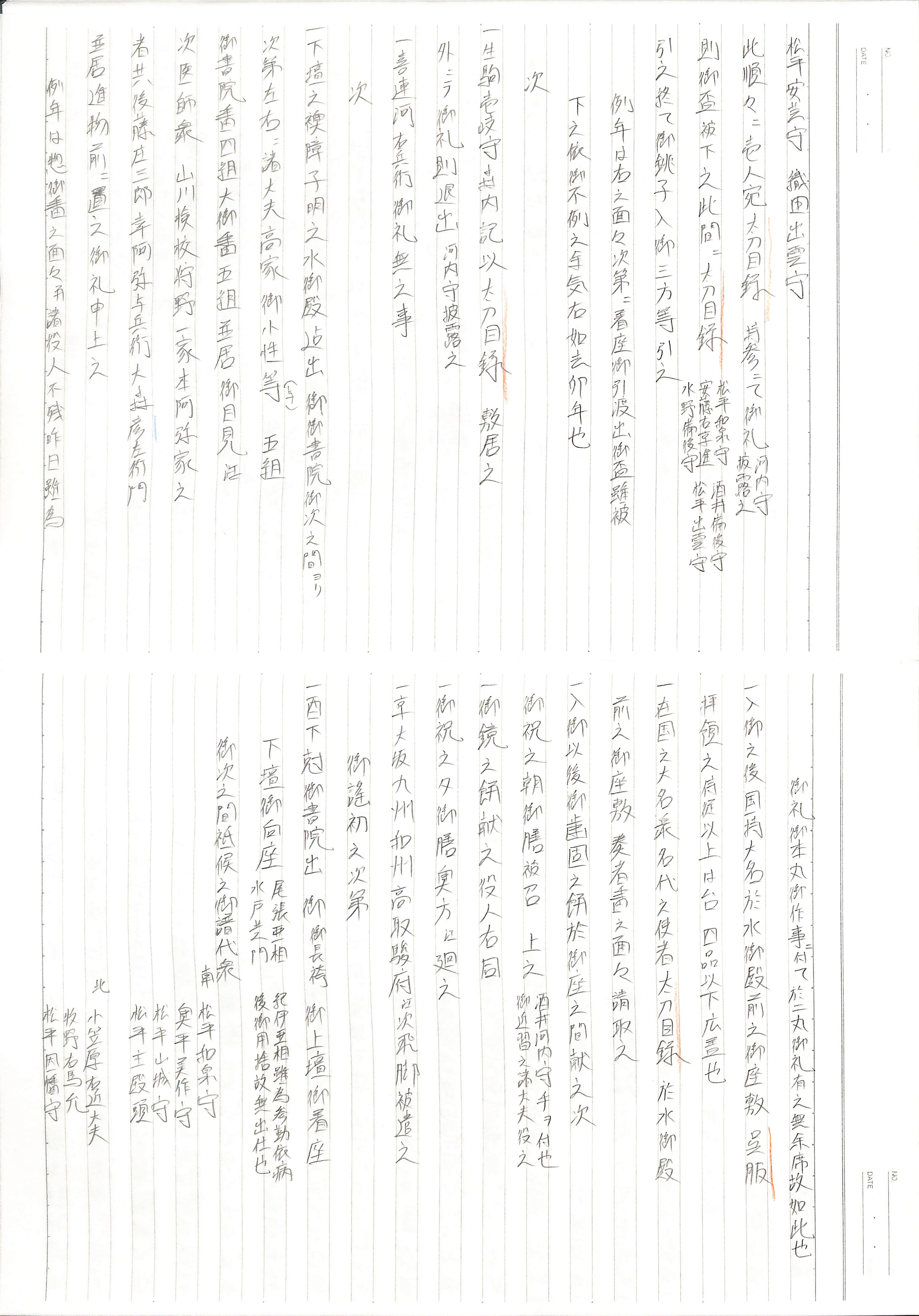 藤井讓治監修『江戸幕府日記姫路酒井家本』第8、9巻(ゆまに書房、2003年)より作成。原史料は姫路市立城郭研究室所蔵。