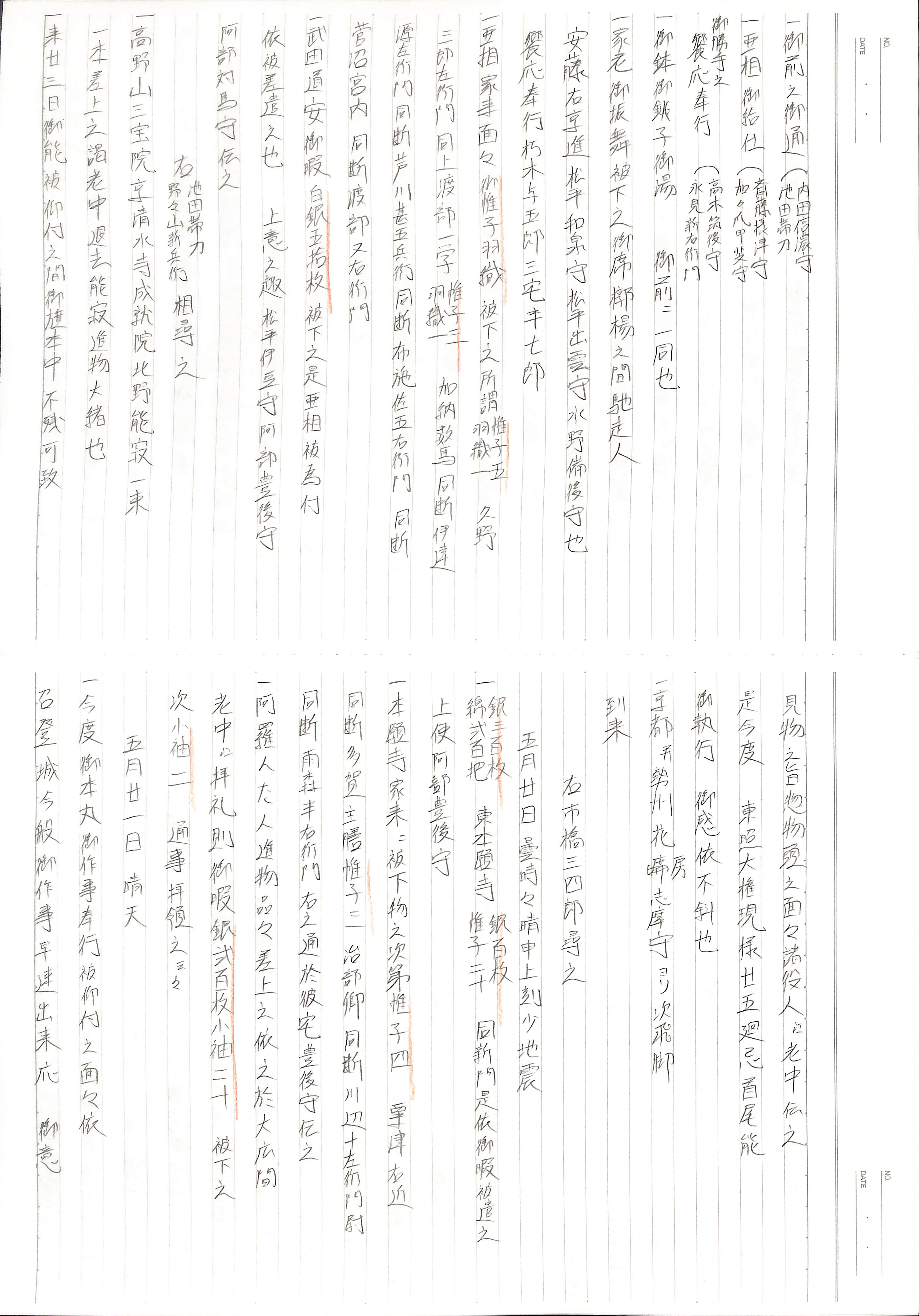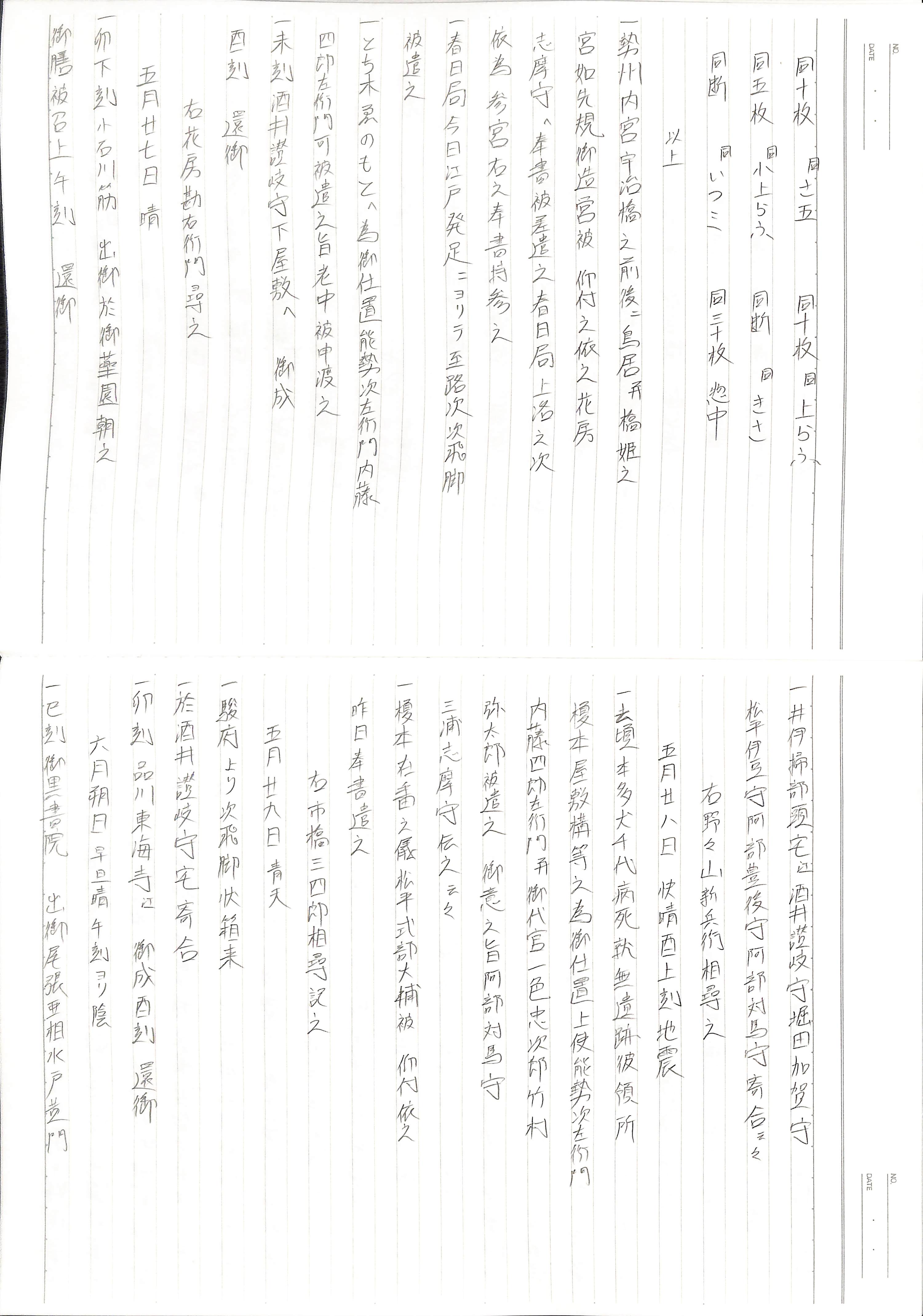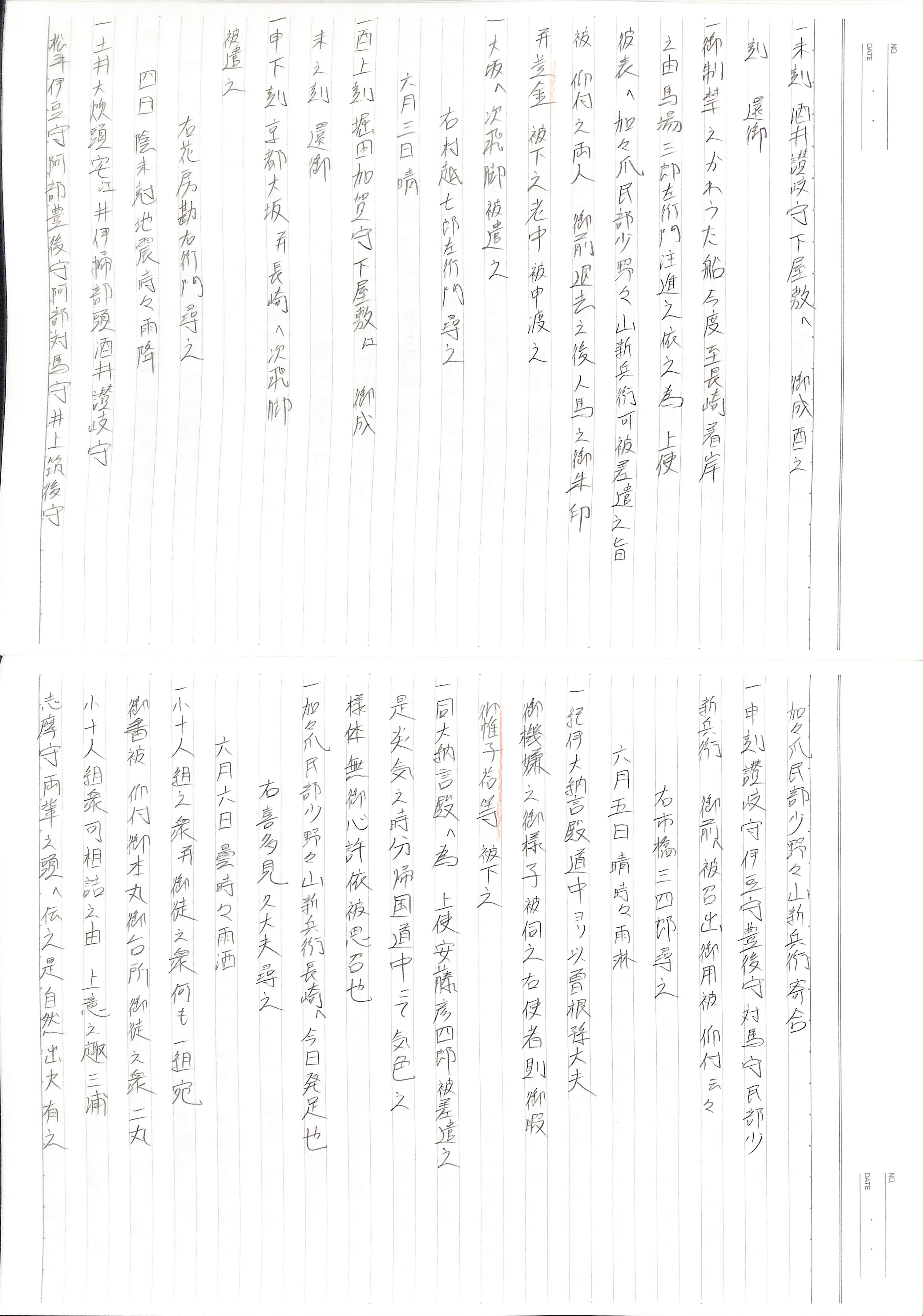 藤井讓治監修『江戸幕府日記姫路酒井家本』第9巻(ゆまに書房、2003年)より作成。原史料は姫路市立城郭研究室所蔵。