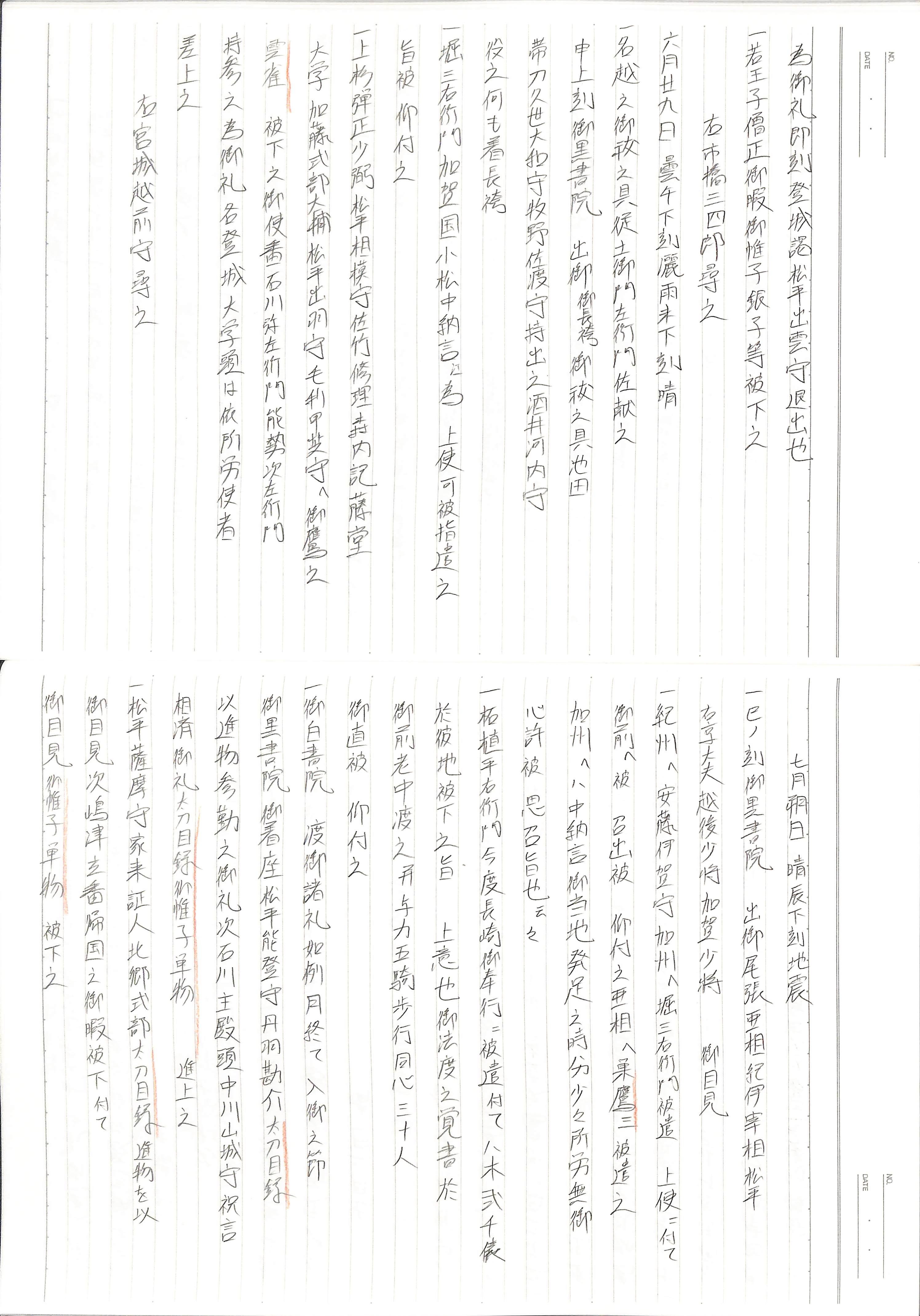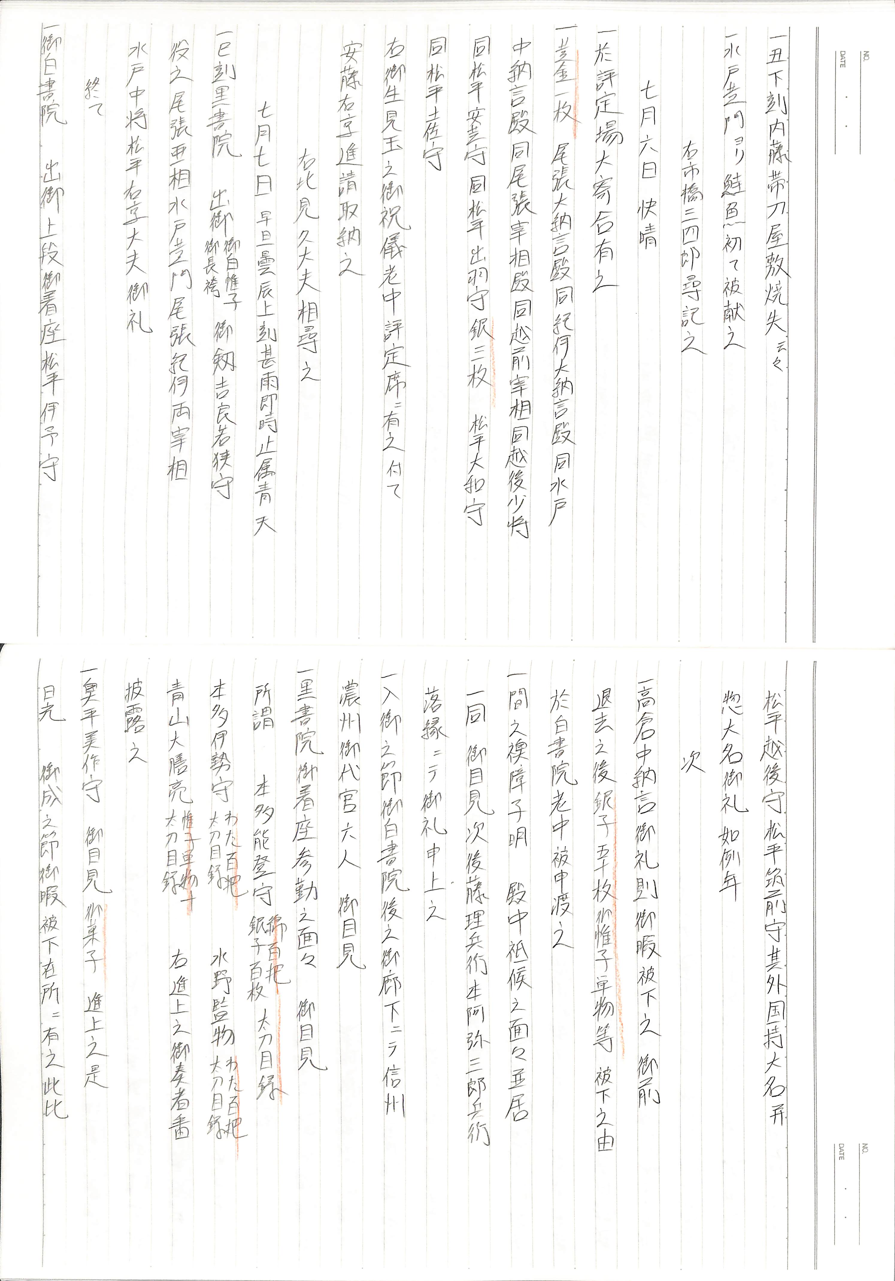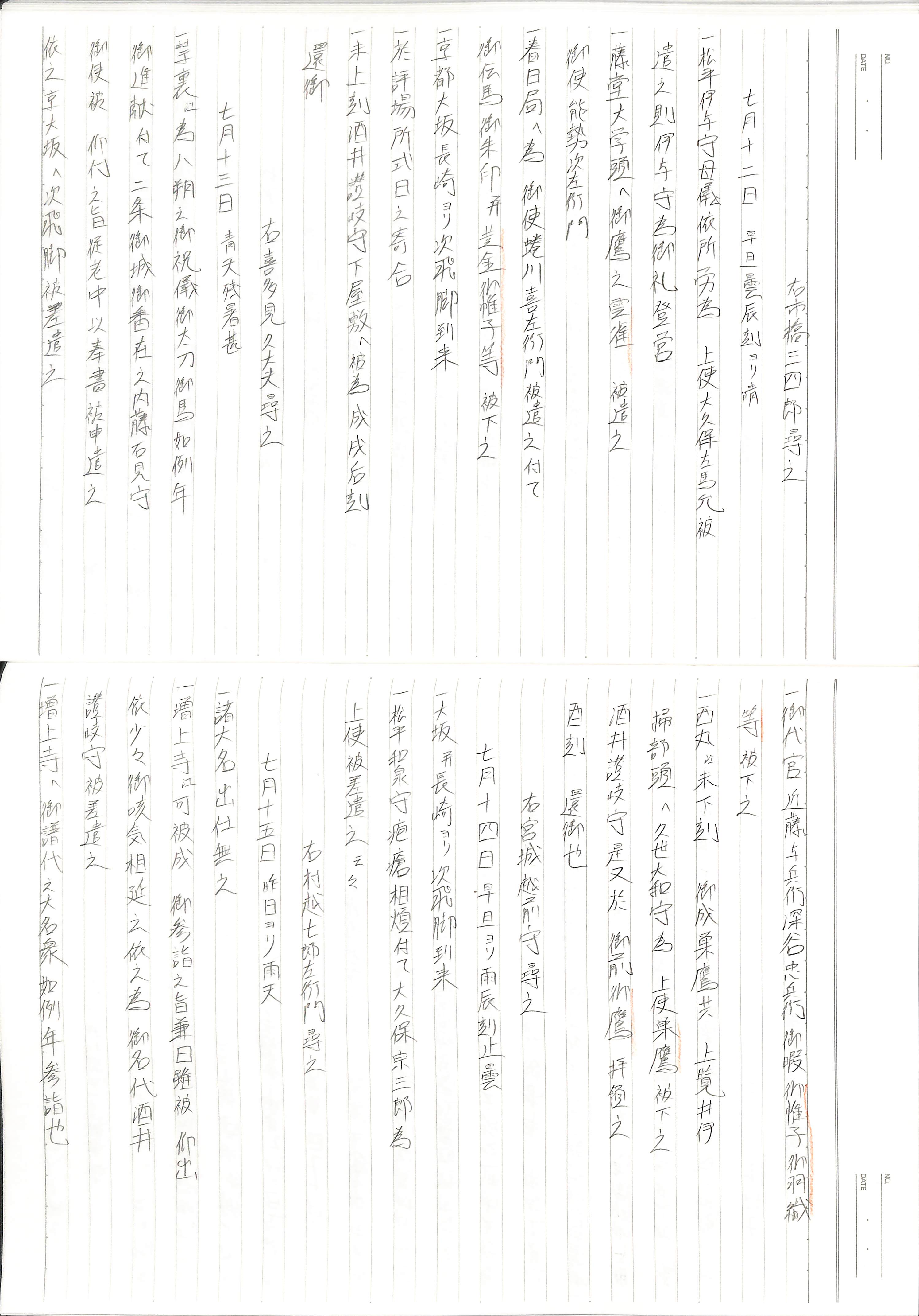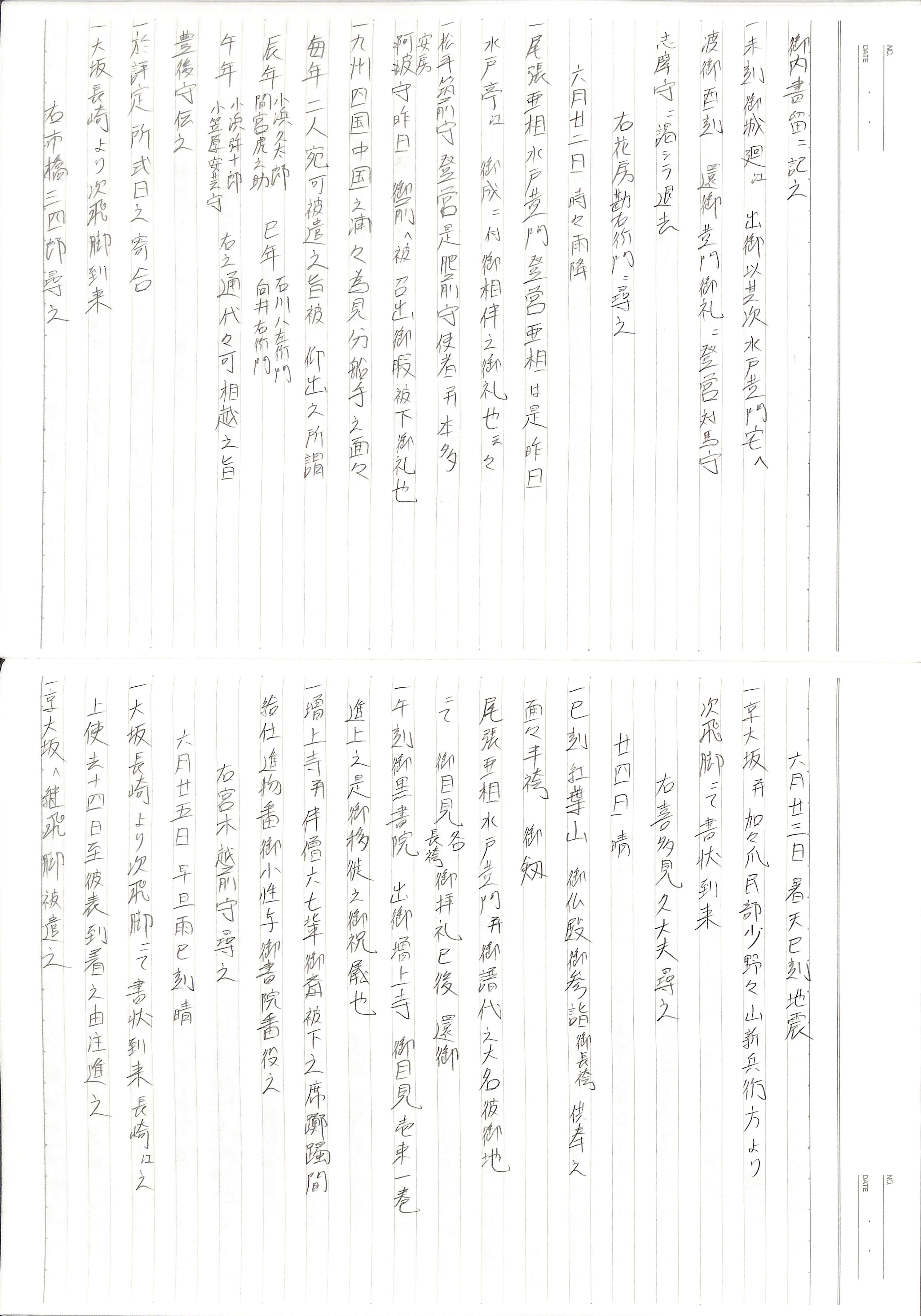 藤井讓治監修『江戸幕府日記姫路酒井家本』第9巻(ゆまに書房、2003年)より作成。原史料は姫路市立城郭研究室所蔵。