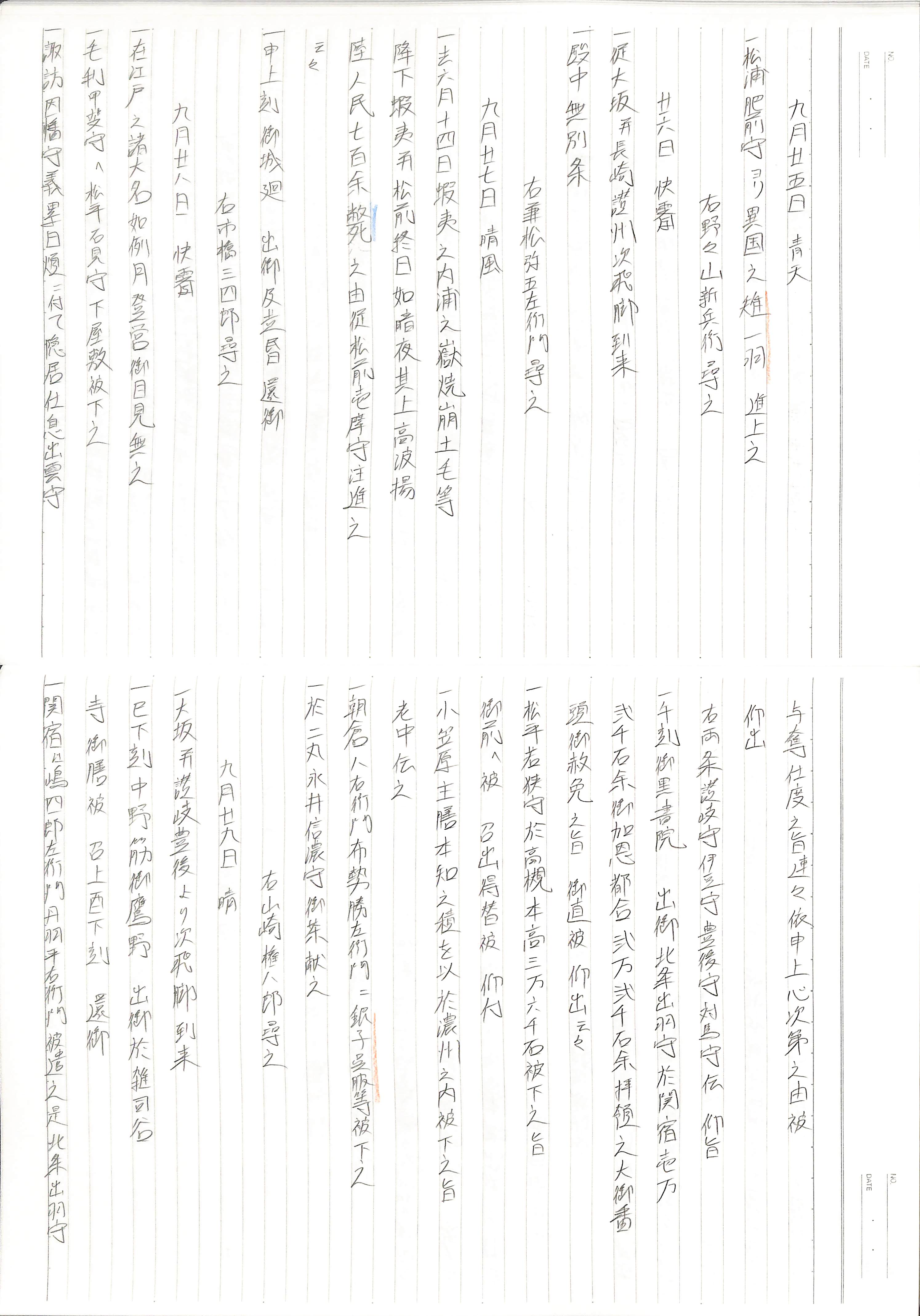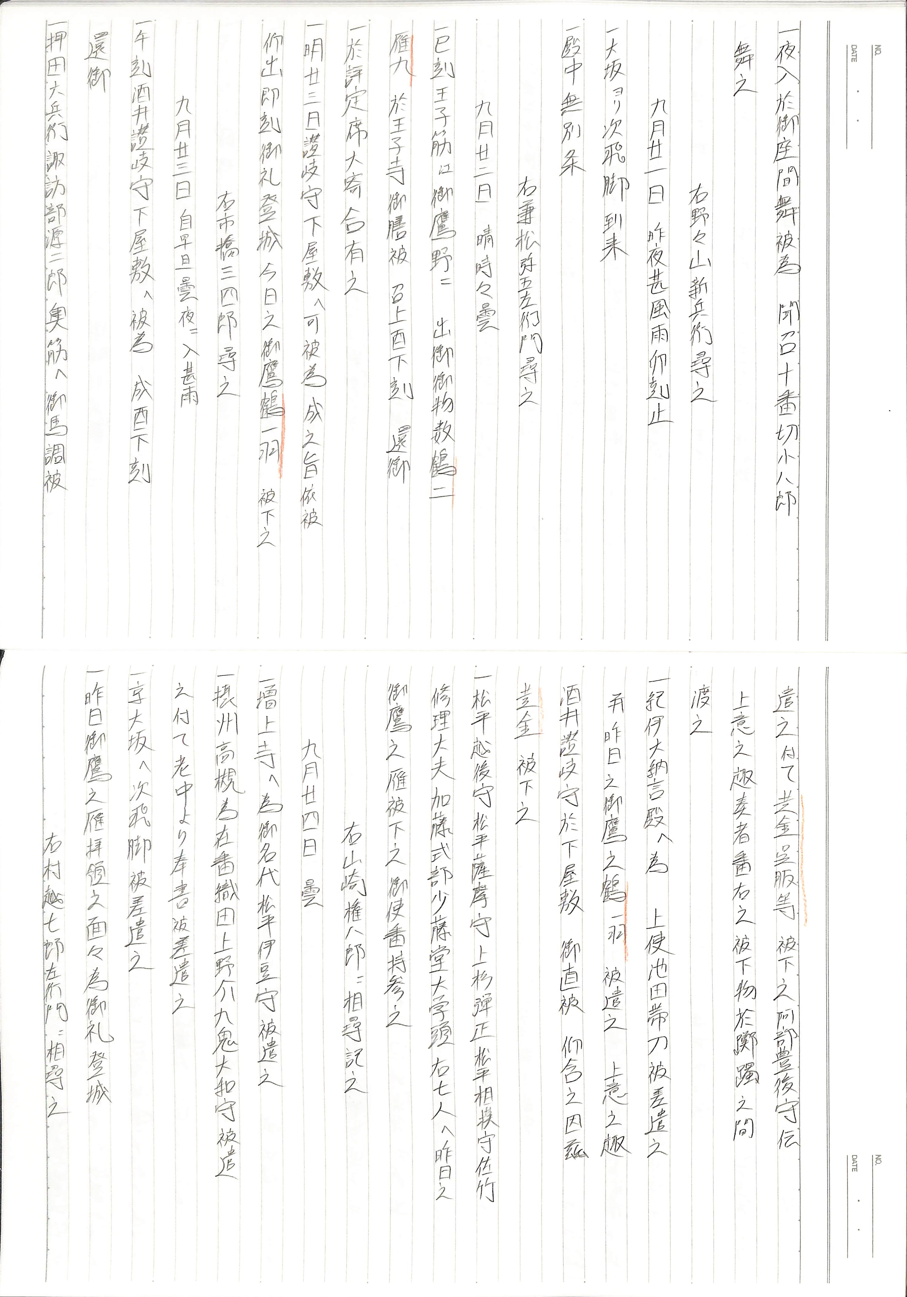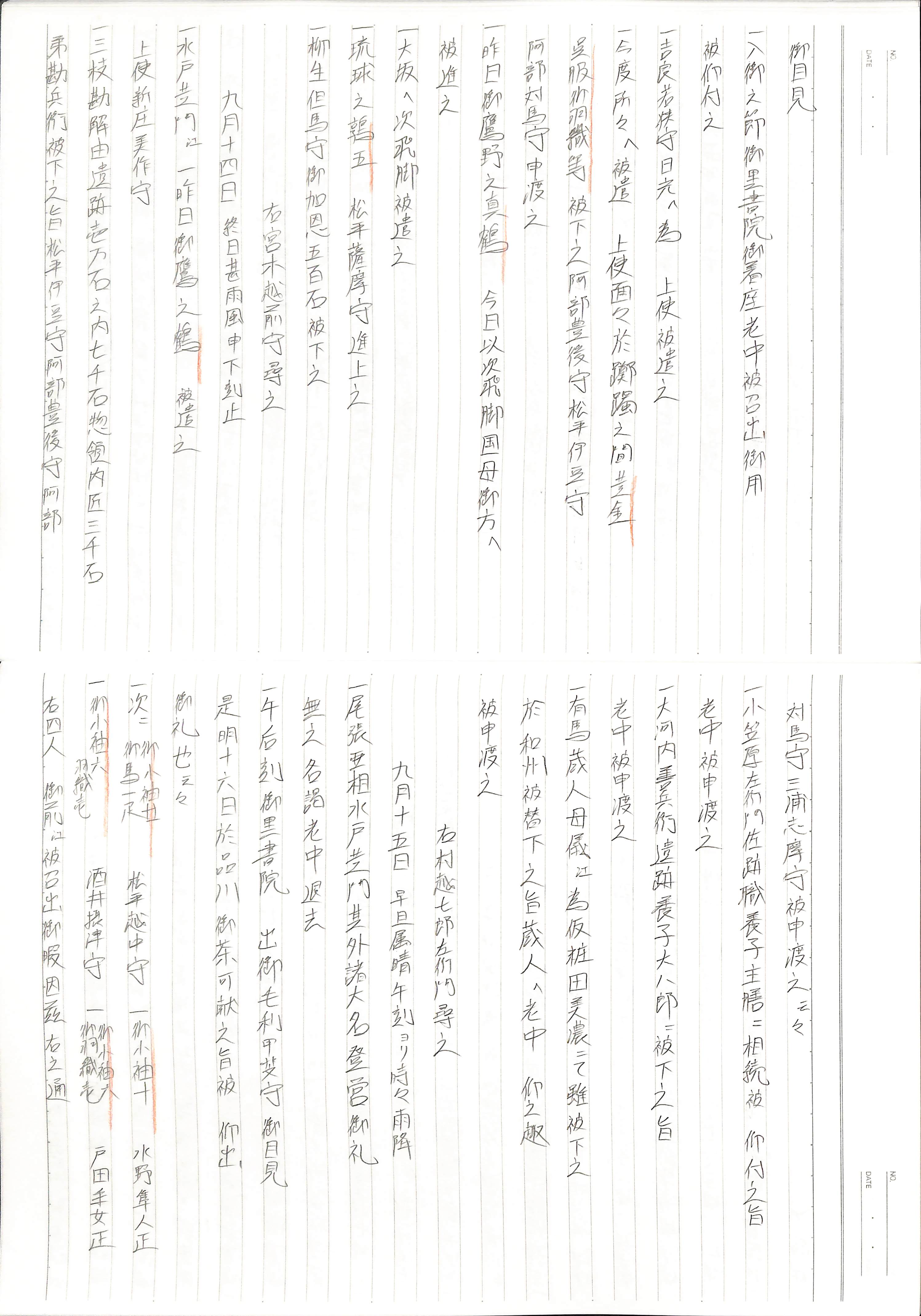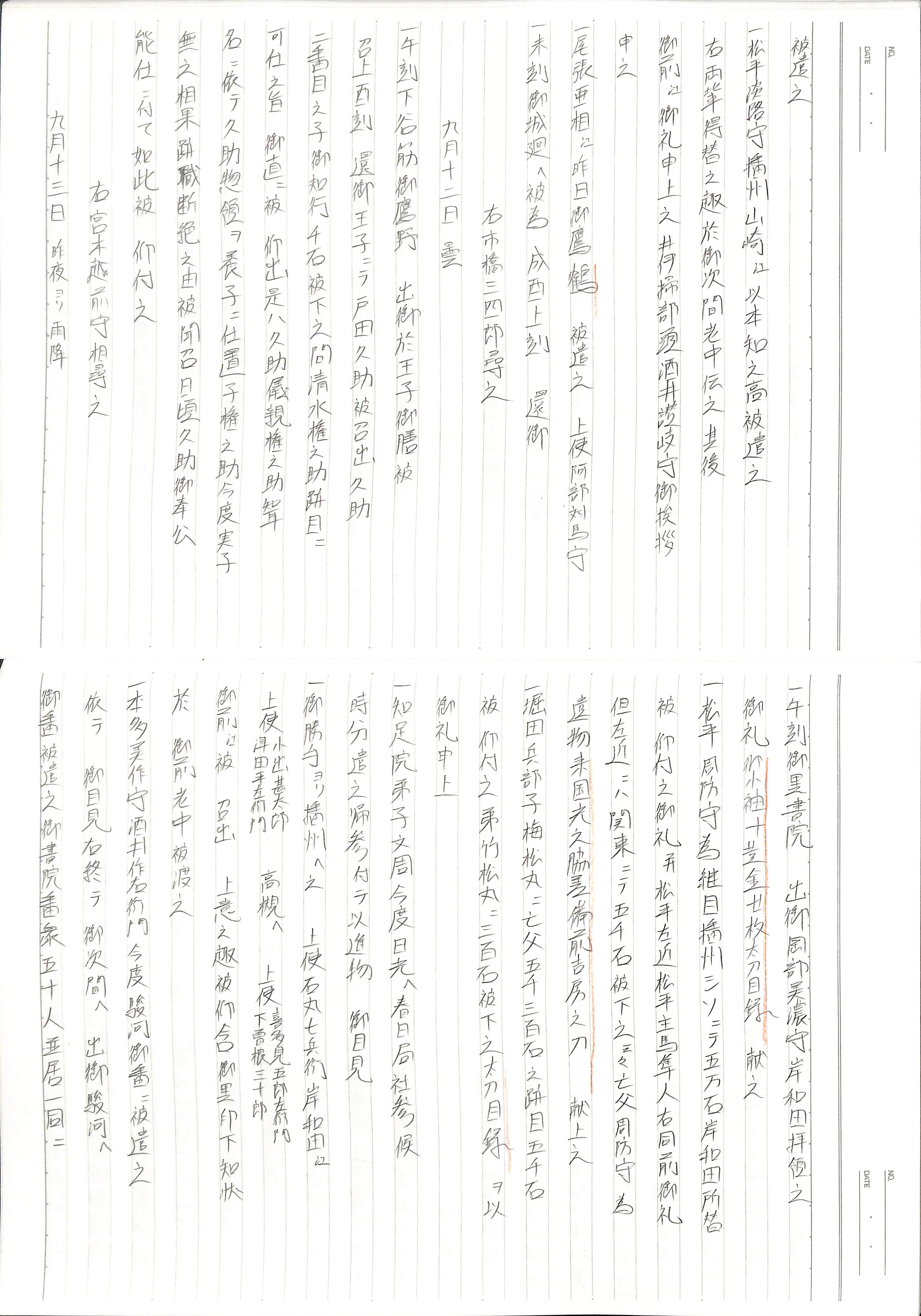 藤井讓治監修『江戸幕府日記姫路酒井家本』第9巻(ゆまに書房、2003年)より作成。原史料は姫路市立城郭研究室所蔵。