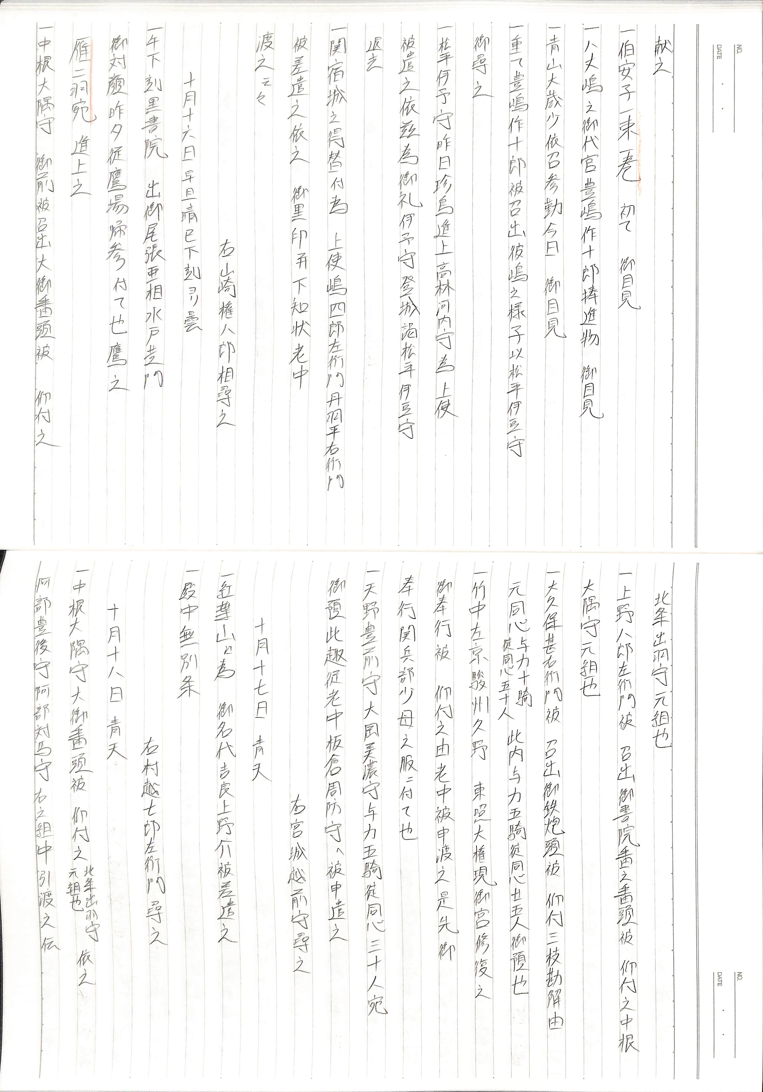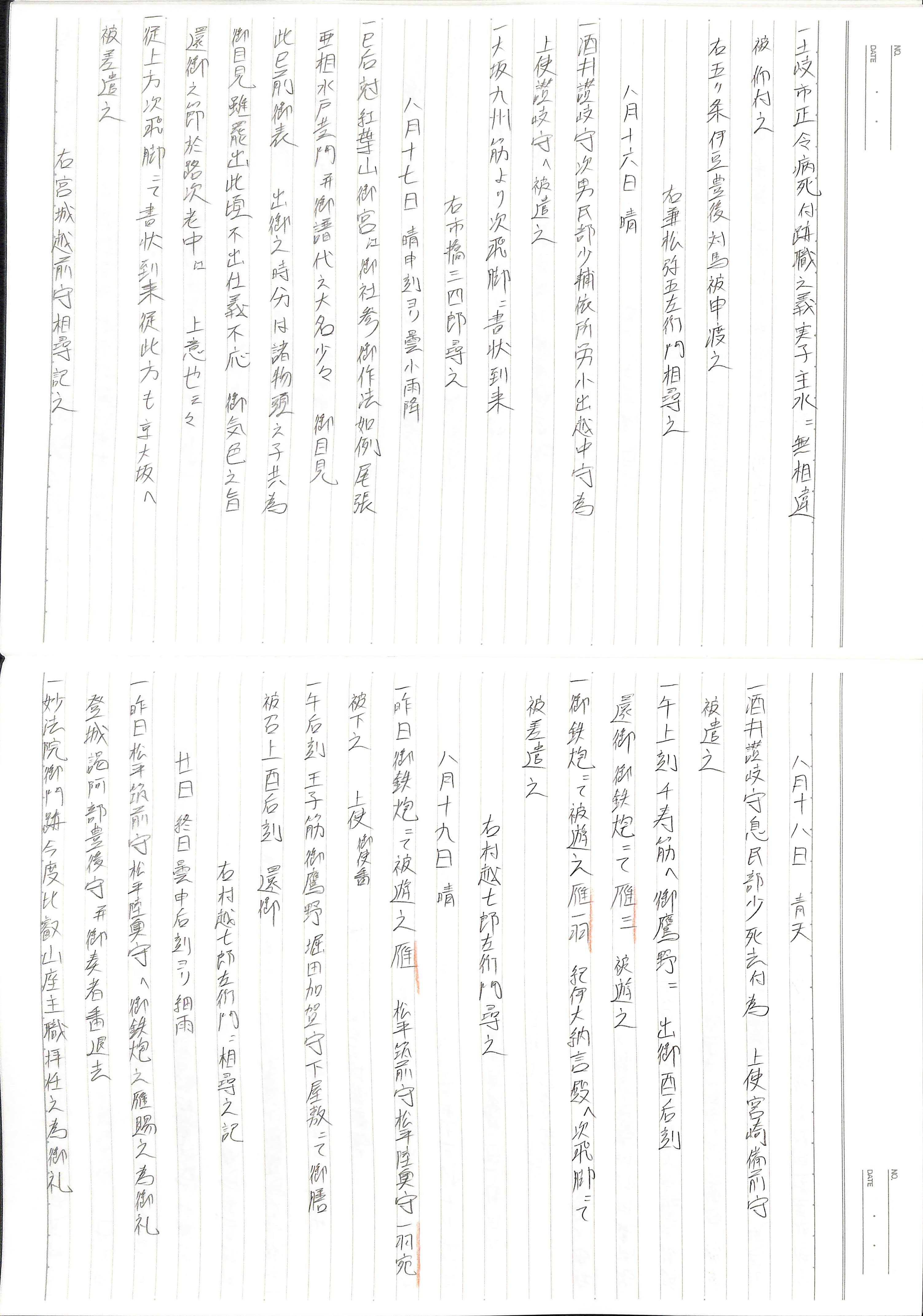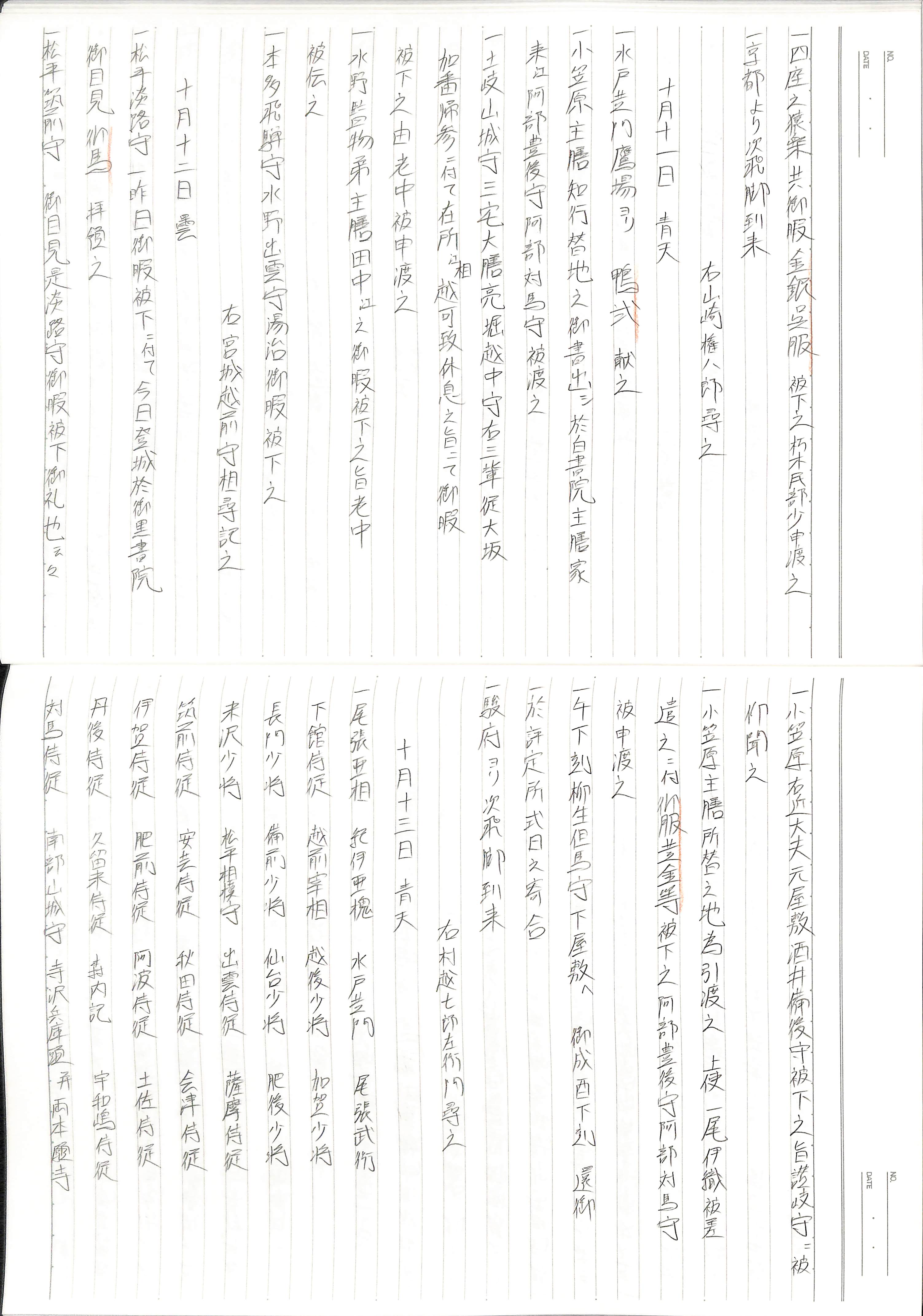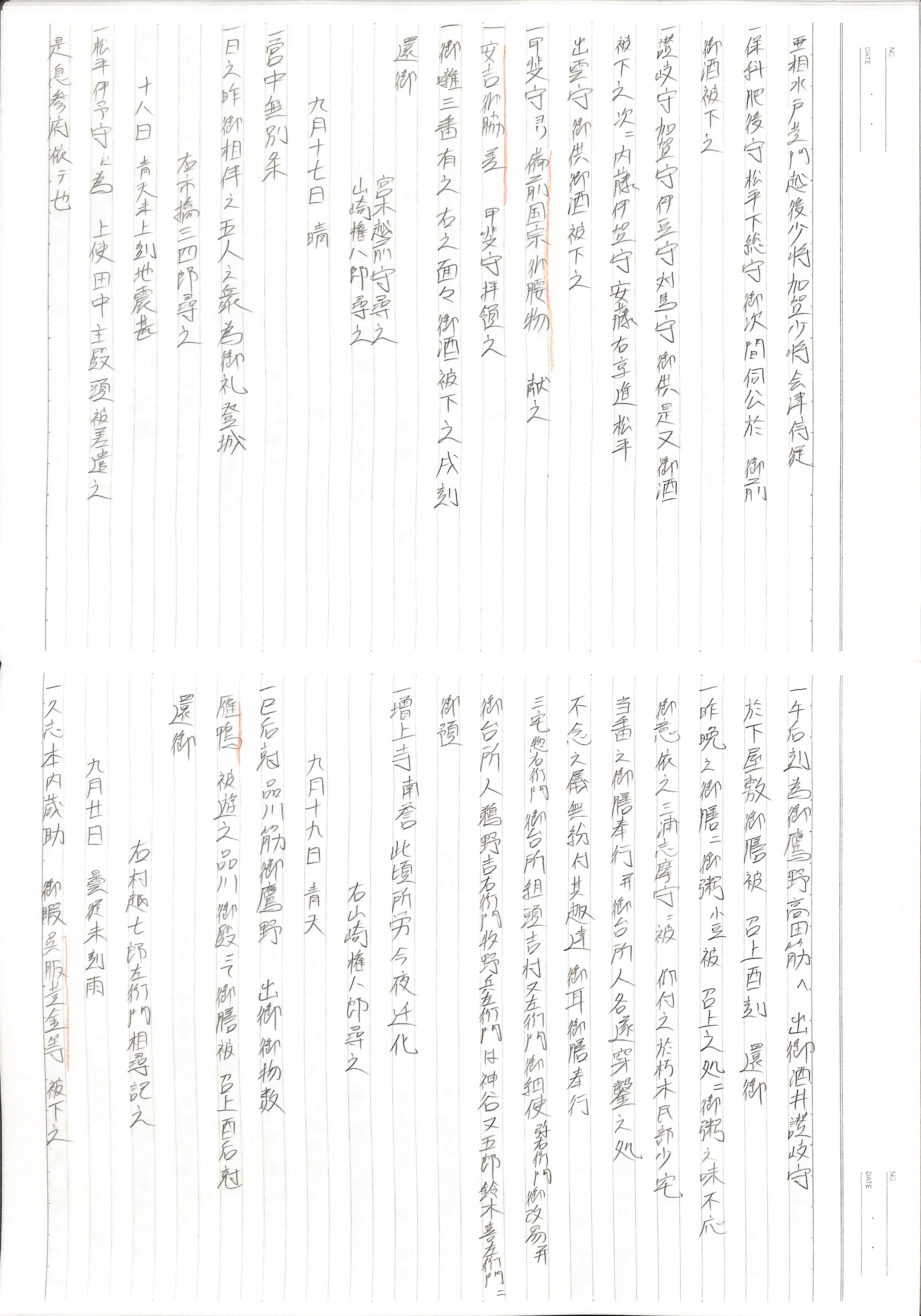 藤井讓治監修『江戸幕府日記姫路酒井家本』第9巻(ゆまに書房、2003年)より作成。原史料は姫路市立城郭研究室所蔵。