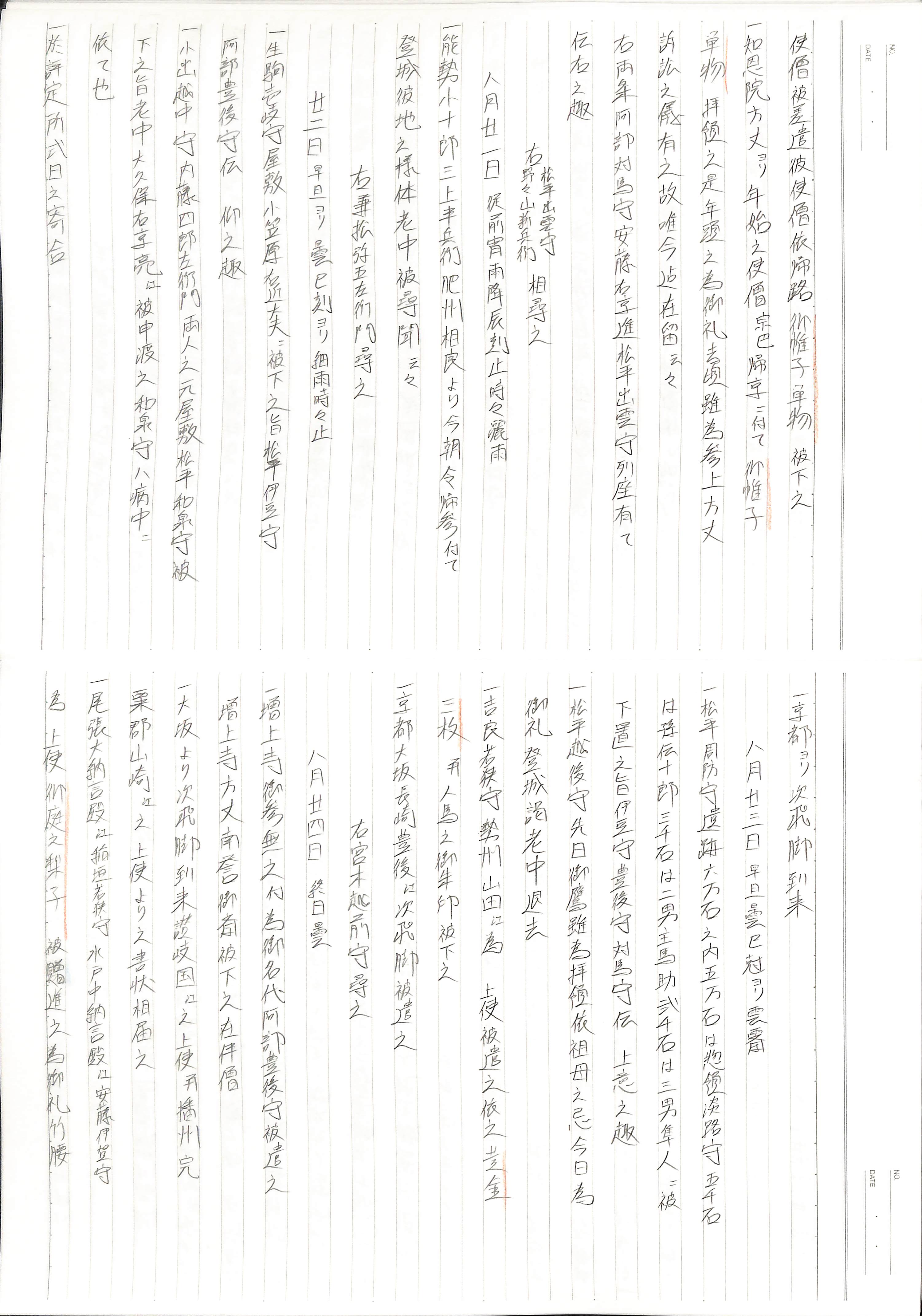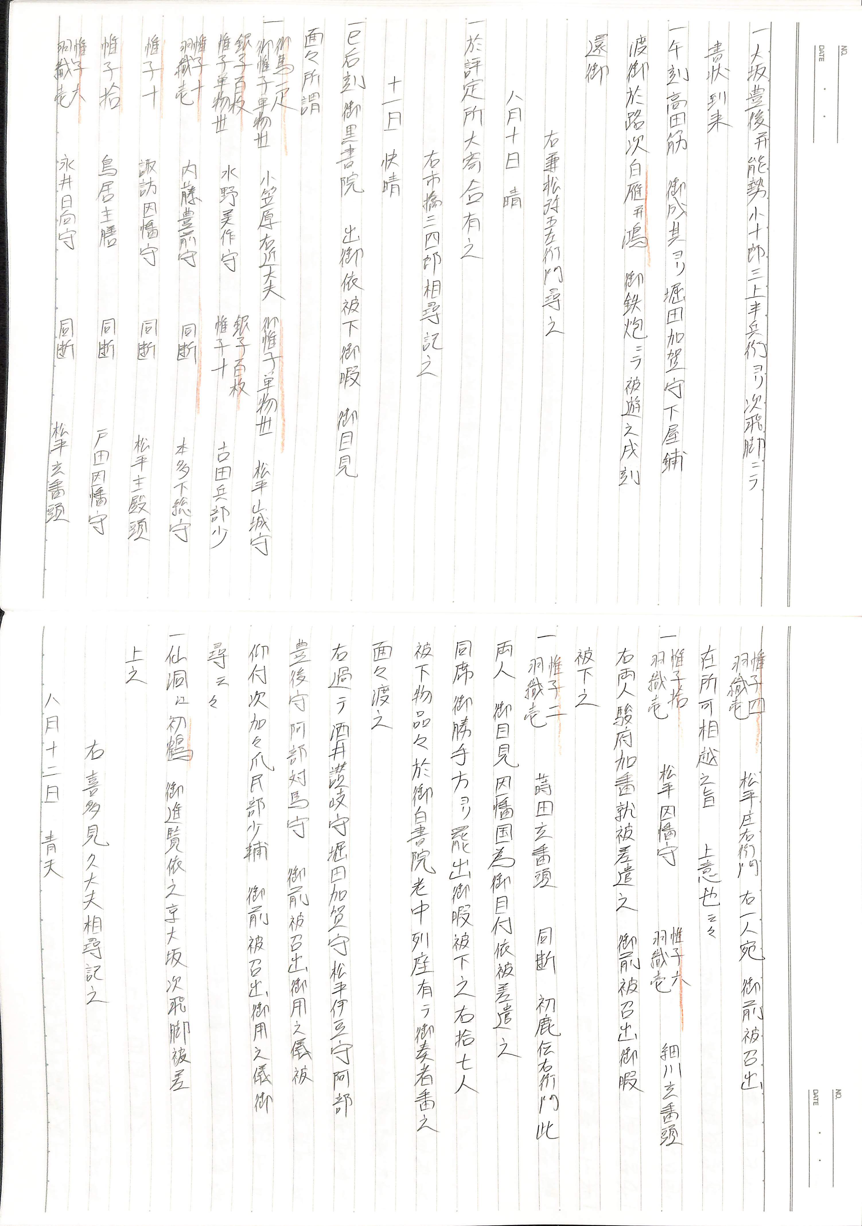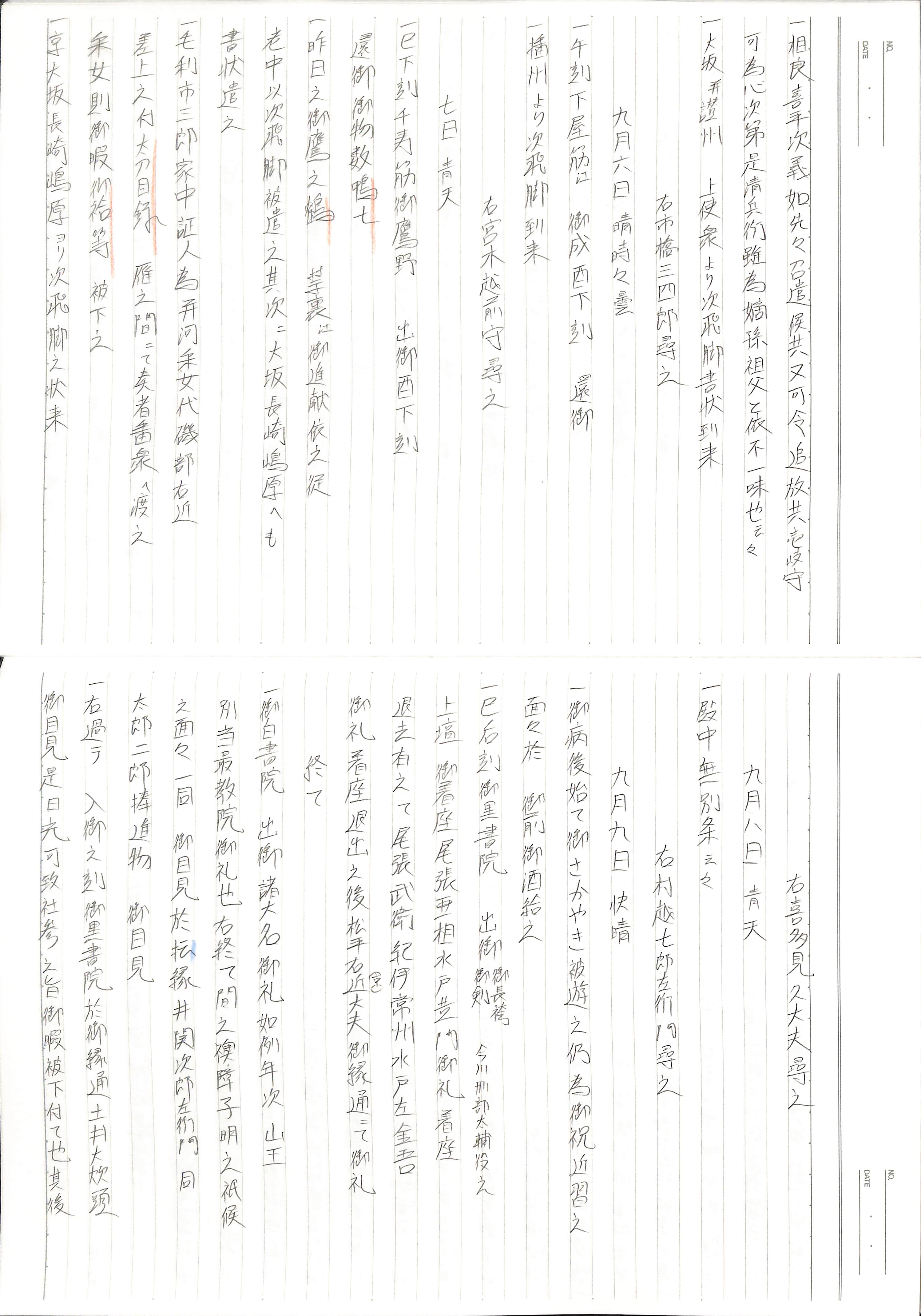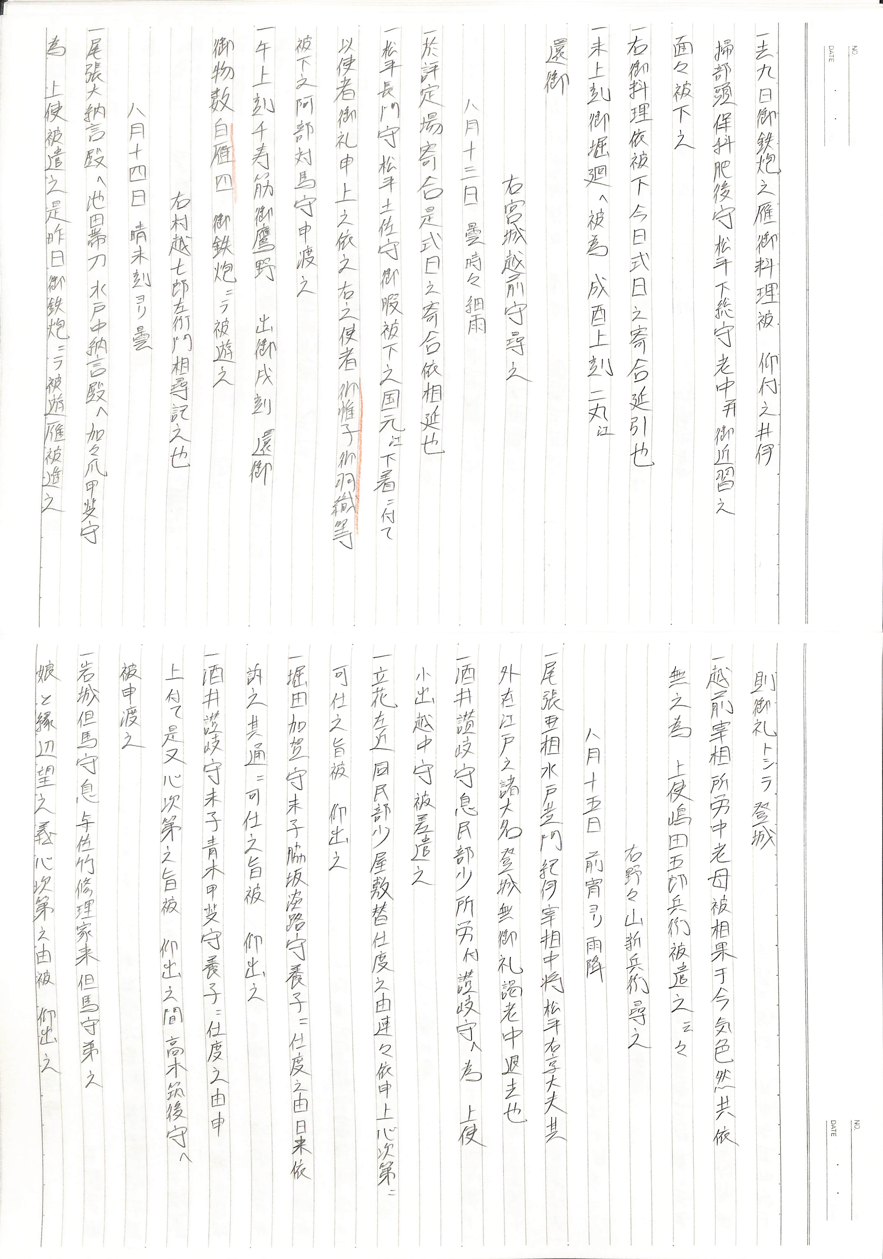 藤井讓治監修『江戸幕府日記姫路酒井家本』第9巻(ゆまに書房、2003年)より作成。原史料は姫路市立城郭研究室所蔵。