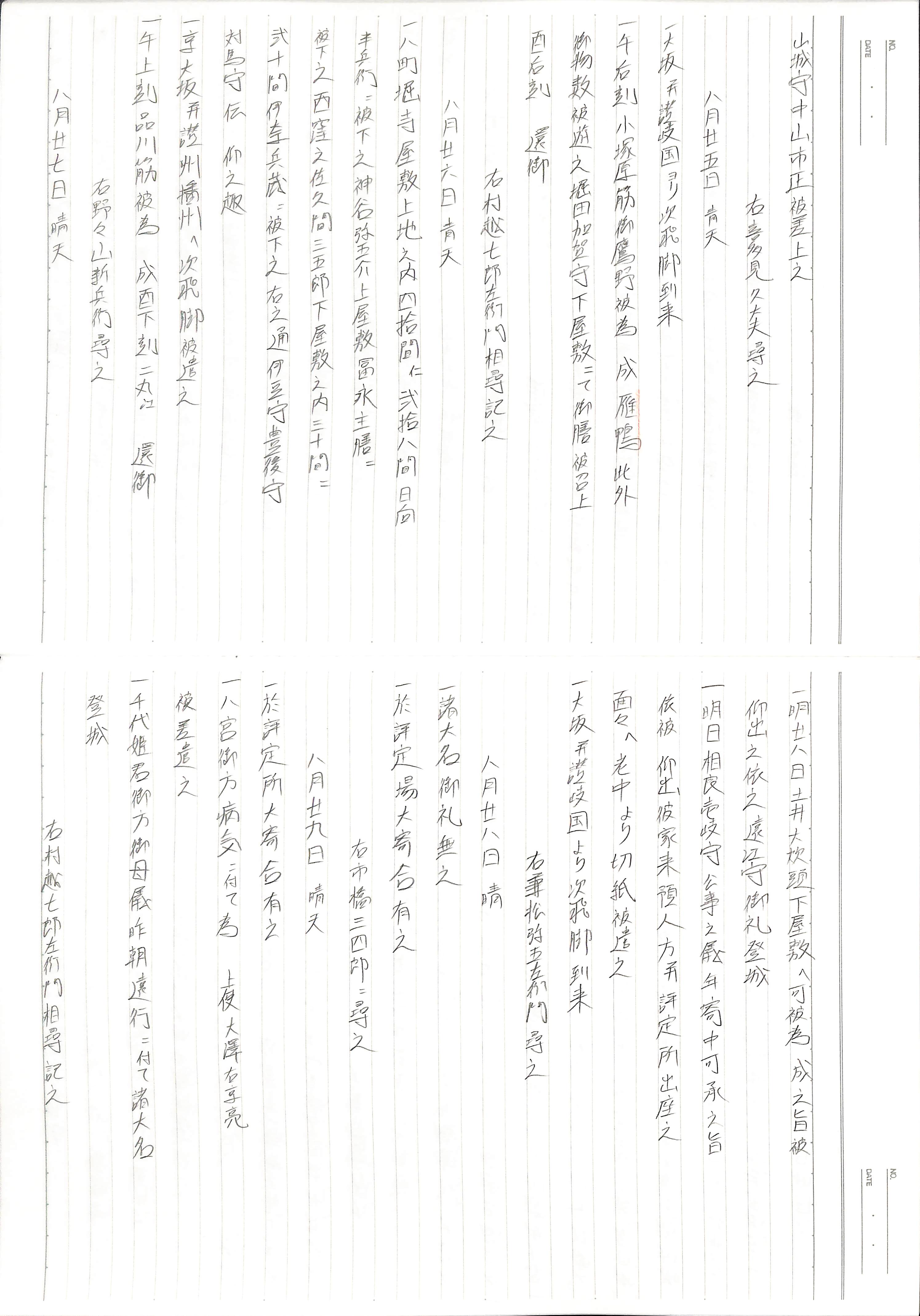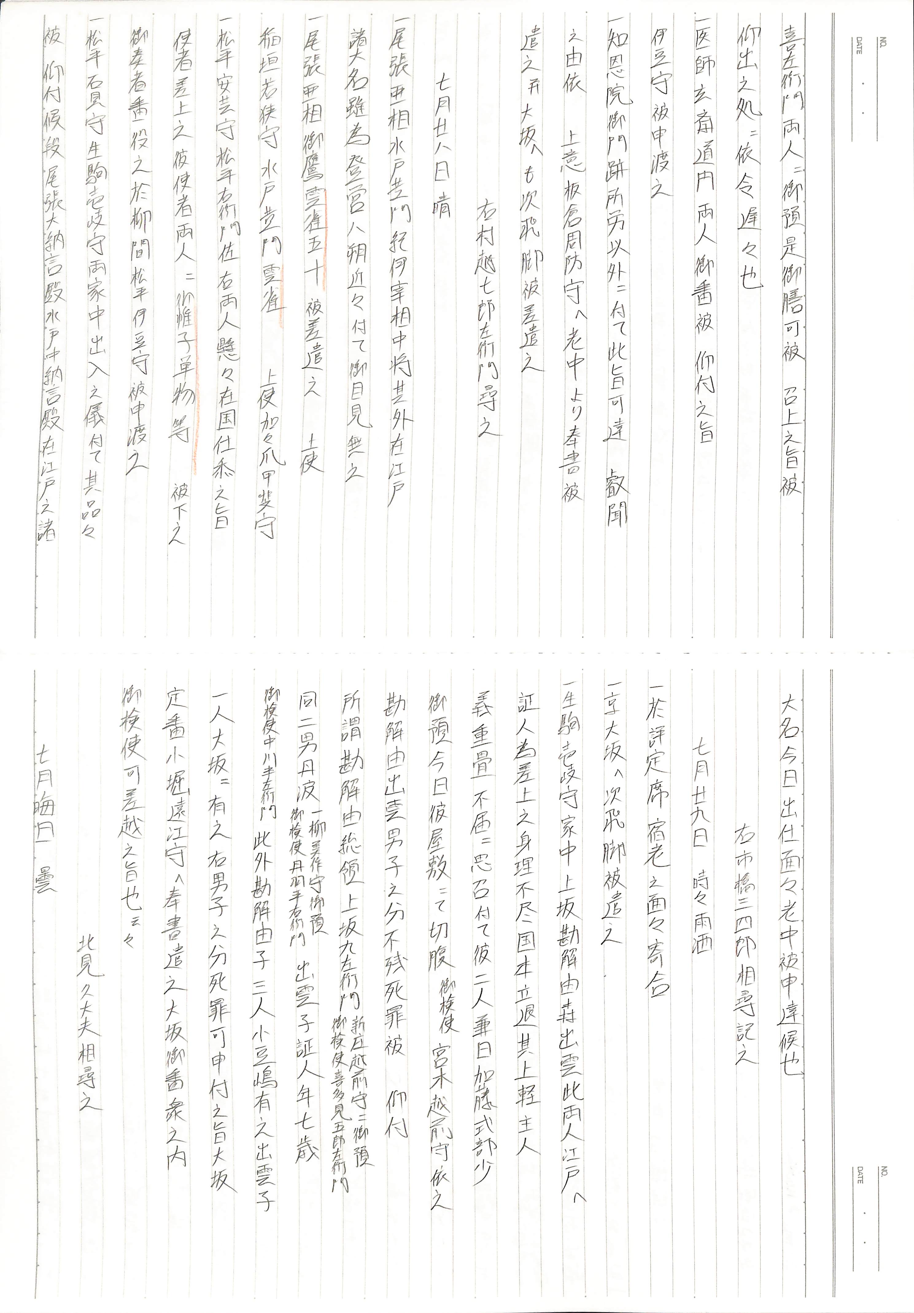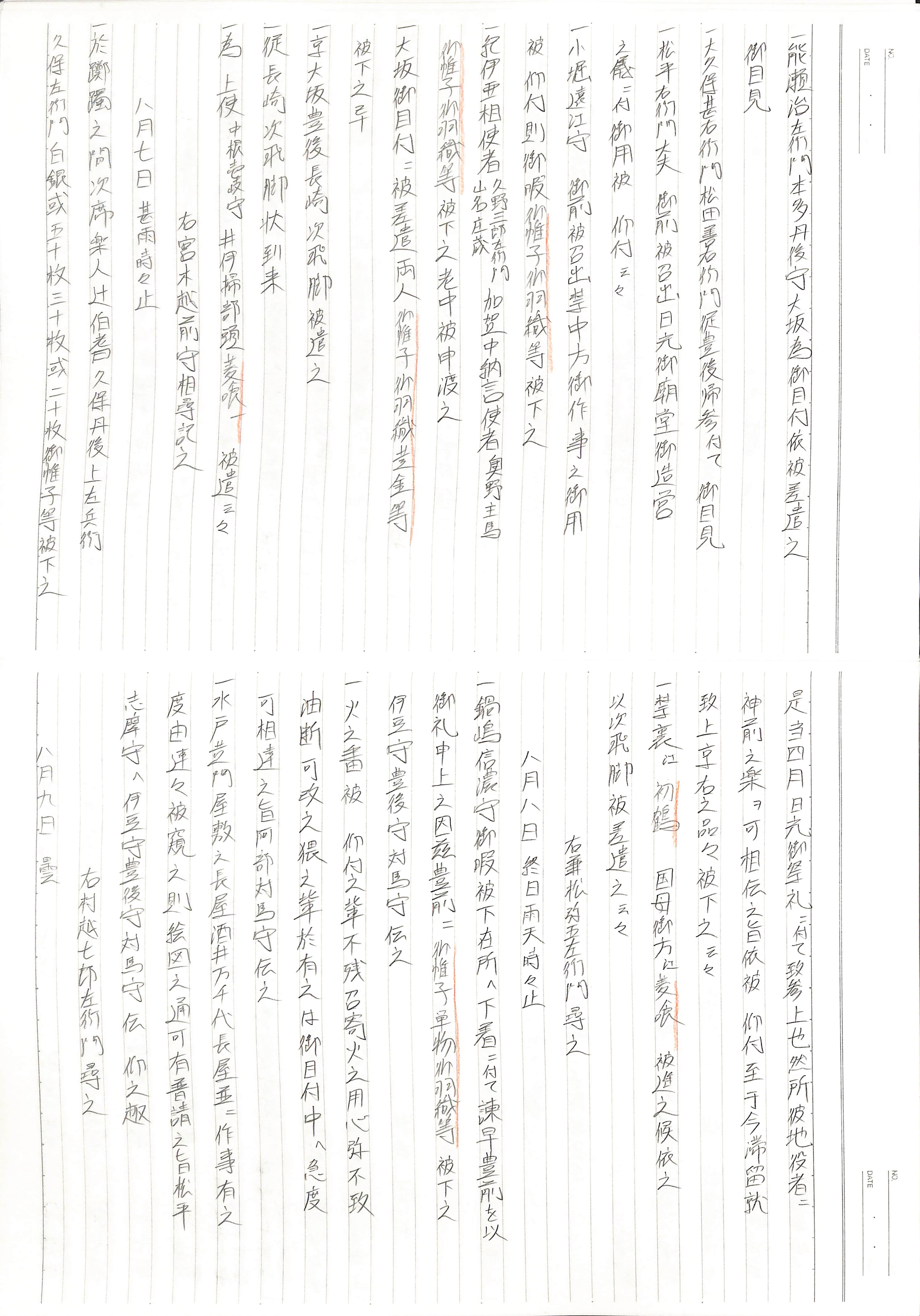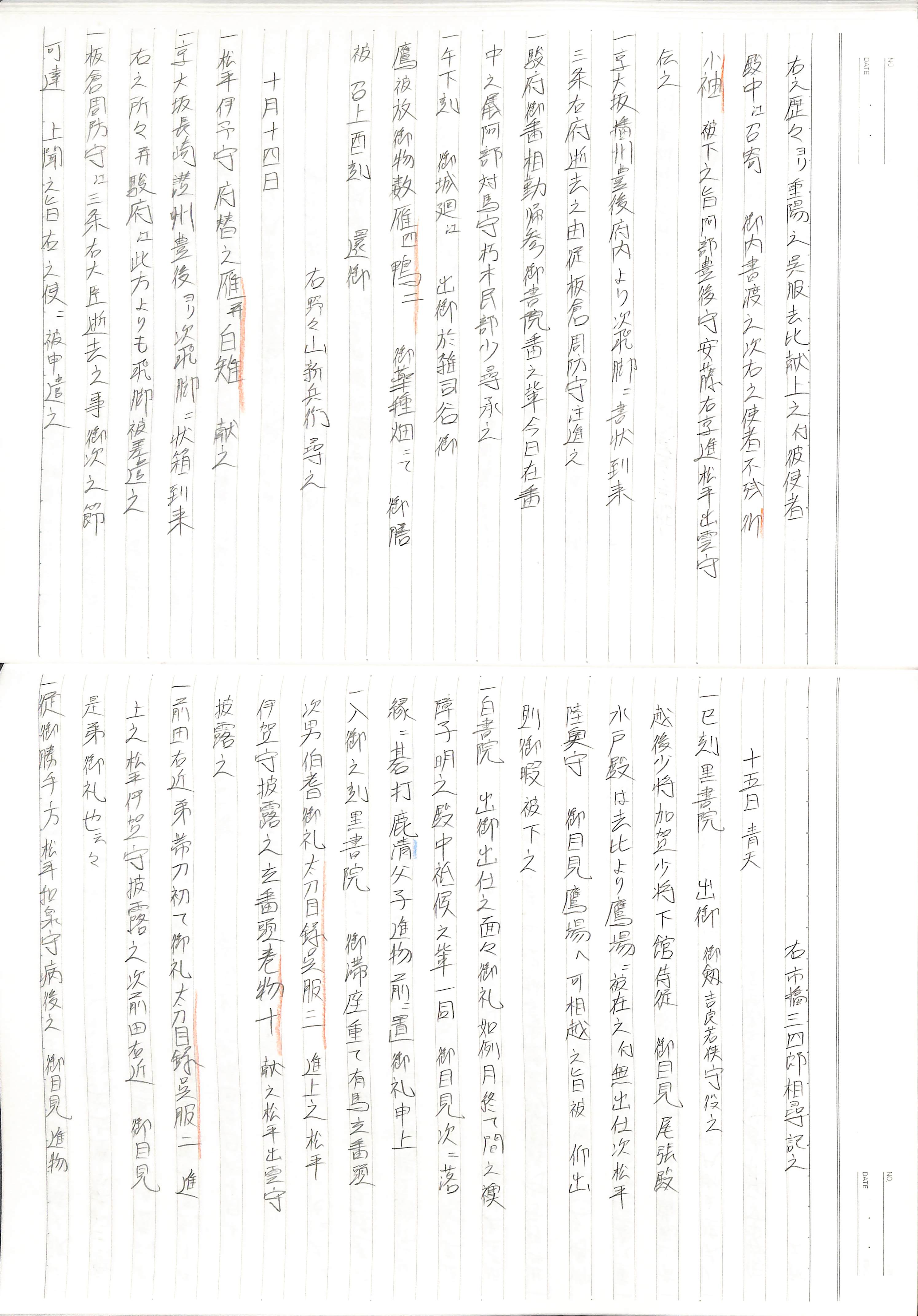 藤井讓治監修『江戸幕府日記姫路酒井家本』第9巻(ゆまに書房、2003年)より作成。原史料は姫路市立城郭研究室所蔵。