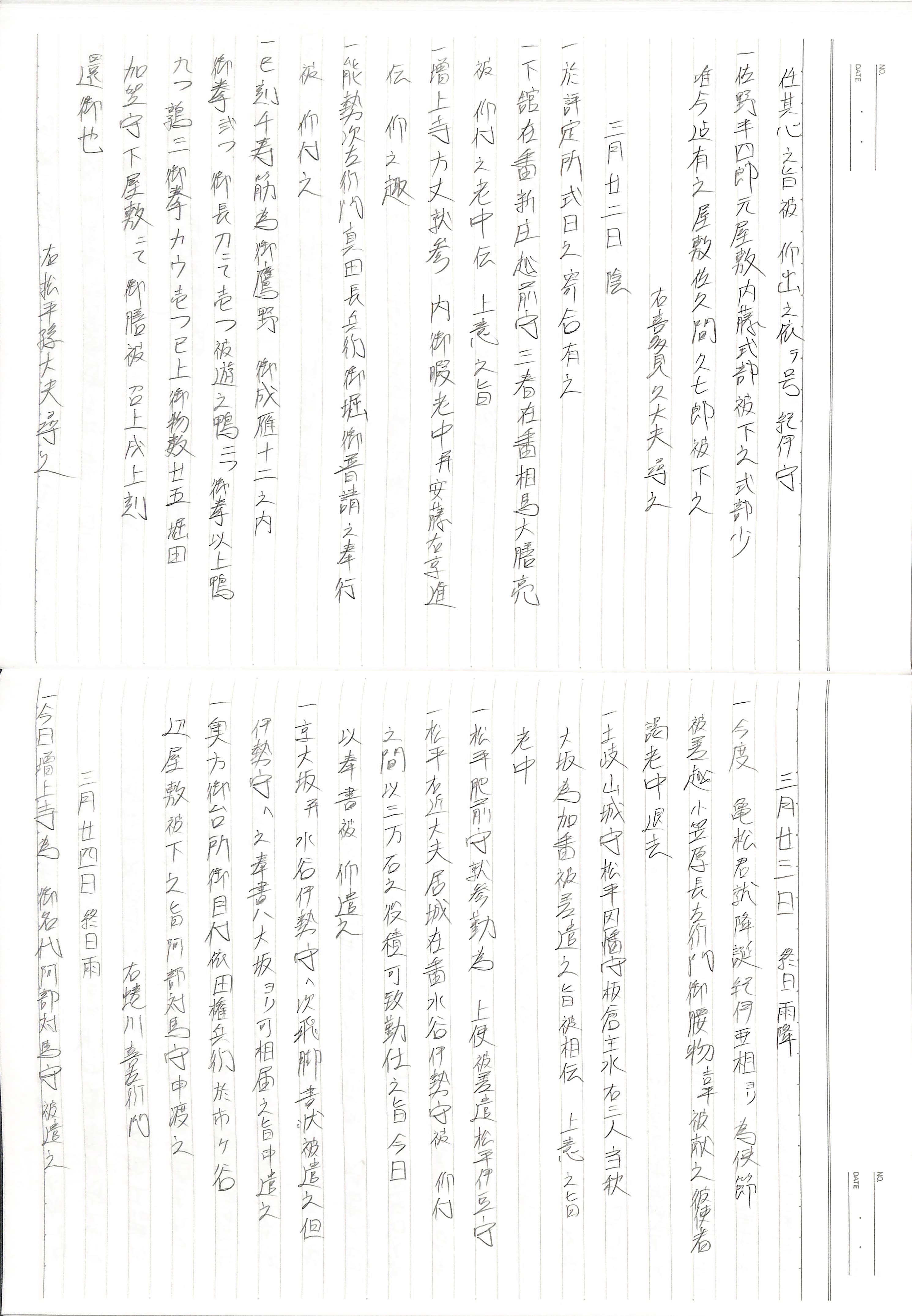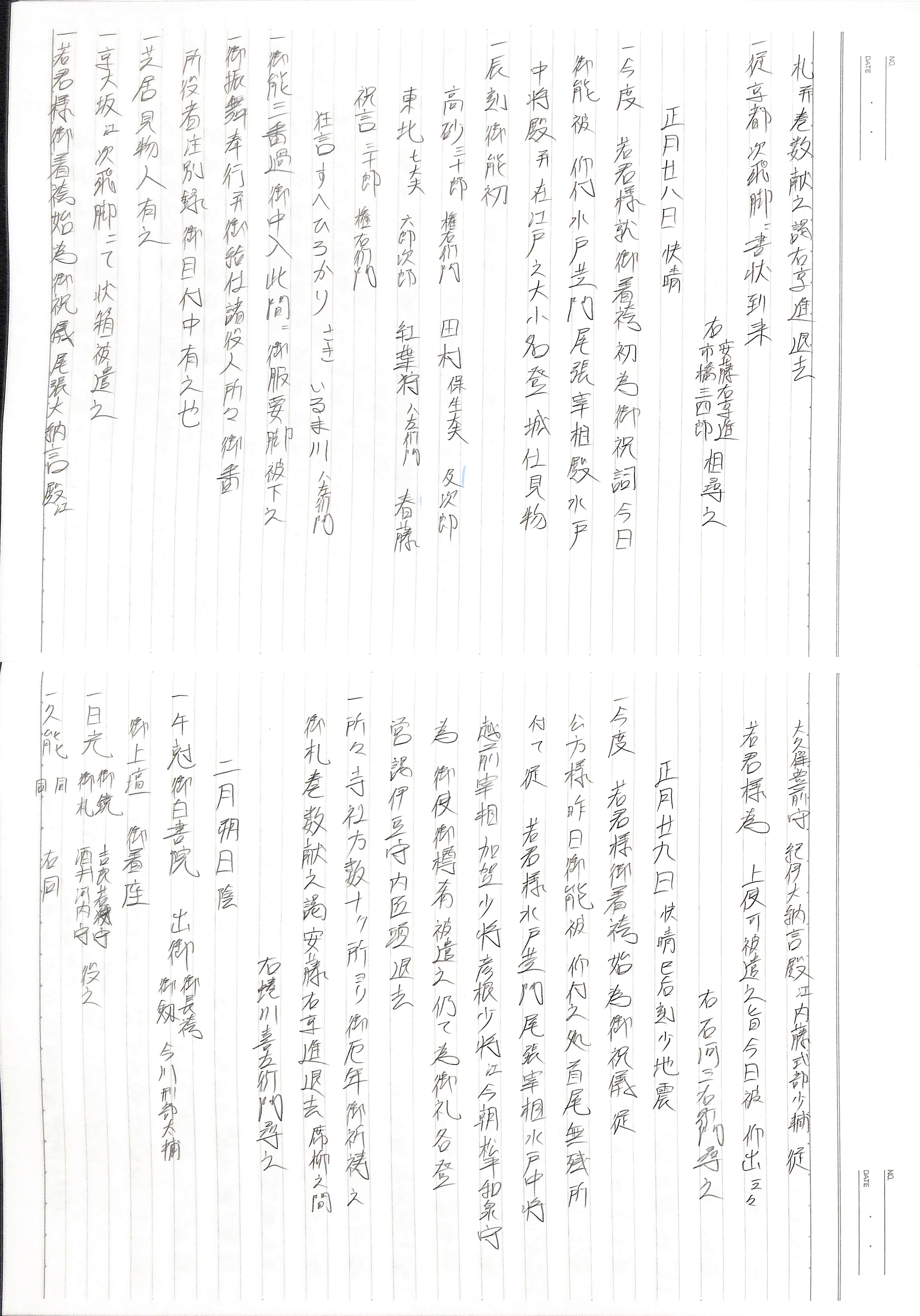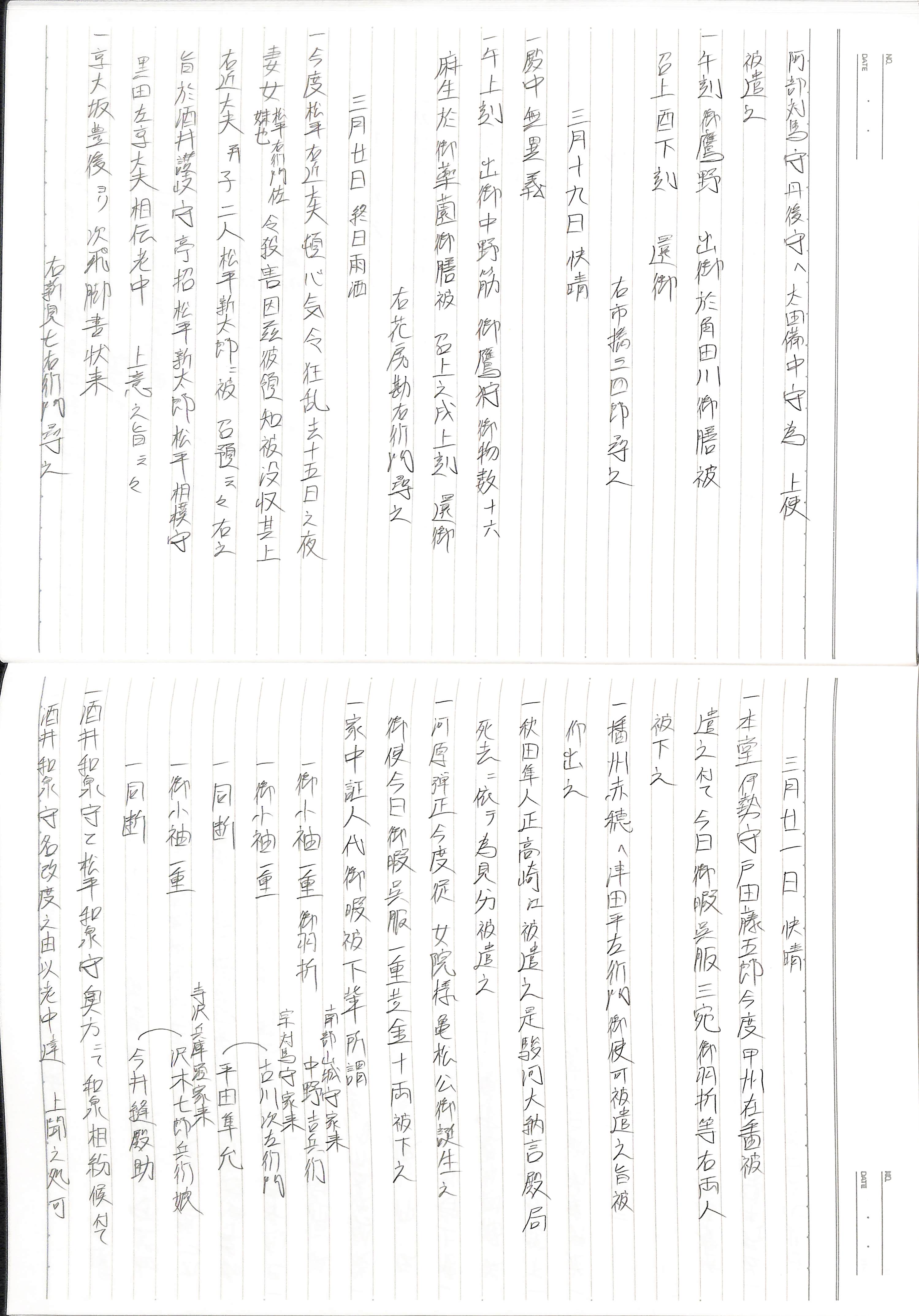 藤井讓治監修『江戸幕府日記姫路酒井家本』第15、16巻(ゆまに書房、2004年)より作成。原史料は姫路市立城郭研究室所蔵。