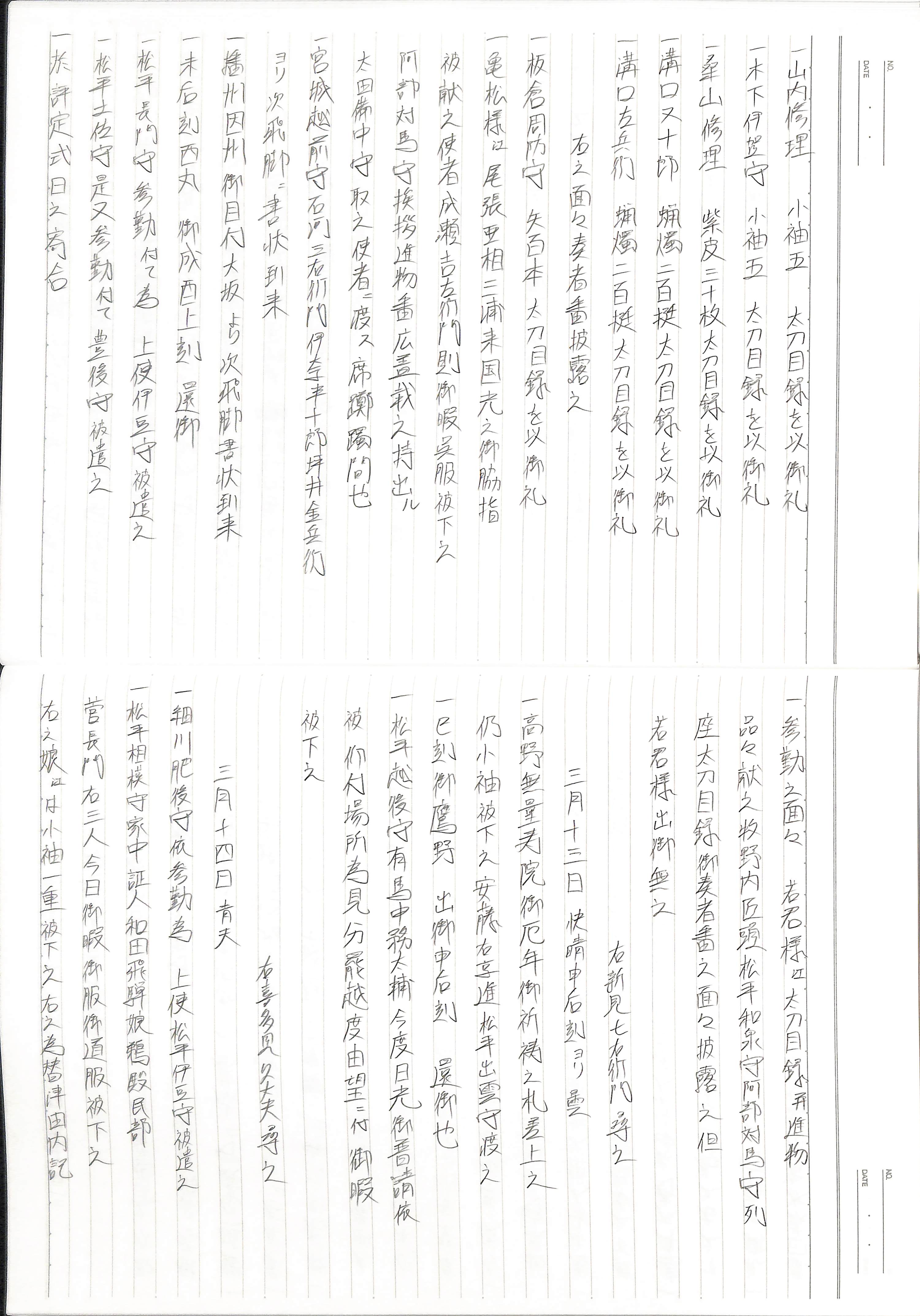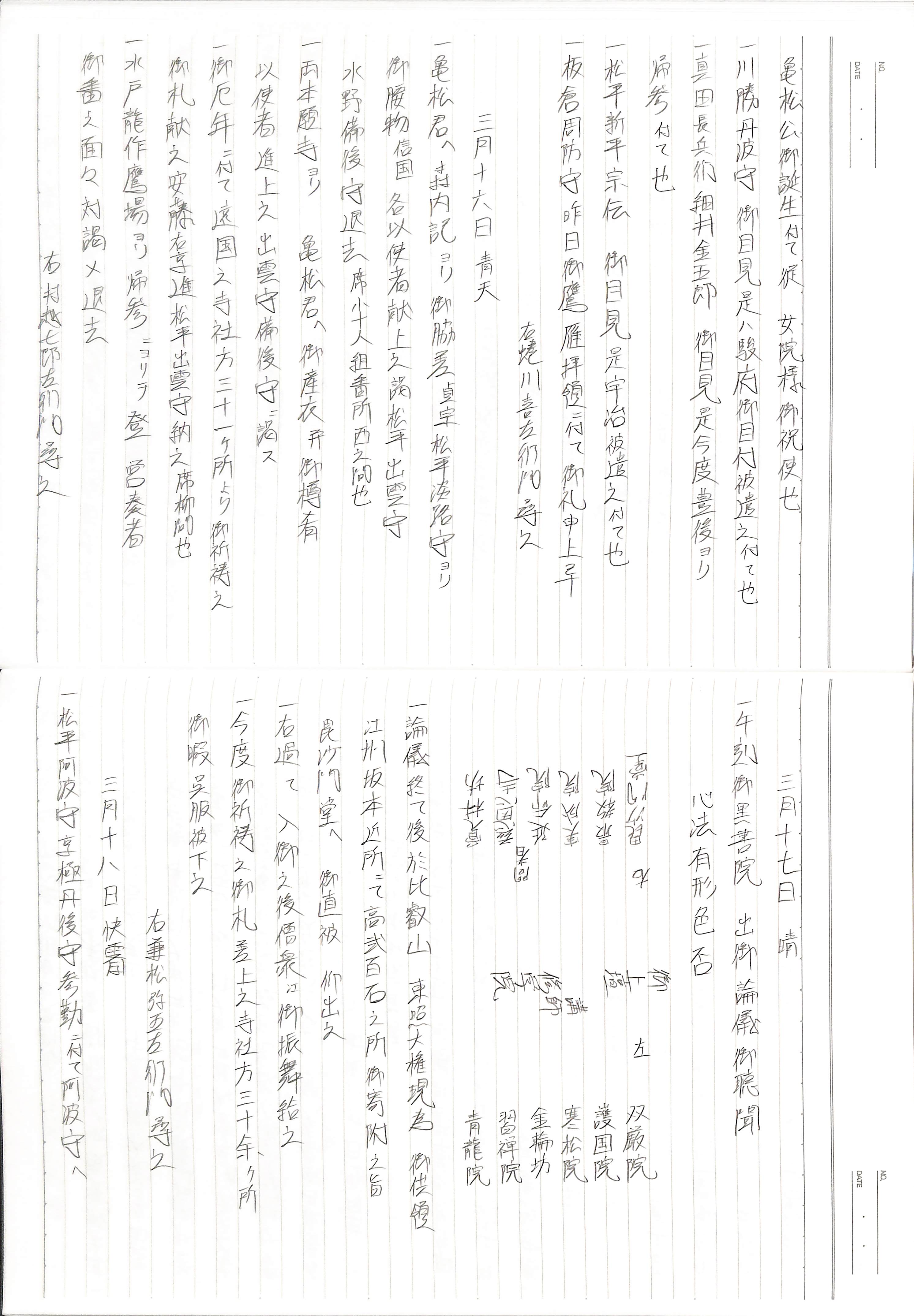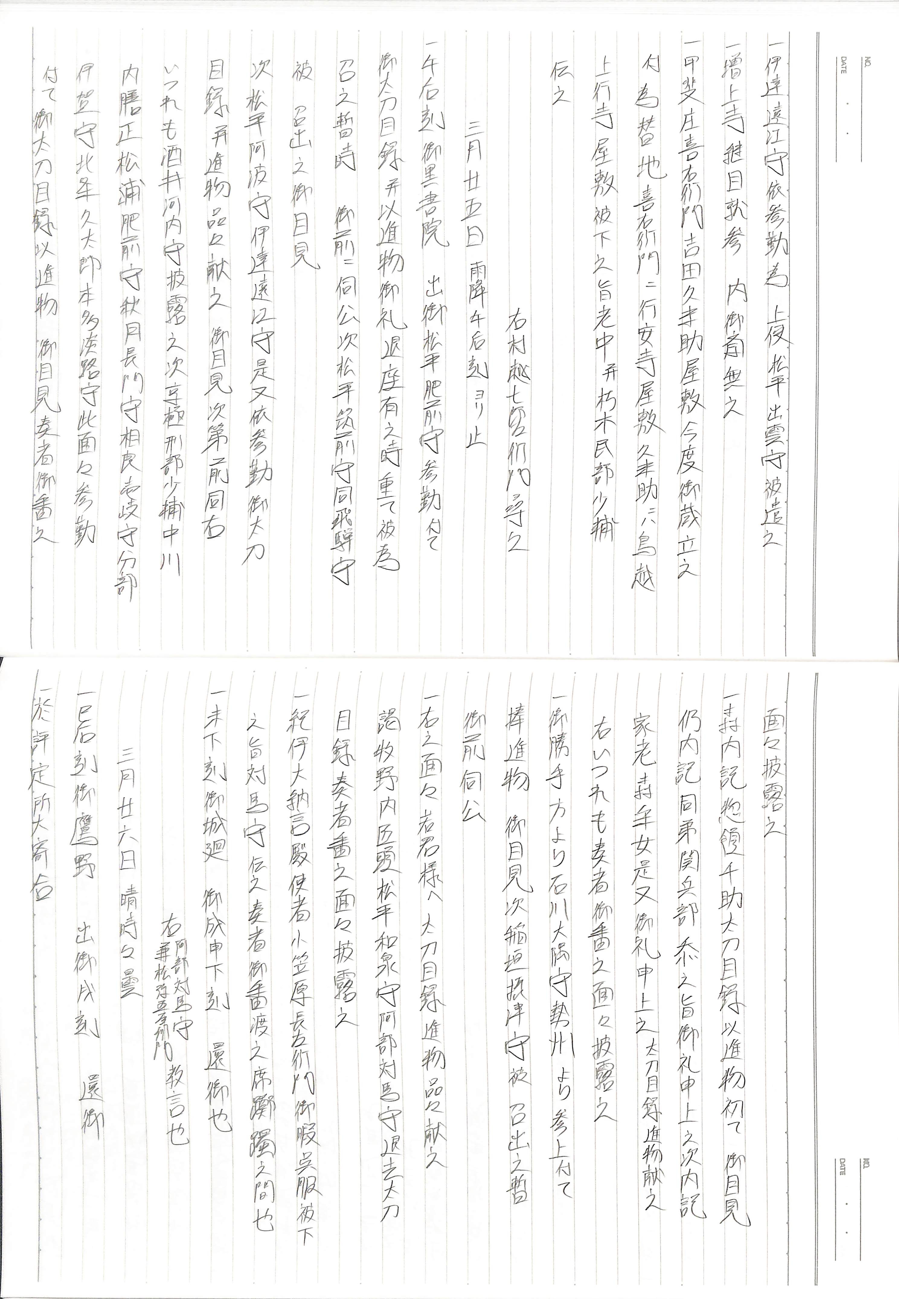 藤井讓治監修『江戸幕府日記姫路酒井家本』第15、16巻(ゆまに書房、2004年)より作成。原史料は姫路市立城郭研究室所蔵。