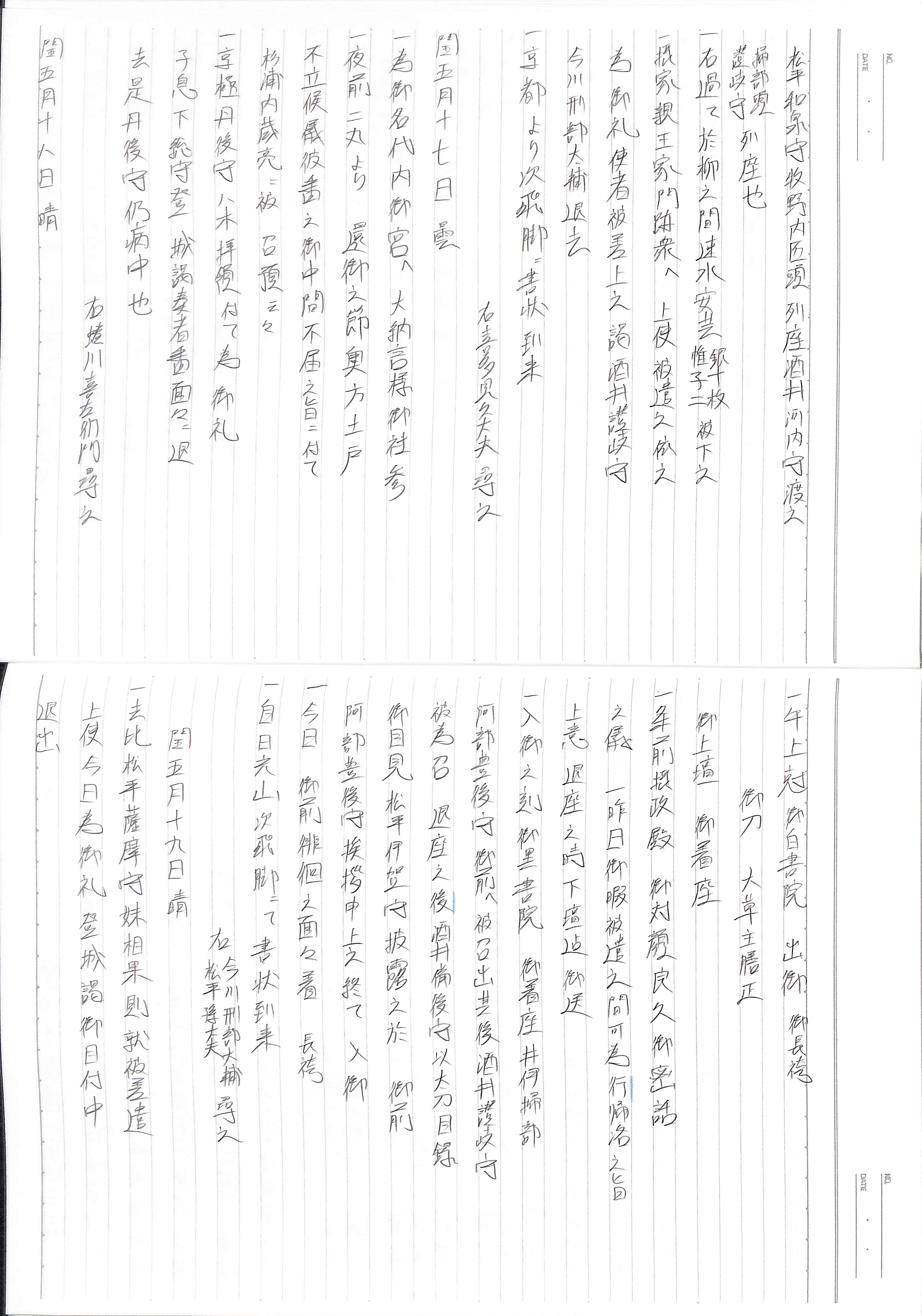 藤井讓治監修『江戸幕府日記姫路酒井家本』第16巻(ゆまに書房、2004年)より作成。原史料は姫路市立城郭研究室所蔵。