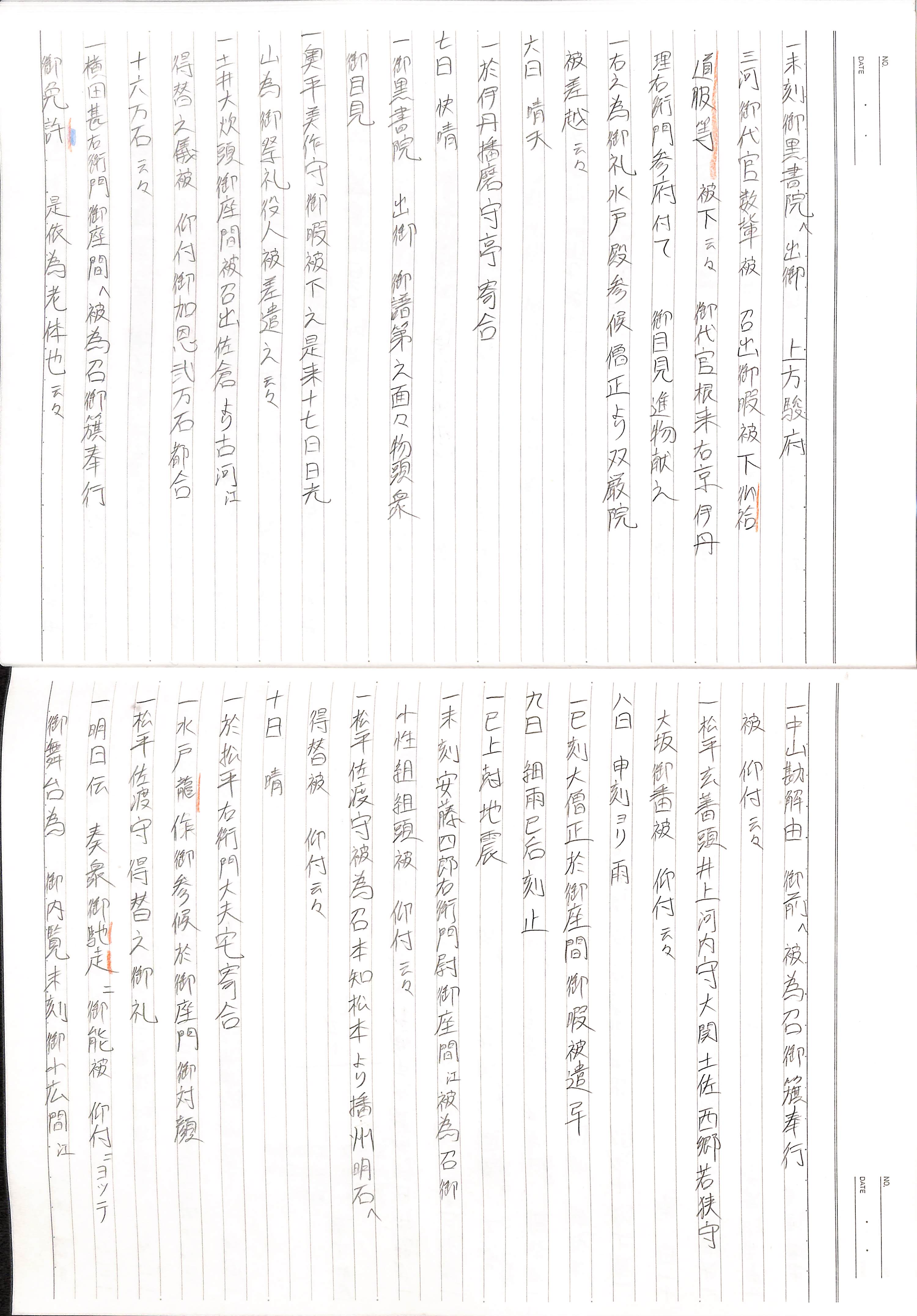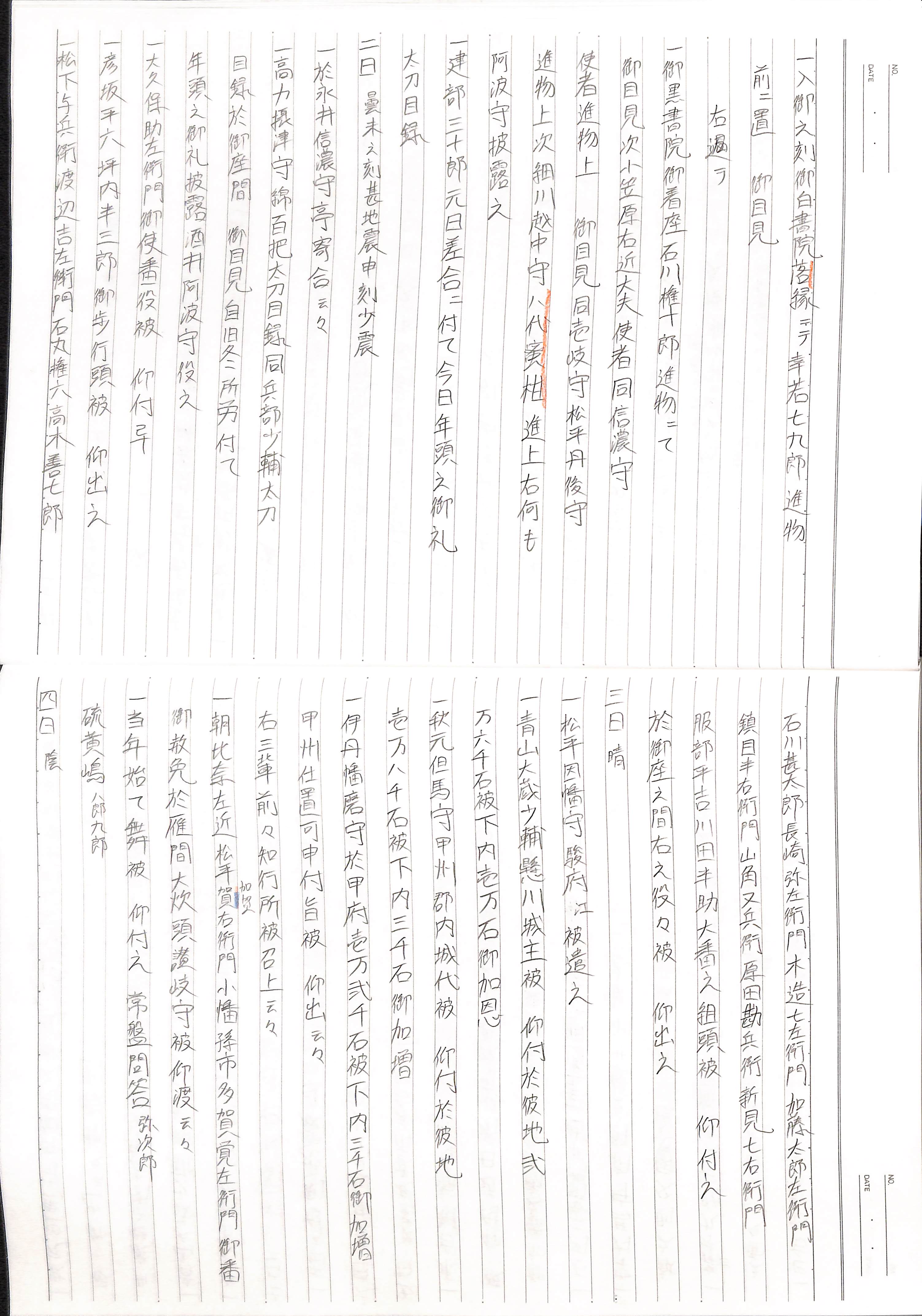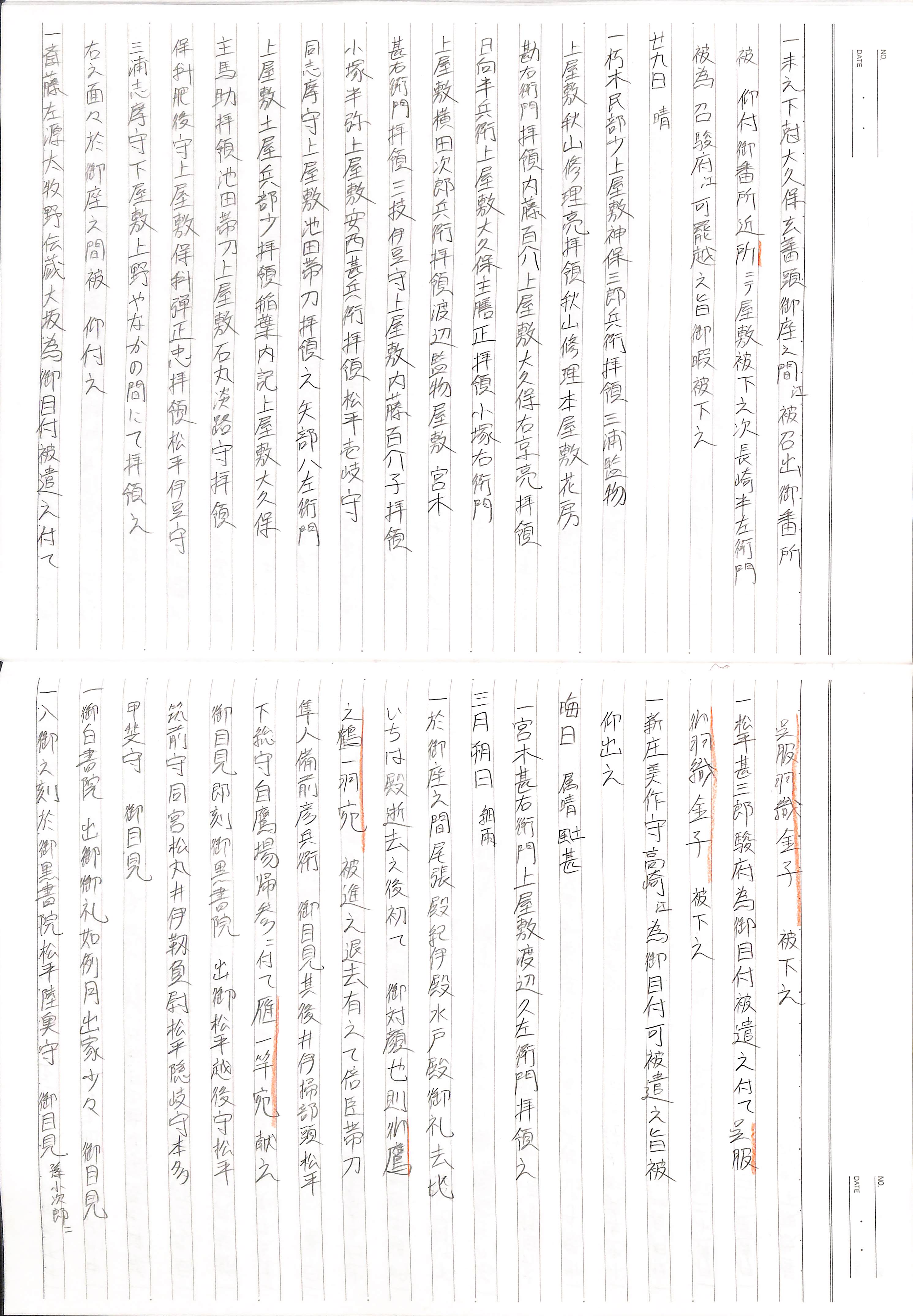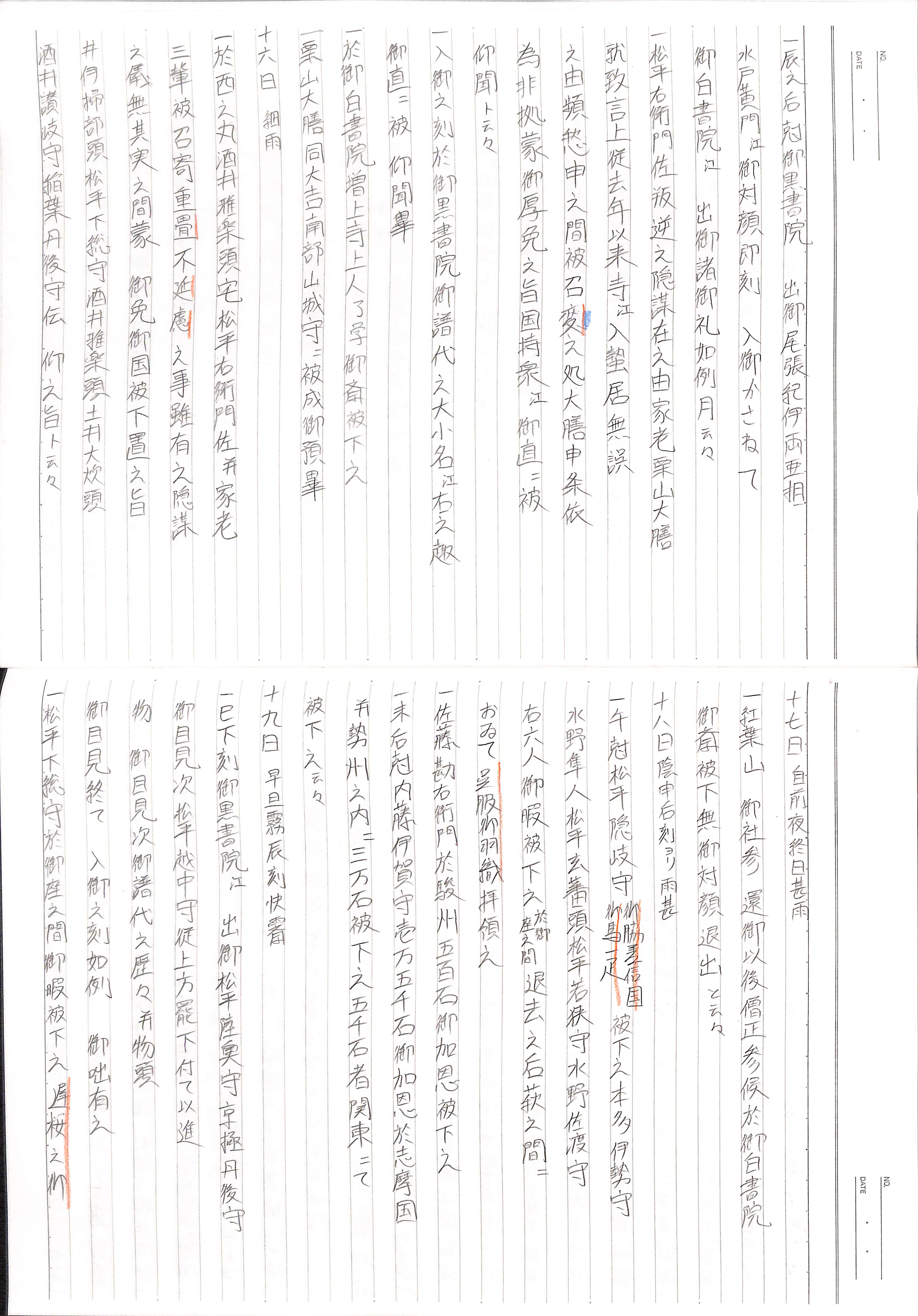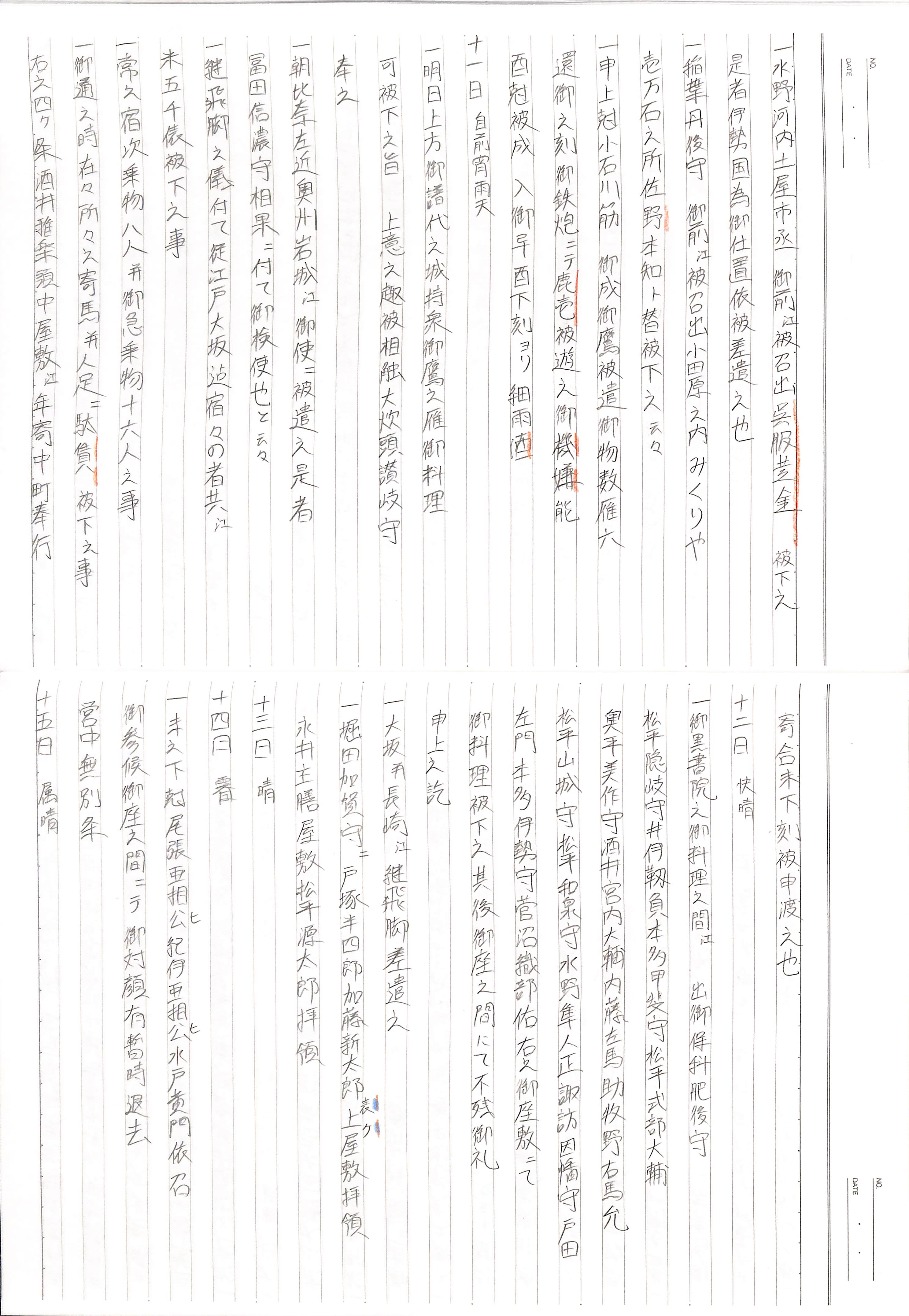 藤井讓治監修『江戸幕府日記姫路酒井家本』第2巻(ゆまに書房、2003年)より作成。原史料は姫路市立城郭研究室所蔵。