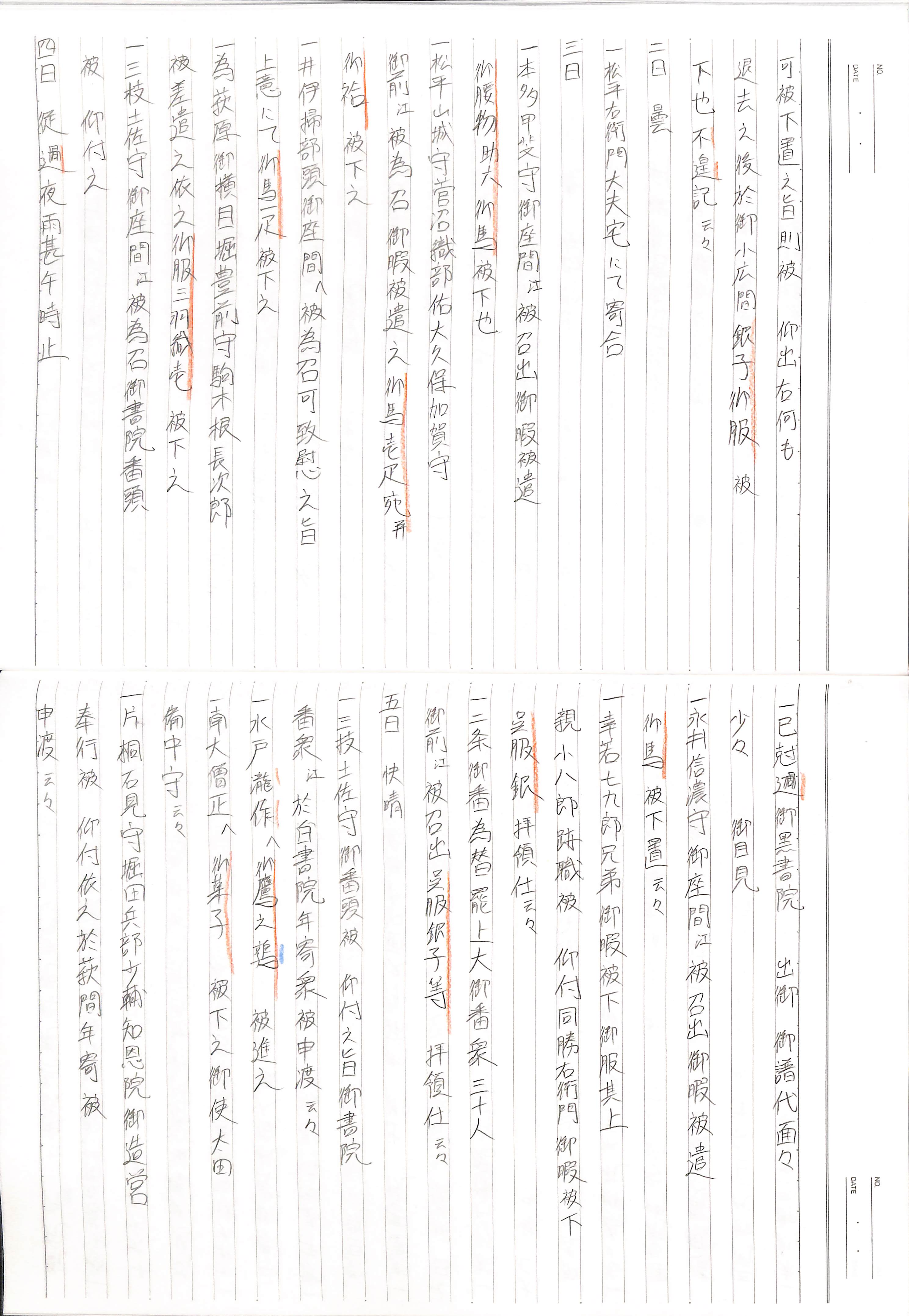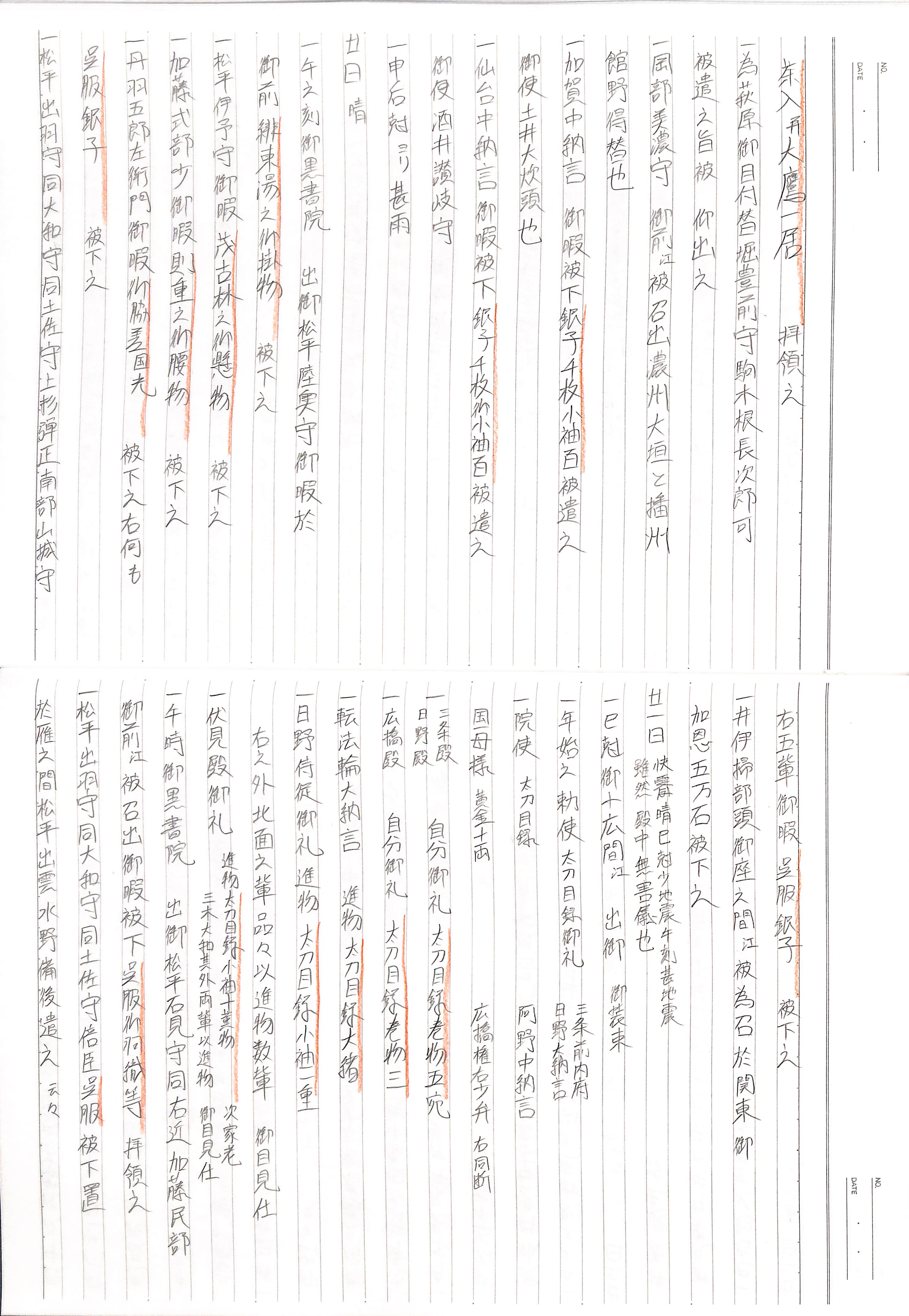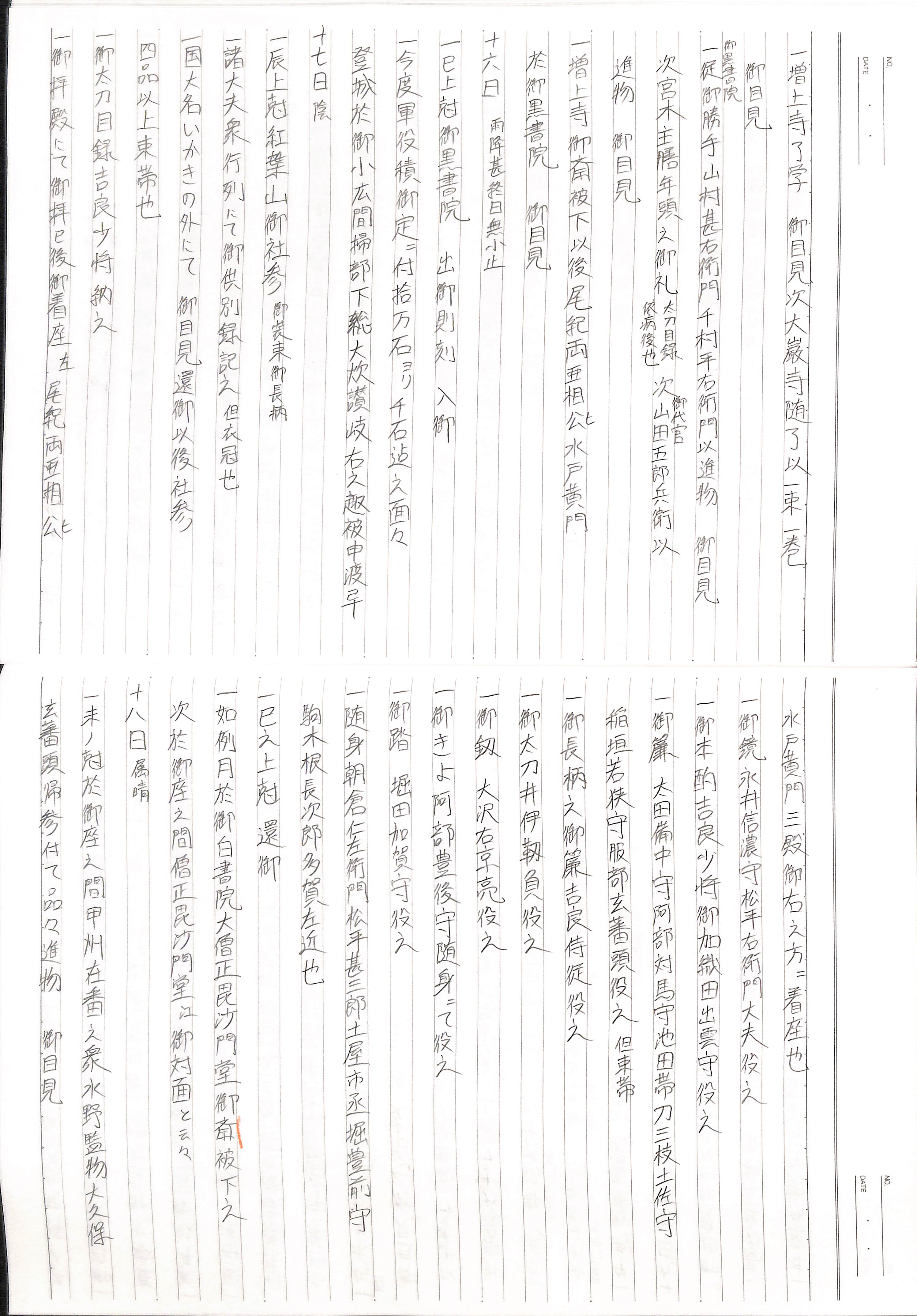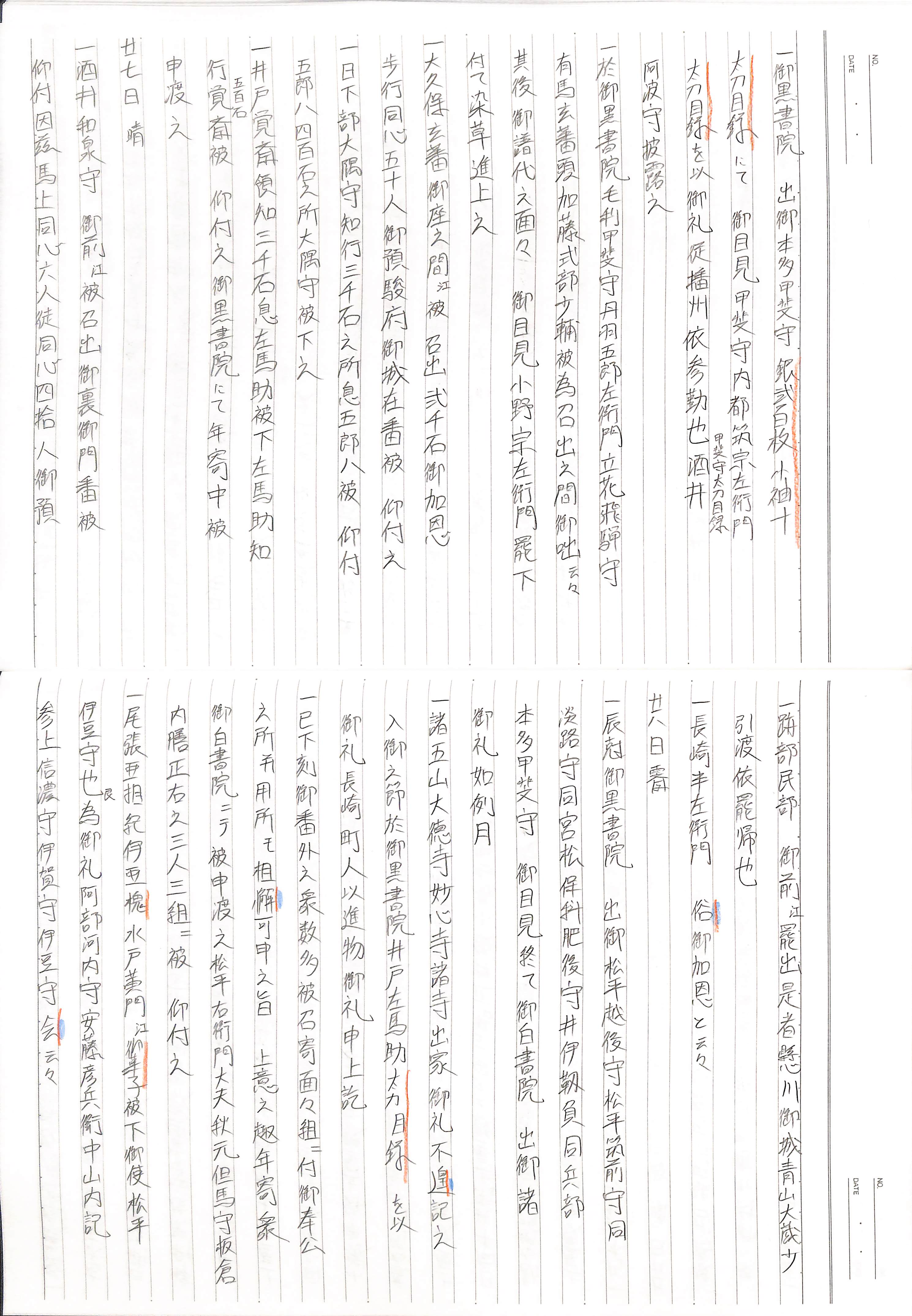 藤井讓治監修『江戸幕府日記姫路酒井家本』第2巻(ゆまに書房、2003年)より作成。原史料は姫路市立城郭研究室所蔵。