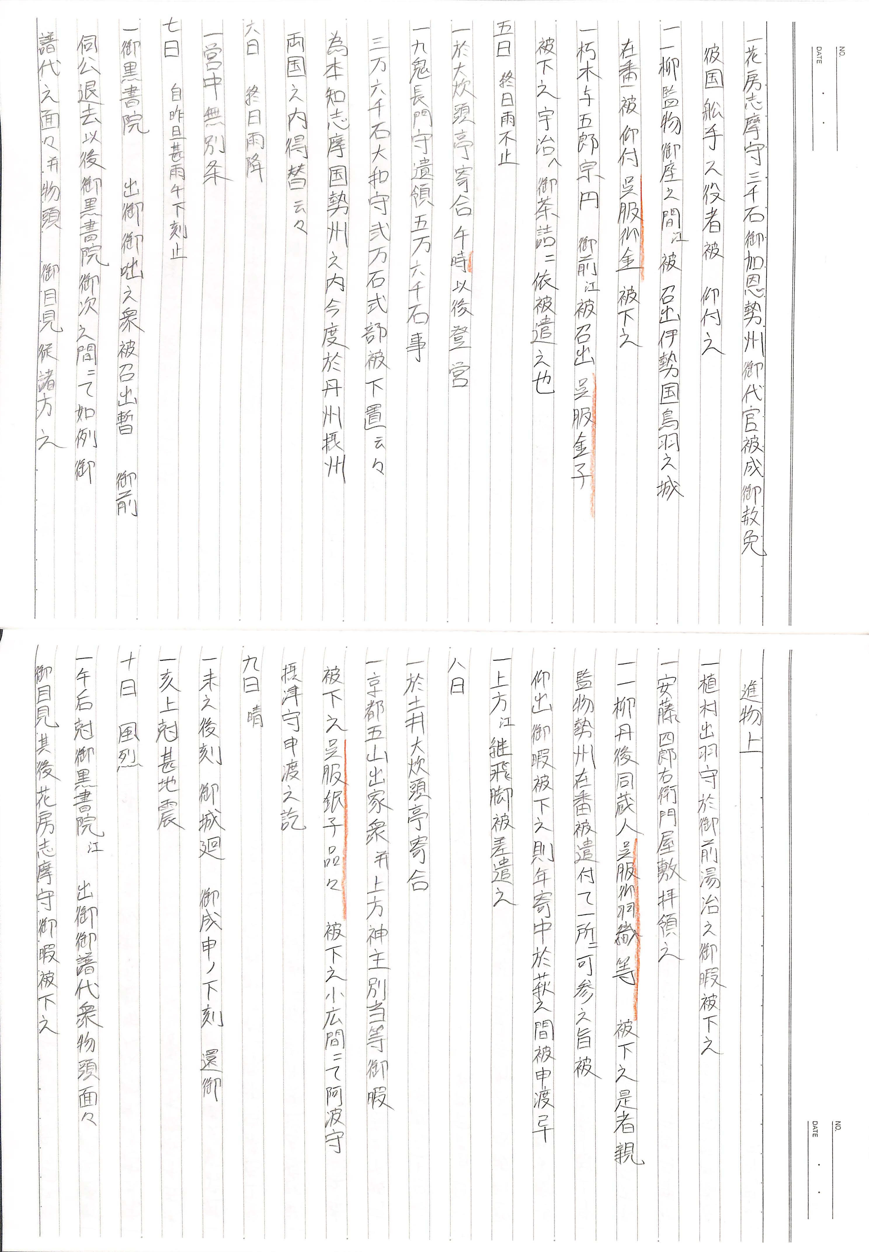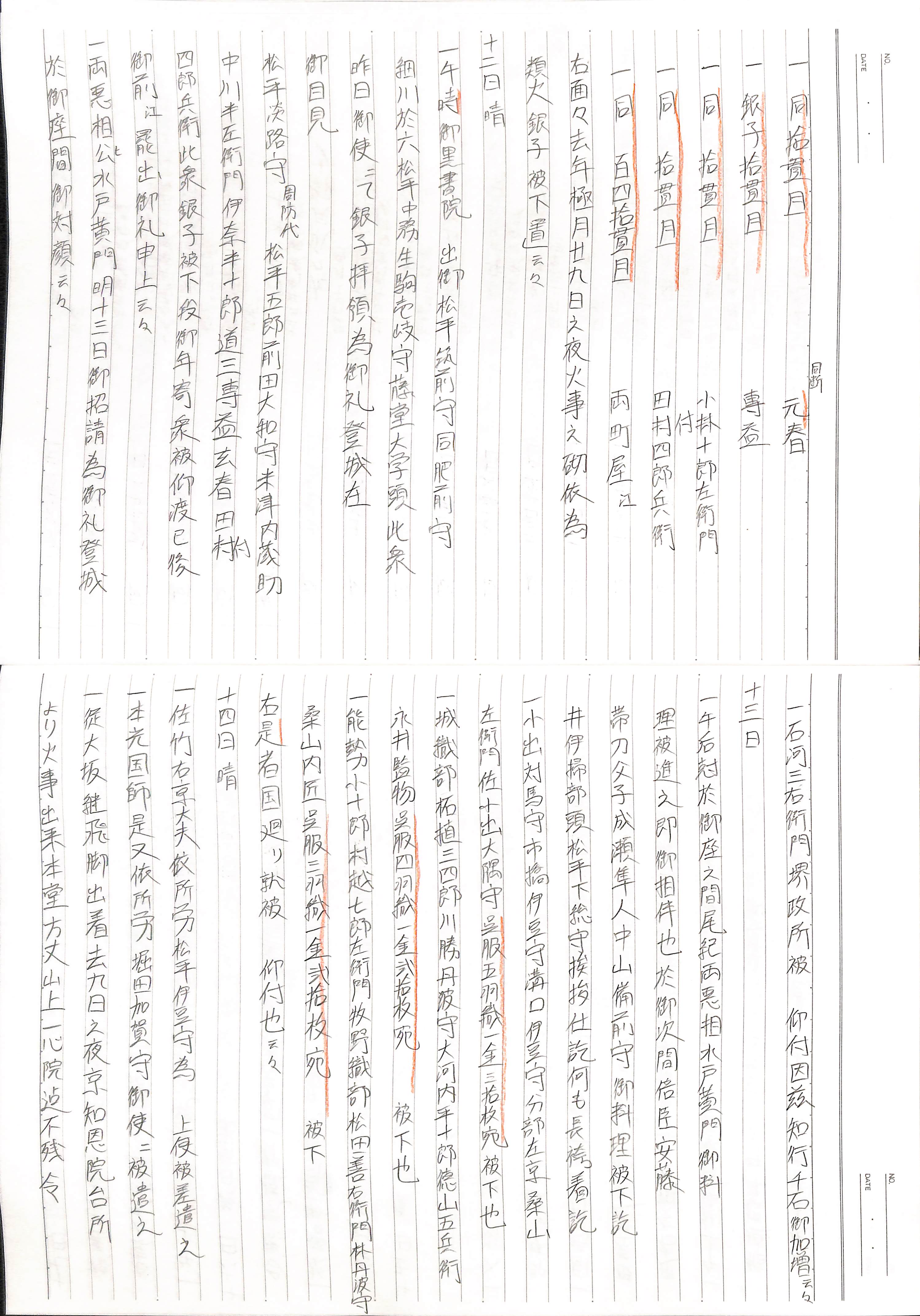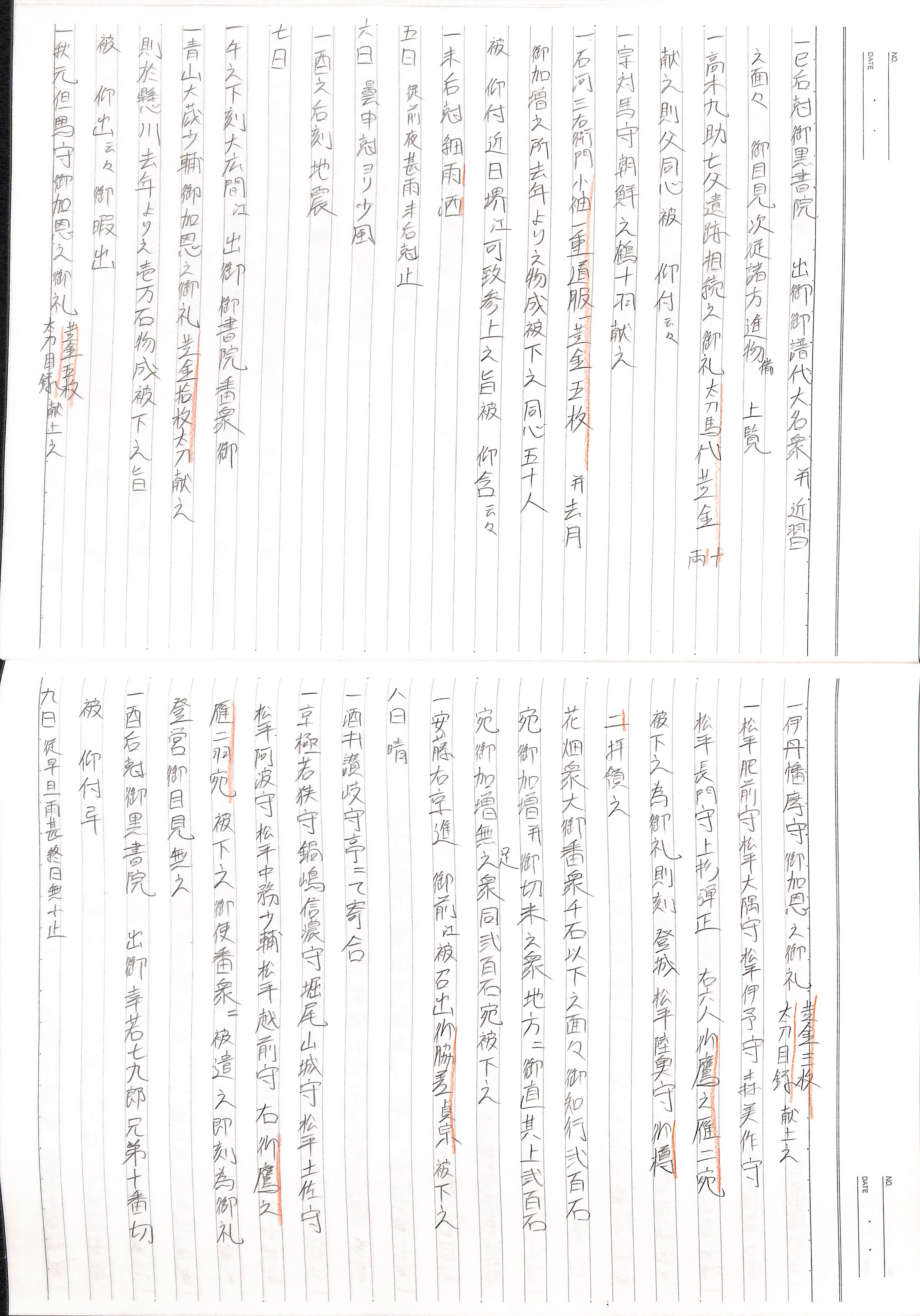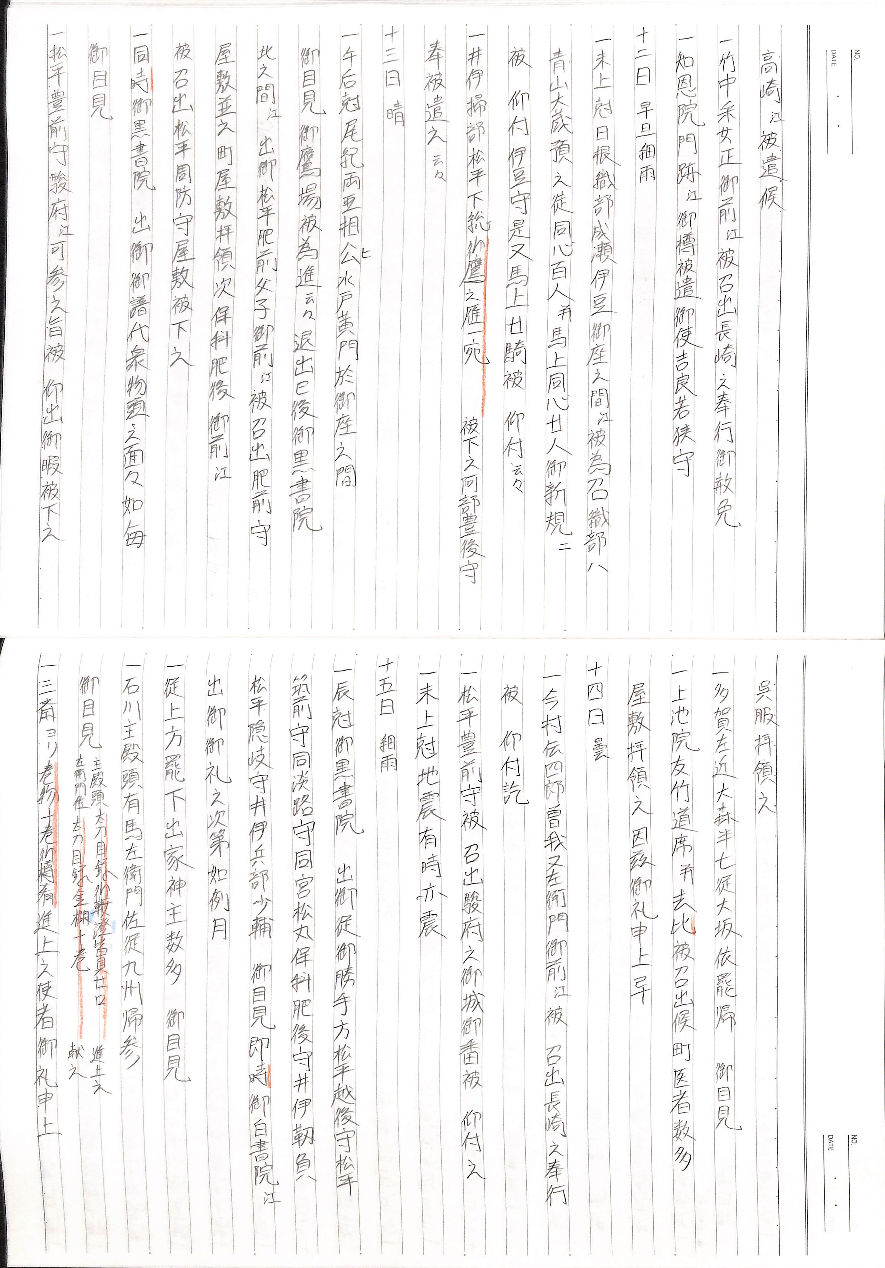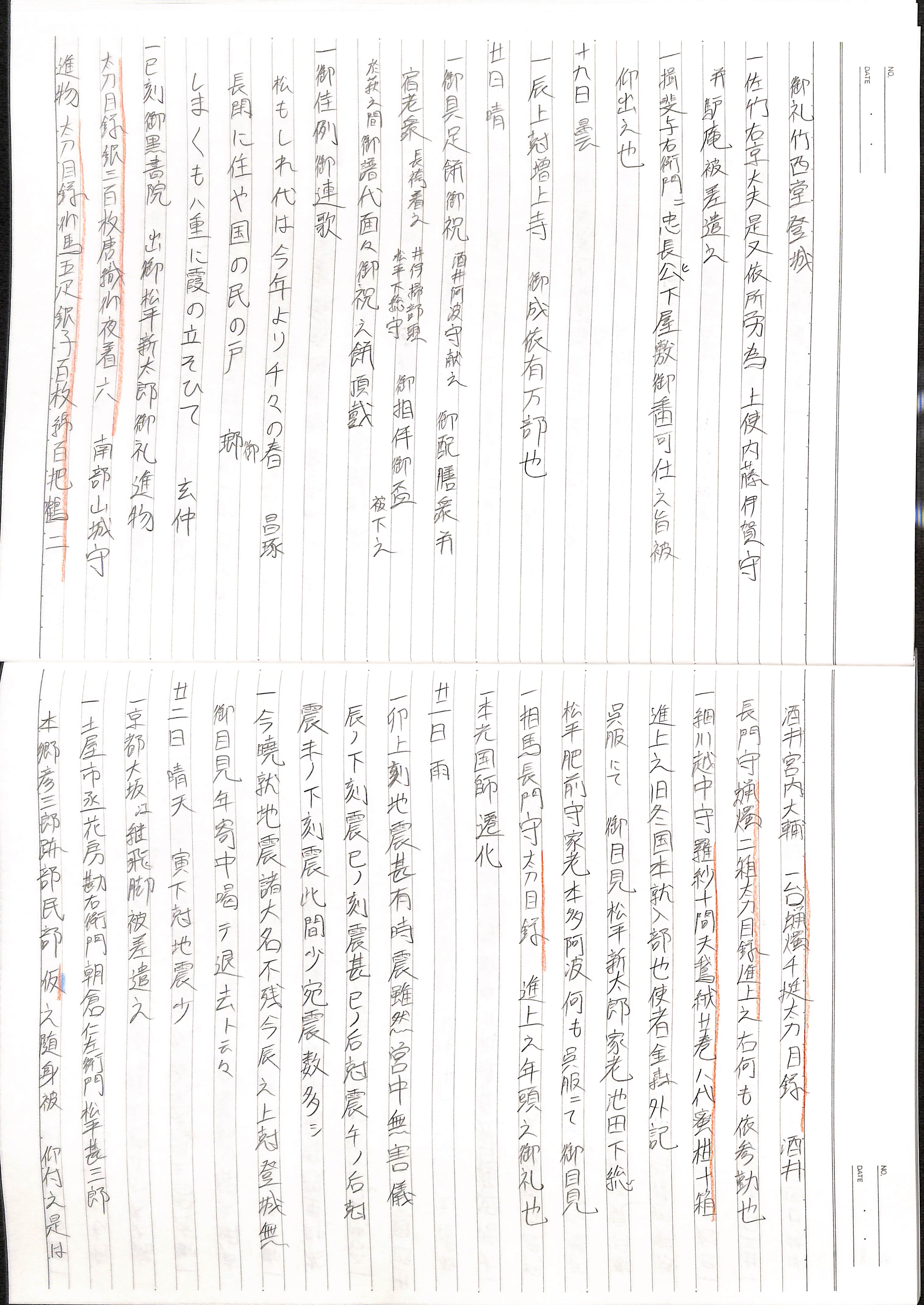 藤井讓治監修『江戸幕府日記姫路酒井家本』第2巻(ゆまに書房、2003年)より作成。原史料は姫路市立城郭研究室所蔵。