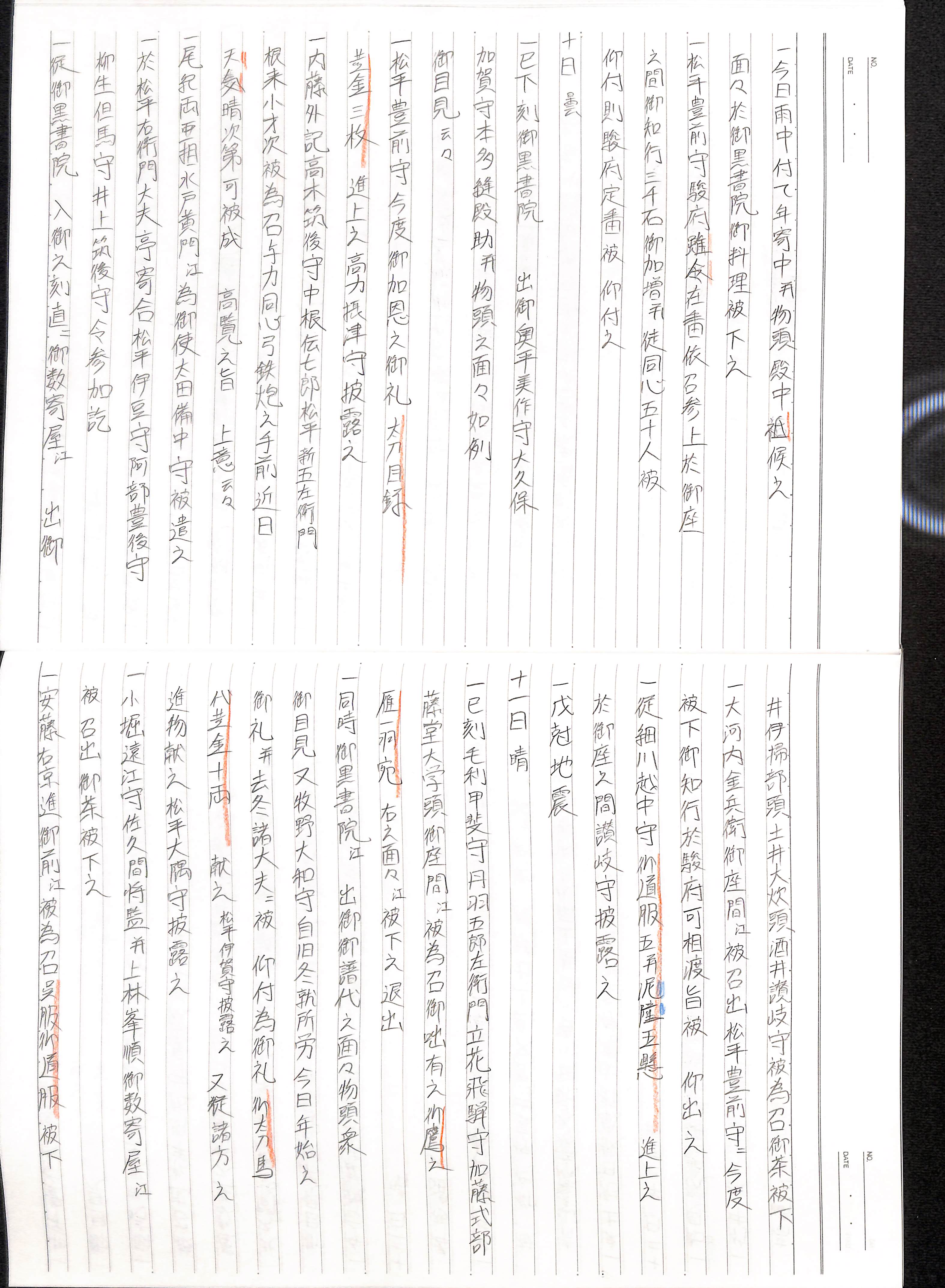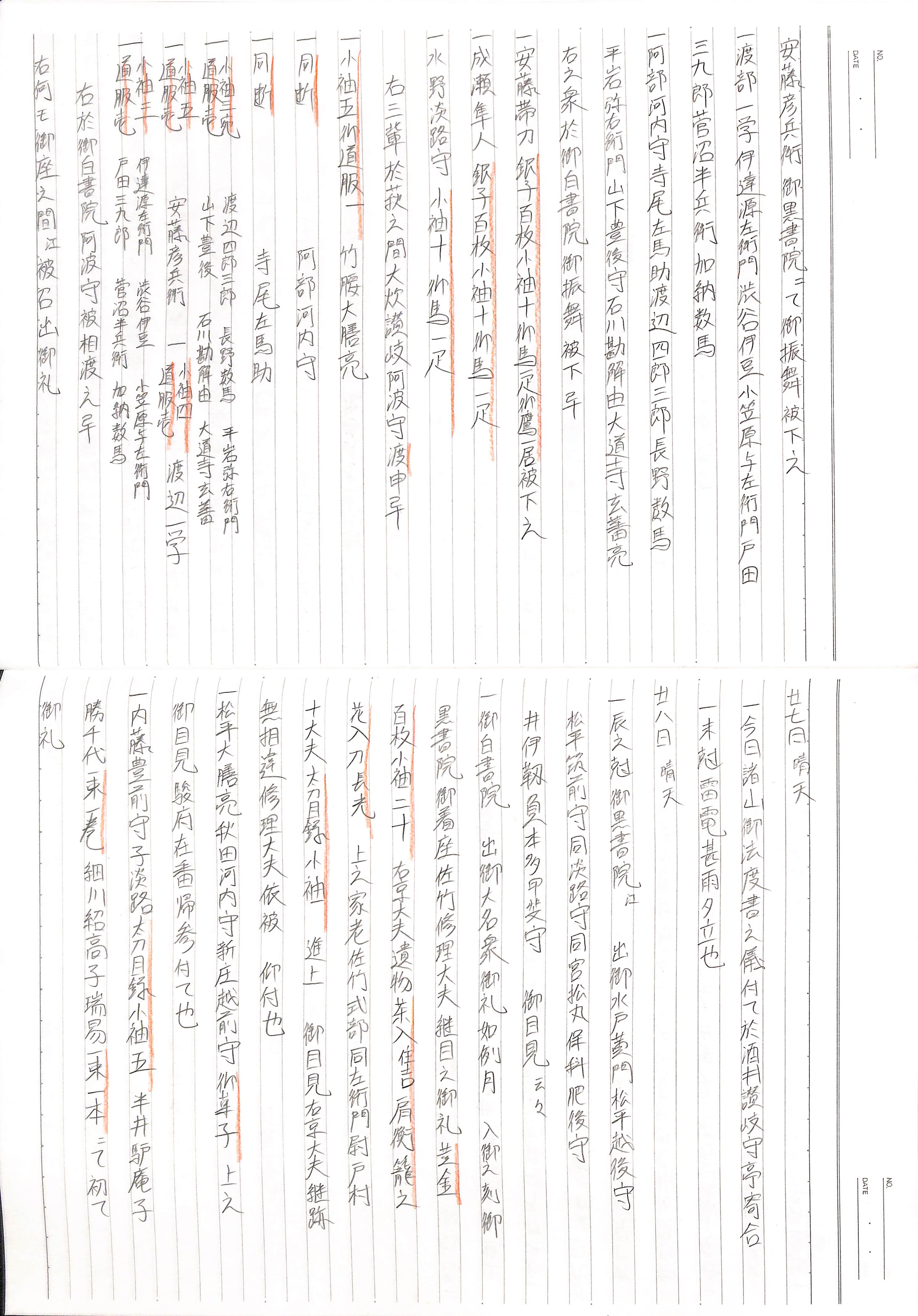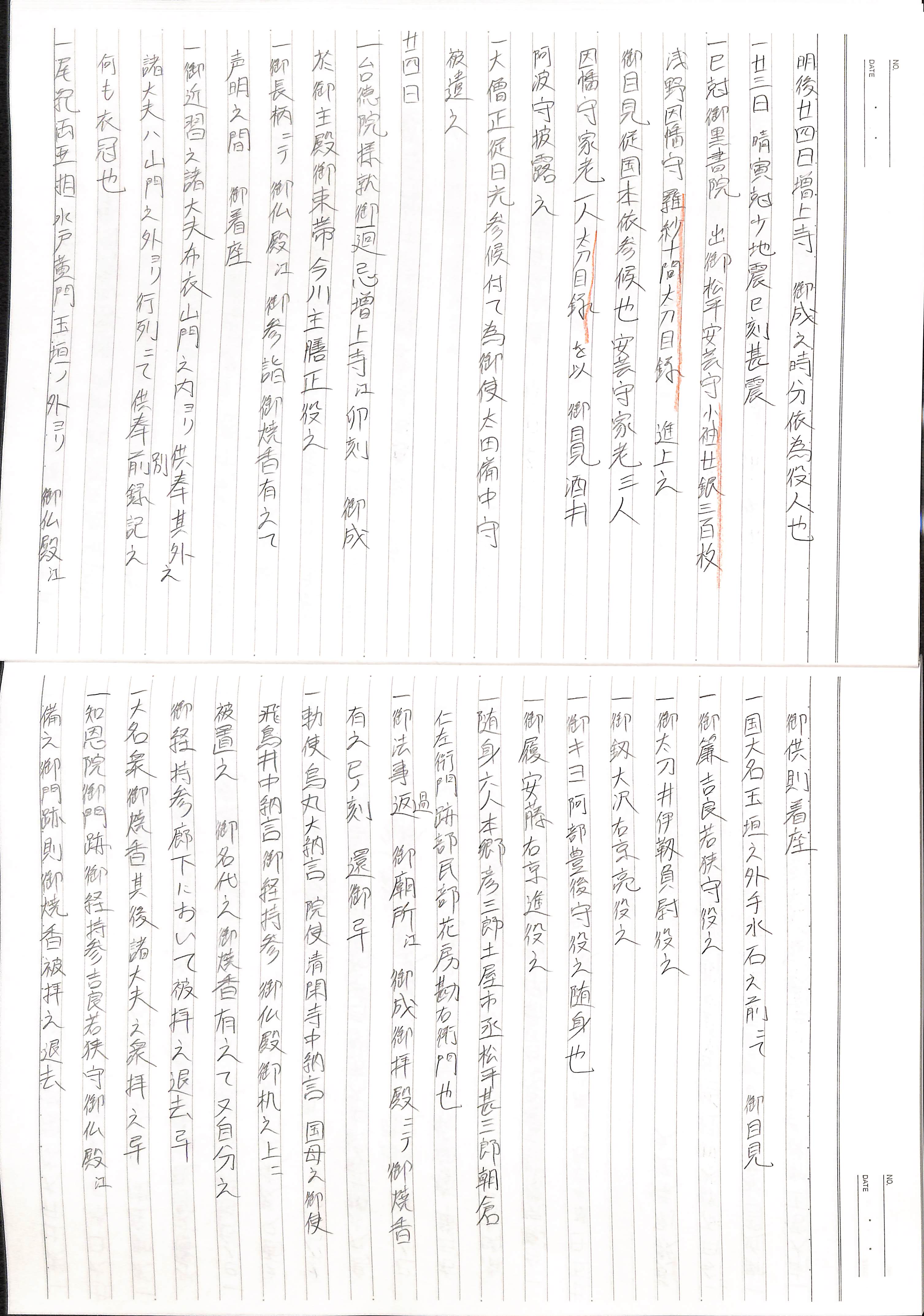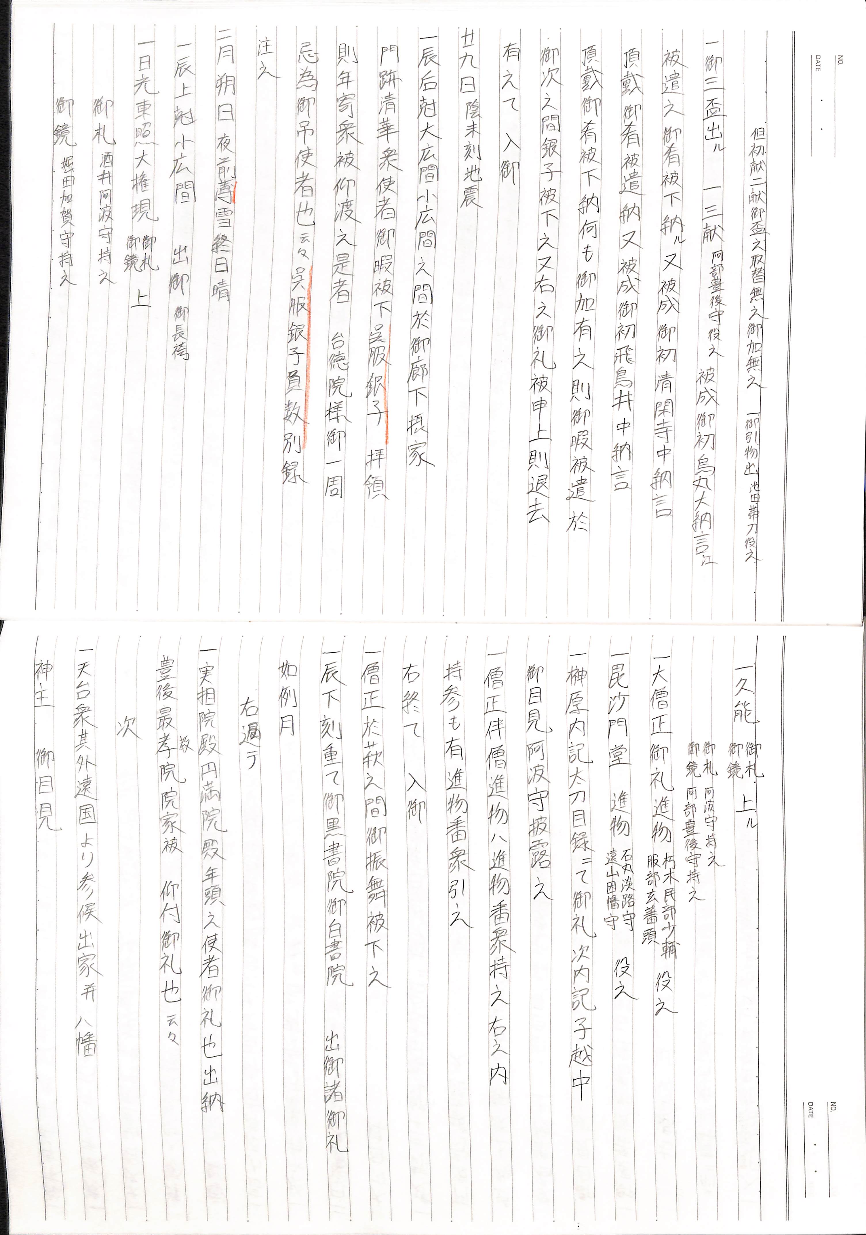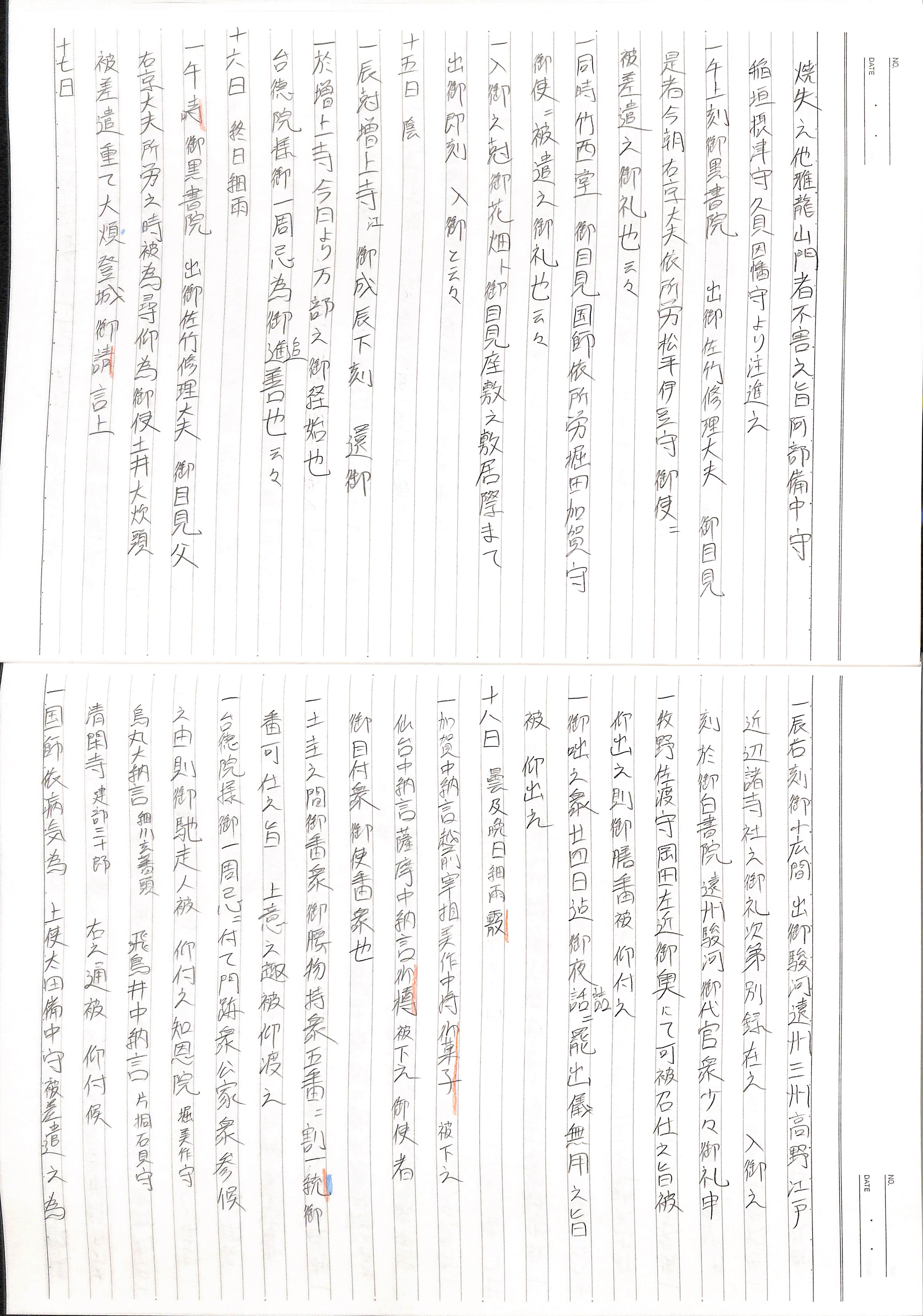 藤井讓治監修『江戸幕府日記姫路酒井家本』第2巻(ゆまに書房、2003年)より作成。原史料は姫路市立城郭研究室所蔵。
