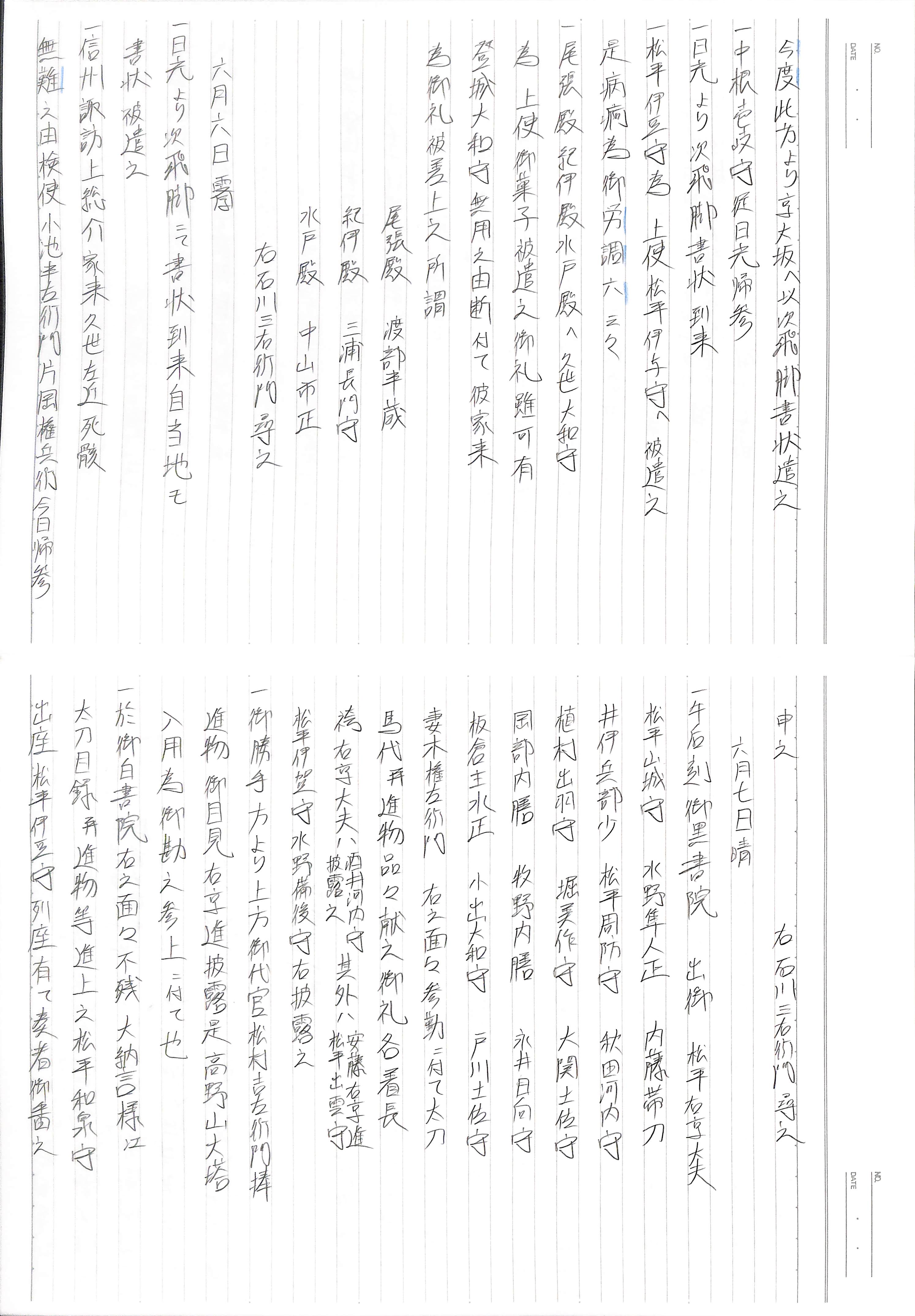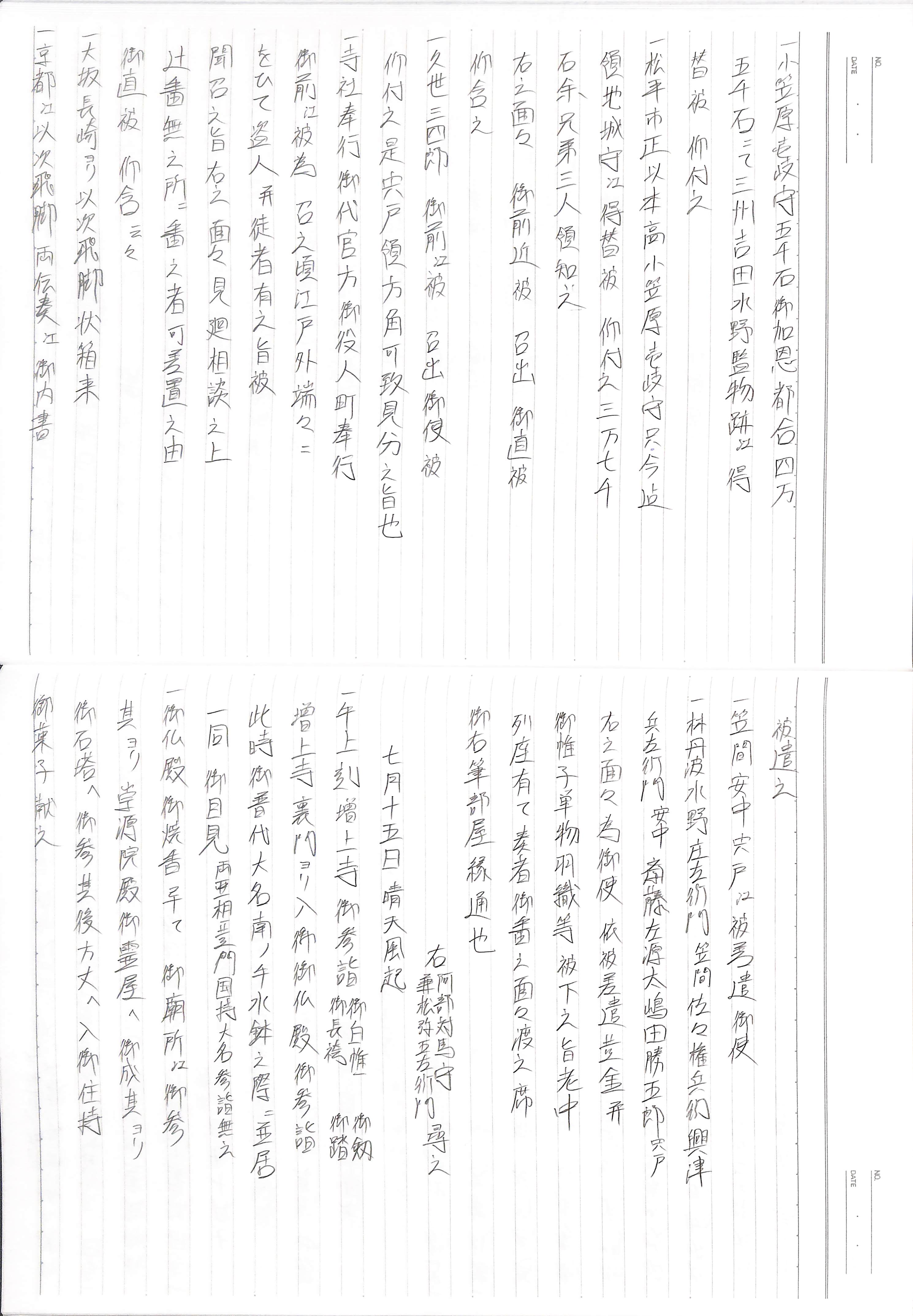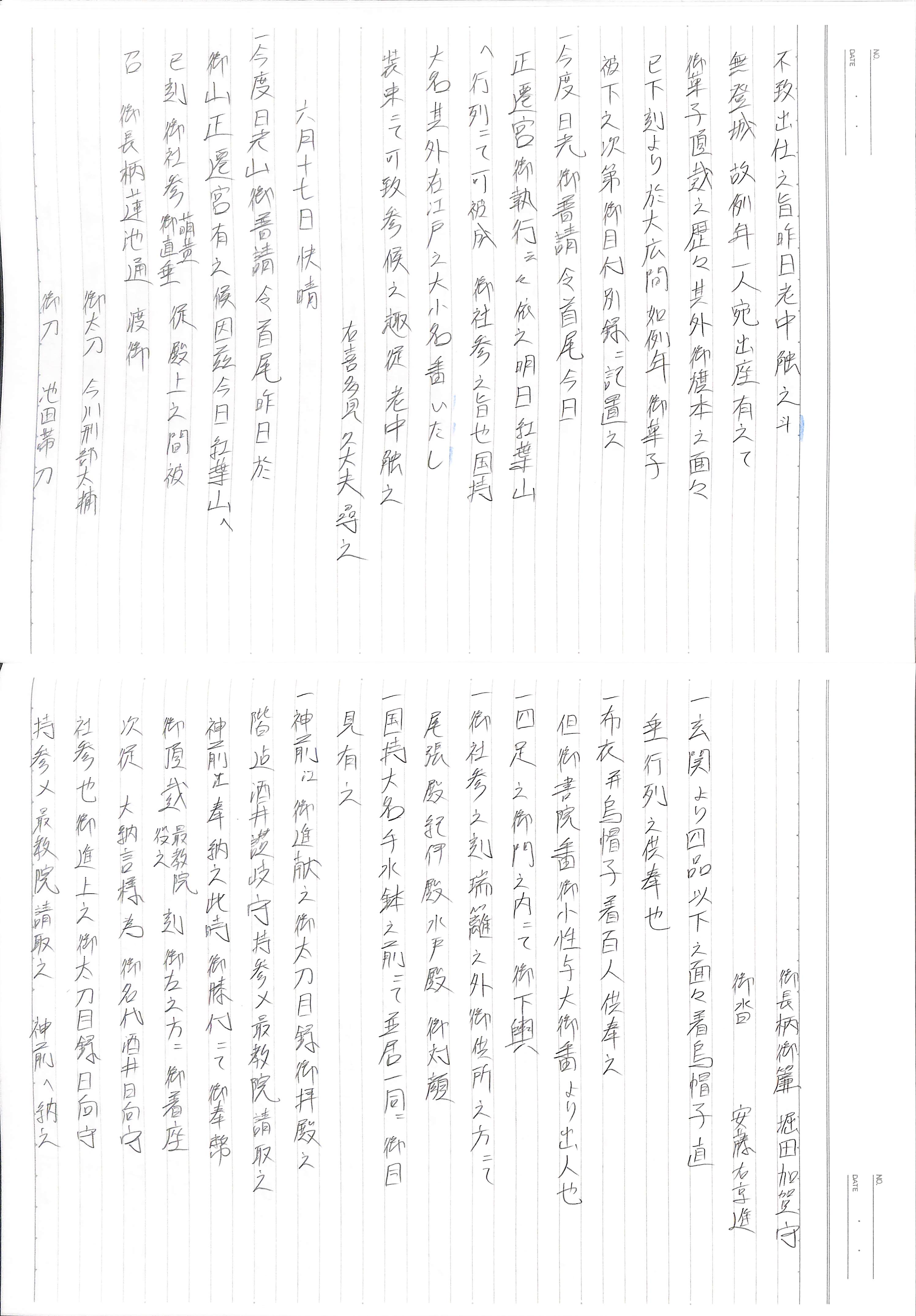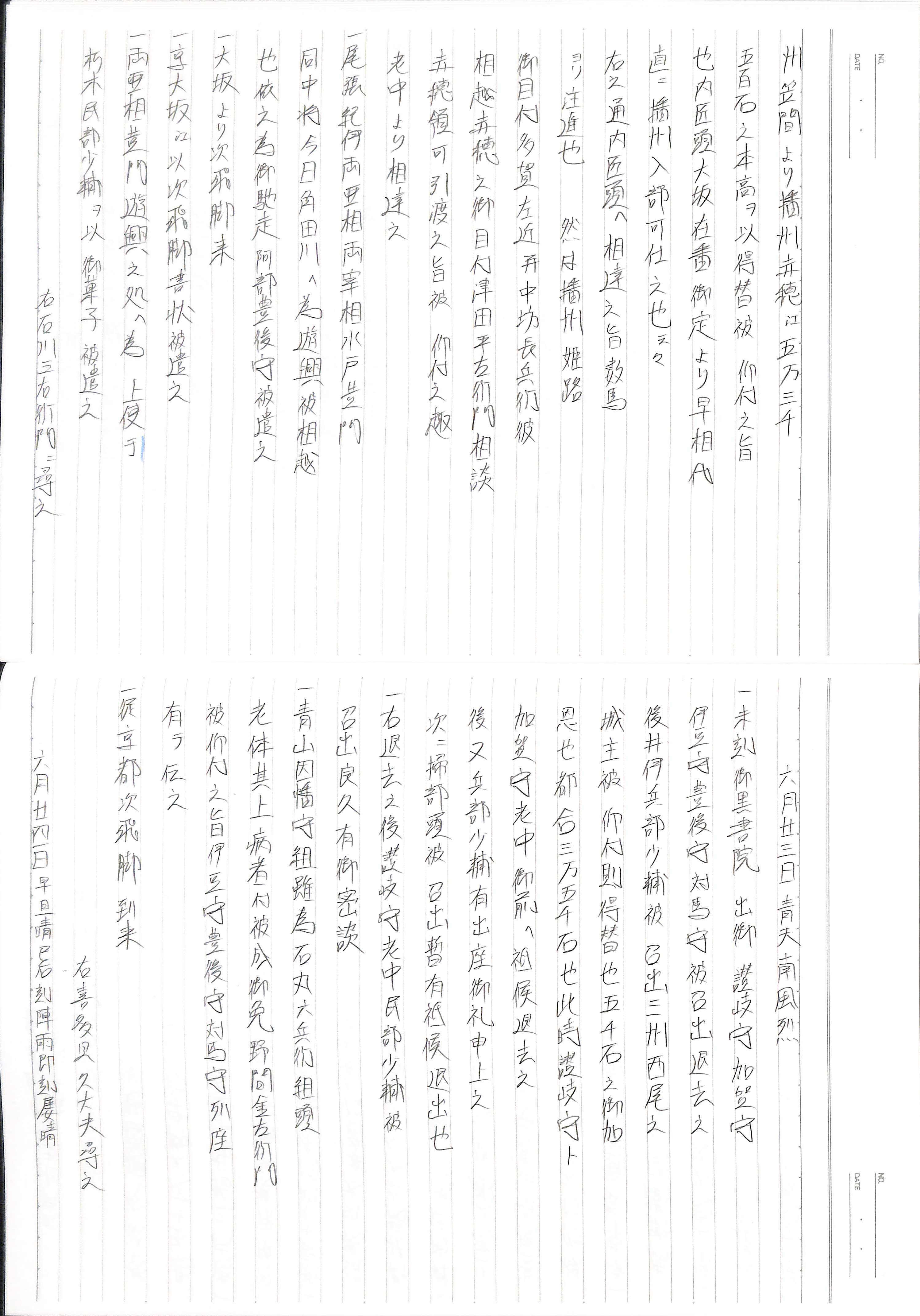 藤井讓治監修『江戸幕府日記姫路酒井家本』第16巻(ゆまに書房、2004年)より作成。原史料は姫路市立城郭研究室所蔵。