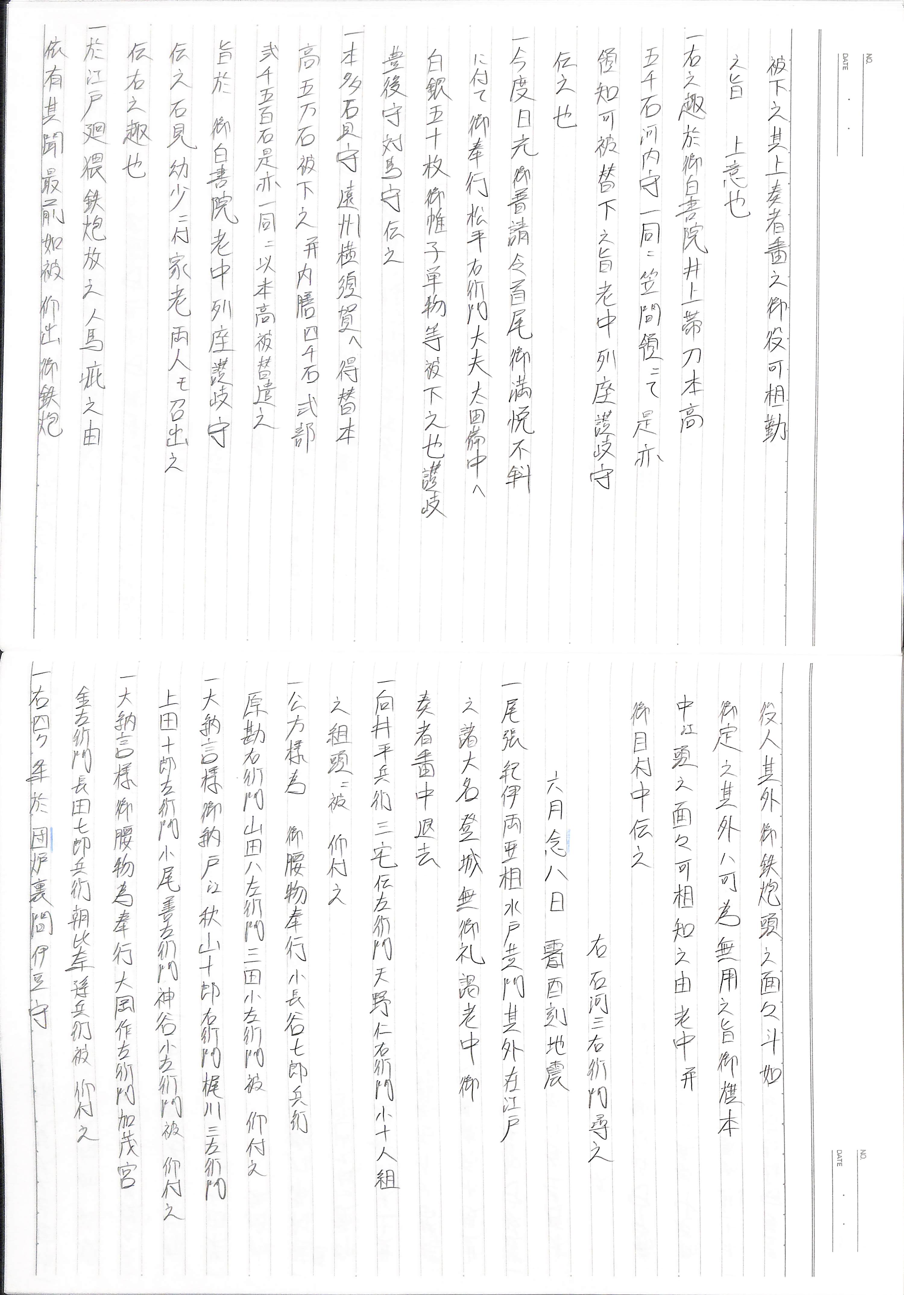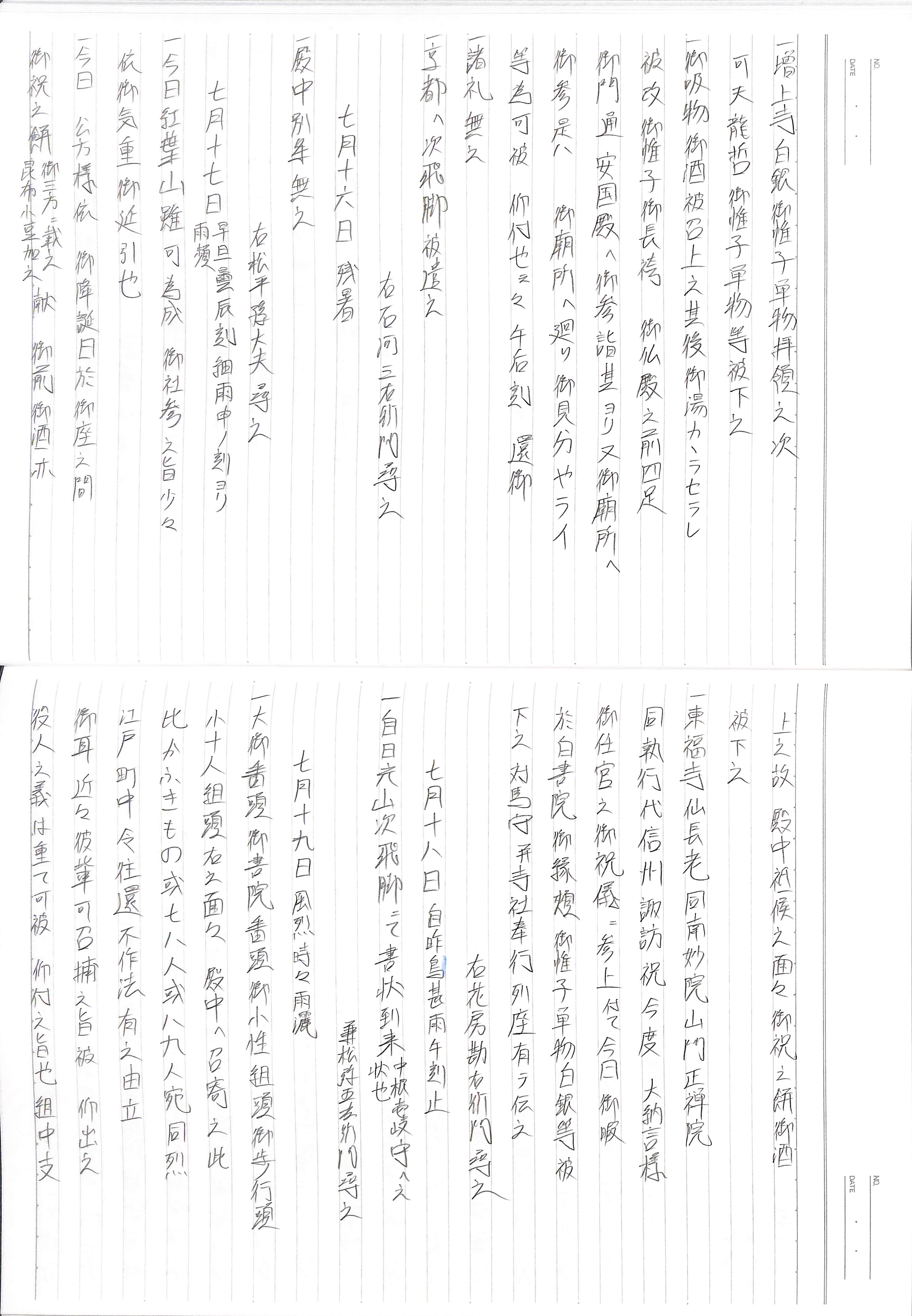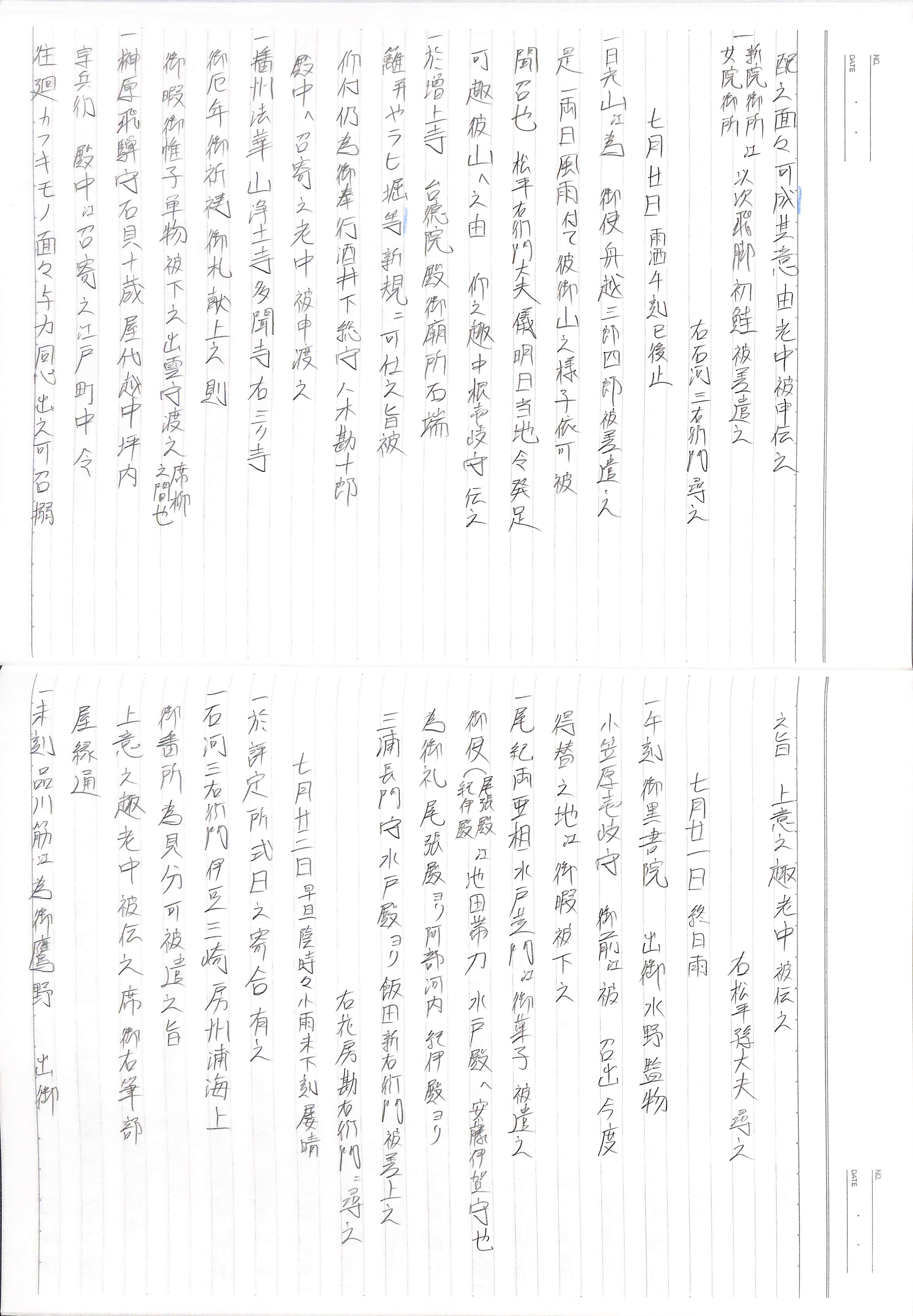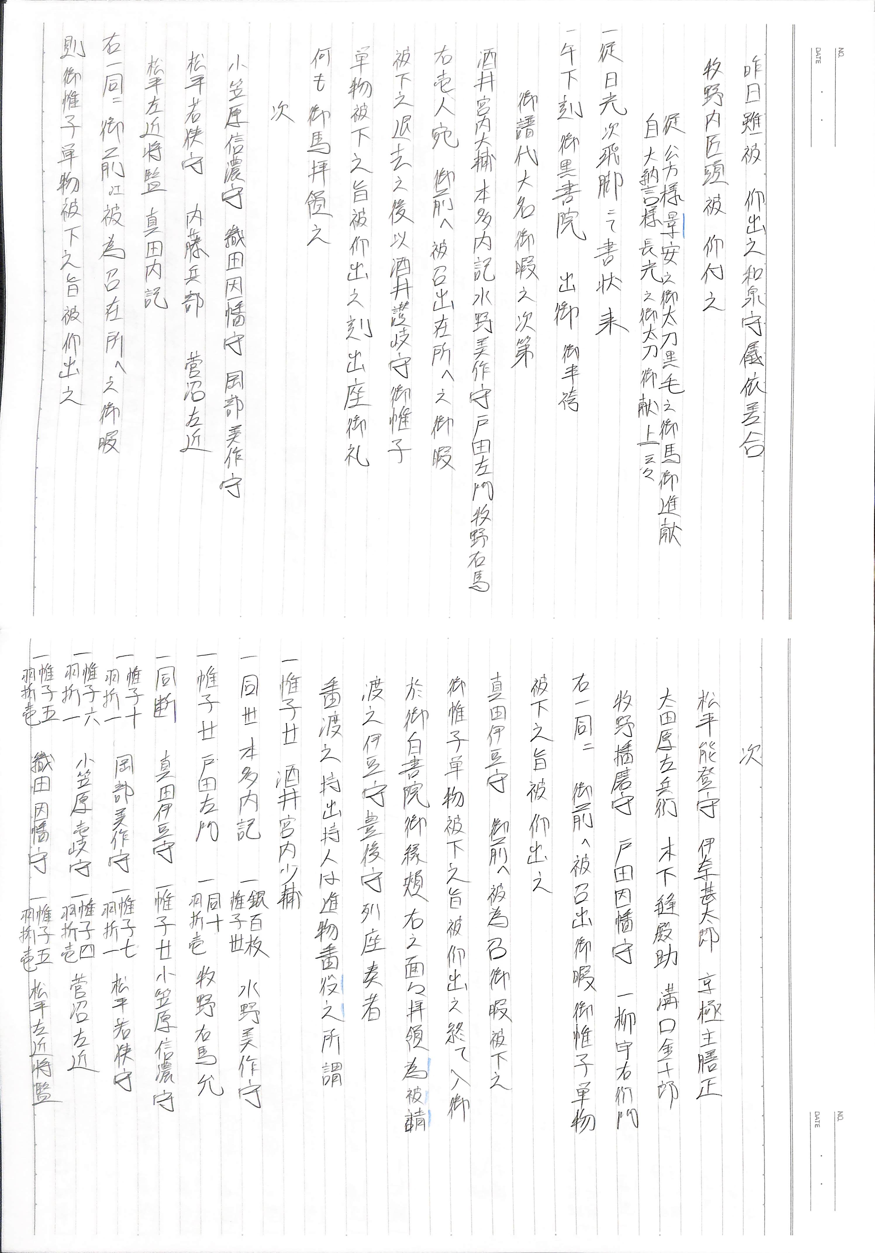 藤井讓治監修『江戸幕府日記姫路酒井家本』第16巻(ゆまに書房、2004年)より作成。原史料は姫路市立城郭研究室所蔵。
