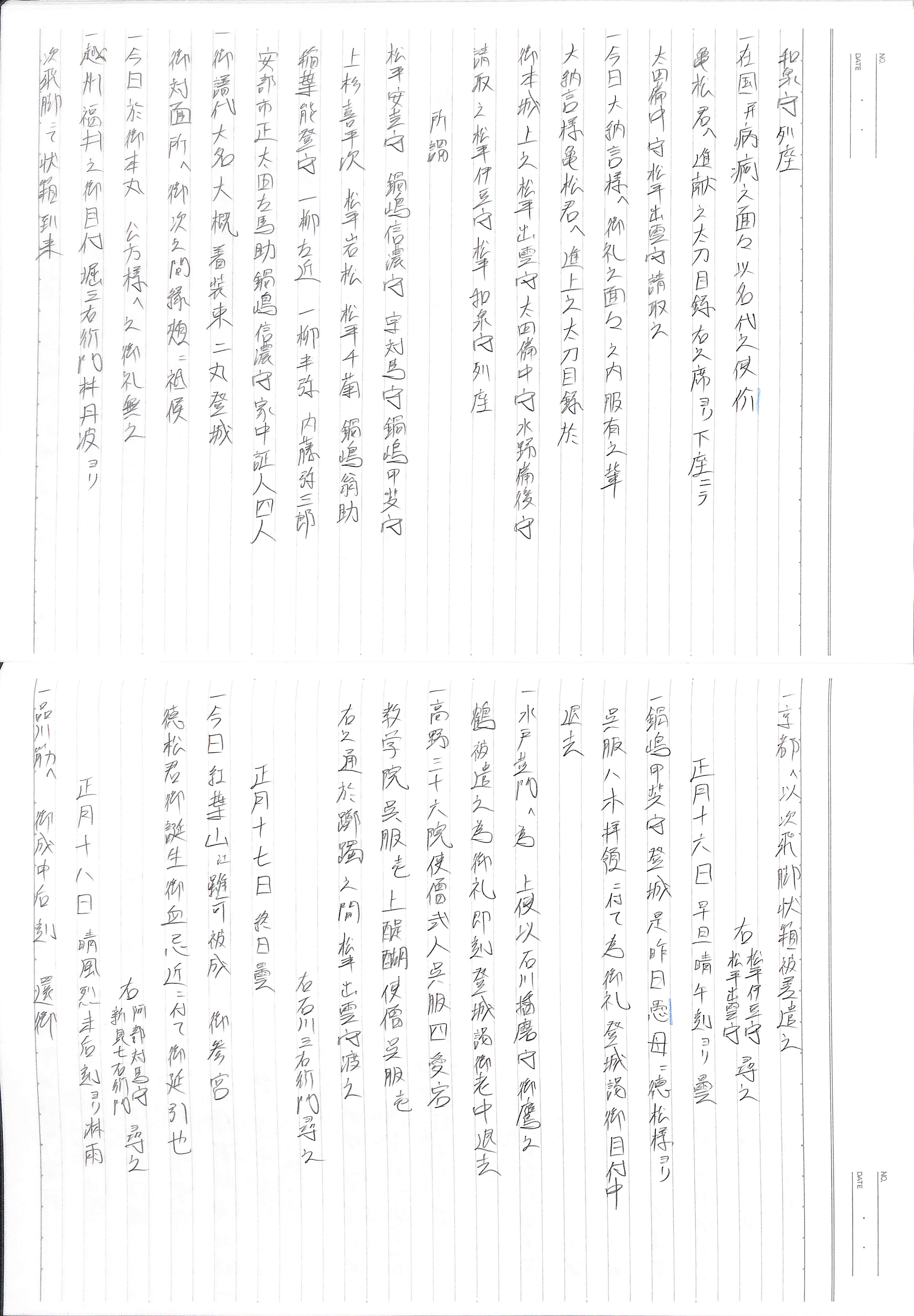 藤井讓治監修『江戸幕府日記姫路酒井家本』第17巻(ゆまに書房、2004年)より作成。原史料は姫路市立城郭研究室所蔵。