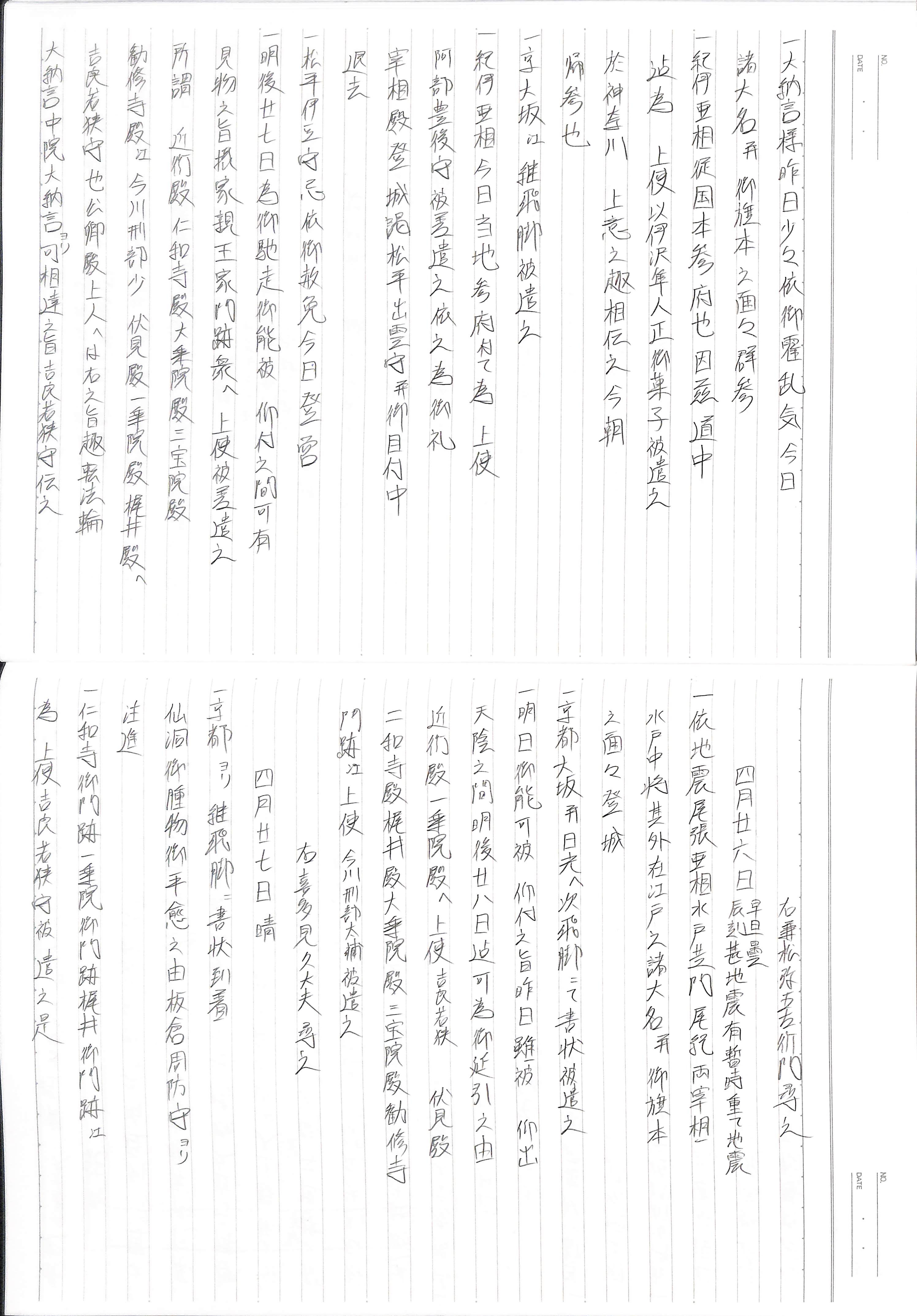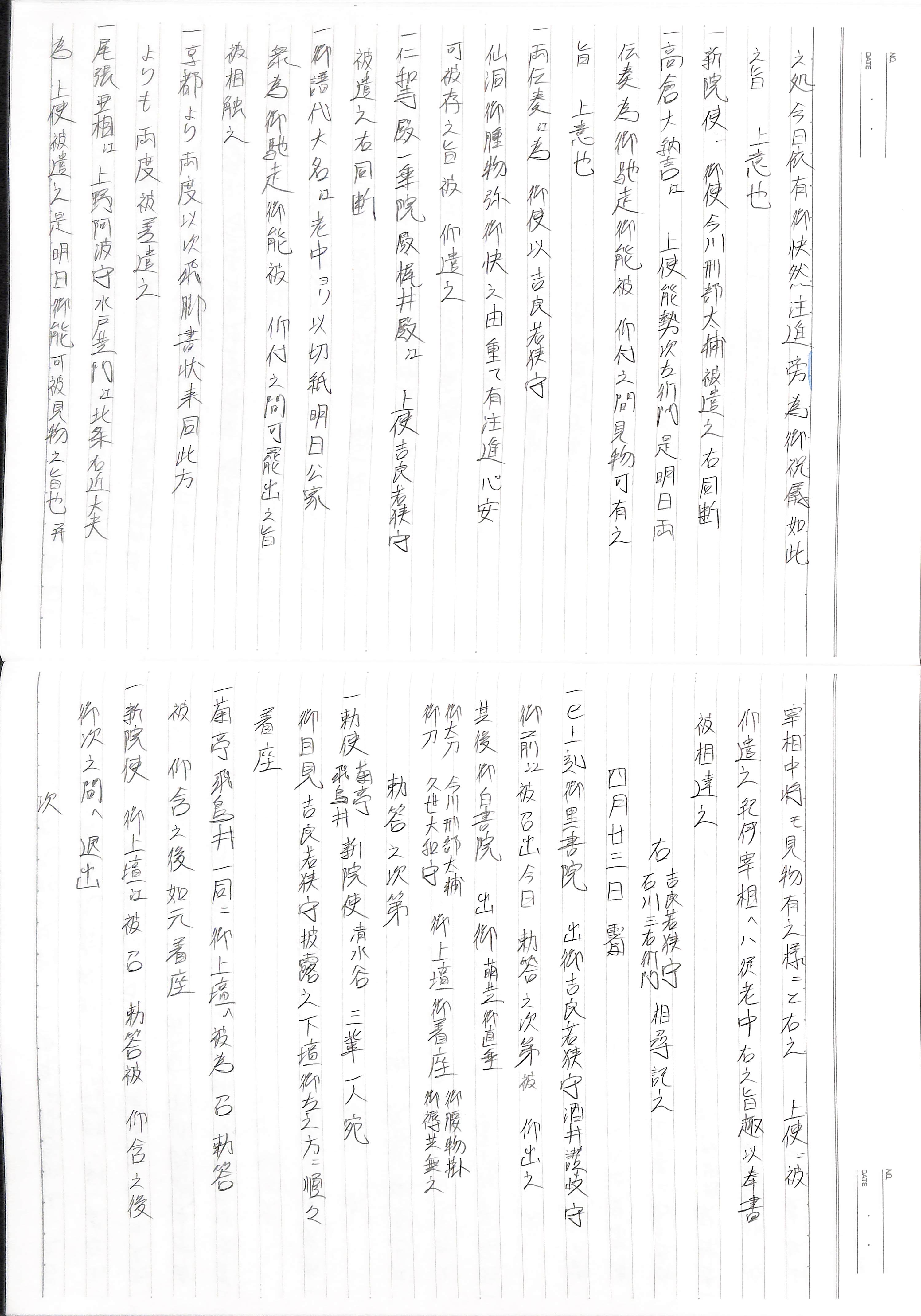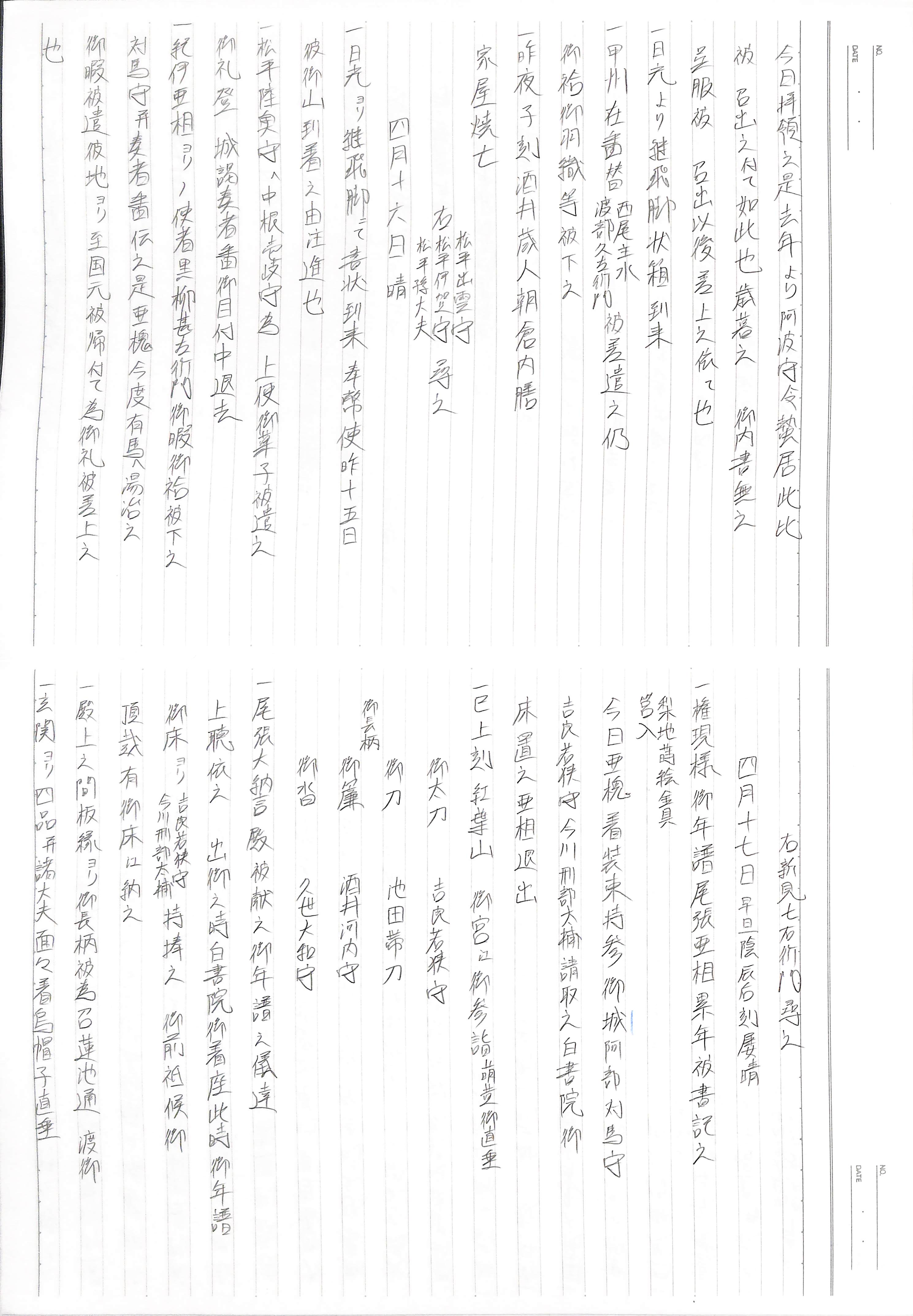 藤井讓治監修『江戸幕府日記姫路酒井家本』第17巻(ゆまに書房、2004年)より作成。原史料は姫路市立城郭研究室所蔵。