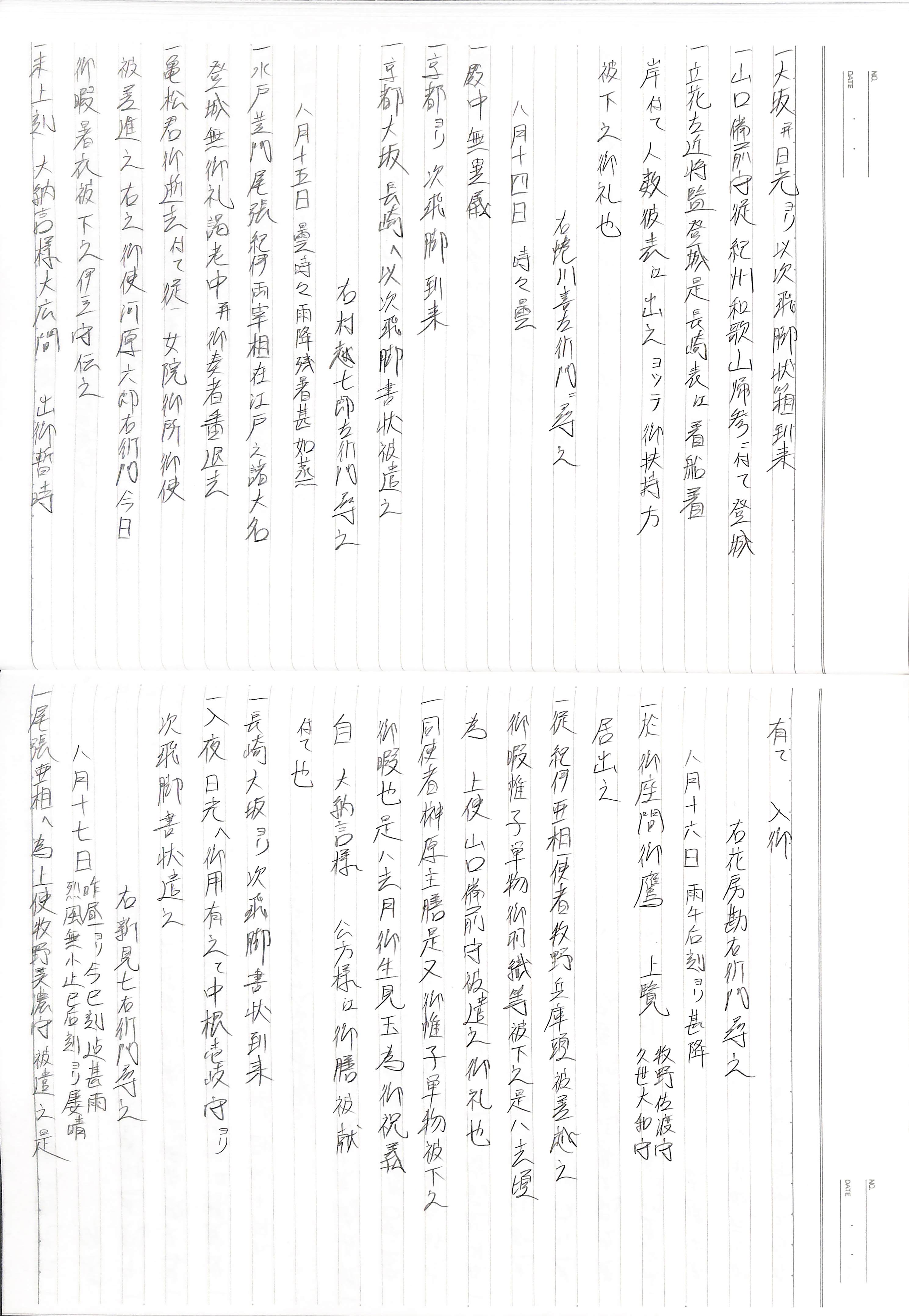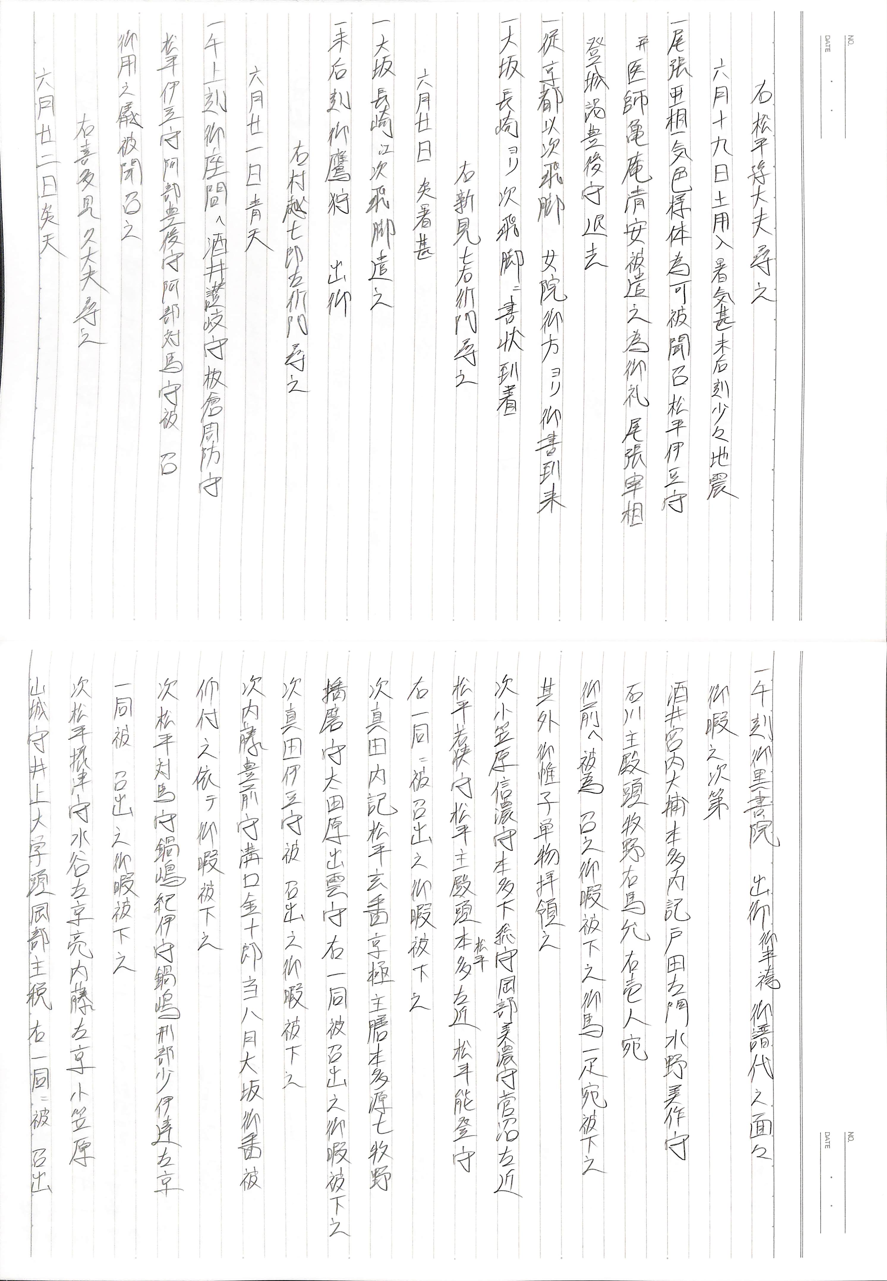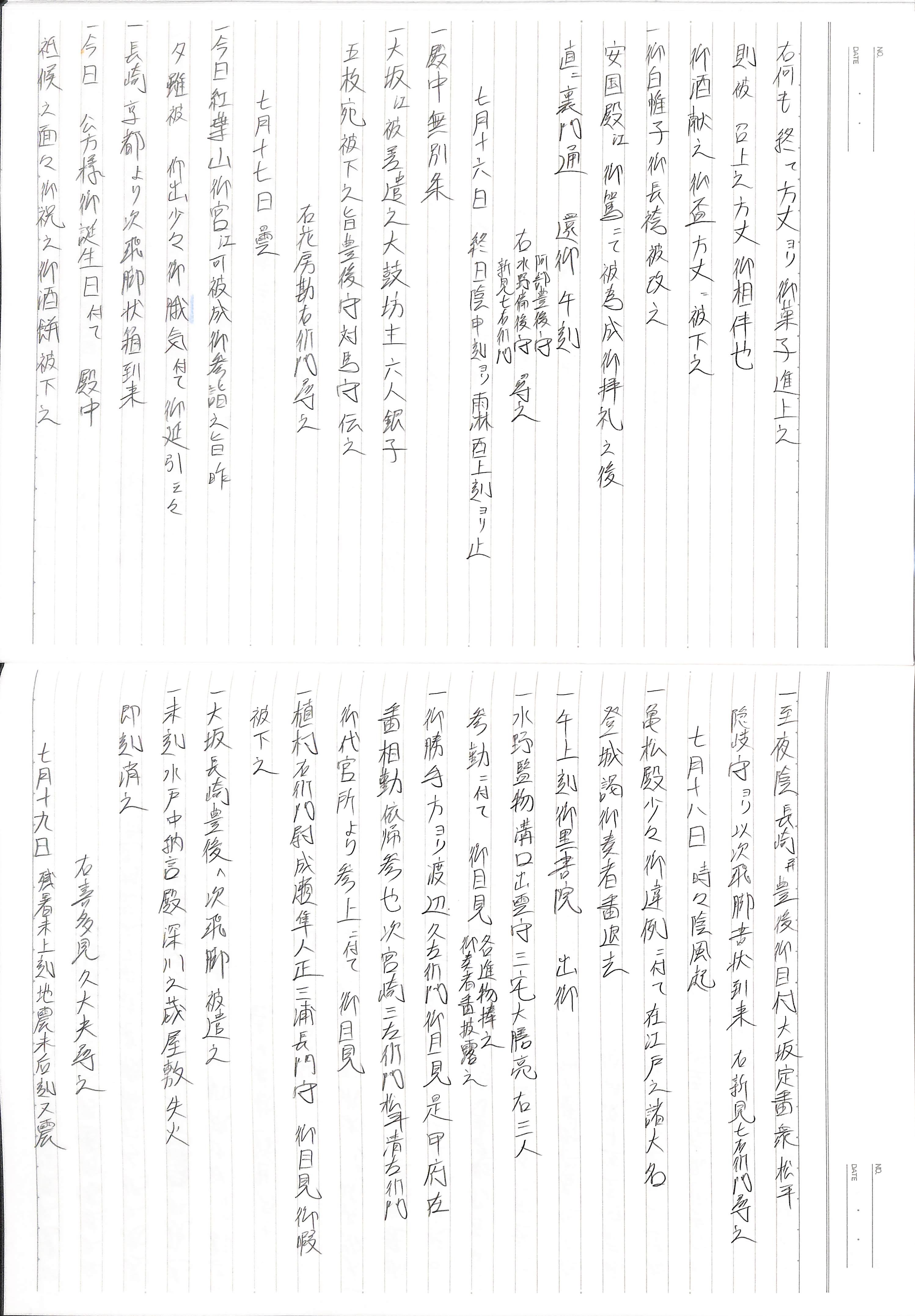 藤井讓治監修『江戸幕府日記姫路酒井家本』第19、20巻(ゆまに書房、2004年)より作成。原史料は姫路市立城郭研究室所蔵。