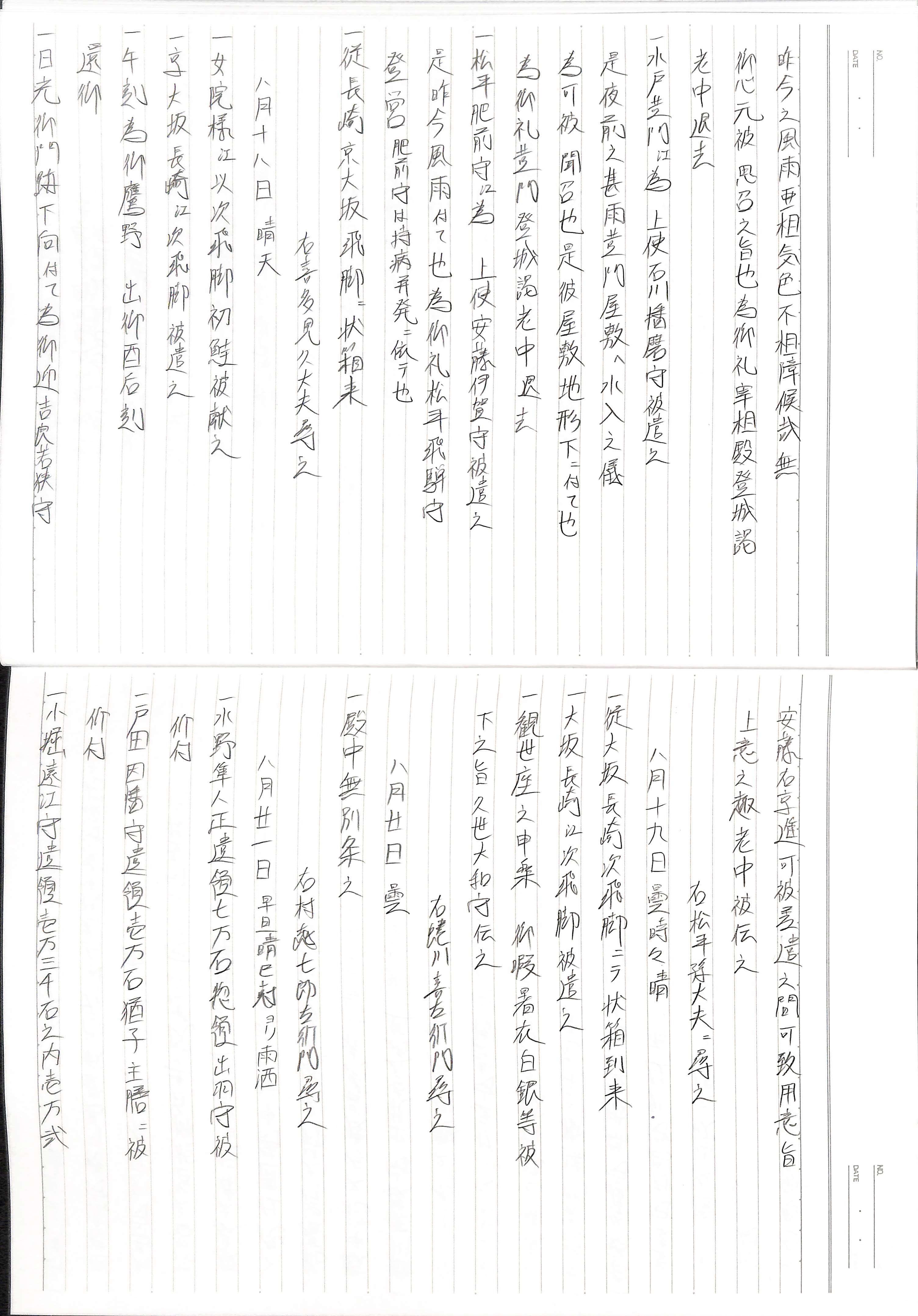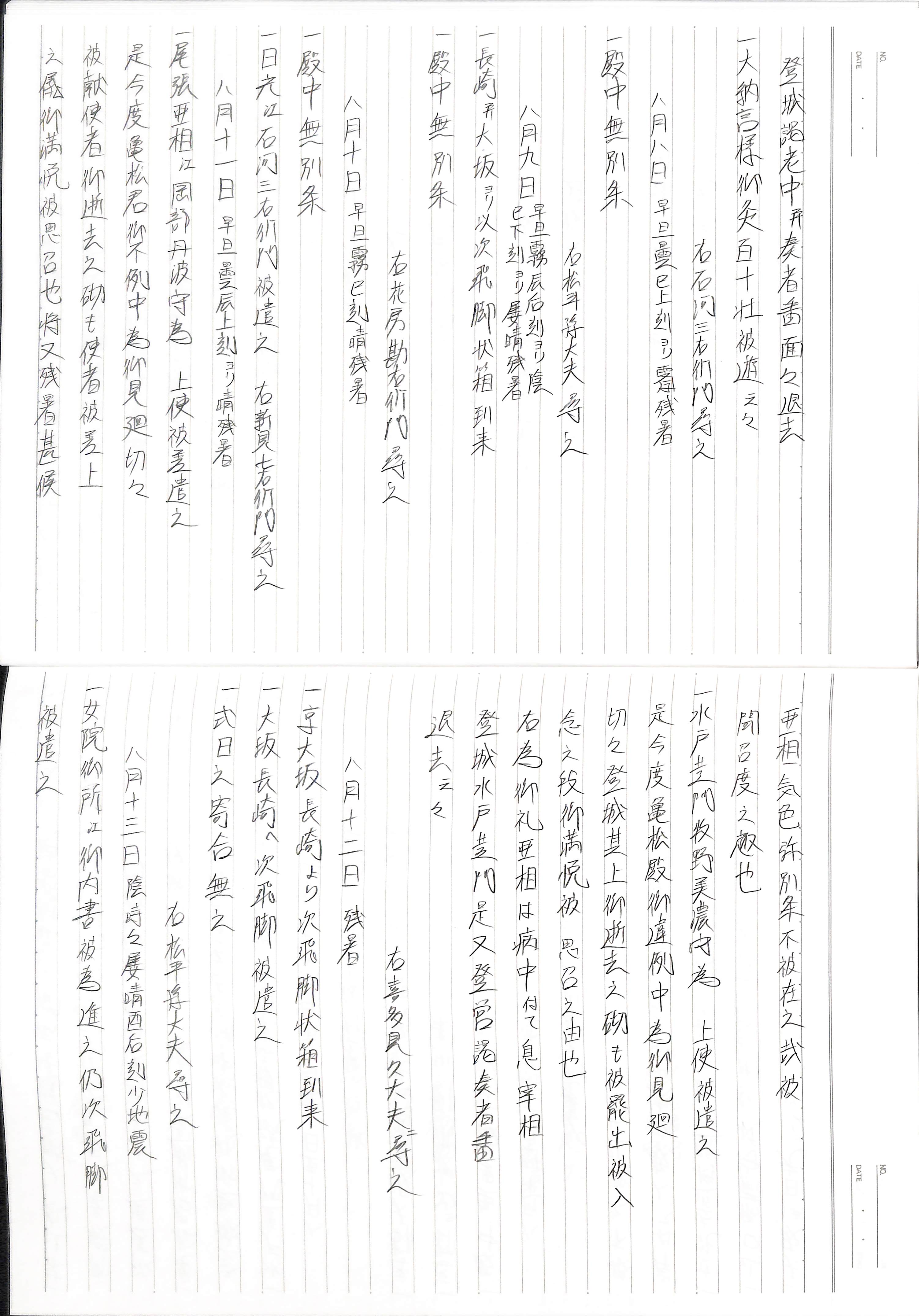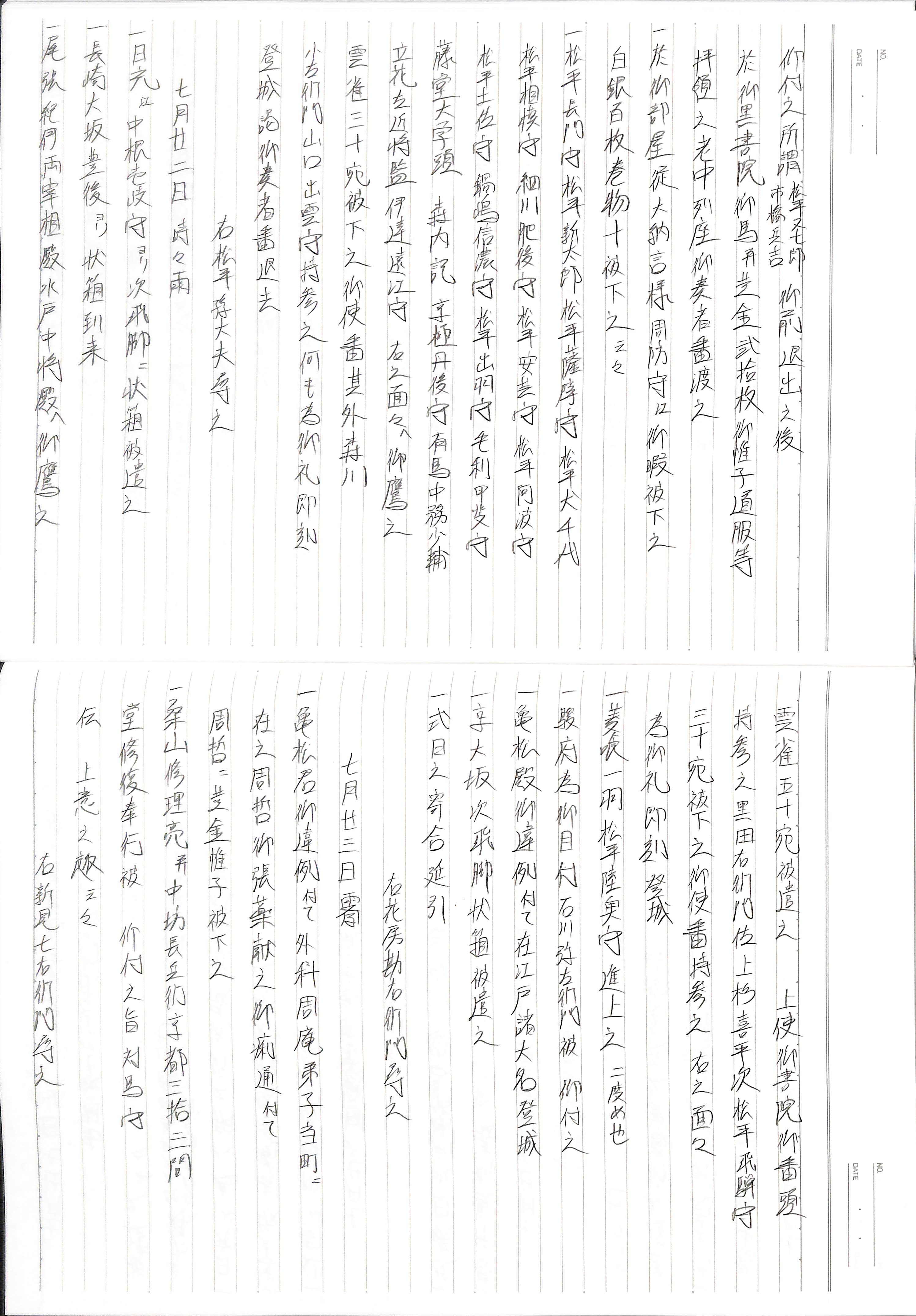 藤井讓治監修『江戸幕府日記姫路酒井家本』第19、20巻(ゆまに書房、2004年)より作成。原史料は姫路市立城郭研究室所蔵。