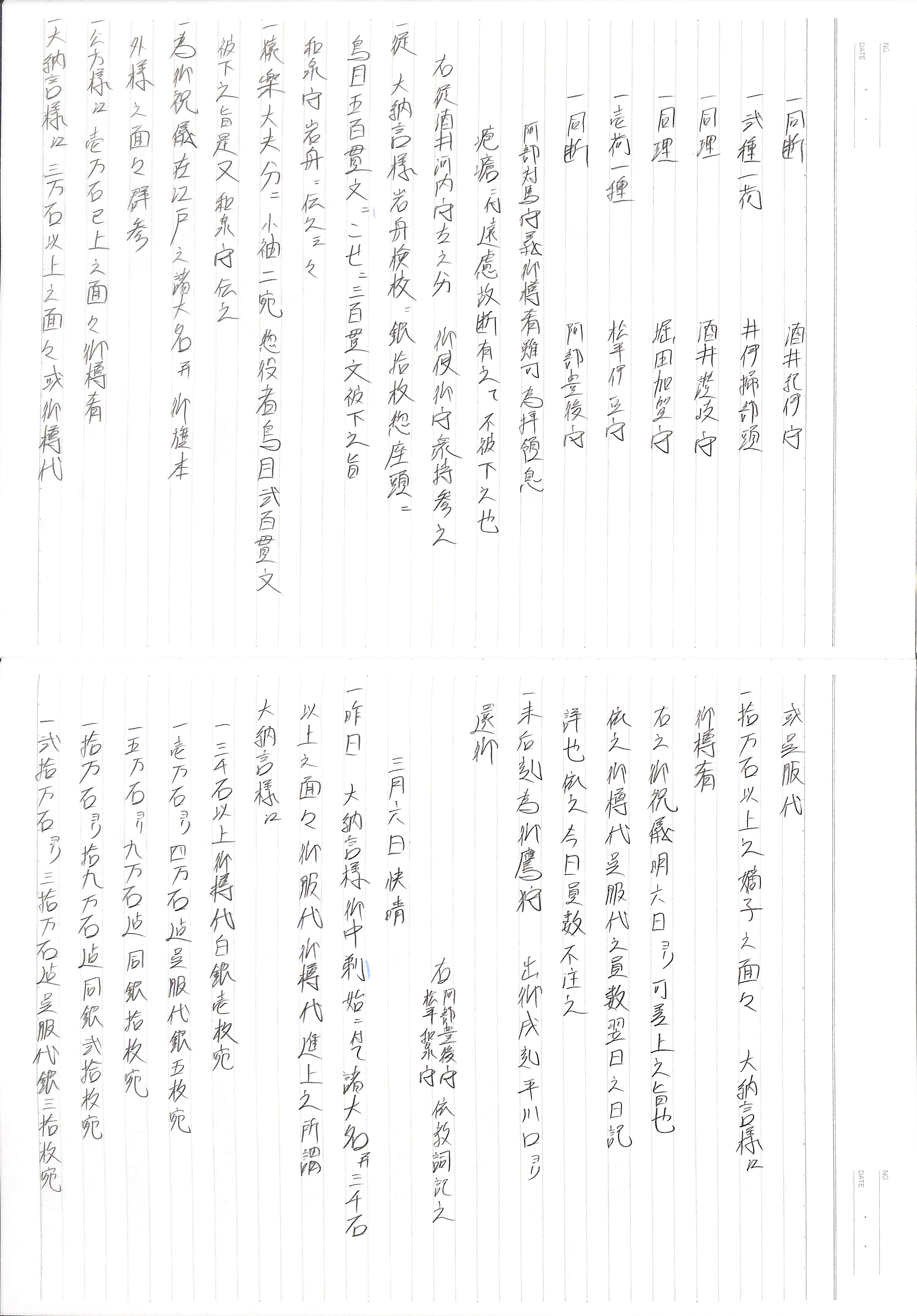 藤井讓治監修『江戸幕府日記姫路酒井家本』第21巻(ゆまに書房、2004年)より作成。原史料は姫路市立城郭研究室所蔵。