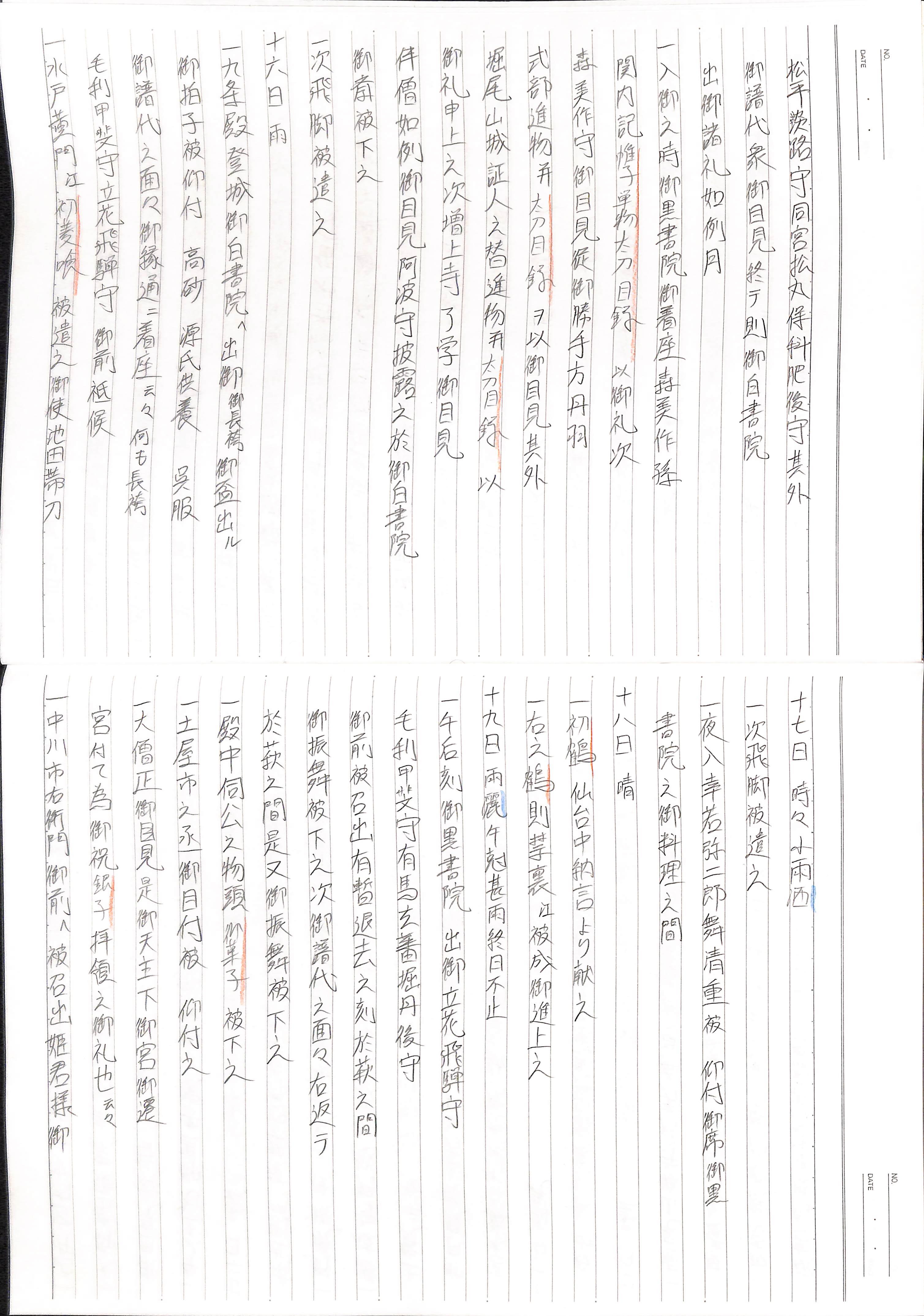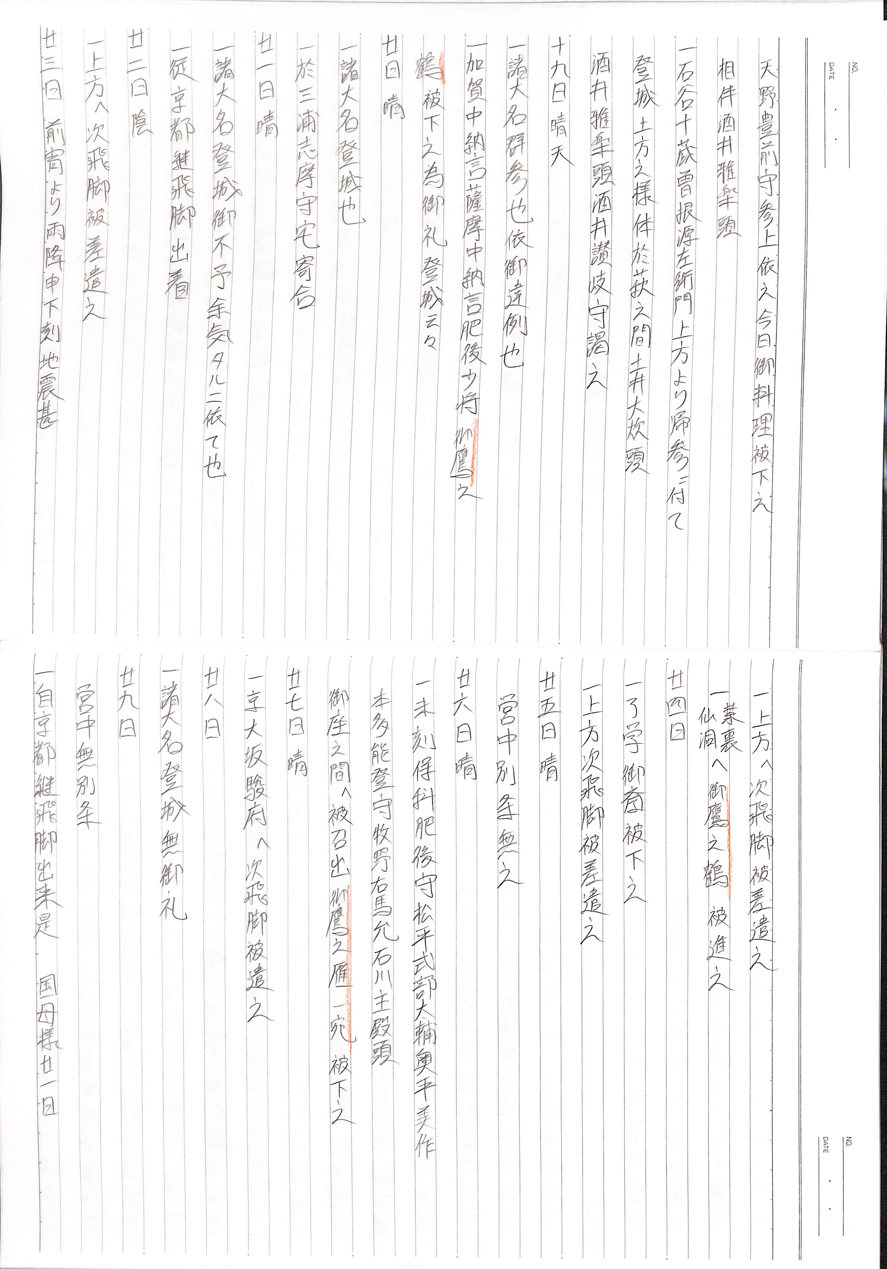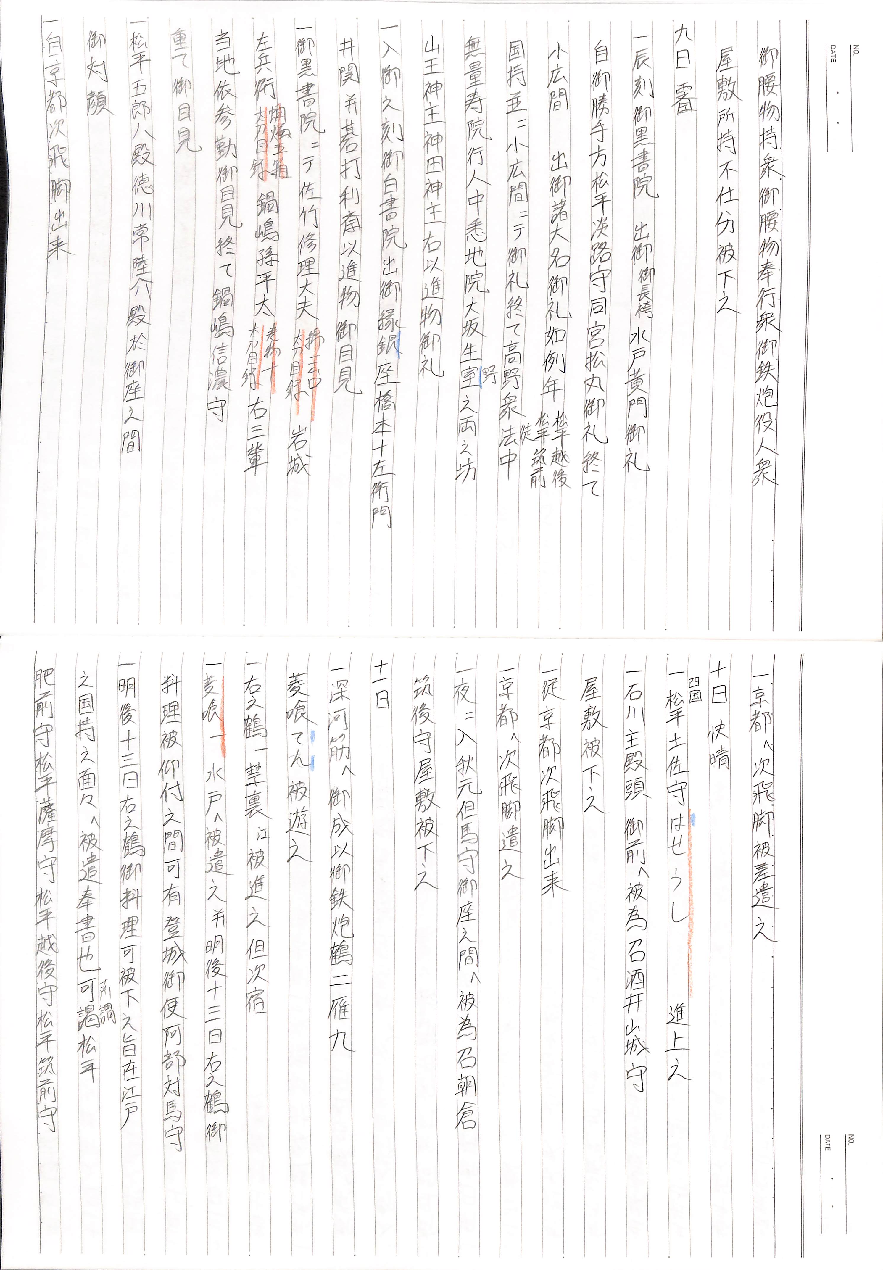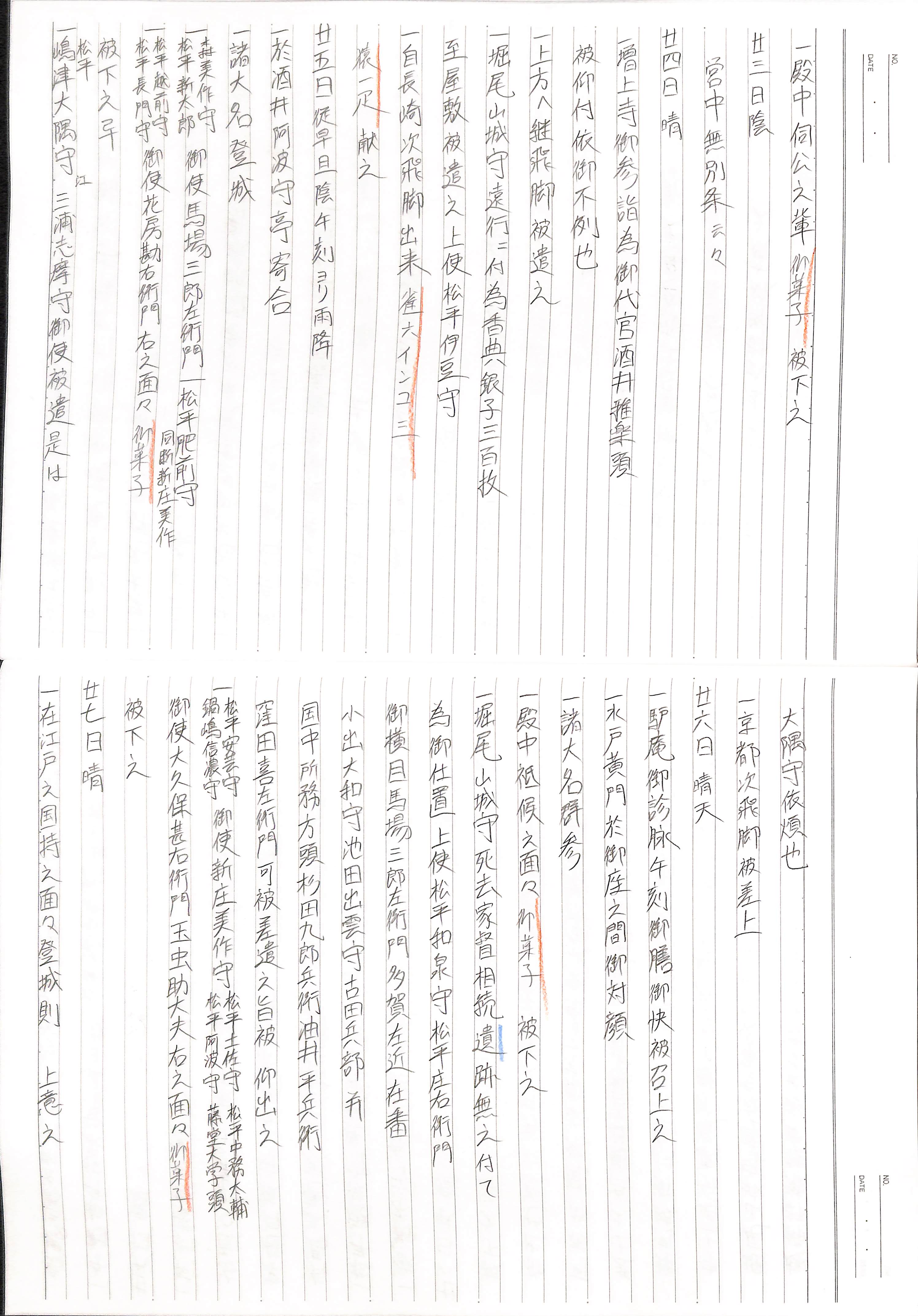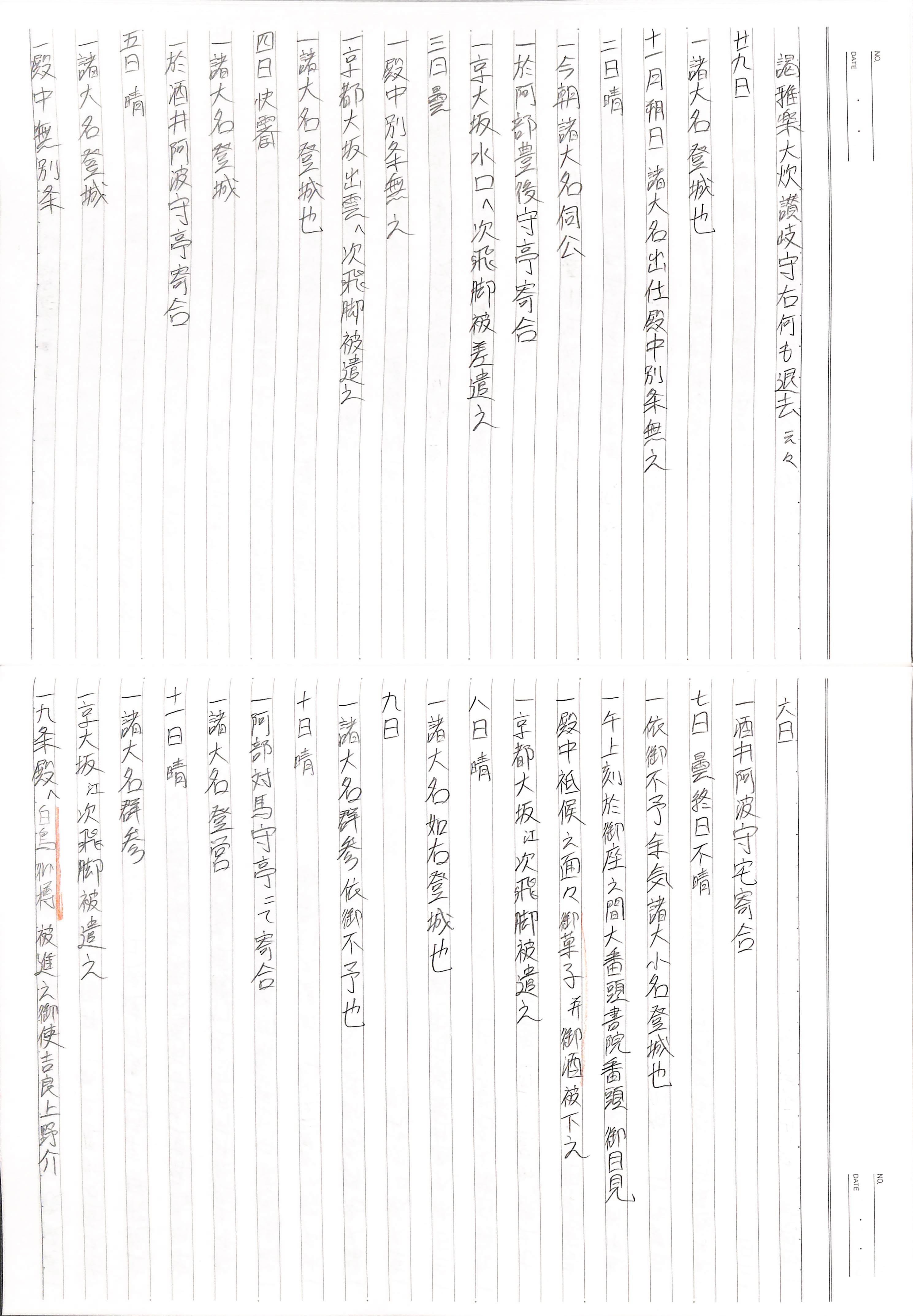 藤井讓治監修『江戸幕府日記姫路酒井家本』第2,3巻(ゆまに書房、2003年)より作成。原史料は姫路市立城郭研究室所蔵。