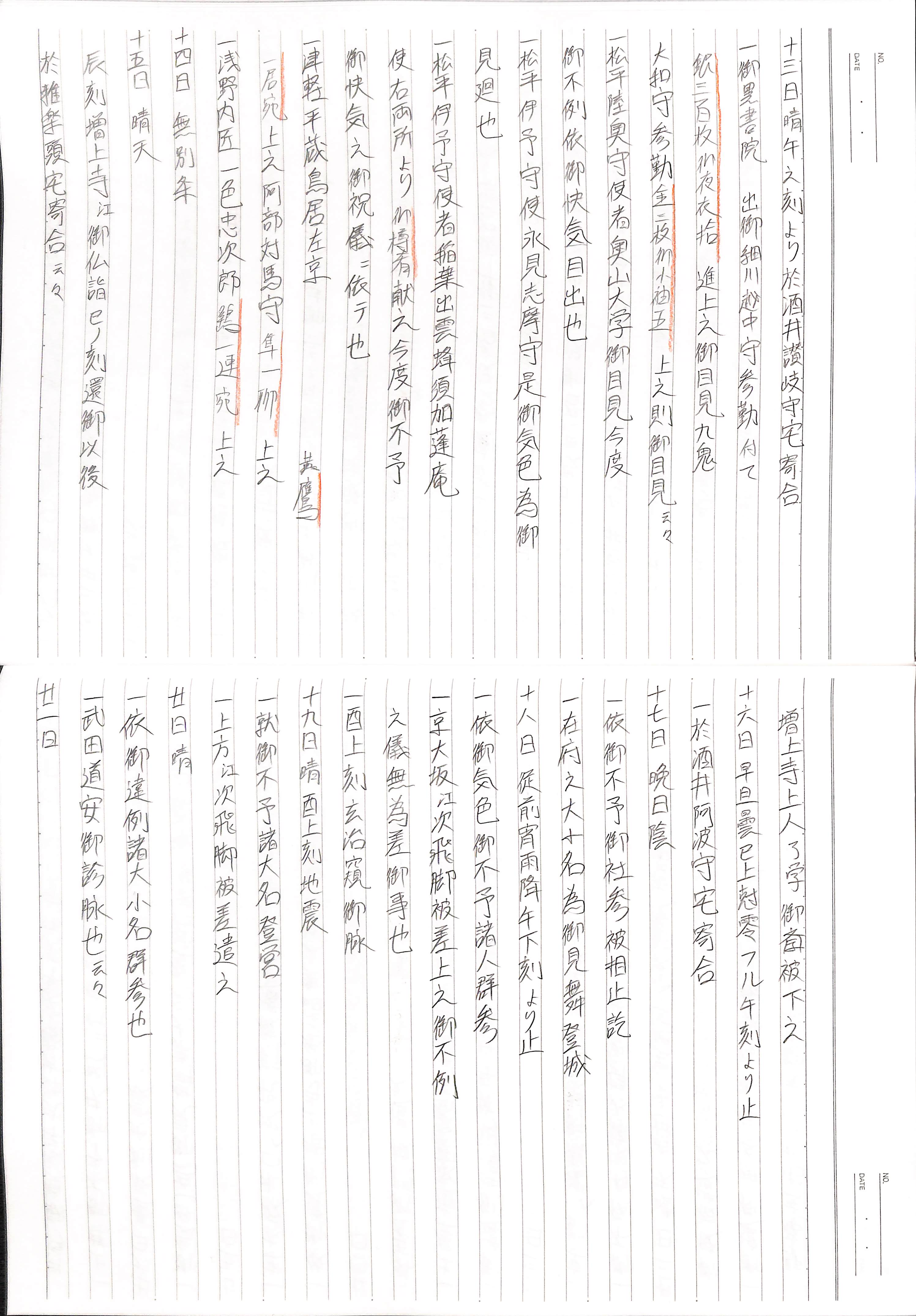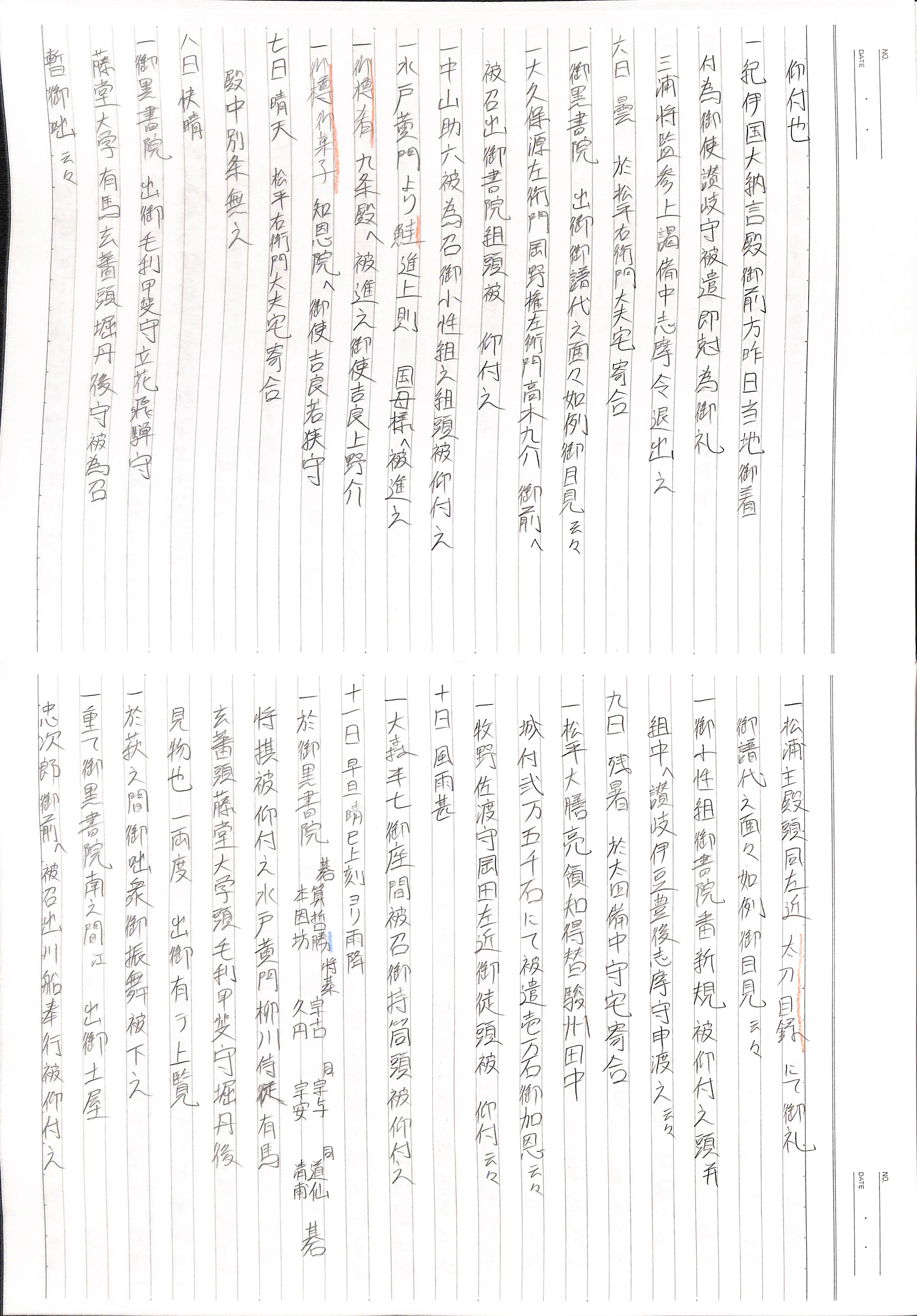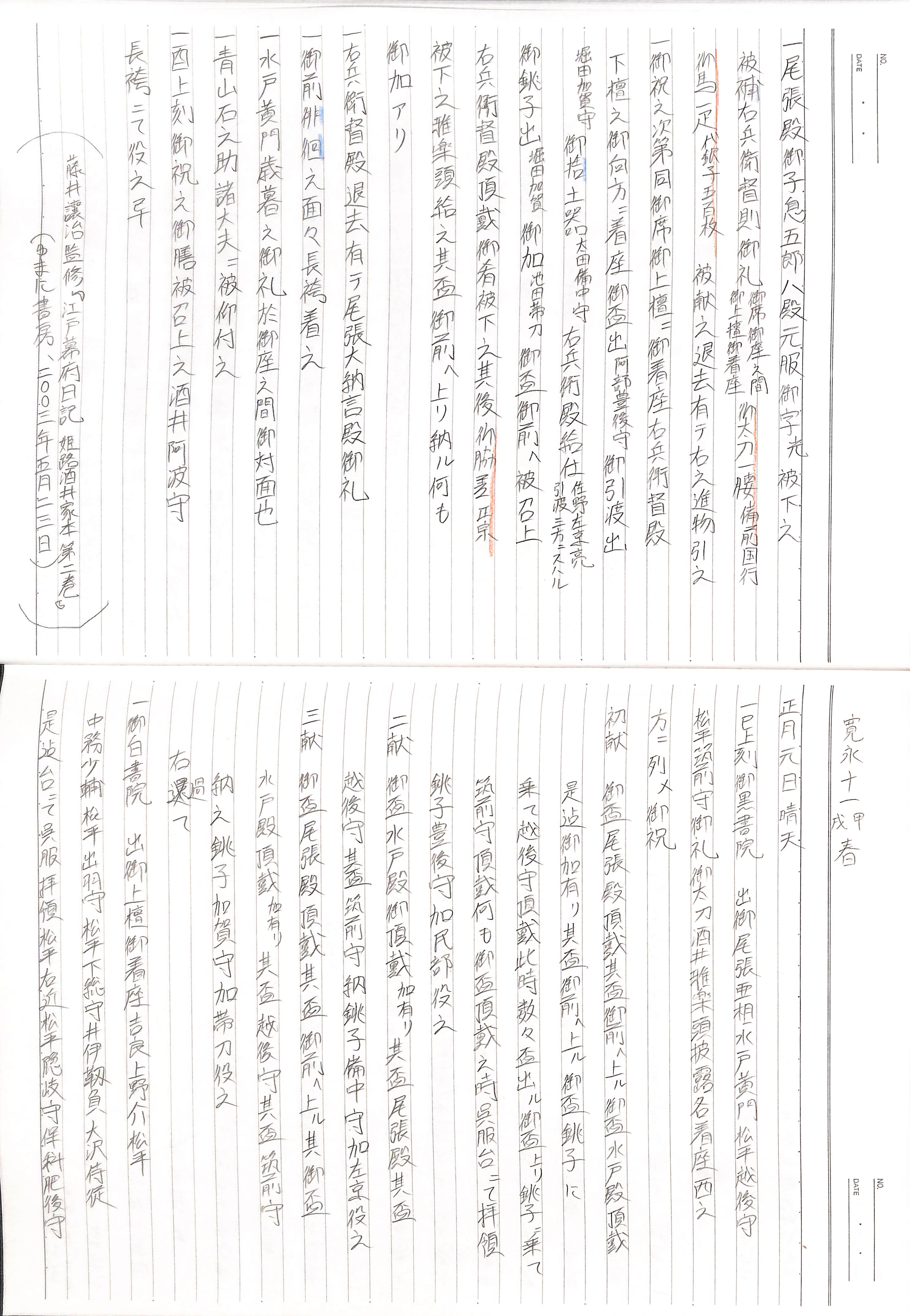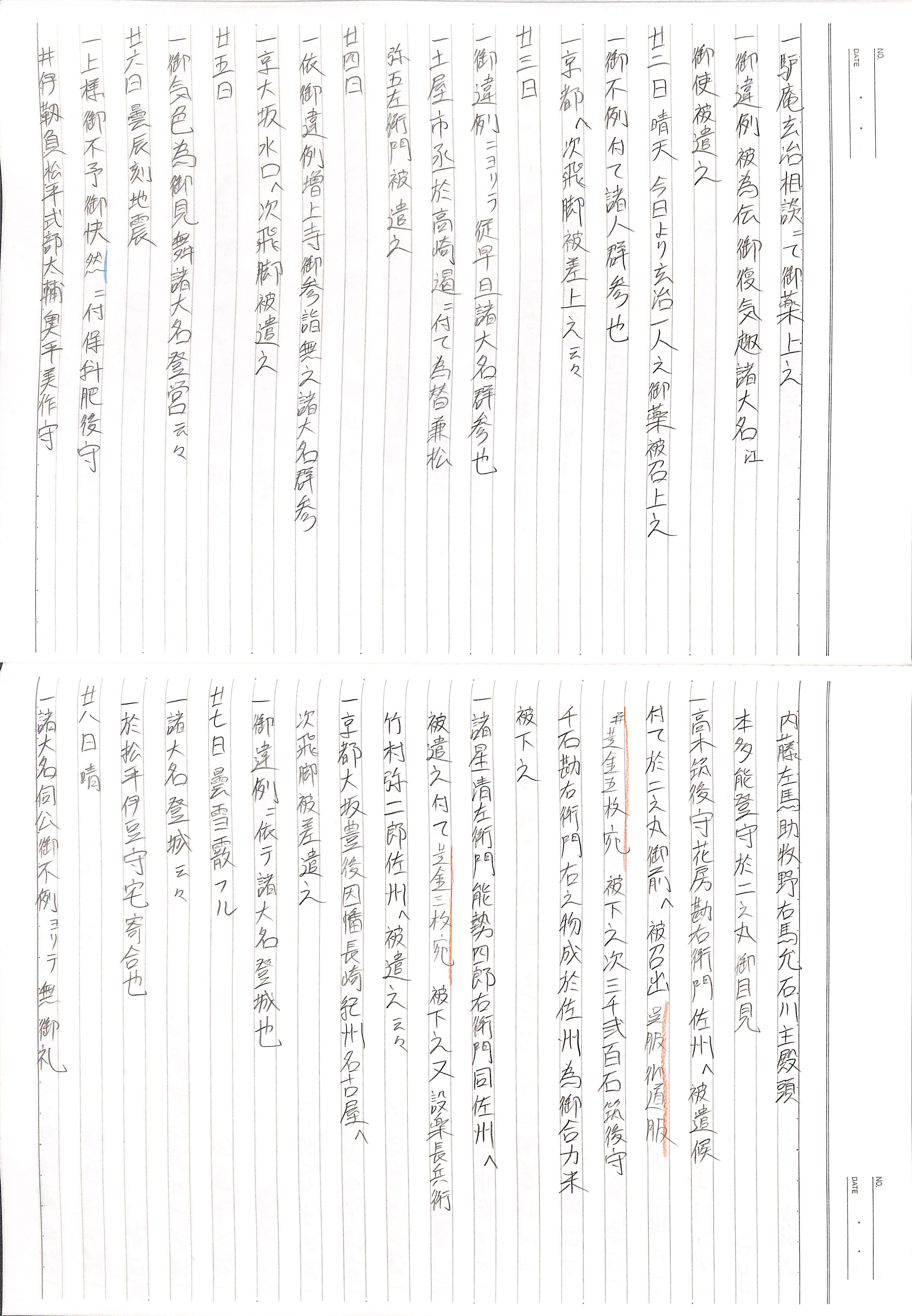 藤井讓治監修『江戸幕府日記姫路酒井家本』第2,3巻(ゆまに書房、2003年)より作成。原史料は姫路市立城郭研究室所蔵。
