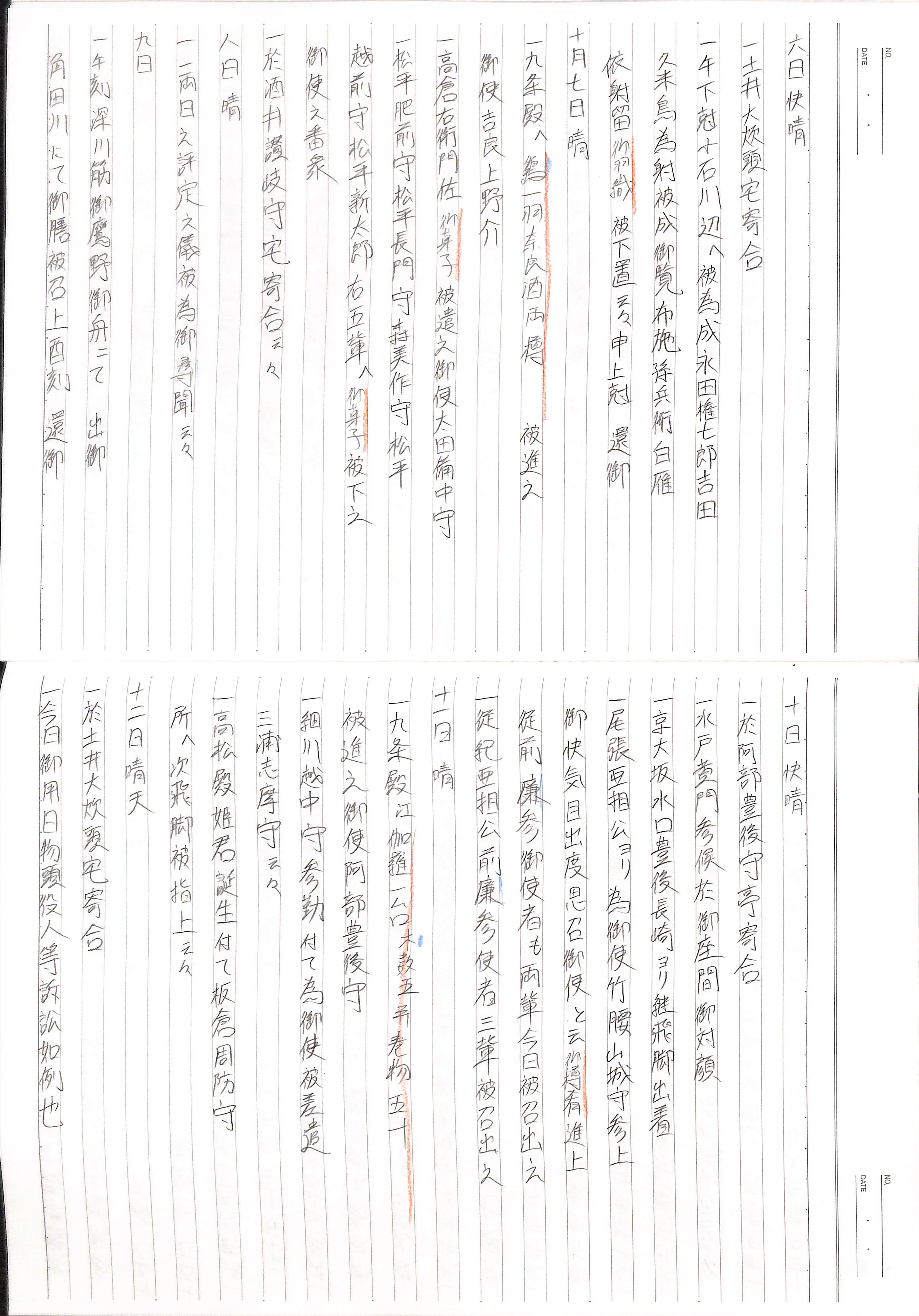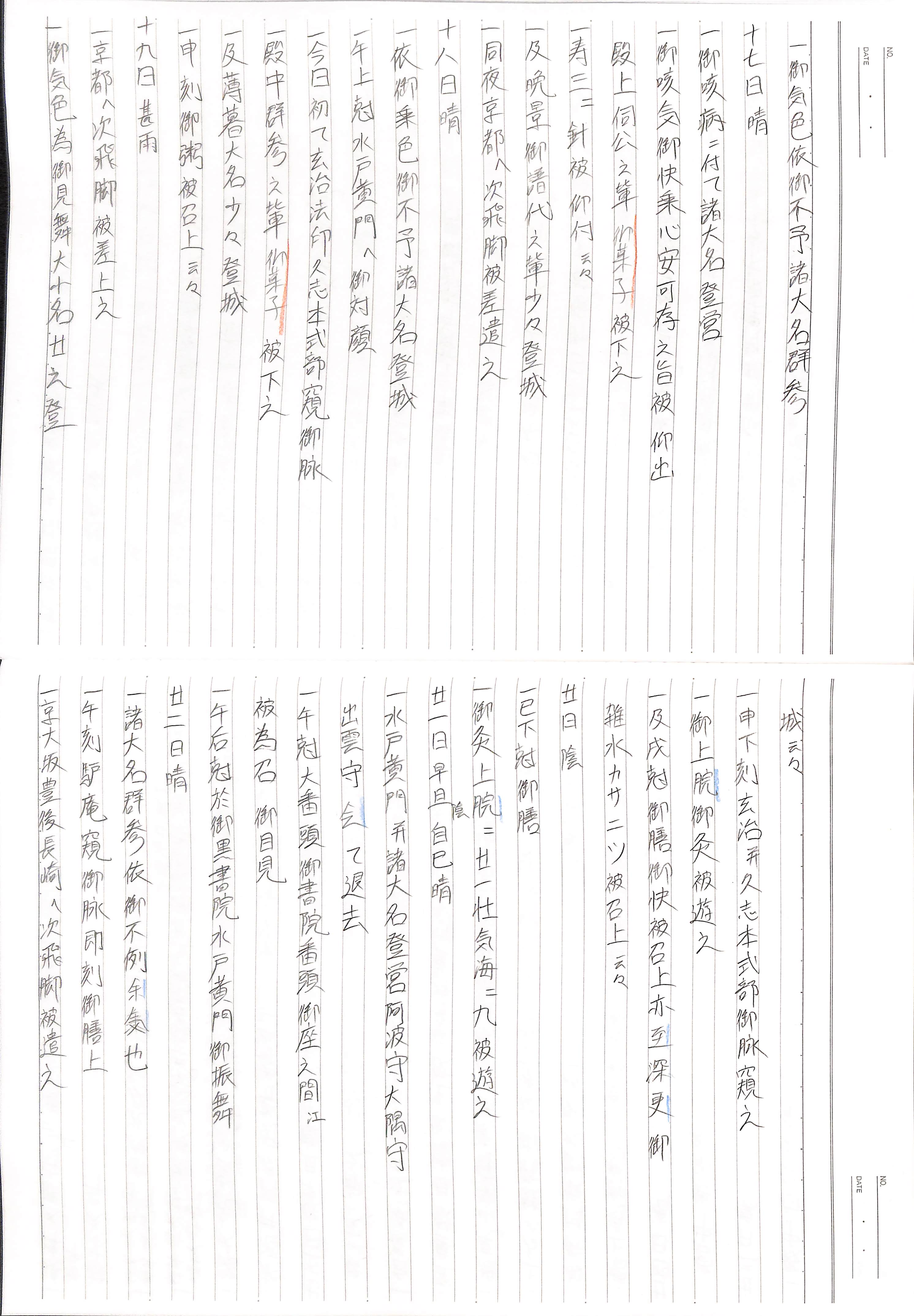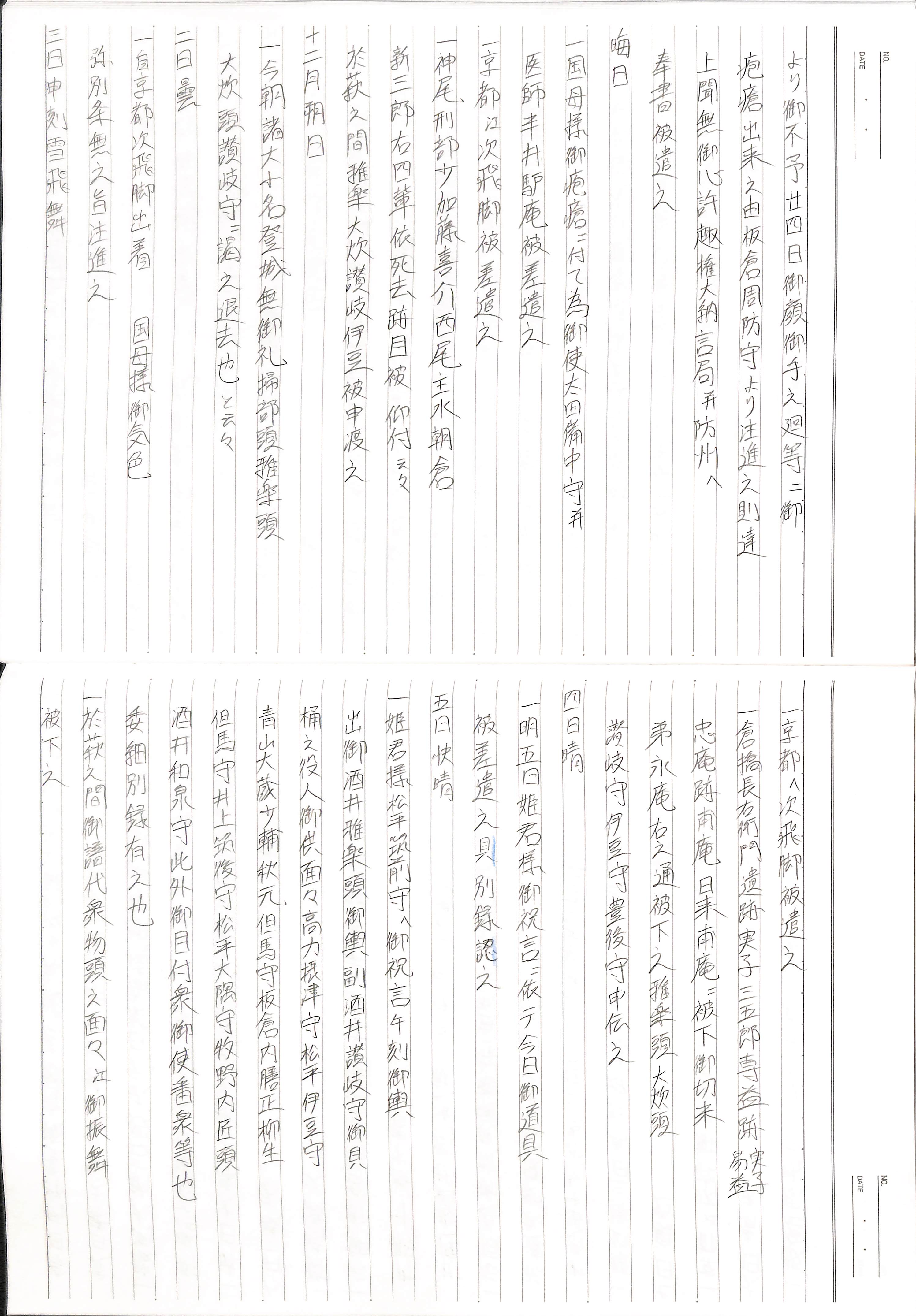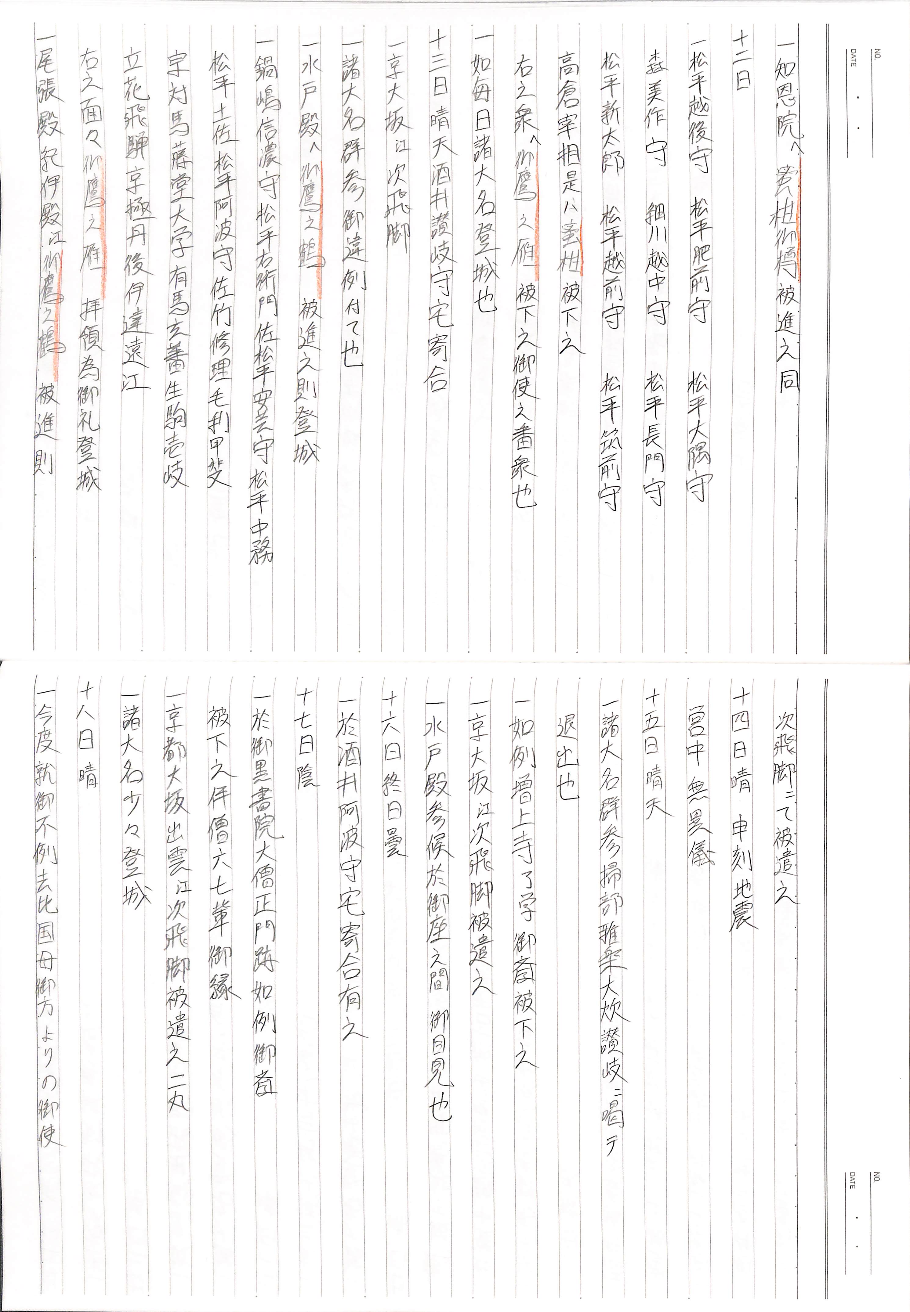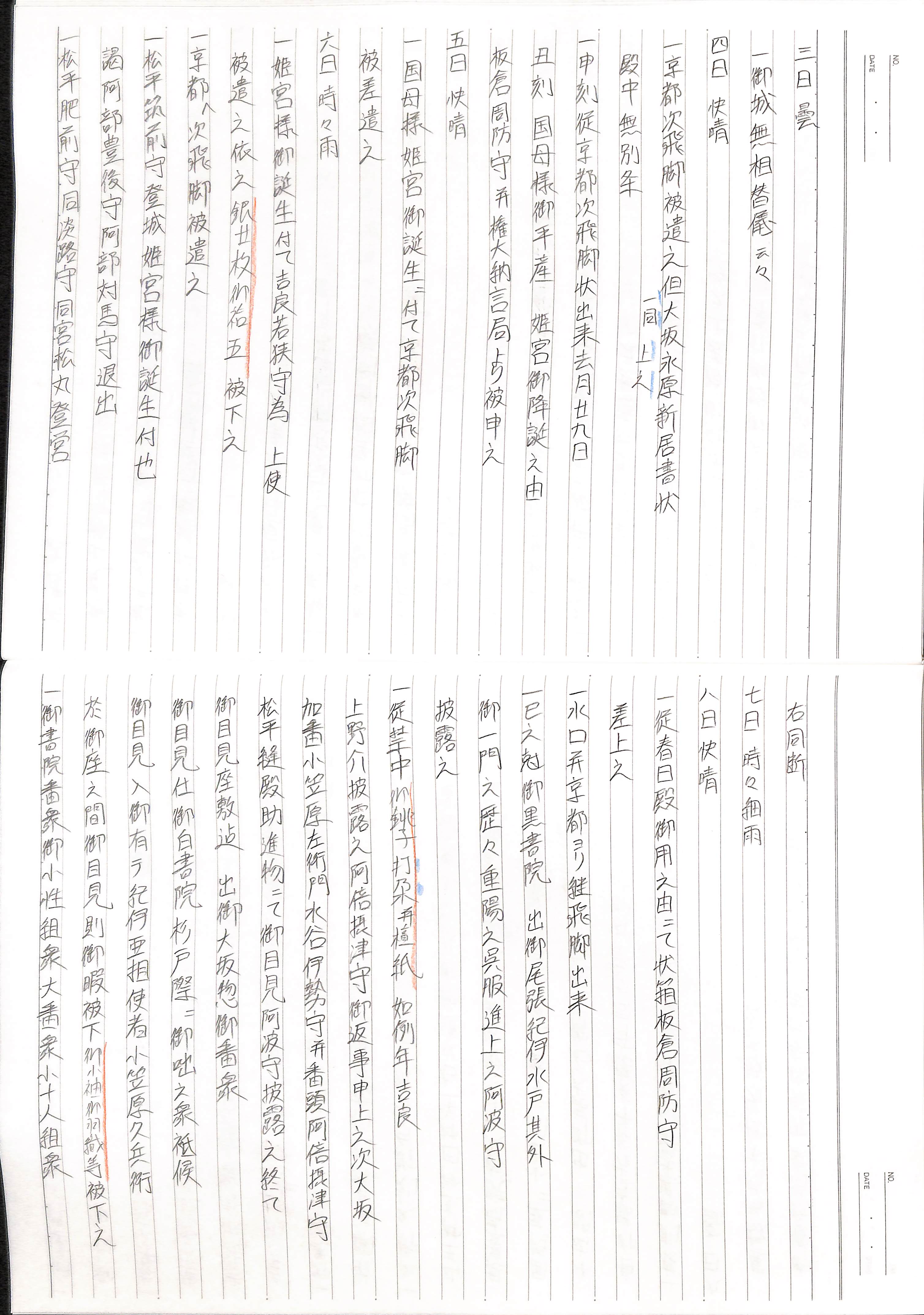 藤井讓治監修『江戸幕府日記姫路酒井家本』第2,3巻(ゆまに書房、2003年)より作成。原史料は姫路市立城郭研究室所蔵。