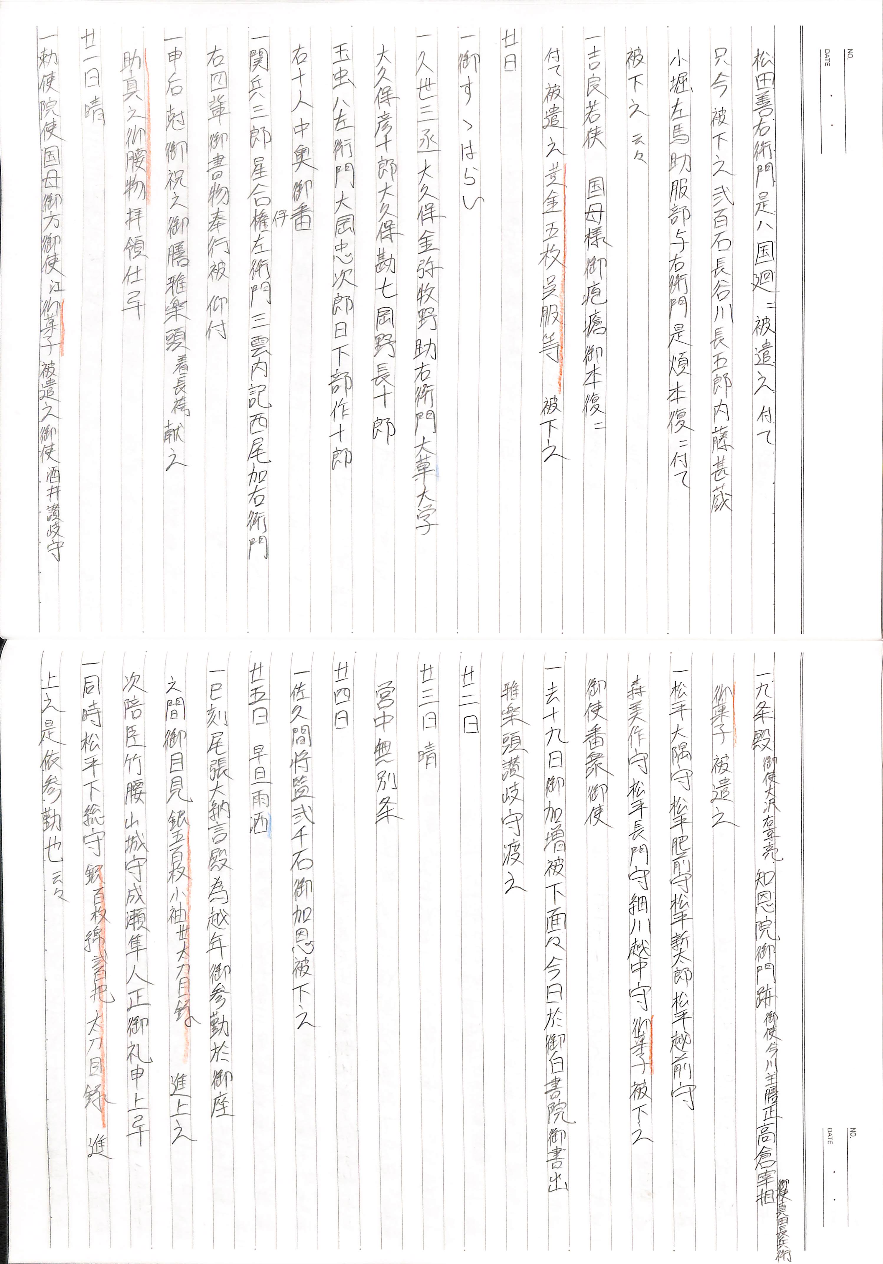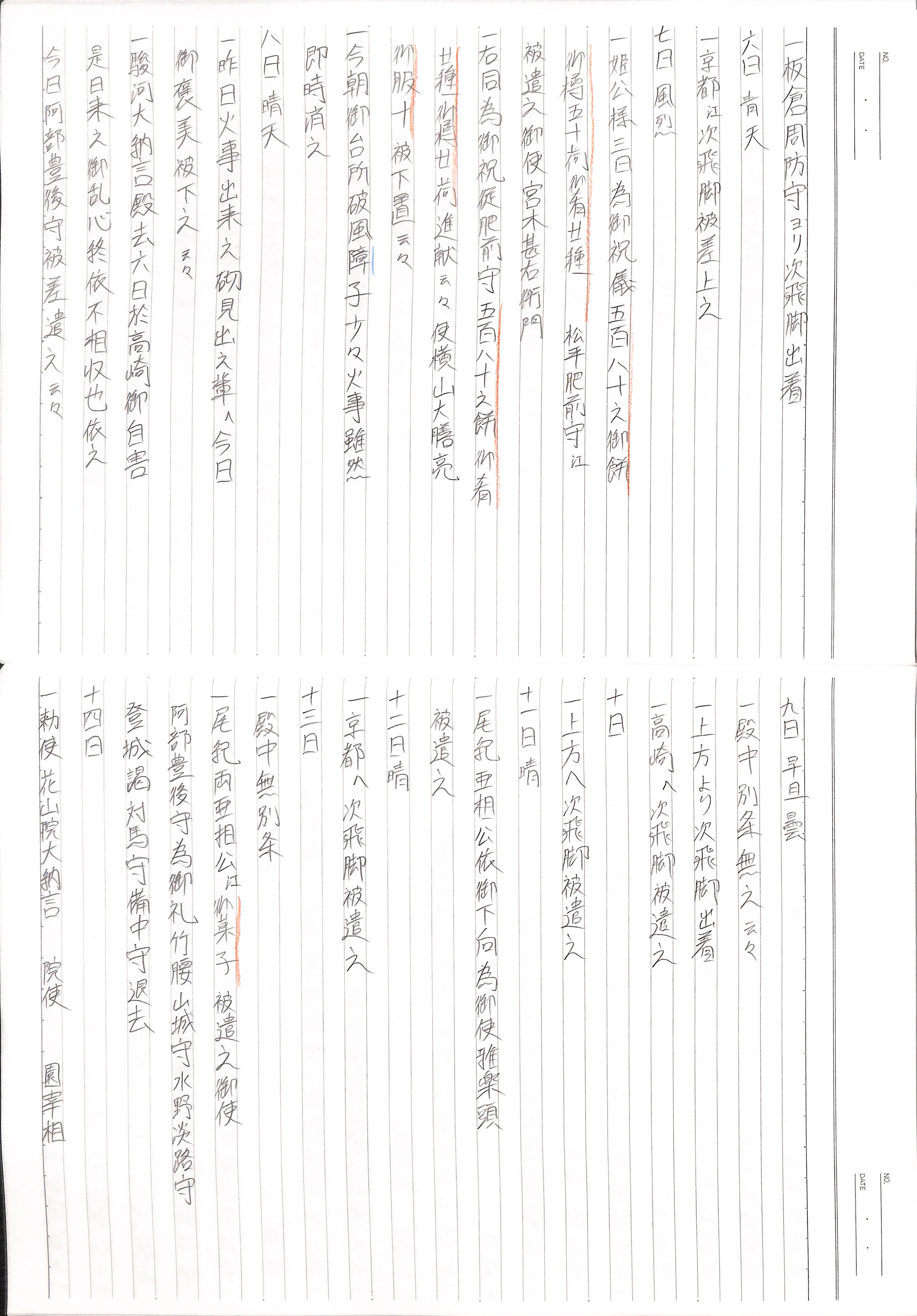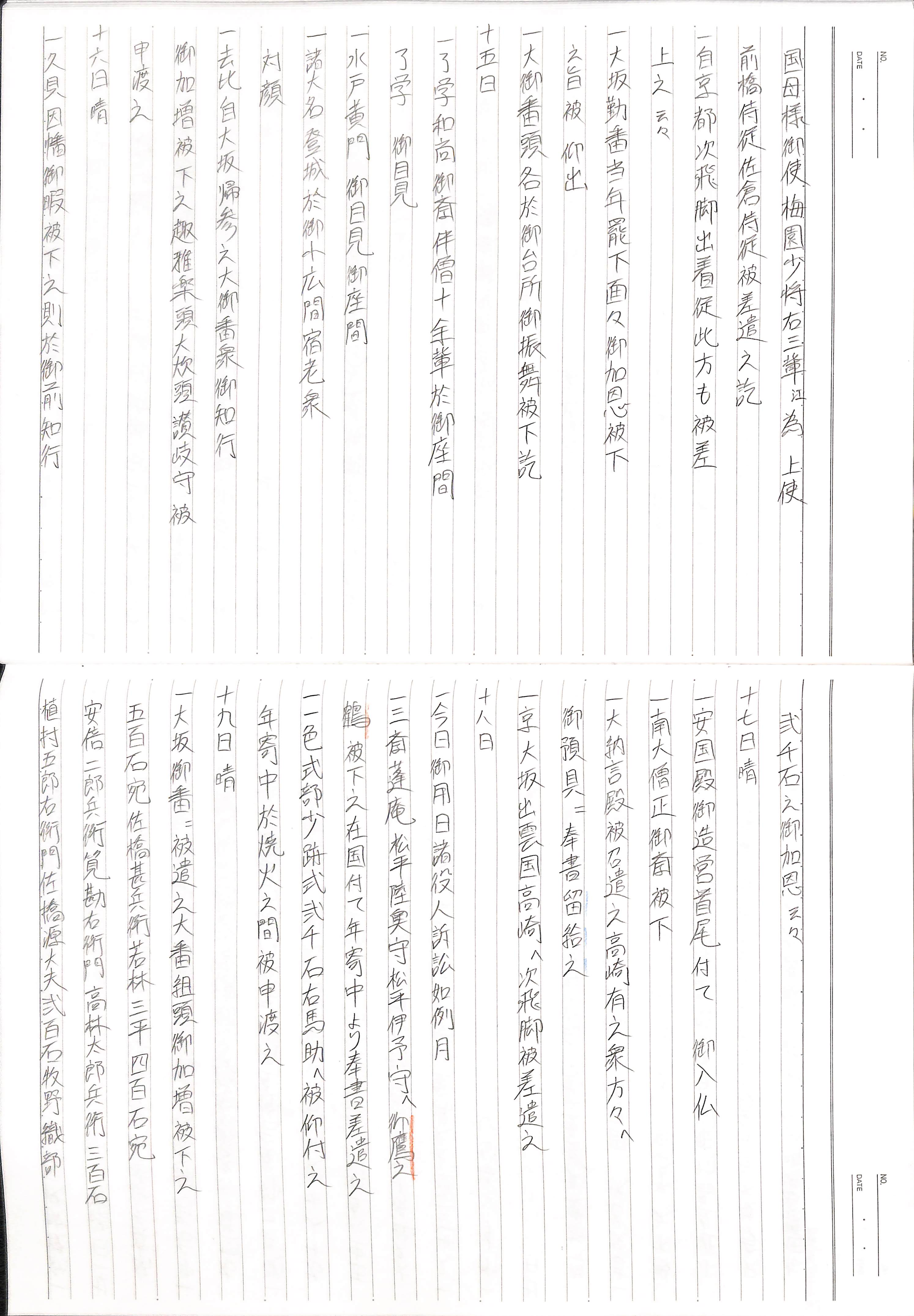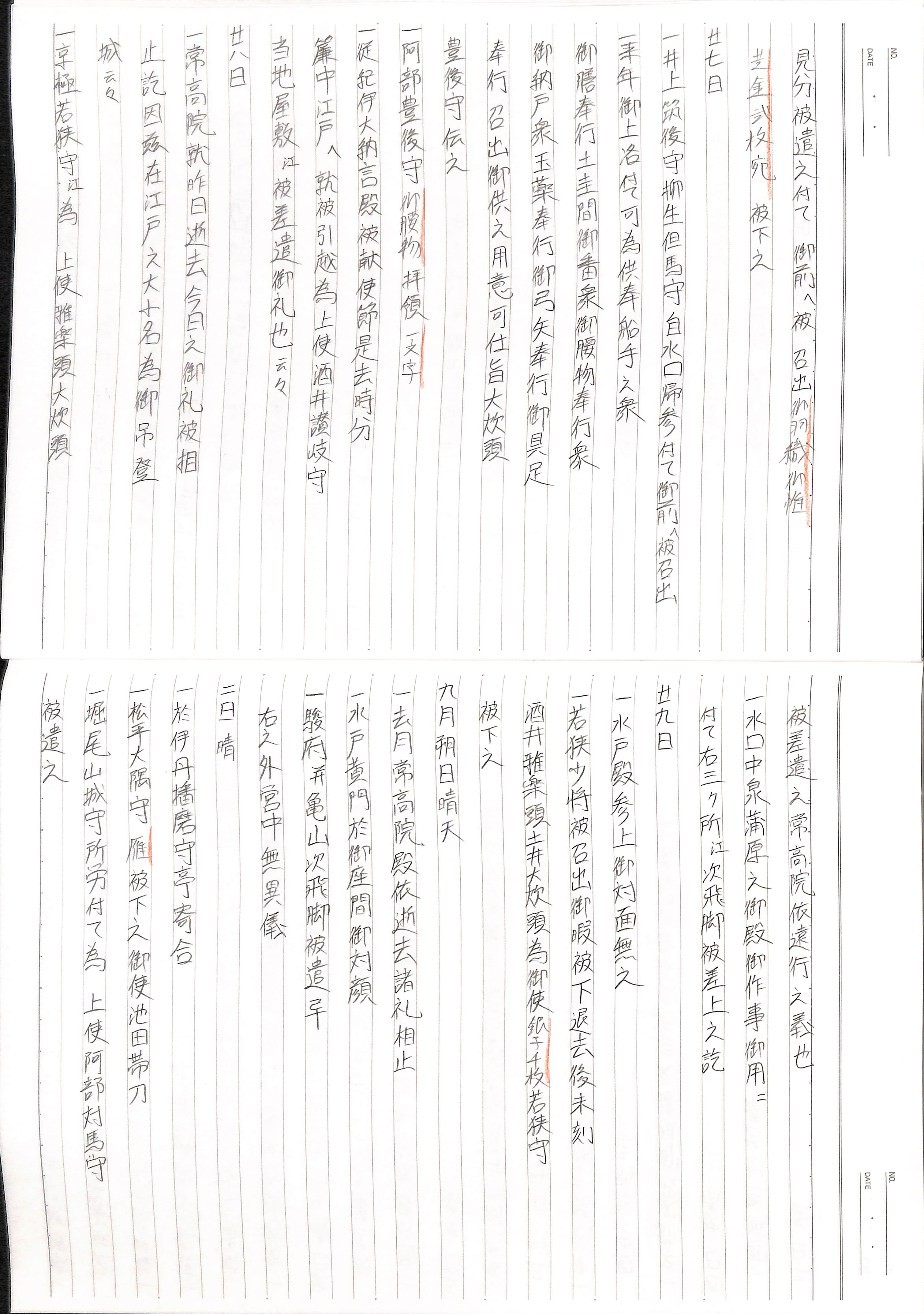 藤井讓治監修『江戸幕府日記姫路酒井家本』第2,3巻(ゆまに書房、2003年)より作成。原史料は姫路市立城郭研究室所蔵。