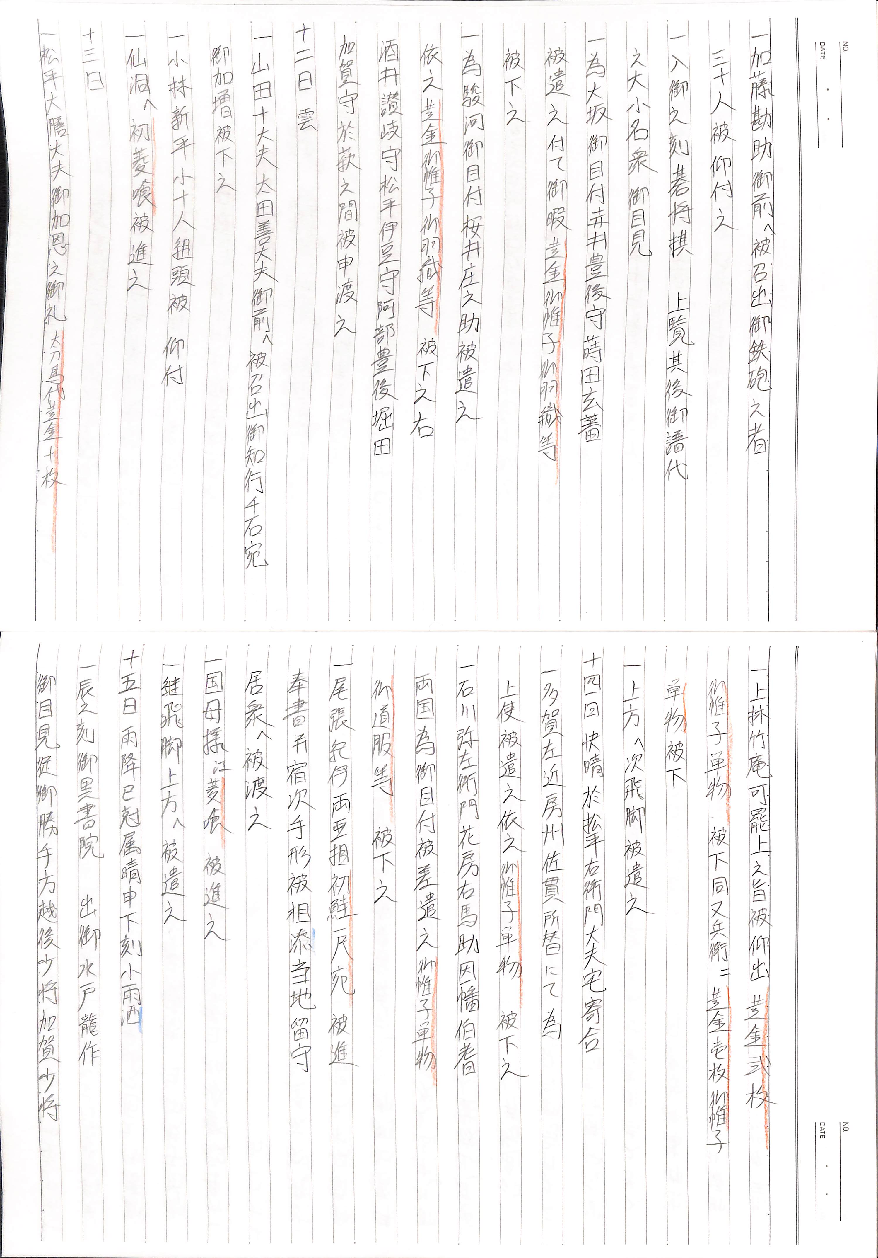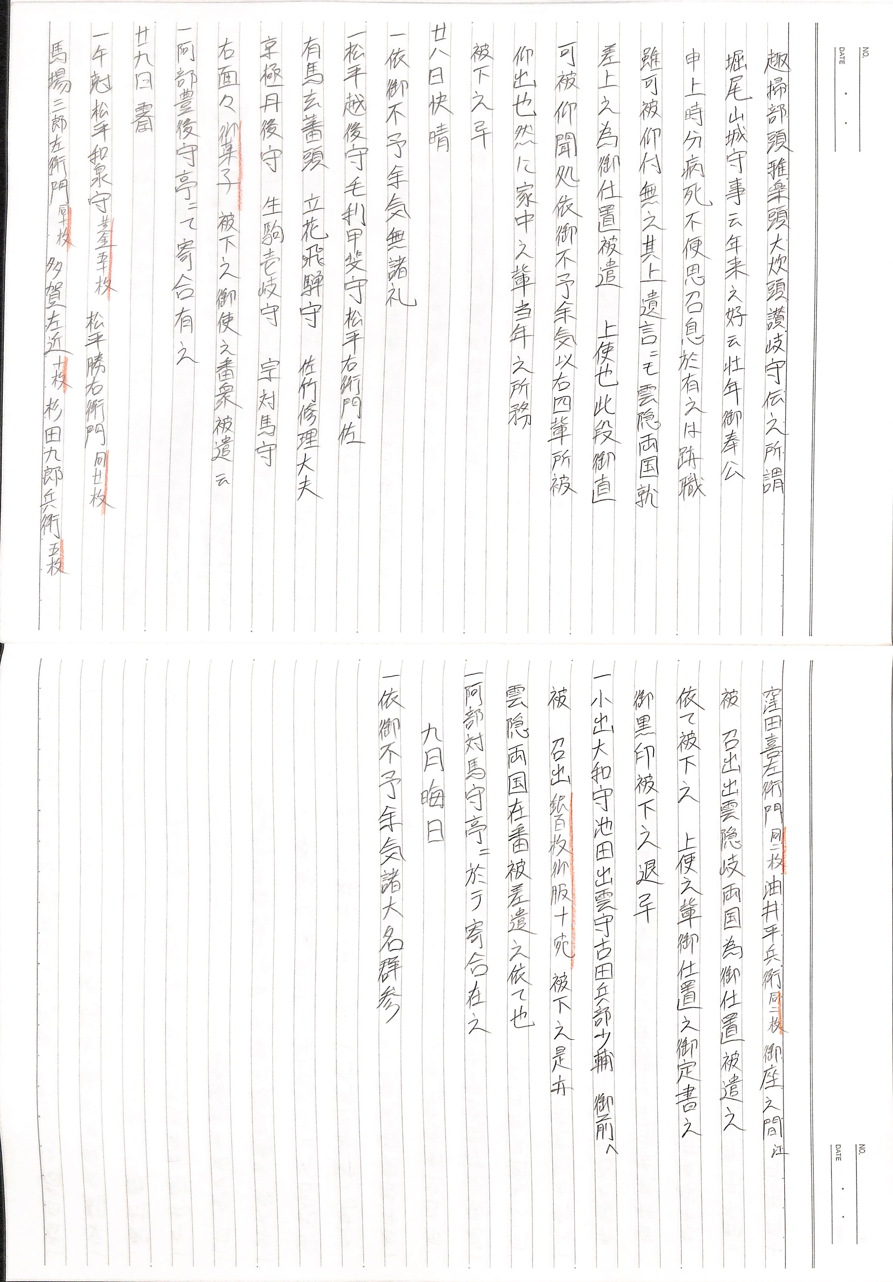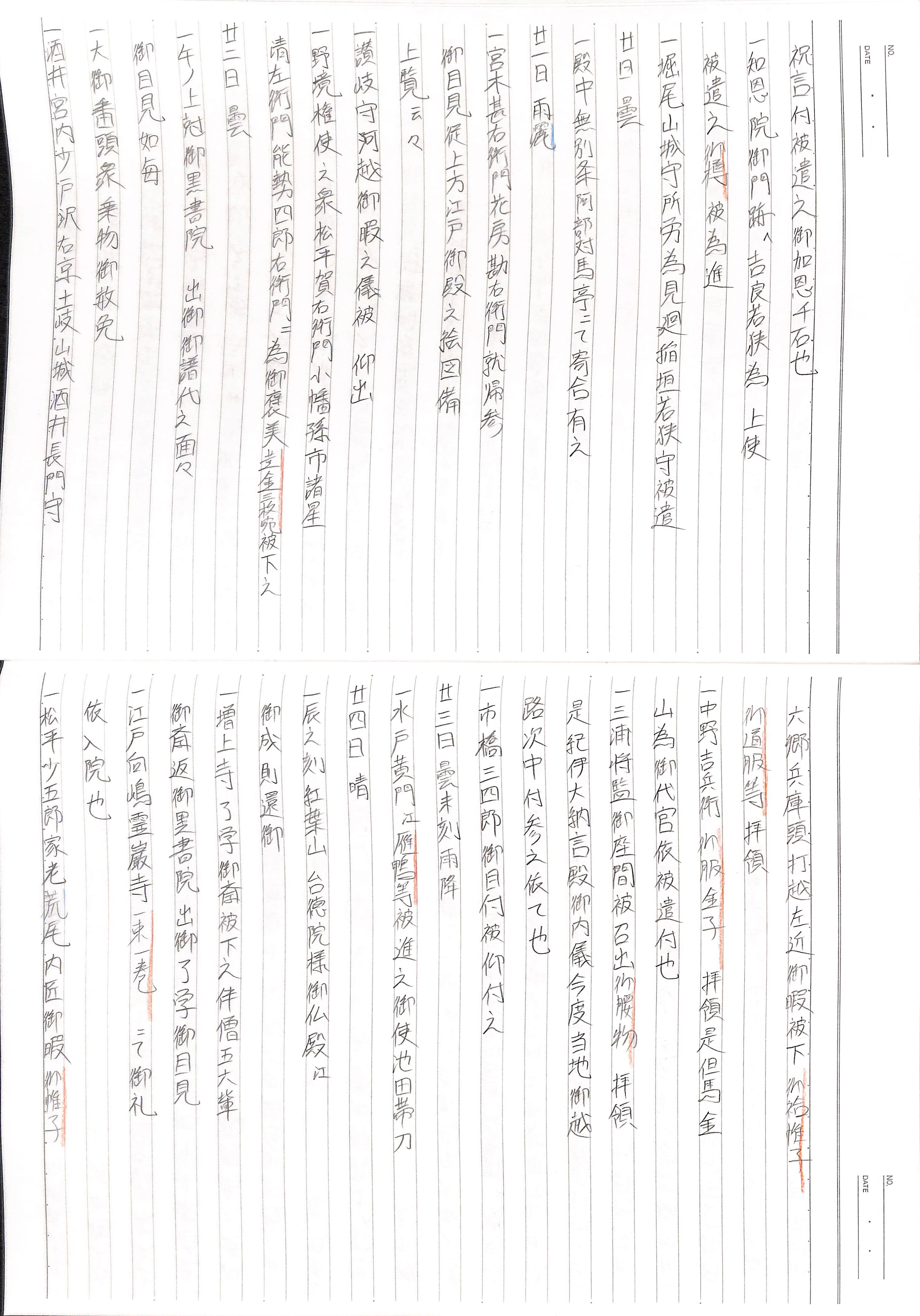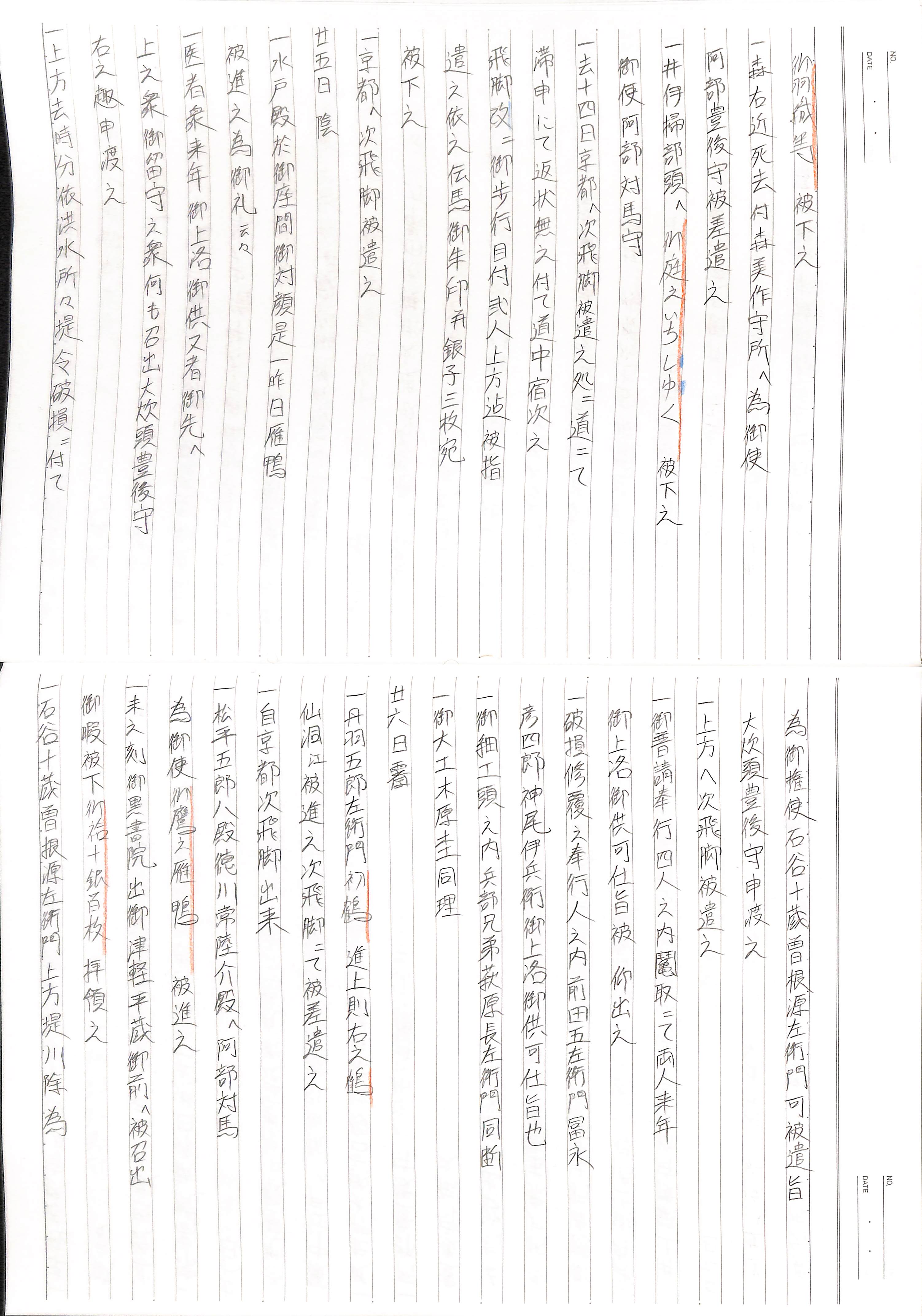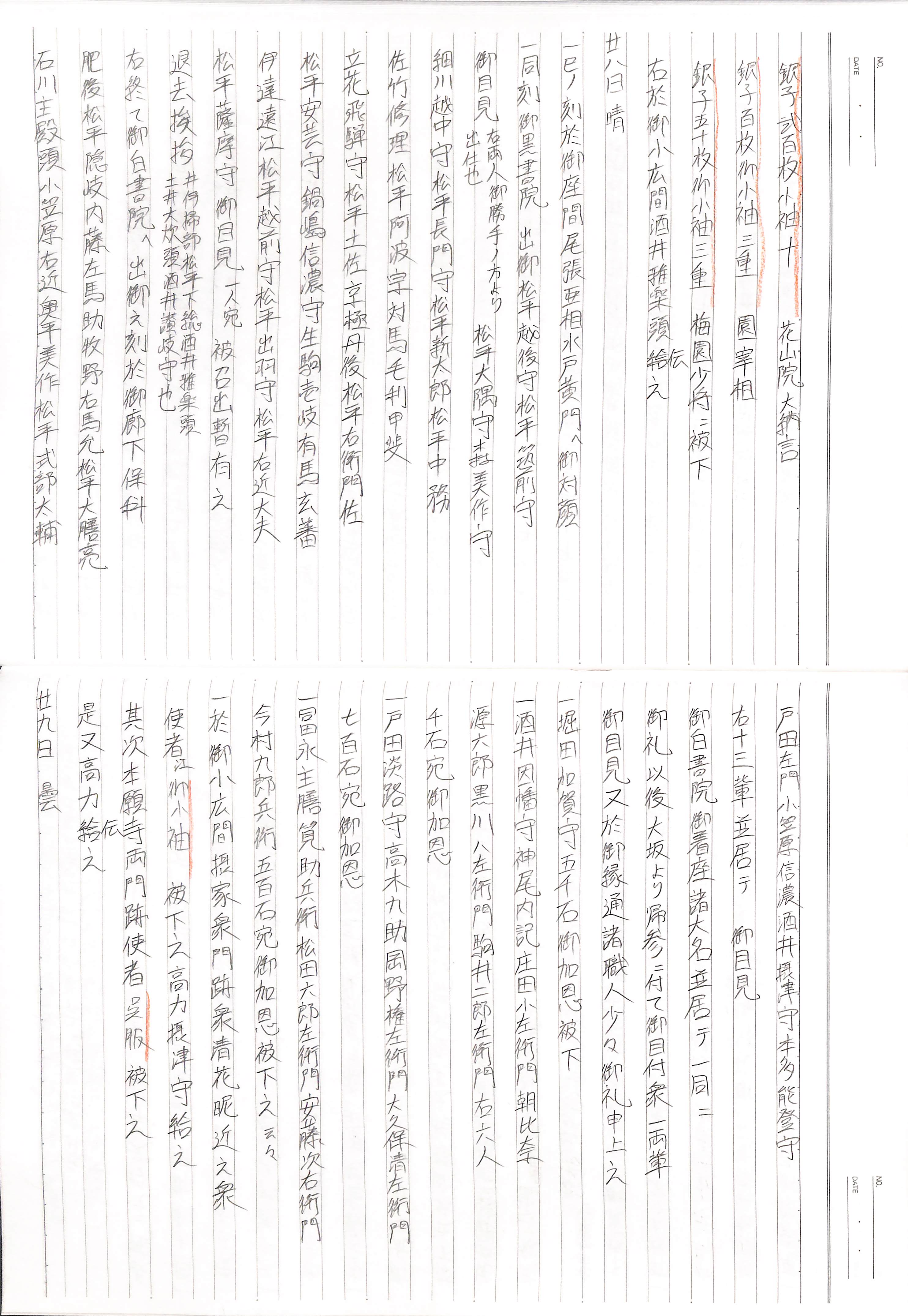 藤井讓治監修『江戸幕府日記姫路酒井家本』第2,3巻(ゆまに書房、2003年)より作成。原史料は姫路市立城郭研究室所蔵。