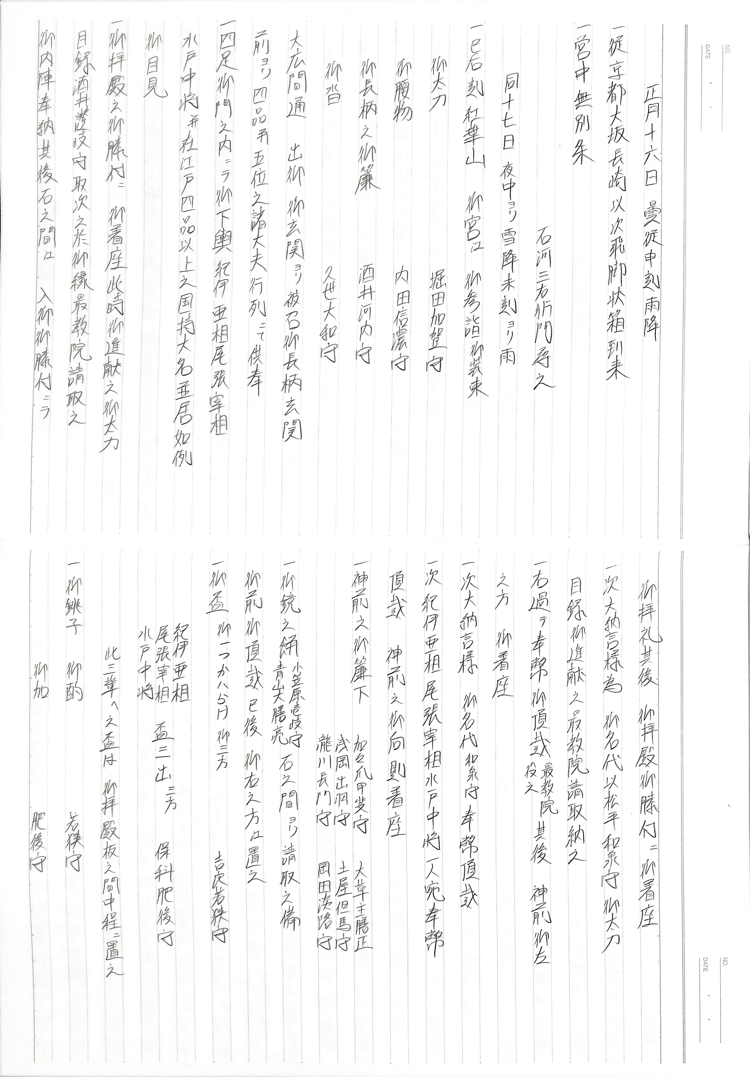 藤井讓治監修『江戸幕府日記姫路酒井家本』第22巻(ゆまに書房、2004年)より作成。原史料は姫路市立城郭研究室所蔵。