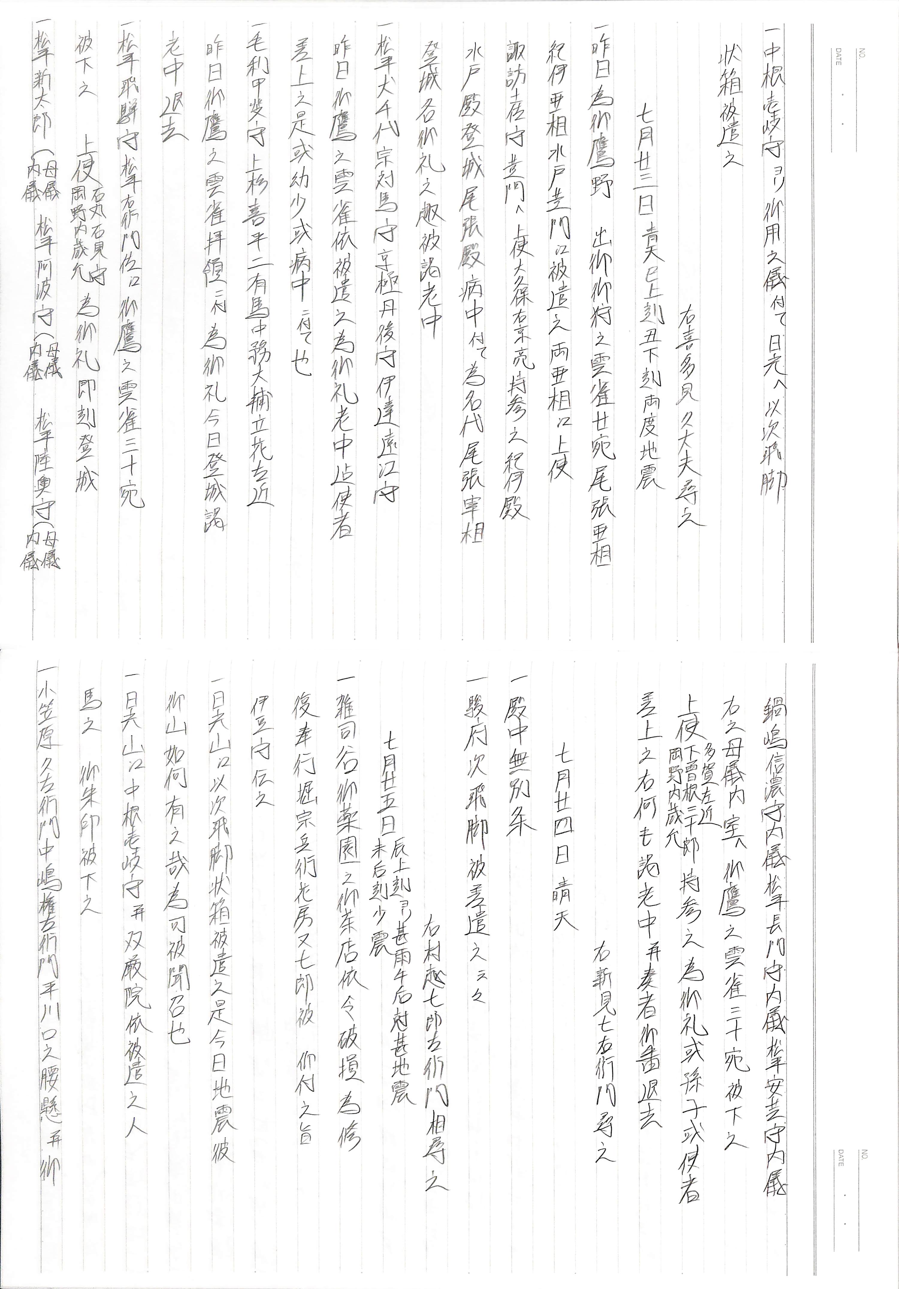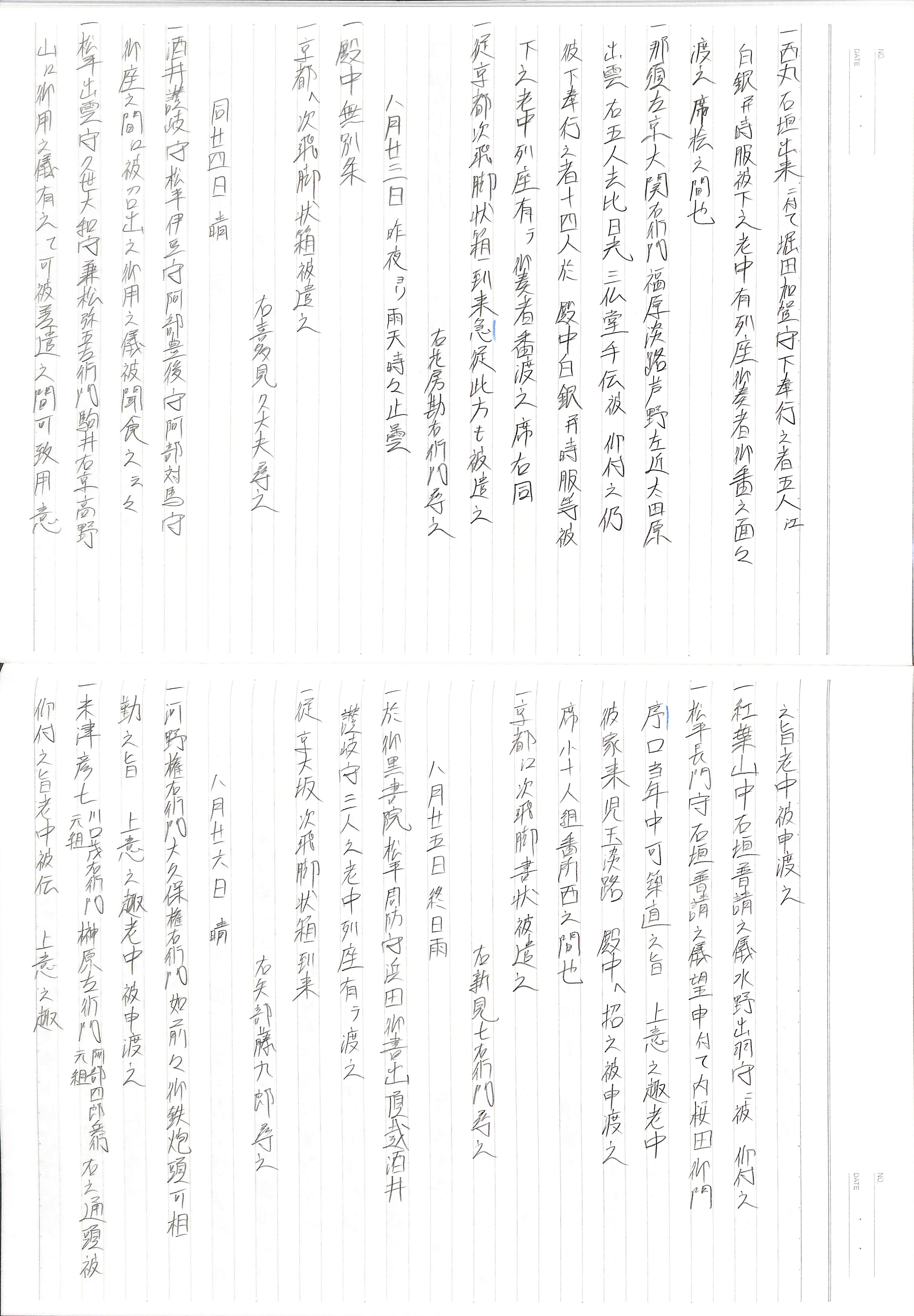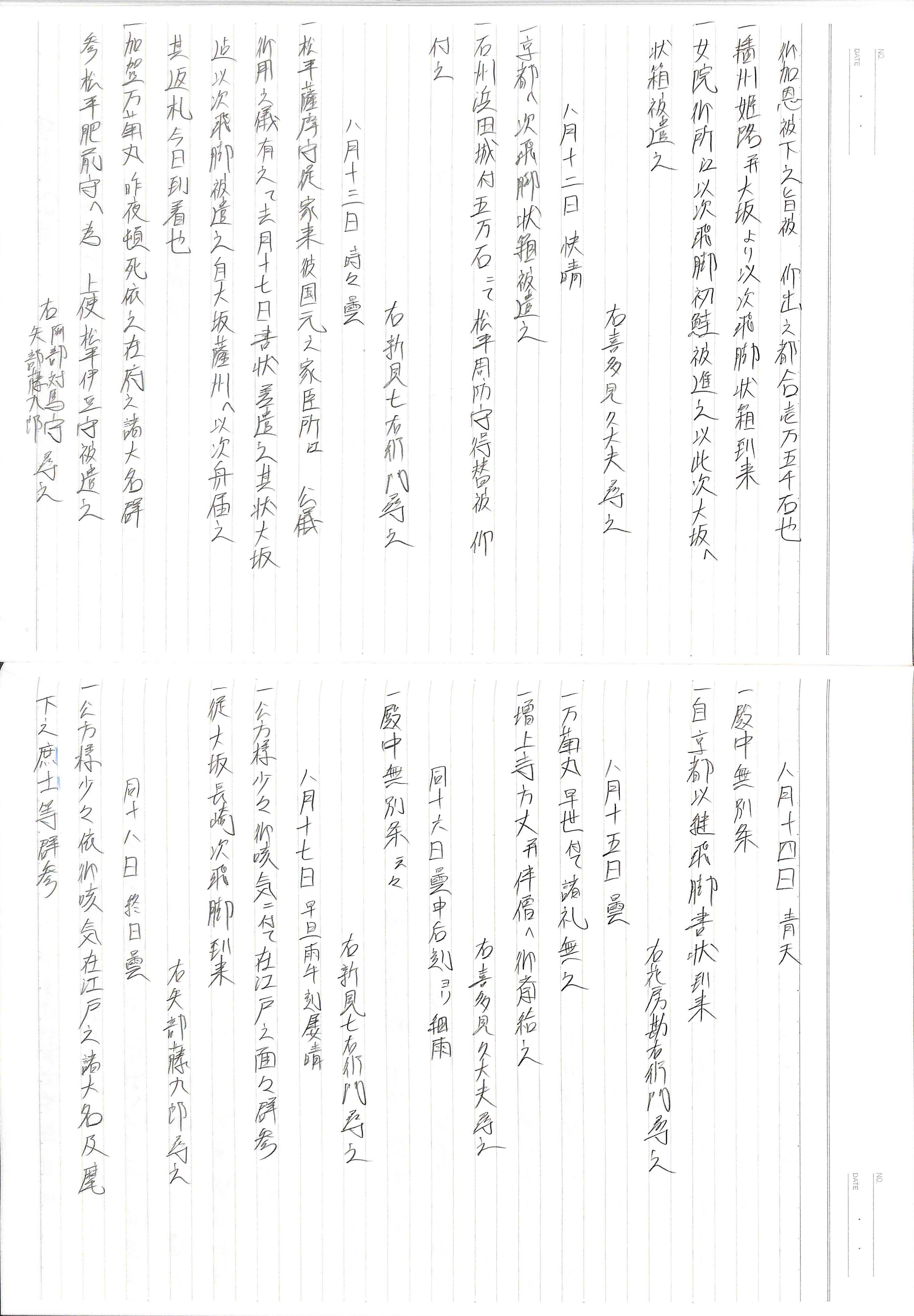 藤井讓治監修『江戸幕府日記姫路酒井家本』第23巻(ゆまに書房、2004年)より作成。原史料は姫路市立城郭研究室所蔵。