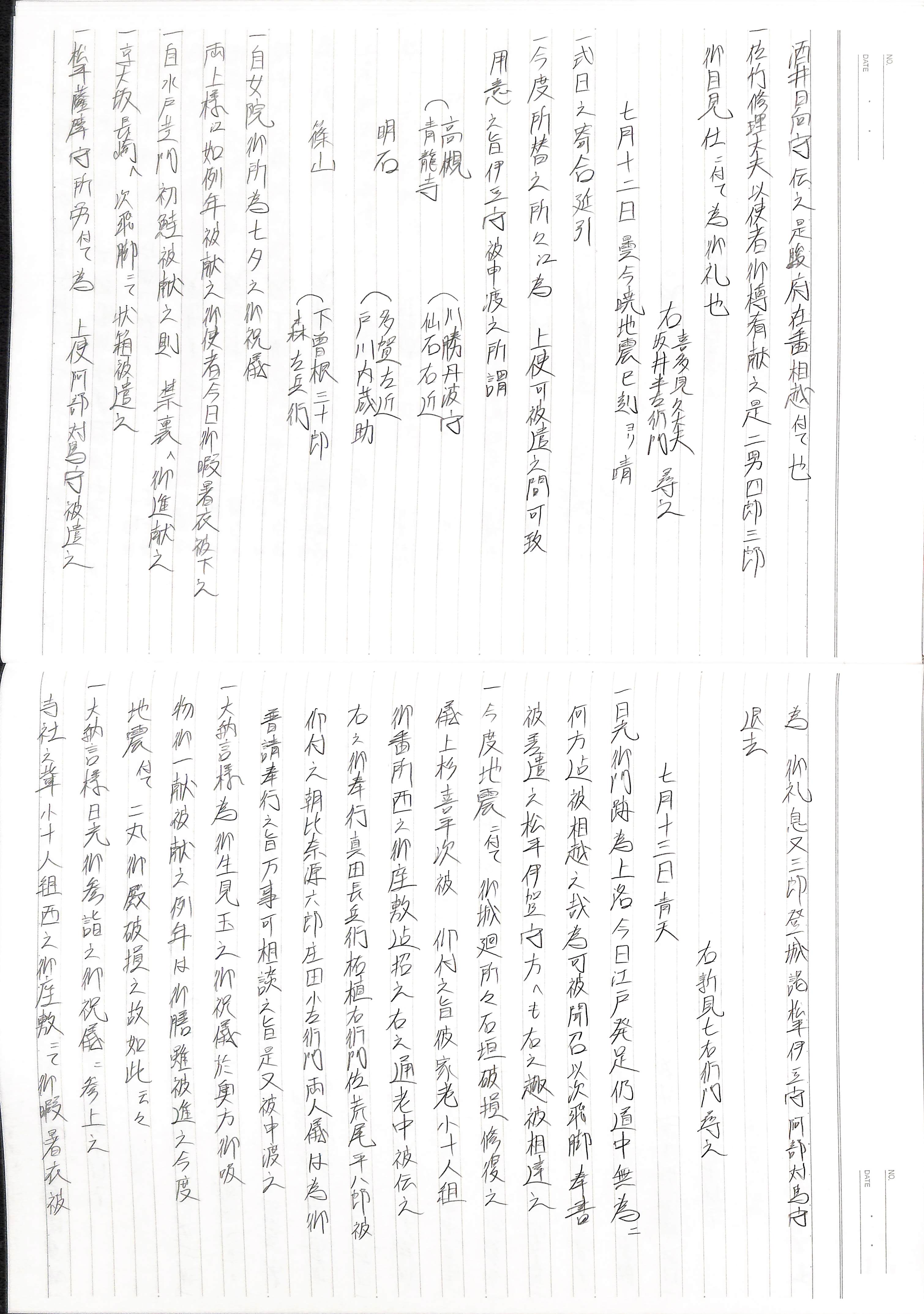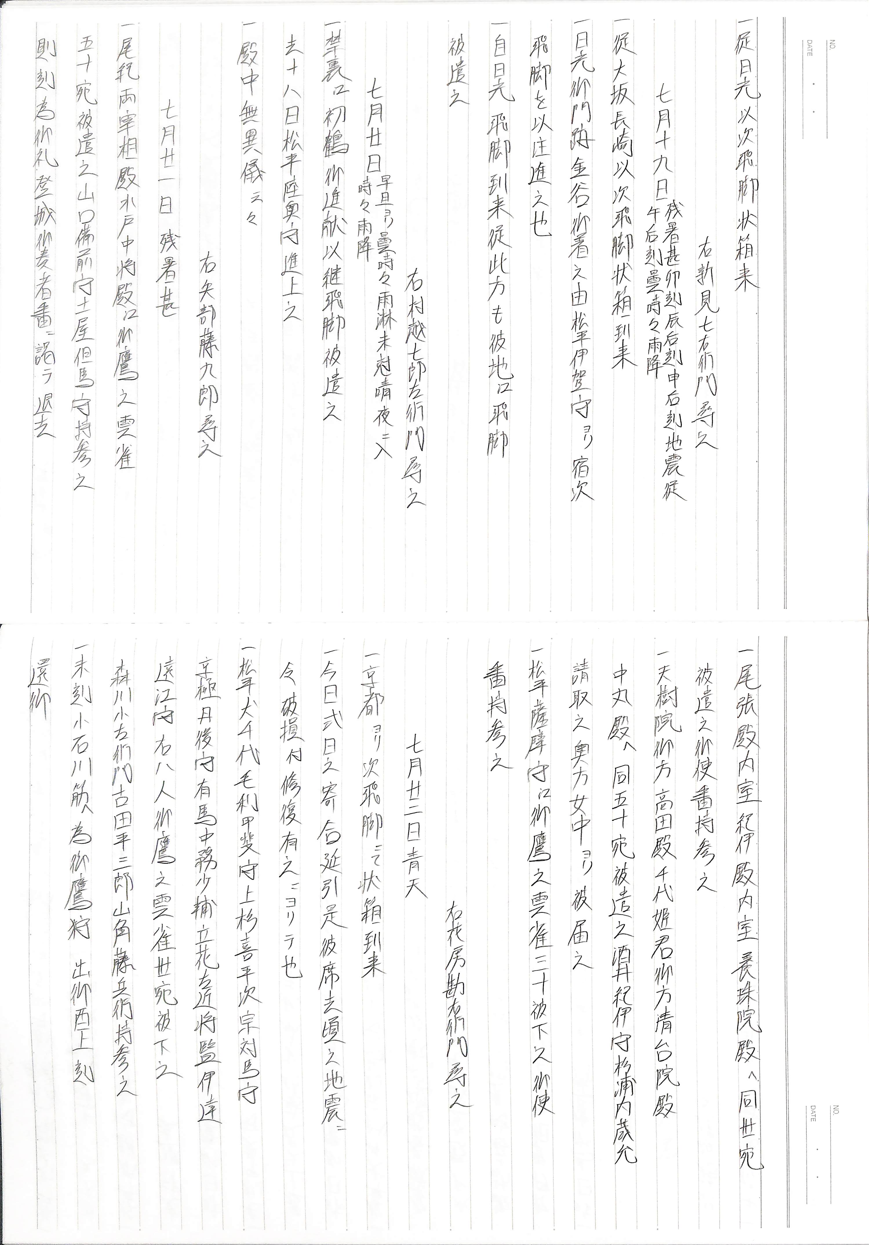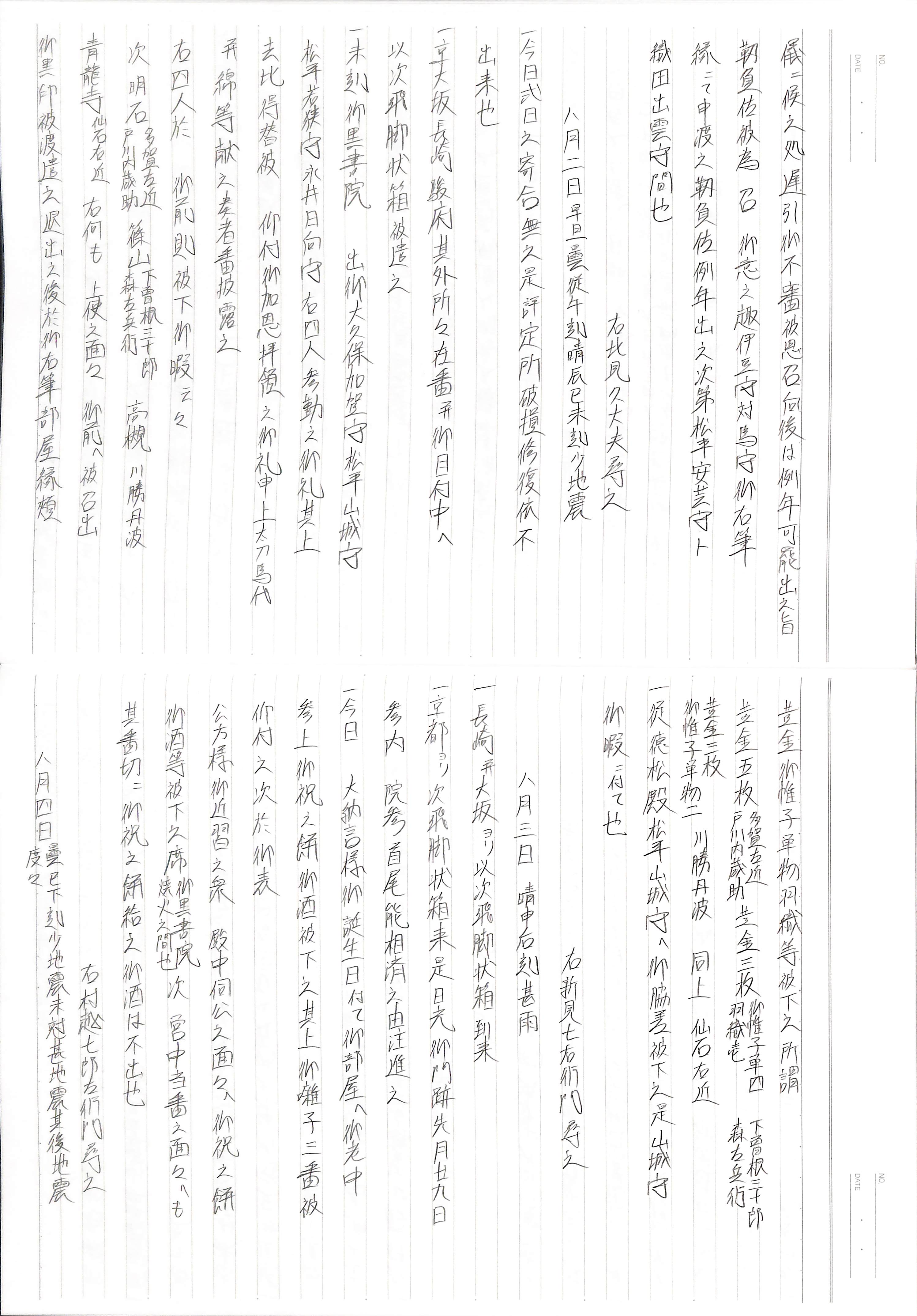 藤井讓治監修『江戸幕府日記姫路酒井家本』第23巻(ゆまに書房、2004年)より作成。原史料は姫路市立城郭研究室所蔵。