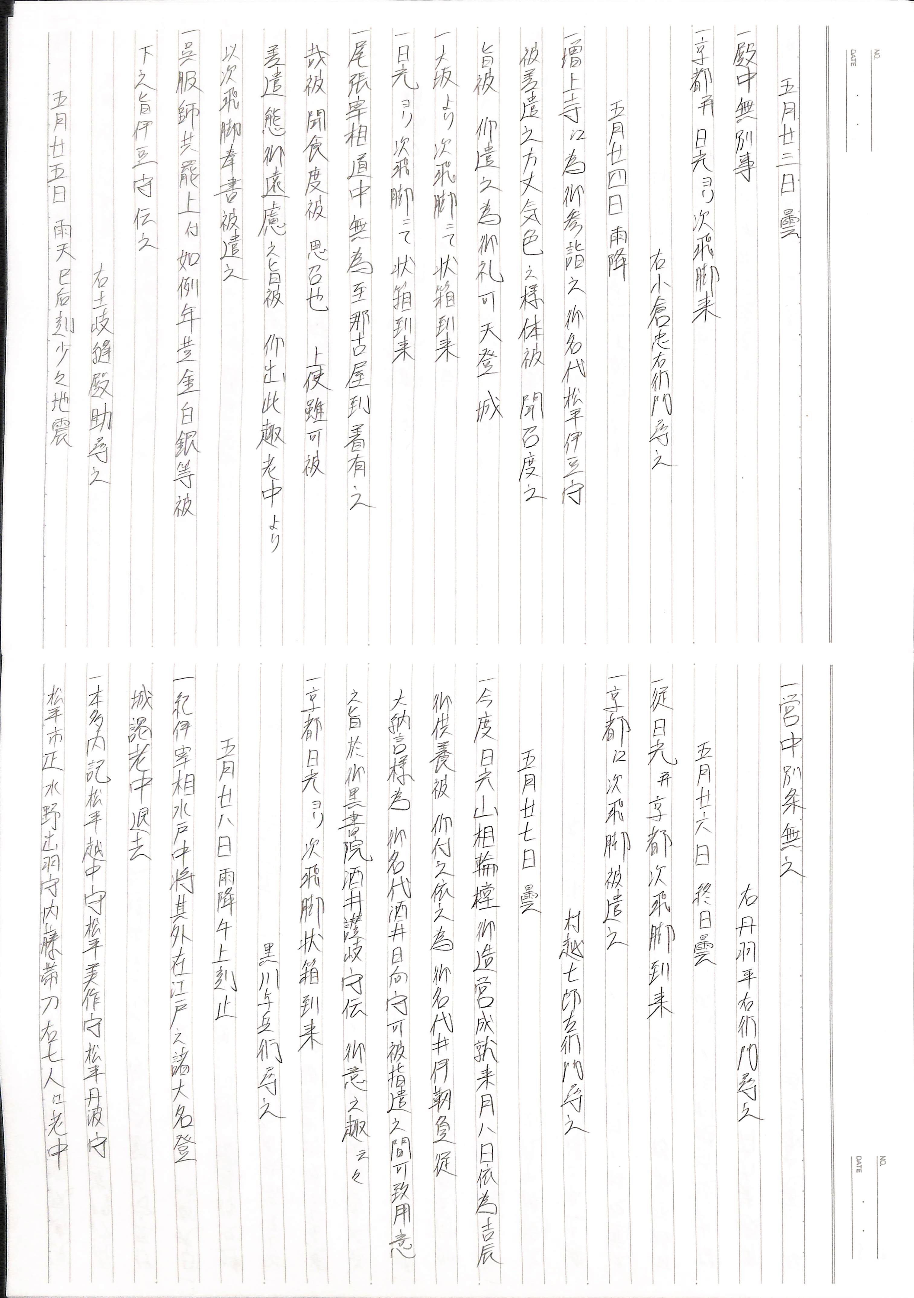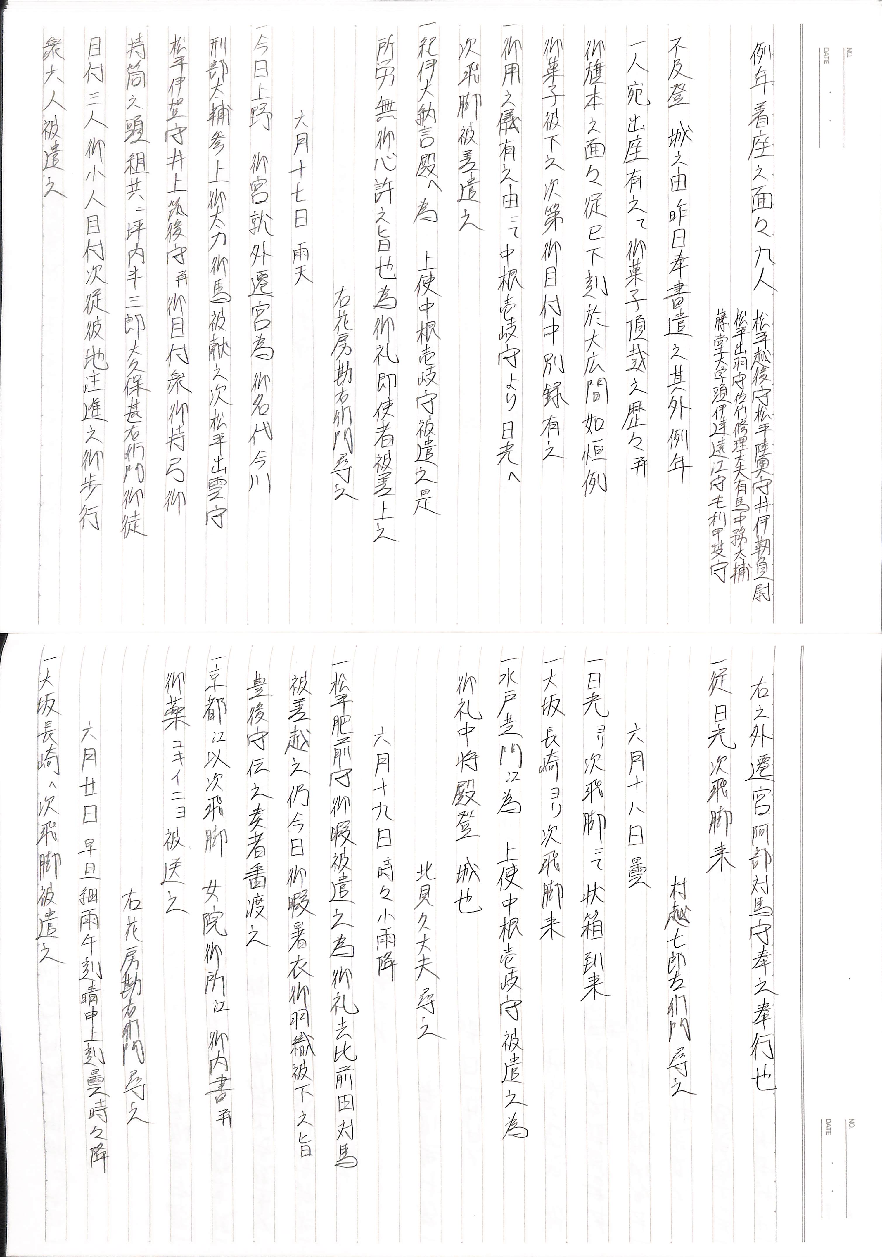 藤井讓治監修『江戸幕府日記姫路酒井家本』第24巻(ゆまに書房、2004年)より作成。原史料は姫路市立城郭研究室所蔵。